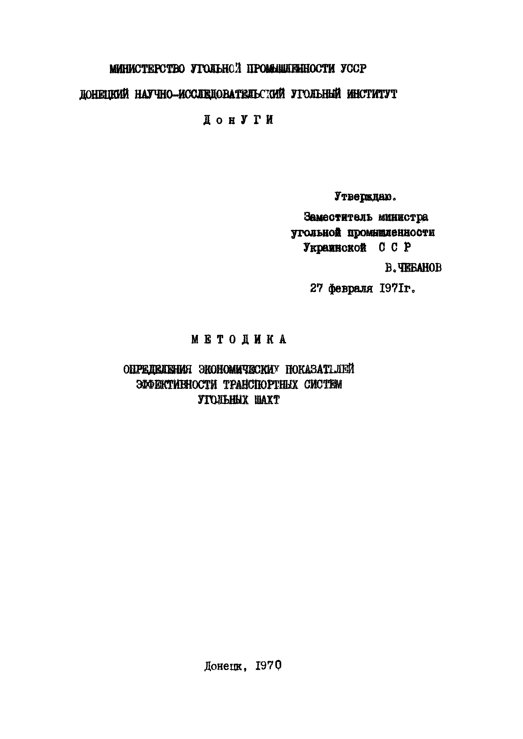 | Утверждён: | 27.02.1971 Министерство угольной промышленности СССР (USSR Ministry of the Coal Industry )