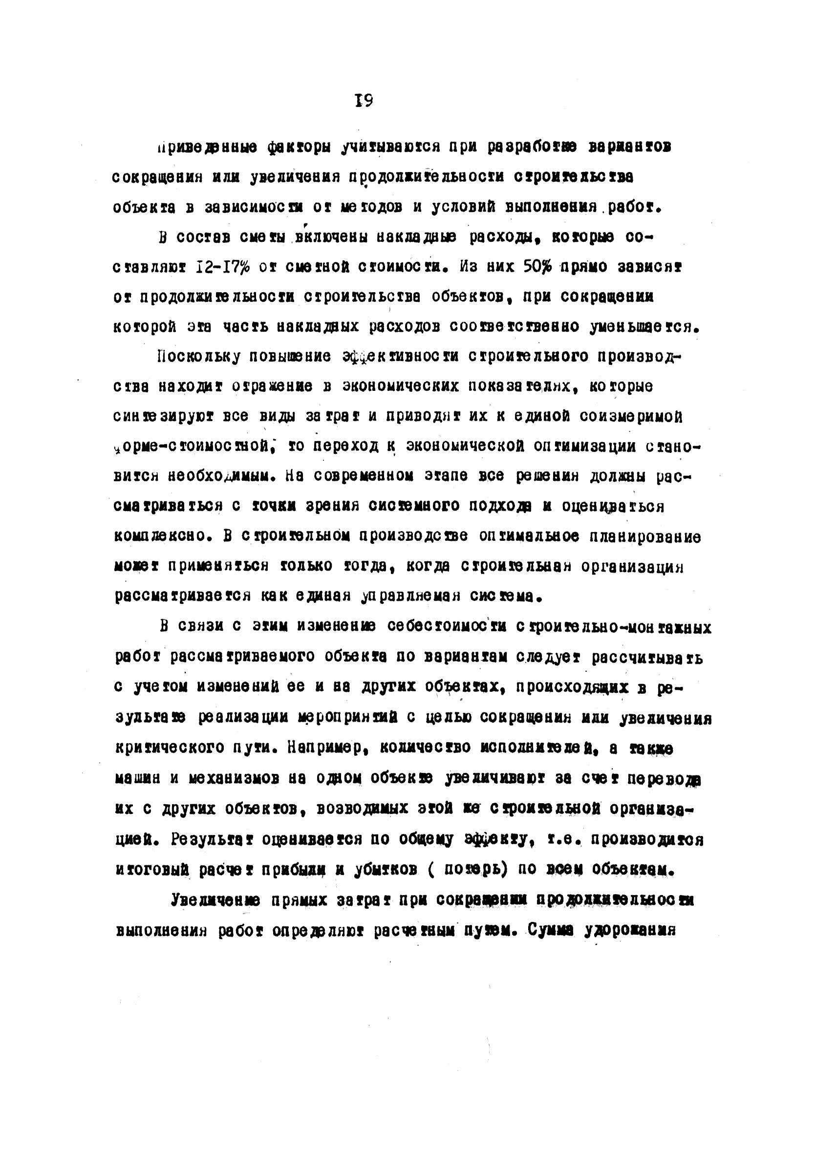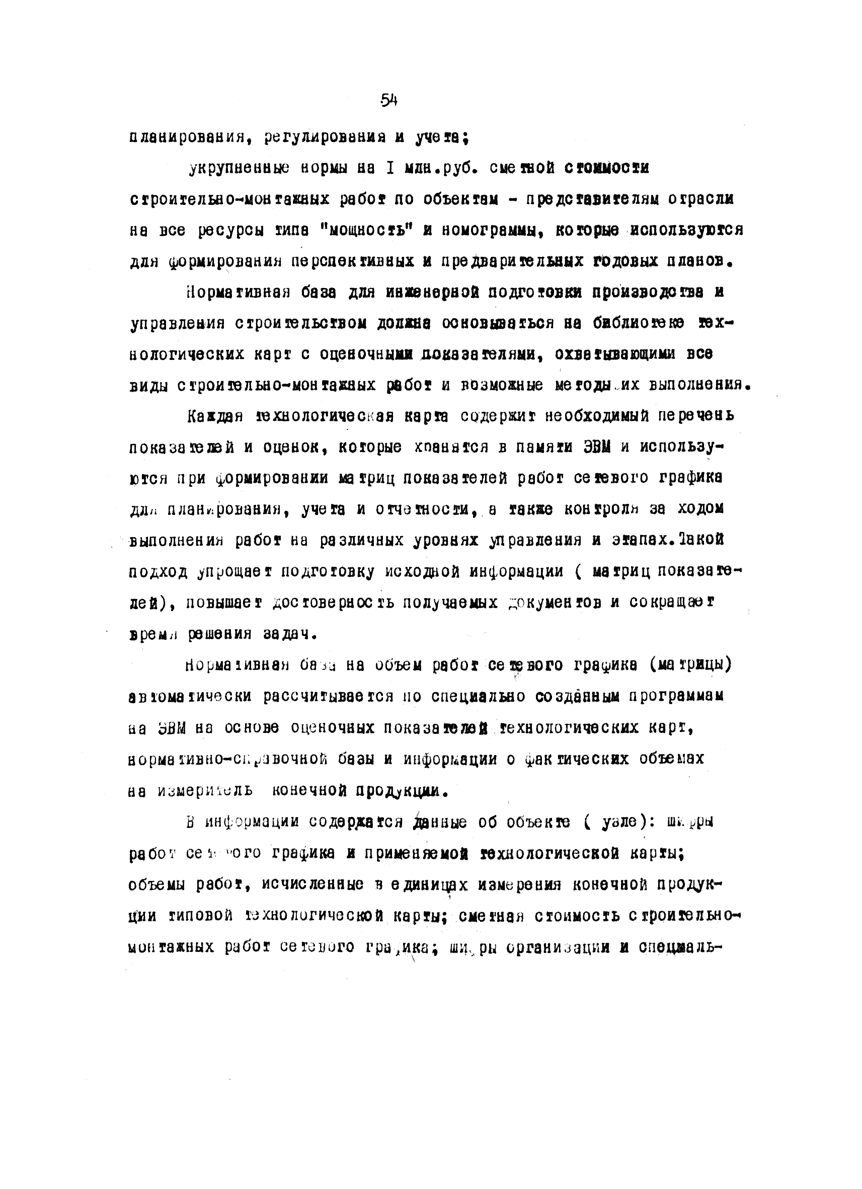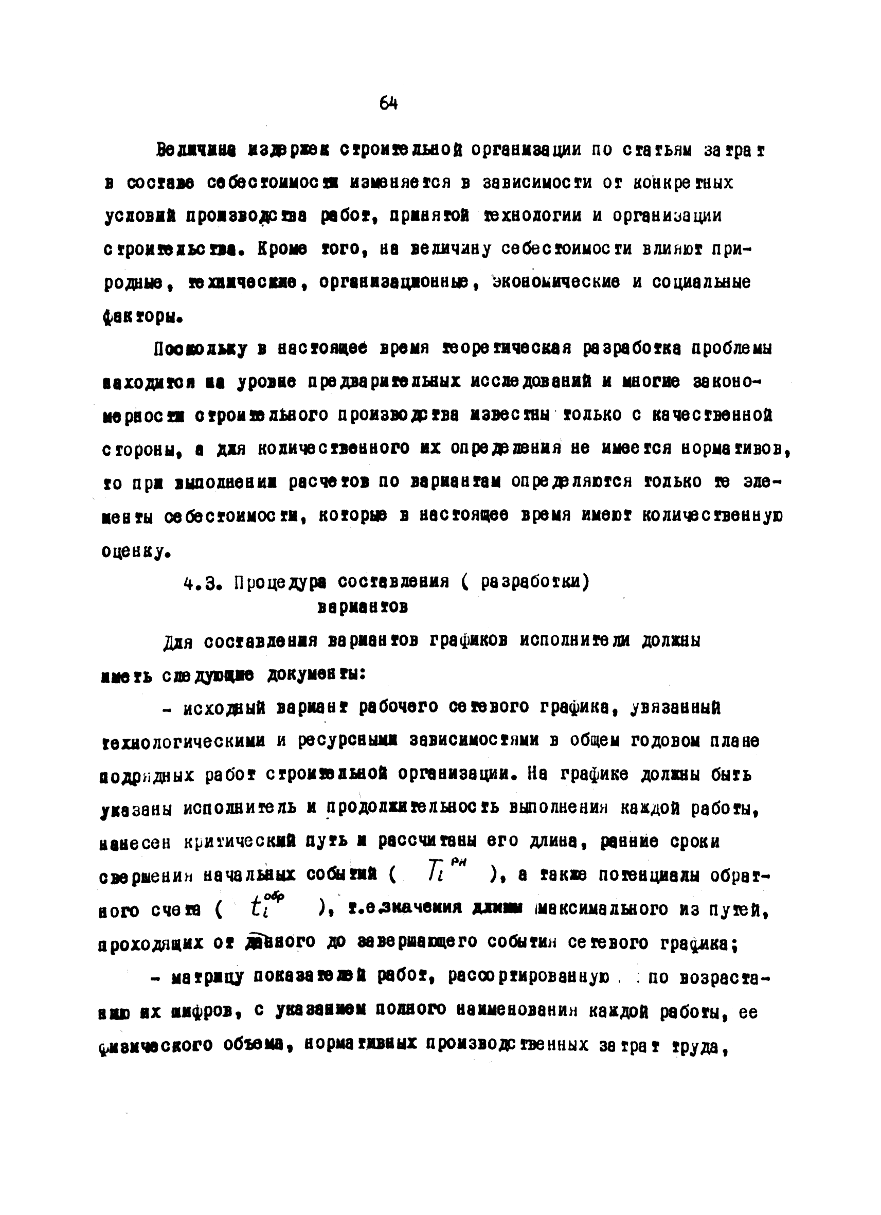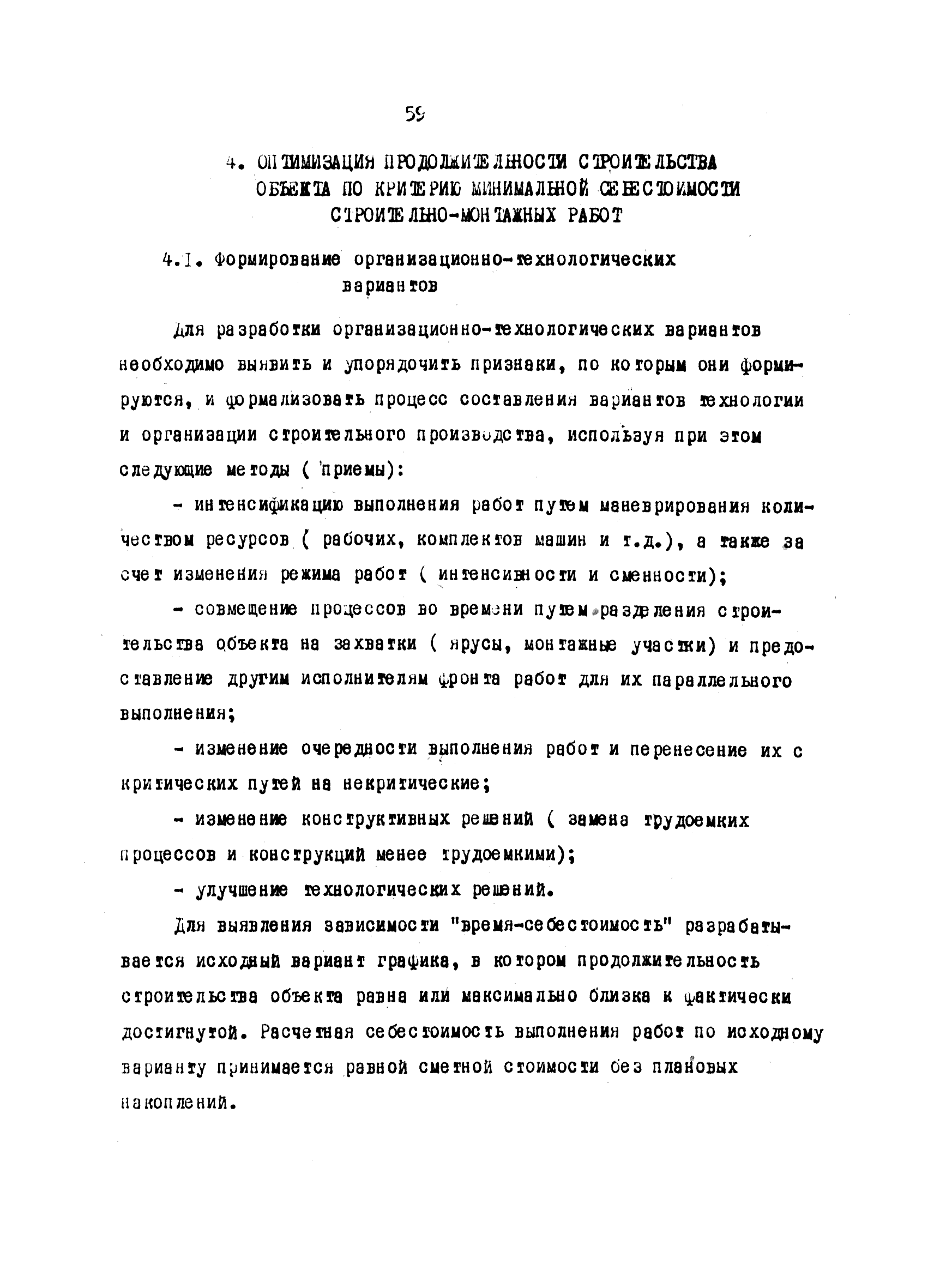 | Оглавление: | Введение 1 Основные положения 2 Анализ факторов, влияющих на себестоимость строительно-монтажных работ 2.1 Определение факторов 2.2 Количественная оценка факторов 3 Модель и исходные данные для исследования зависимости себестоимости строительно-монтажных работ от продолжительности строительства объектов 3.1 Этапы и их модели 3.2 Разработка моделей по этапам 3.3 Нормативная база 3.4 Описание блок-схемы формирования нормативной базы 4 Оптимизация продолжительности строительства объекта по критерию минимальной себестоимости строительно-монтажных работ 4.1 Формирование организационно-технологических вариантов 4.2 Определение изменения себестоимости строительства по вариантам 4.3 Процедура составления (разработки) вариантов 5 Математическое обеспечение расчетов на ЭВМ 5.1 Специальный пакет программ 5.2 Стандартный пакет программ 5.3 Краткая характеристика метода определения функциональной зависимости 6 Порядок разработки, оформления и хранения каталога ведомственных норм продолжительности строительства объектов 6.1 Порядок разработки 6.2 Оформление каталога 6.3 Хранение каталога 7 Порядок применения норм продолжительности строительства объектов в составе пусковых комплексов угольной промышленности |