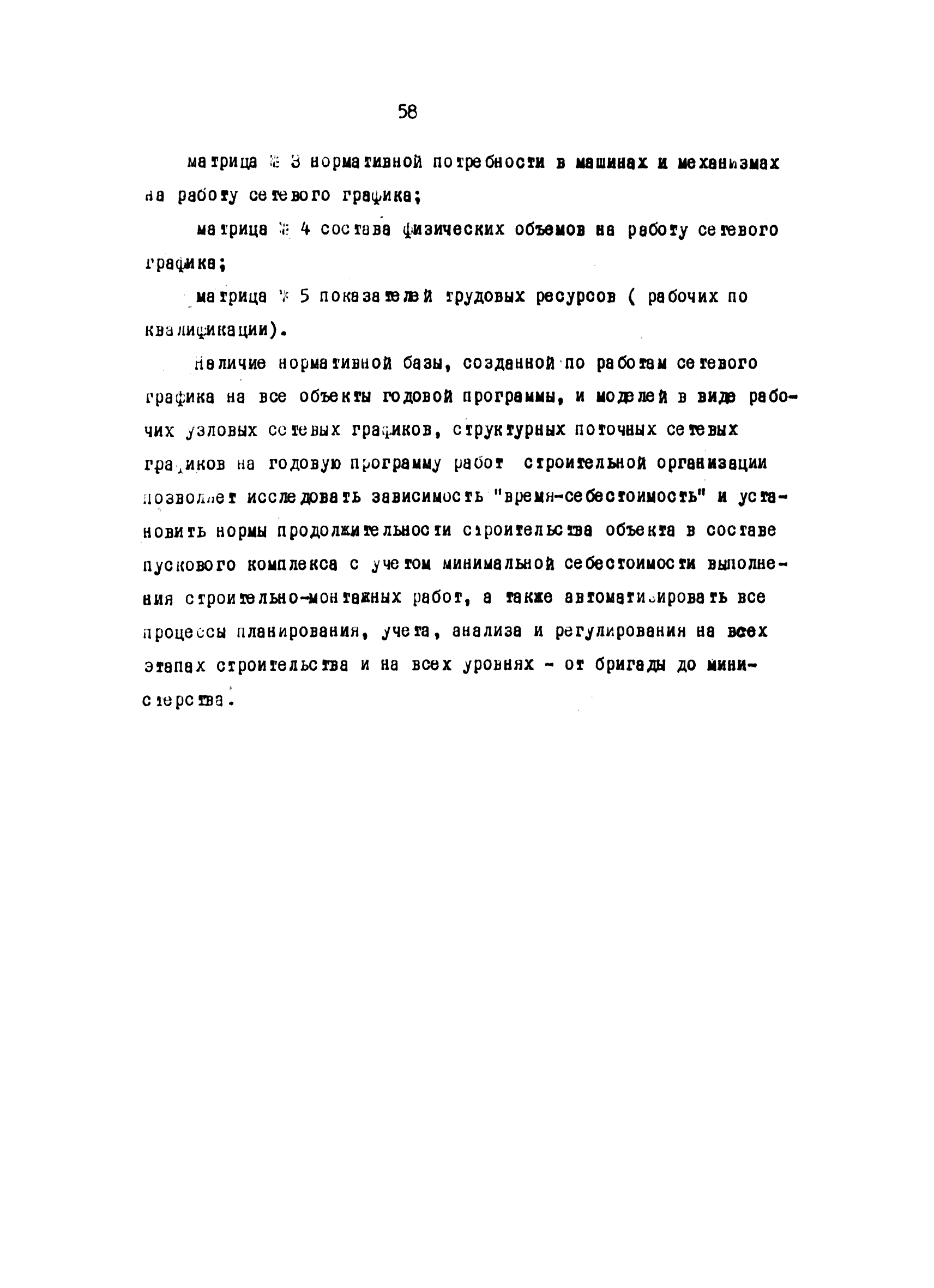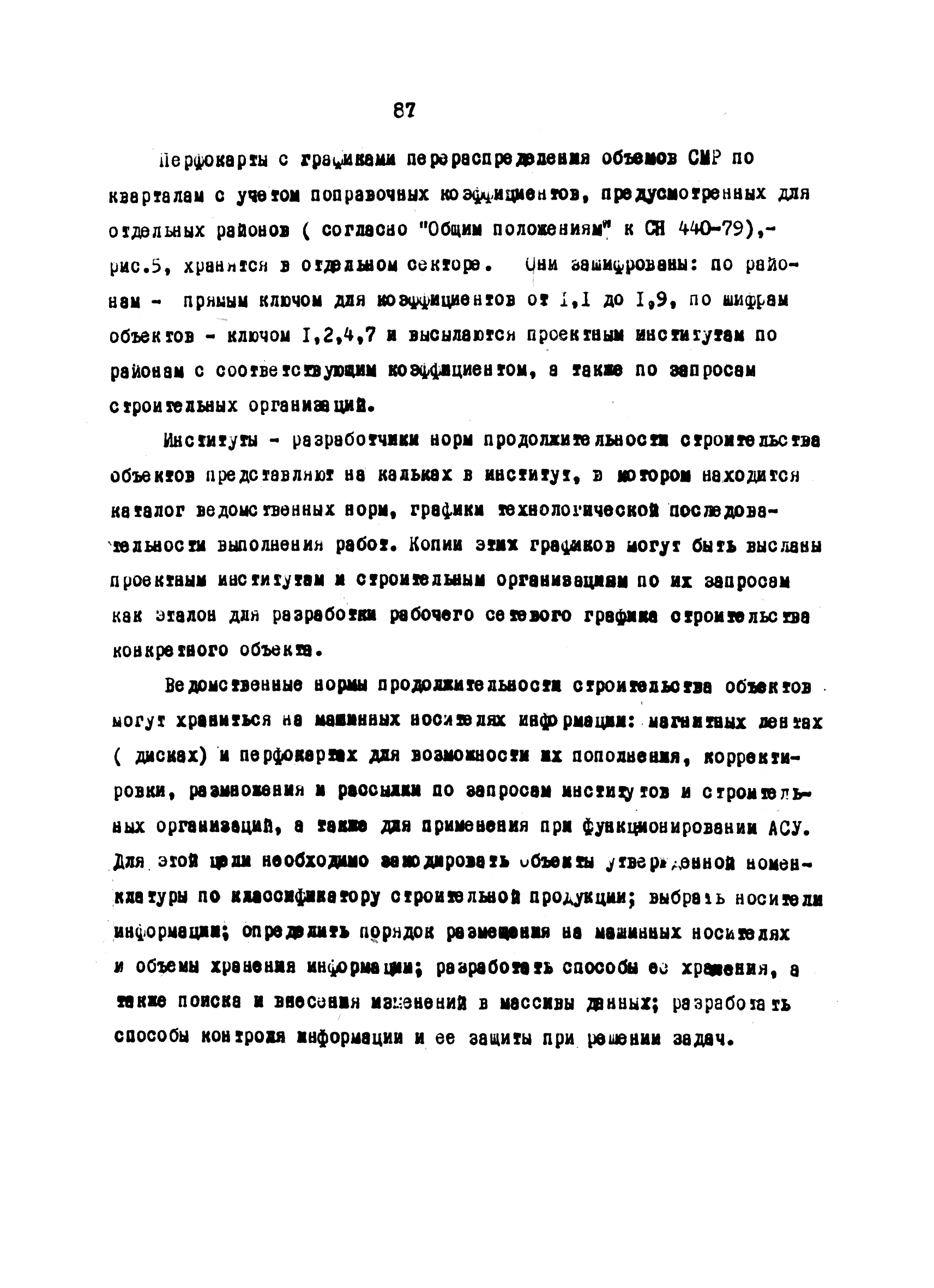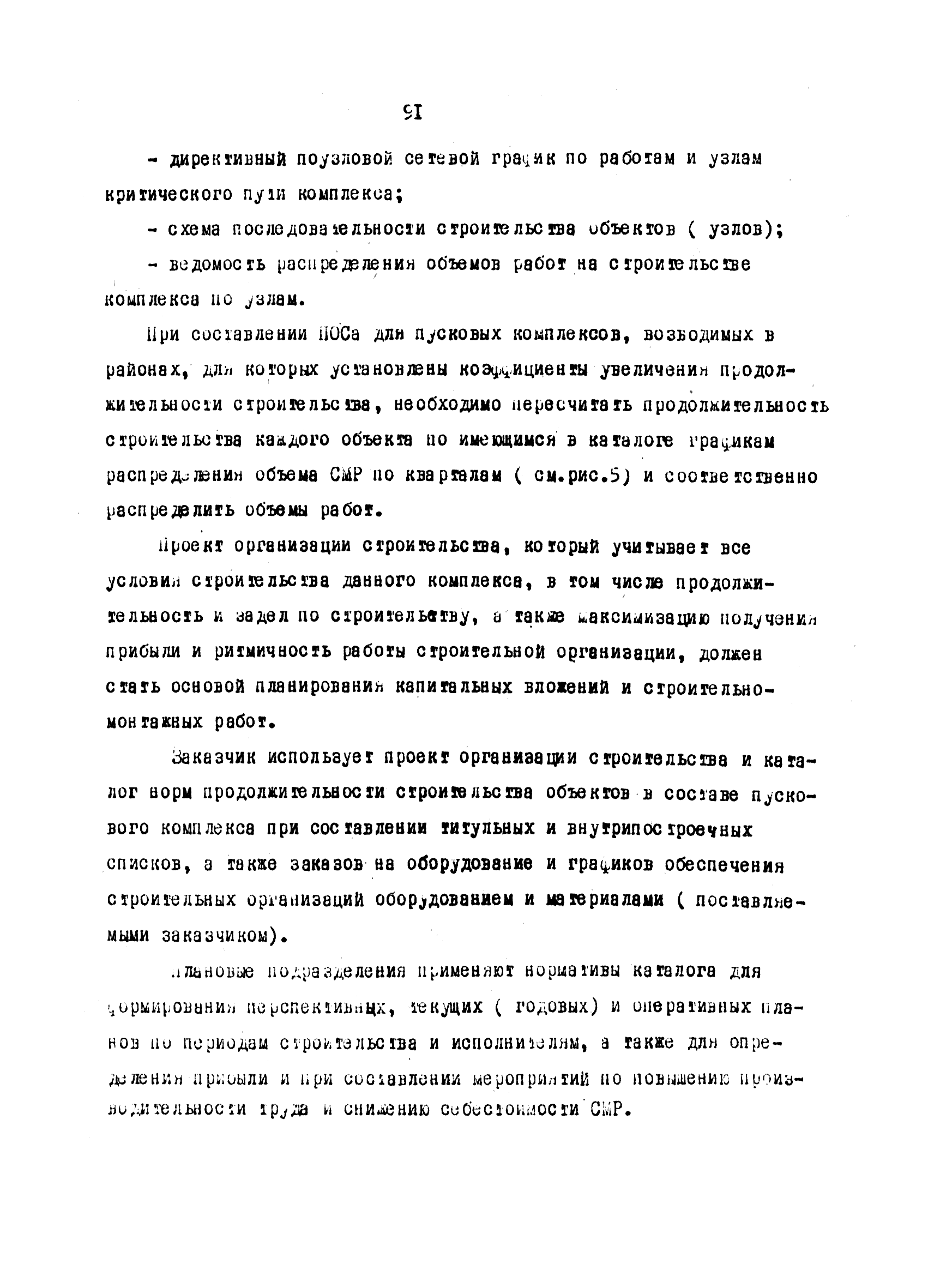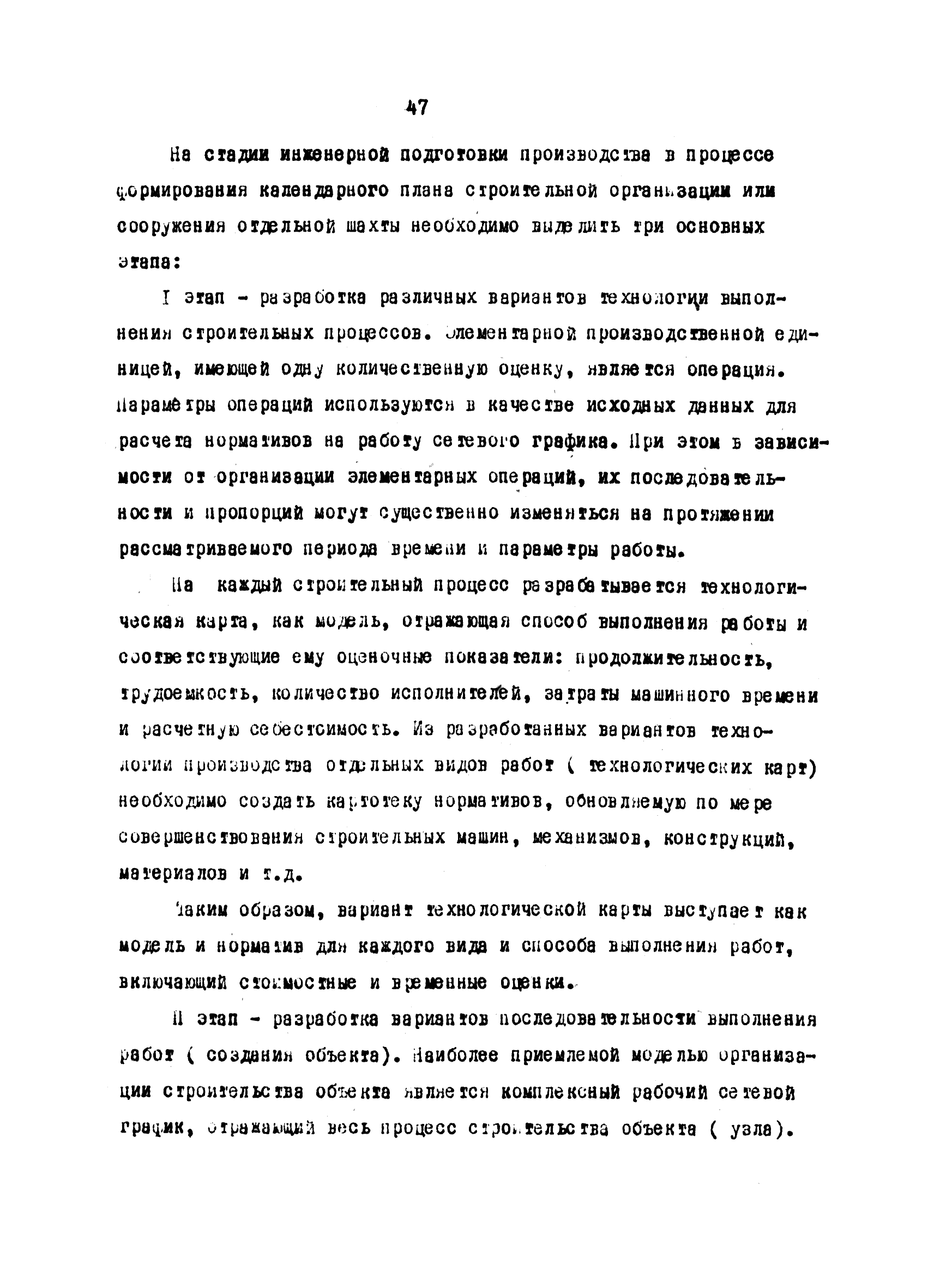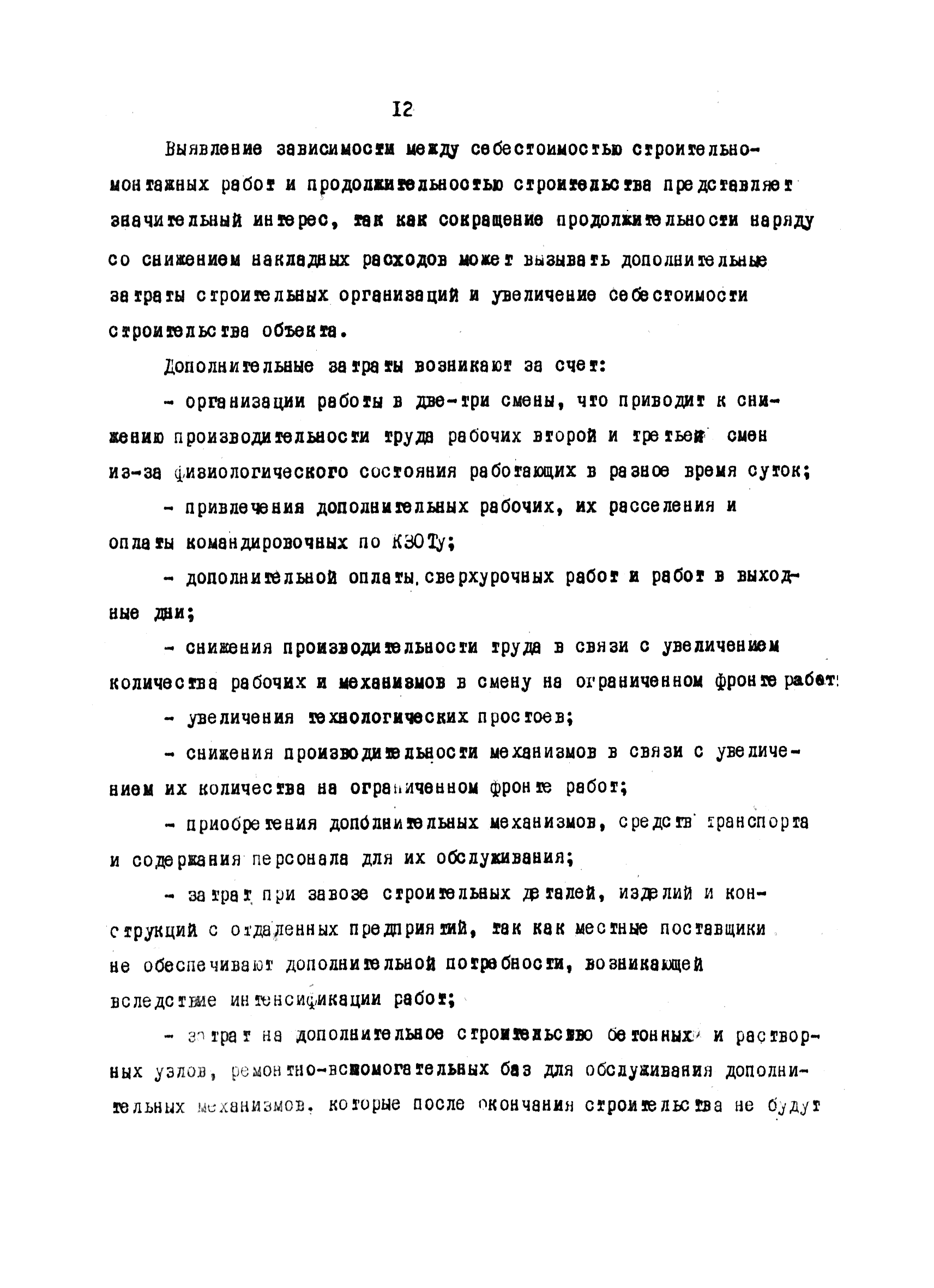 | Оглавление: | Введение 1 Основные положения 2 Анализ факторов, влияющих на себестоимость строительно-монтажных работ 2.1 Определение факторов 2.2 Количественная оценка факторов 3 Модель и исходные данные для исследования зависимости себестоимости строительно-монтажных работ от продолжительности строительства объектов 3.1 Этапы и их модели 3.2 Разработка моделей по этапам 3.3 Нормативная база 3.4 Описание блок-схемы формирования нормативной базы 4 Оптимизация продолжительности строительства объекта по критерию минимальной себестоимости строительно-монтажных работ 4.1 Формирование организационно-технологических вариантов 4.2 Определение изменения себестоимости строительства по вариантам 4.3 Процедура составления (разработки) вариантов 5 Математическое обеспечение расчетов на ЭВМ 5.1 Специальный пакет программ 5.2 Стандартный пакет программ 5.3 Краткая характеристика метода определения функциональной зависимости 6 Порядок разработки, оформления и хранения каталога ведомственных норм продолжительности строительства объектов 6.1 Порядок разработки 6.2 Оформление каталога 6.3 Хранение каталога 7 Порядок применения норм продолжительности строительства объектов в составе пусковых комплексов угольной промышленности |