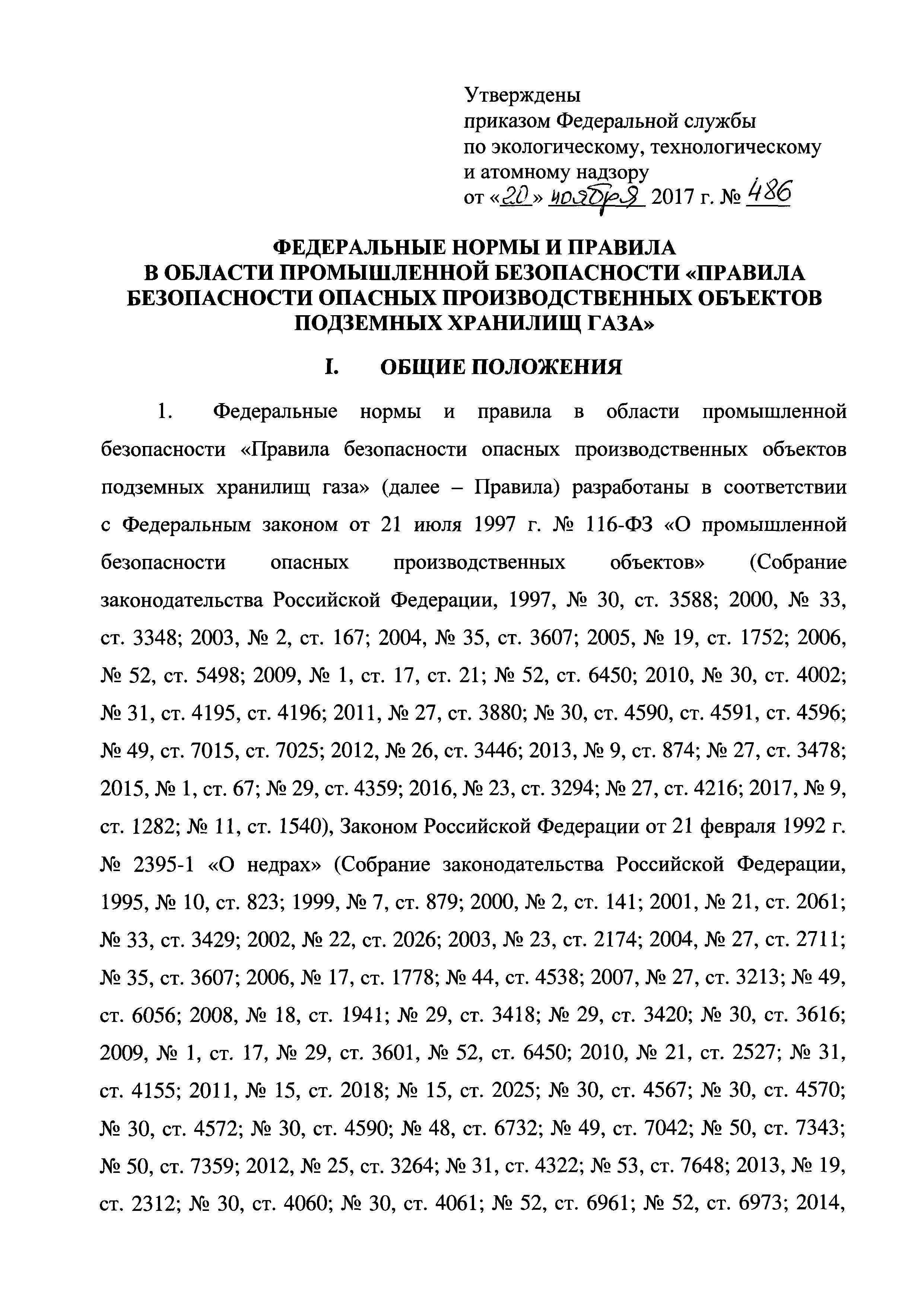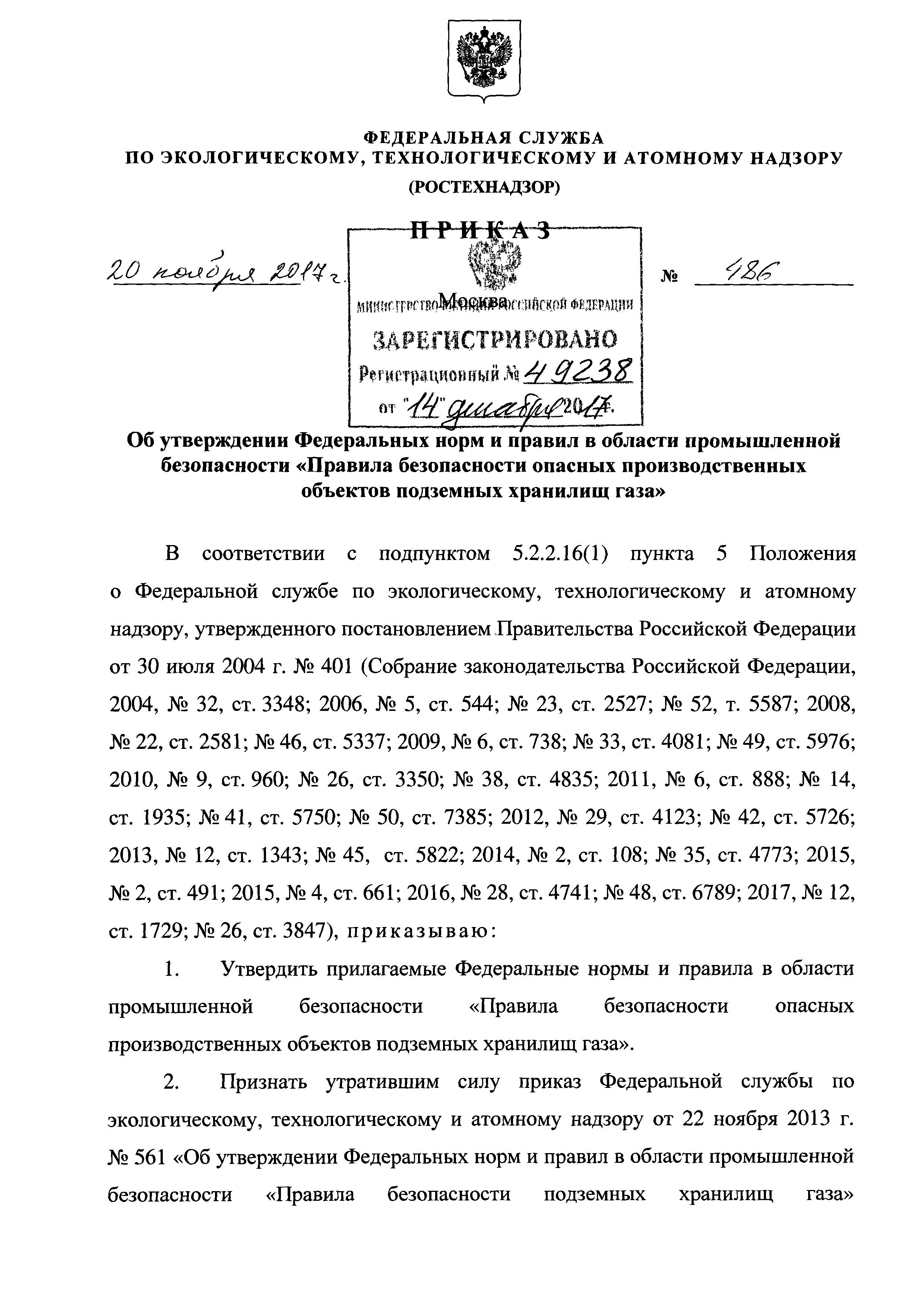 | Утверждён: | 20.11.2017 Федеральная служба по экологическому, технологическому и атомному надзору (486) |