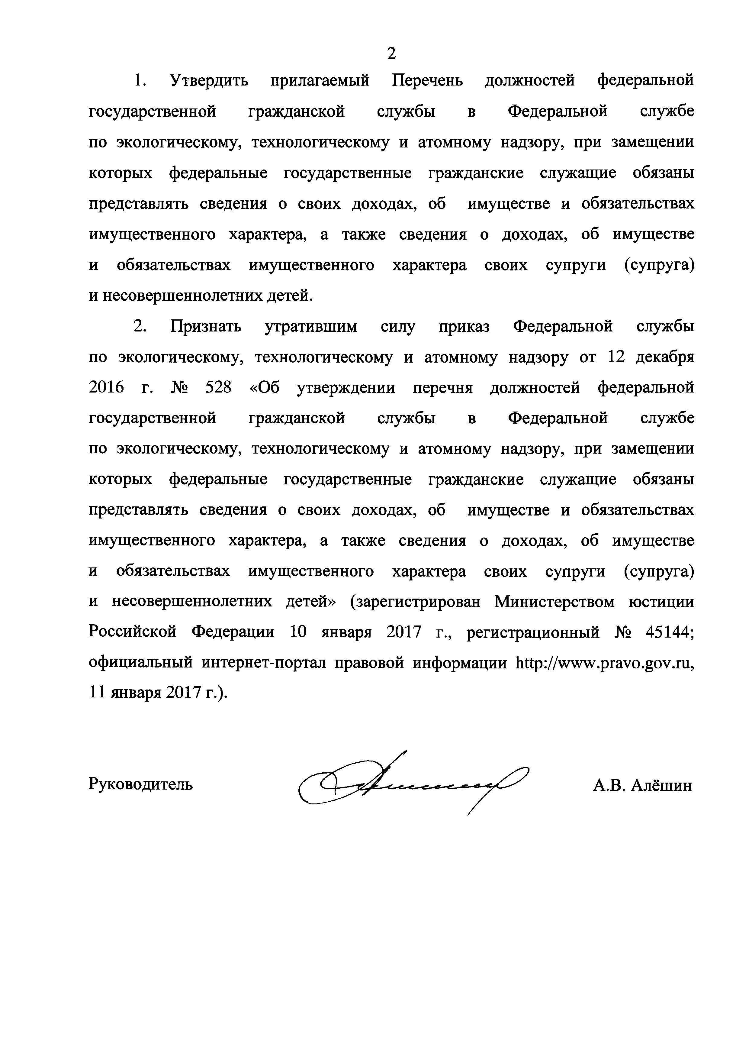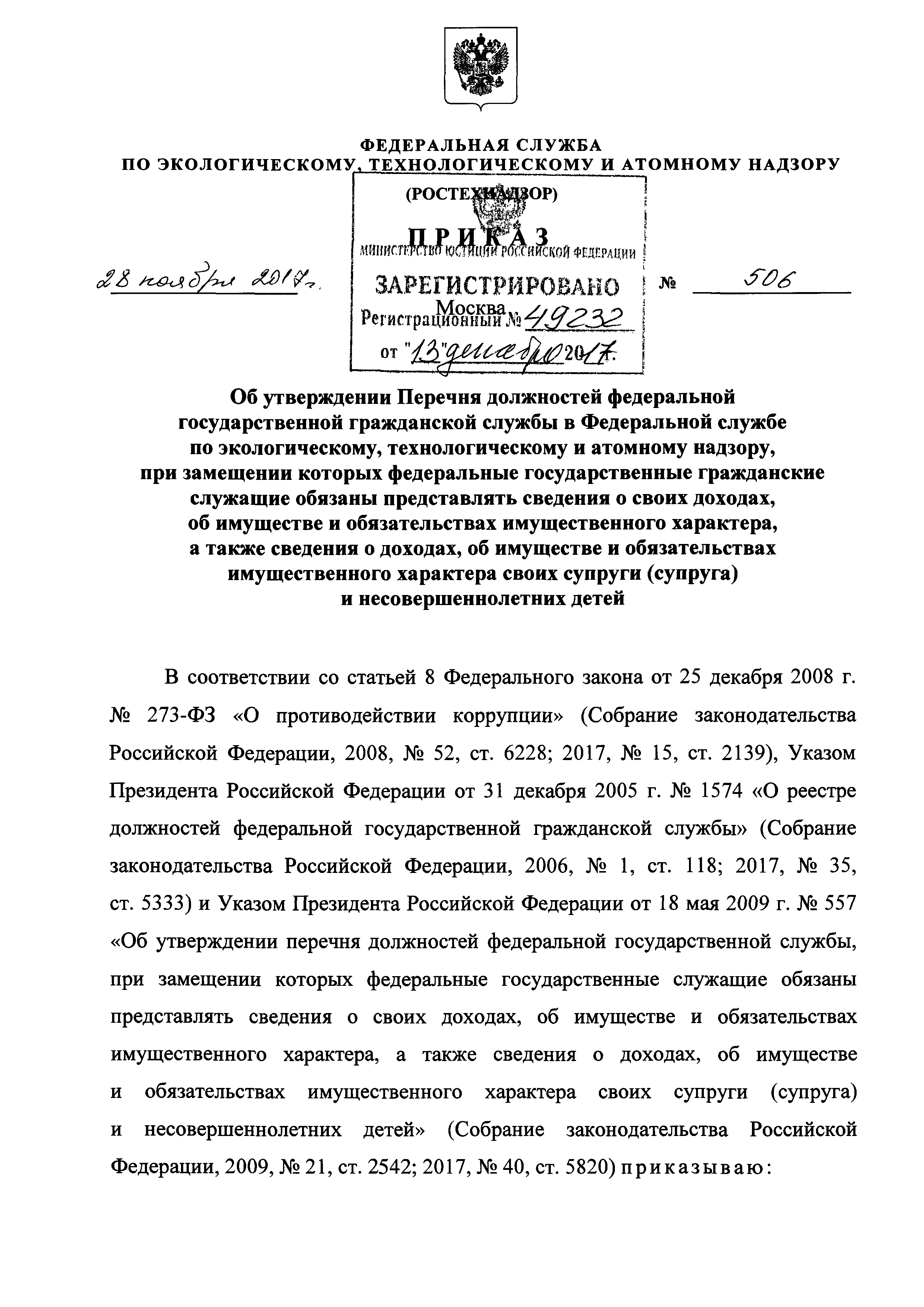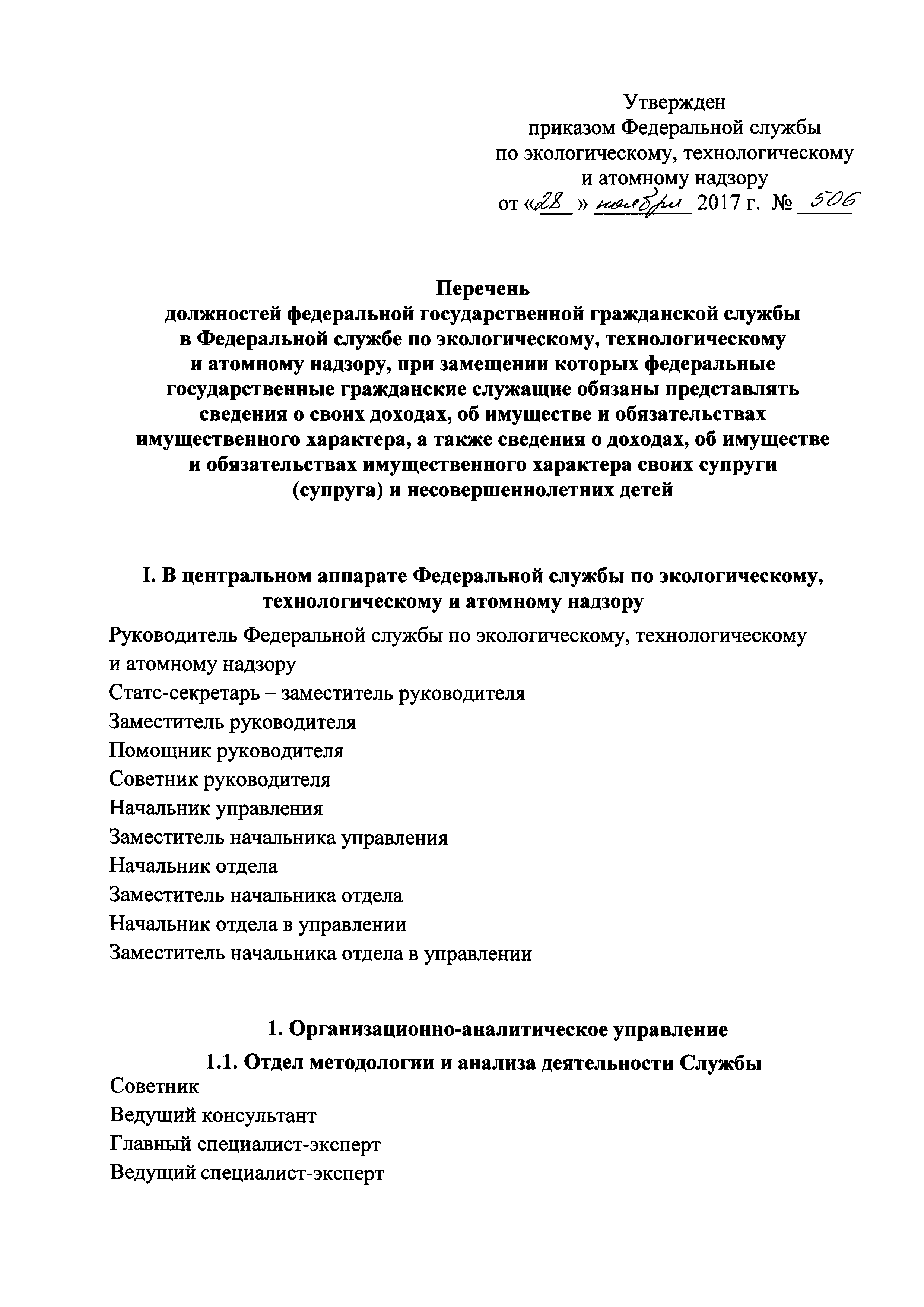 | Название рус.: | Перечень должностей федеральной государственной гражданской службы в Федеральной службе по экологическому, технологическому и атомному надзору, при замещении которых федеральные государственные гражданские служащие обязаны представлять сведения о своих доходах, об имуществе и обязательствах имущественного характера, а также сведения о доходах, об имуществе и обязательствах имущественного характера своих супруги (супруга) и несовершеннолетних детей |
