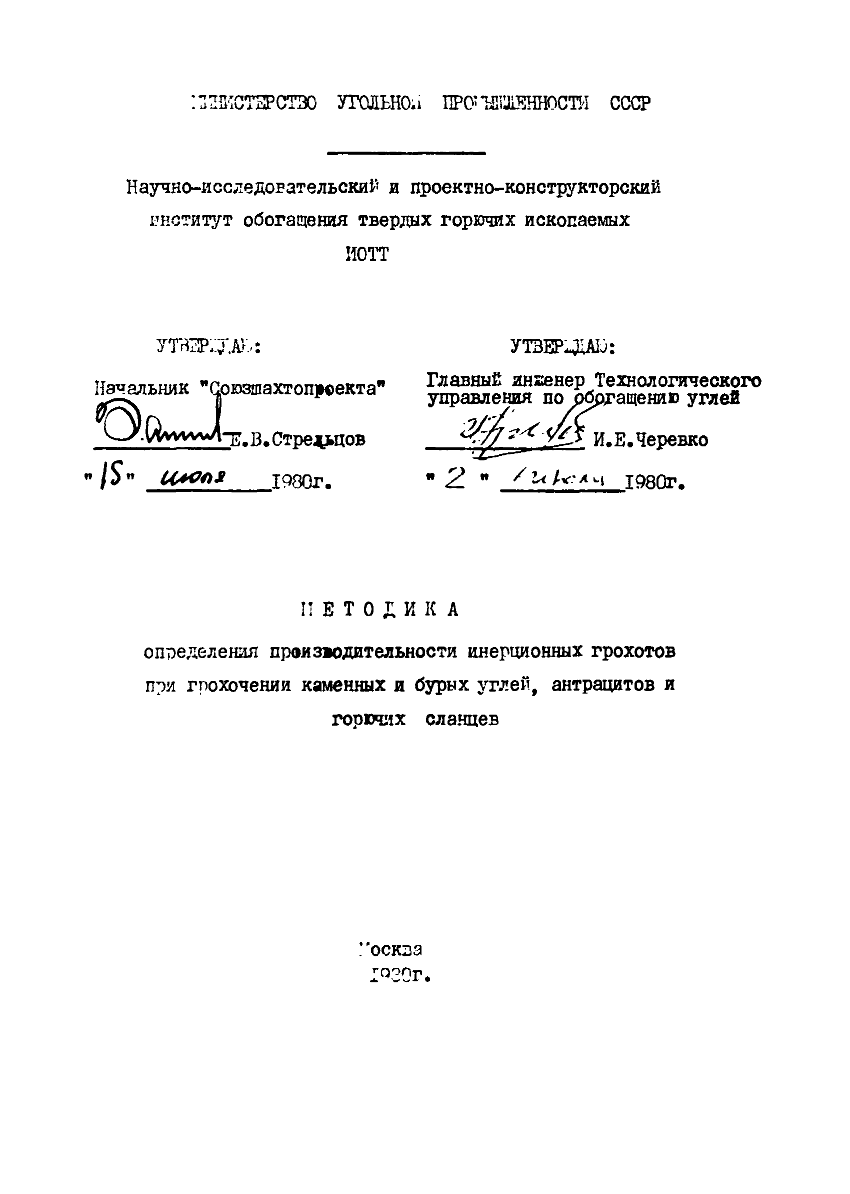| Утверждён: | 15.07.1980 Союзшахтопроект 02.07.1980 Технологическое управление по обогащению углей