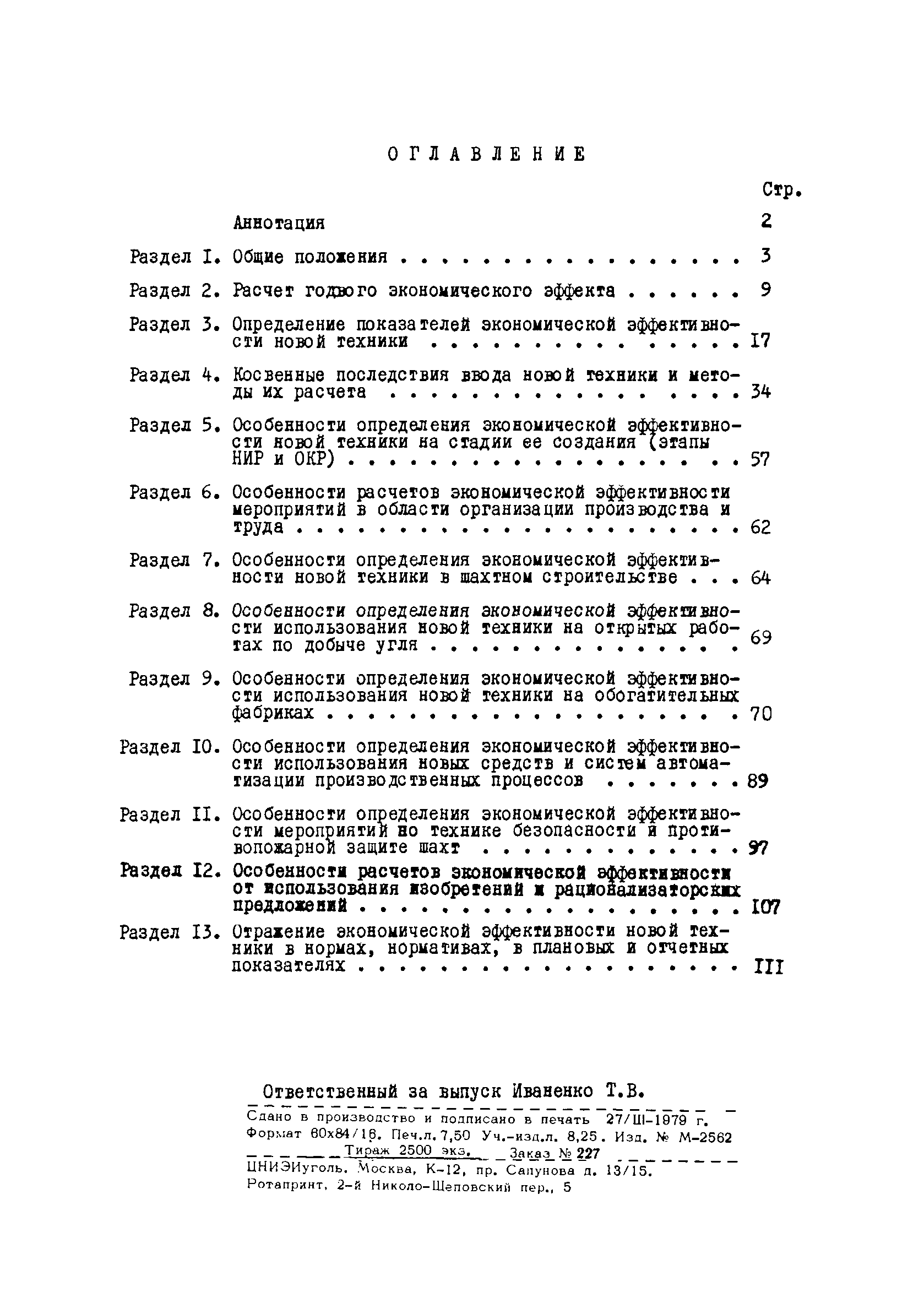 | Оглавление: | Аннотация Раздел 1. Общие положения Раздел 2. Расчет годового экономического эффекта Раздел 3. Определение показателей экономической эффективности новой техники Раздел 4. Косвенные последствия ввода новой техники и методы их расчета Раздел 5. Особенности определения экономической эффективности новой техники на стадии ее создания (этапы НИР и ОКР) Раздел 6. Особенности расчетов экономической эффективности мероприятий в области организации производства и труда Раздел 7. Особенности определения экономической эффективности новой техники в шахтном строительстве Раздел 8. Особенности определения экономической эффективности использования новой техники на открытых работах по добыче угля Раздел 9. Особенности определения экономической эффективности использования новой техники на обогатительных фабриках Раздел 10. Особенности определения экономической эффективности использования новых средств и систем автоматизации производственных процессов Раздел 11. Особенности определения экономической эффективности мероприятий но технике безопасности и противопожарной защите вахт Раздел 12. Особенности расчетов экономической эффективности от использования изобретений и рационализаторских предложений Раздел 13. Отражение экономической эффективности новой техники в нормах, нормативах, в плановых и отчетных показателях |