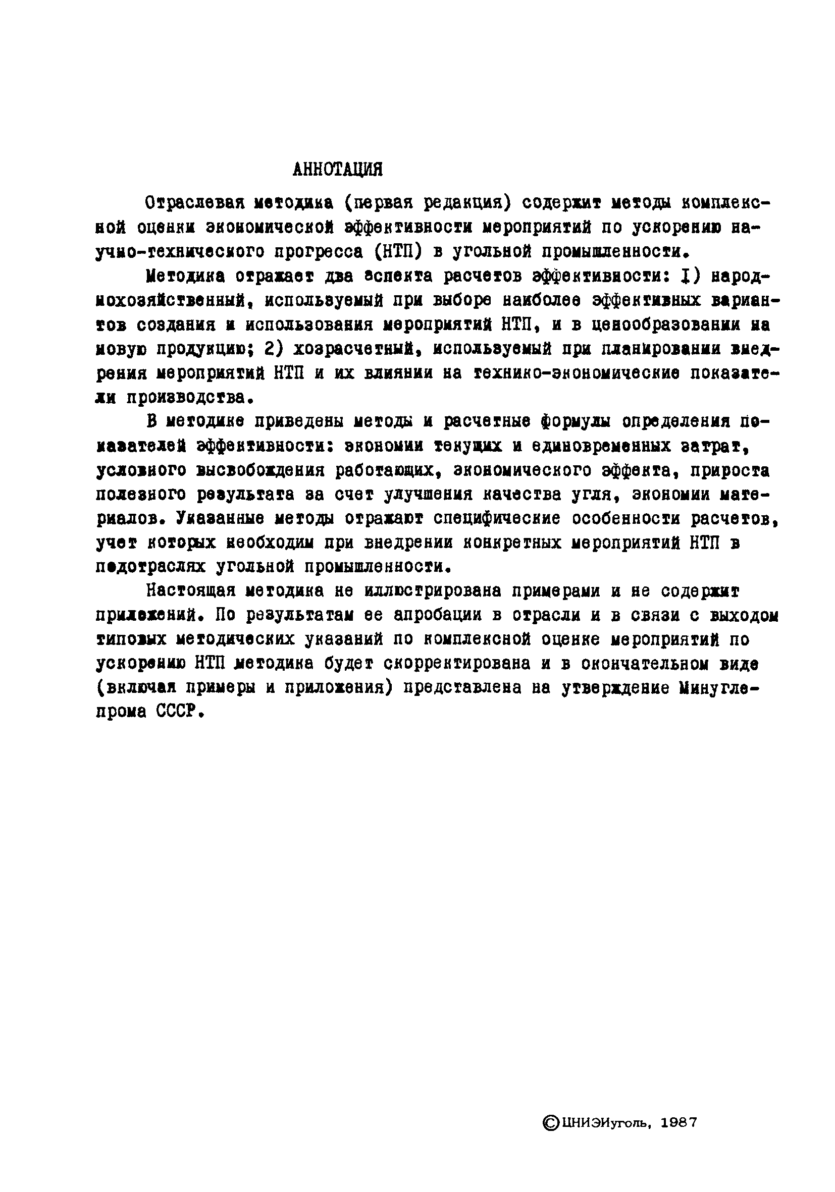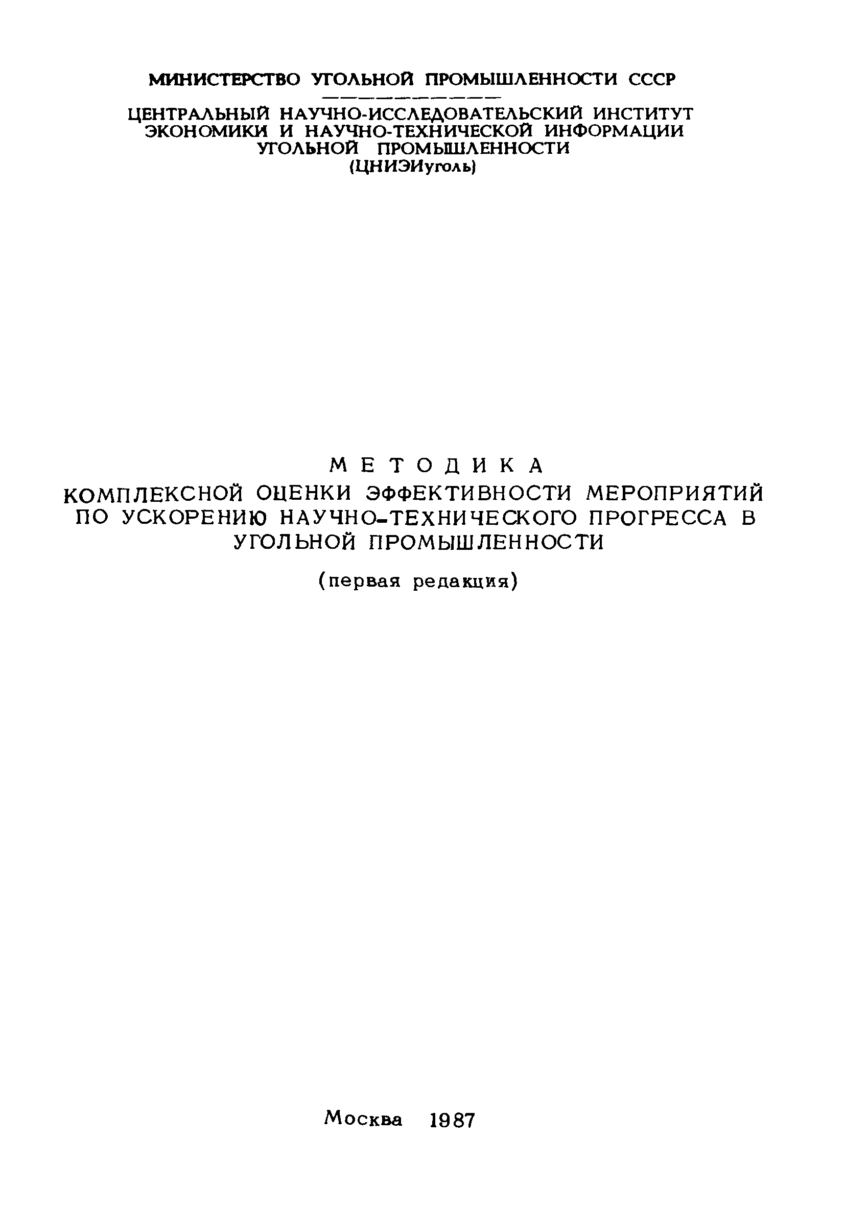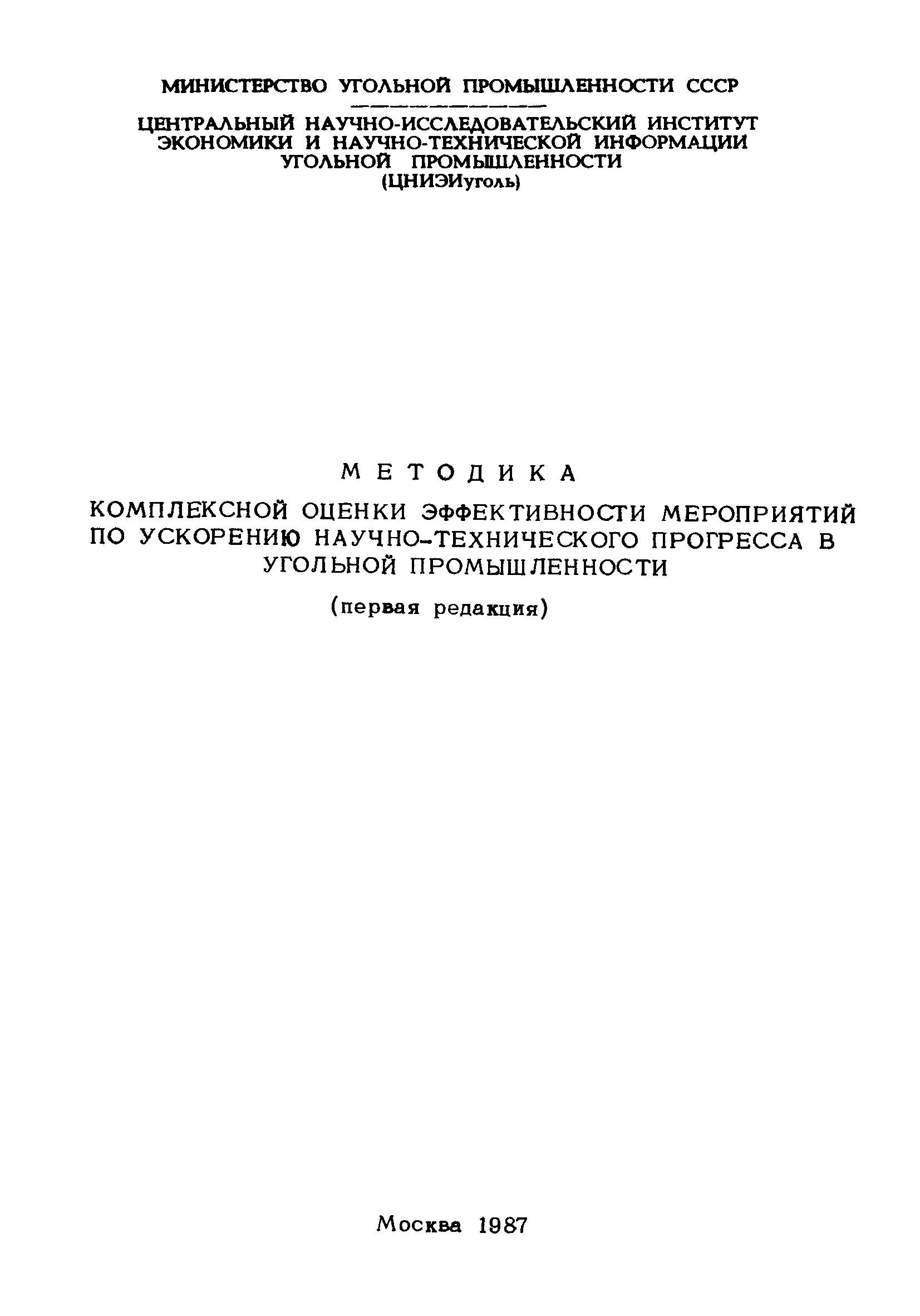 | Название рус.: | Методика комплексной оценки эффективности мероприятий по ускорению научно-технического прогресса в угольной промышленности |