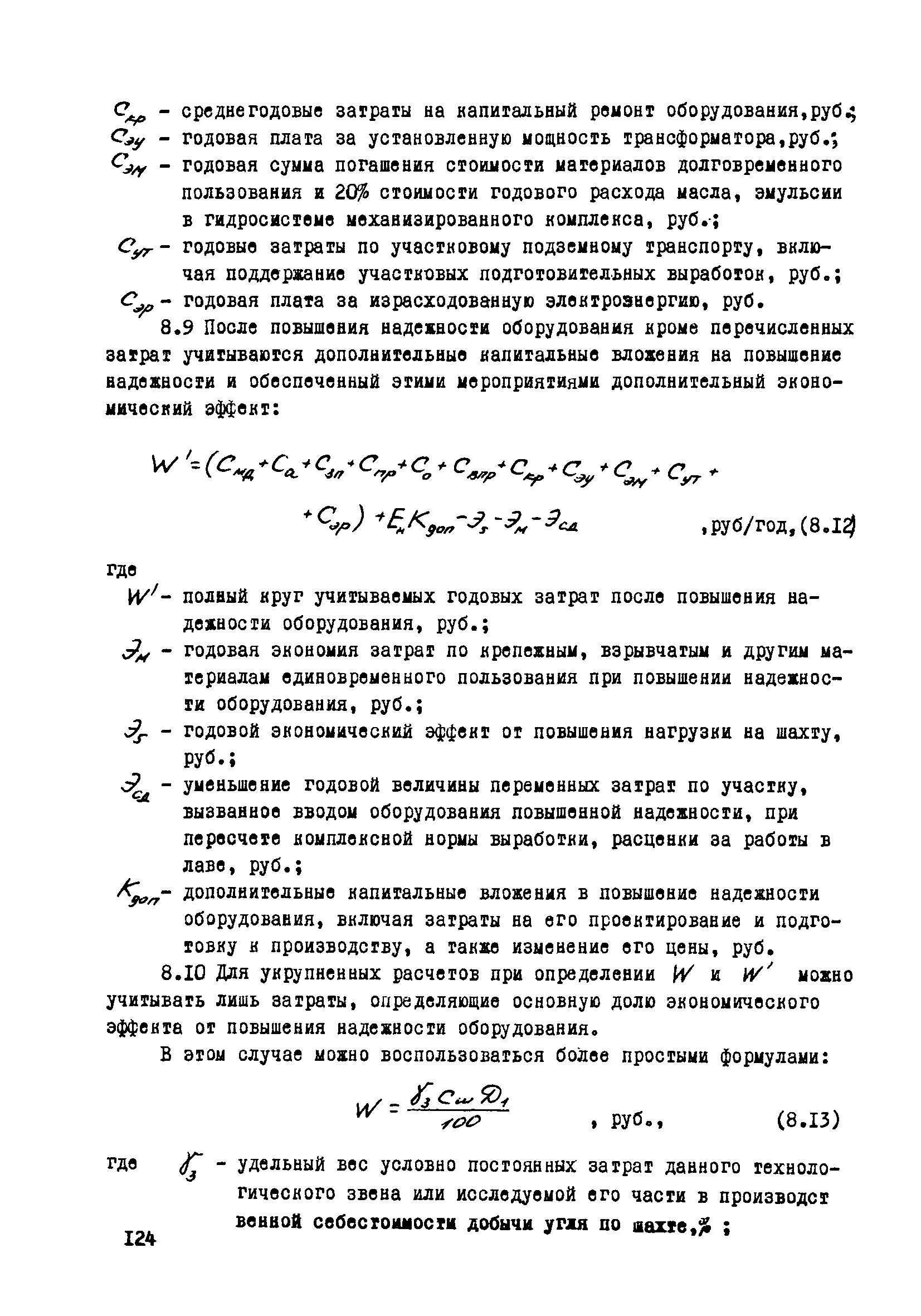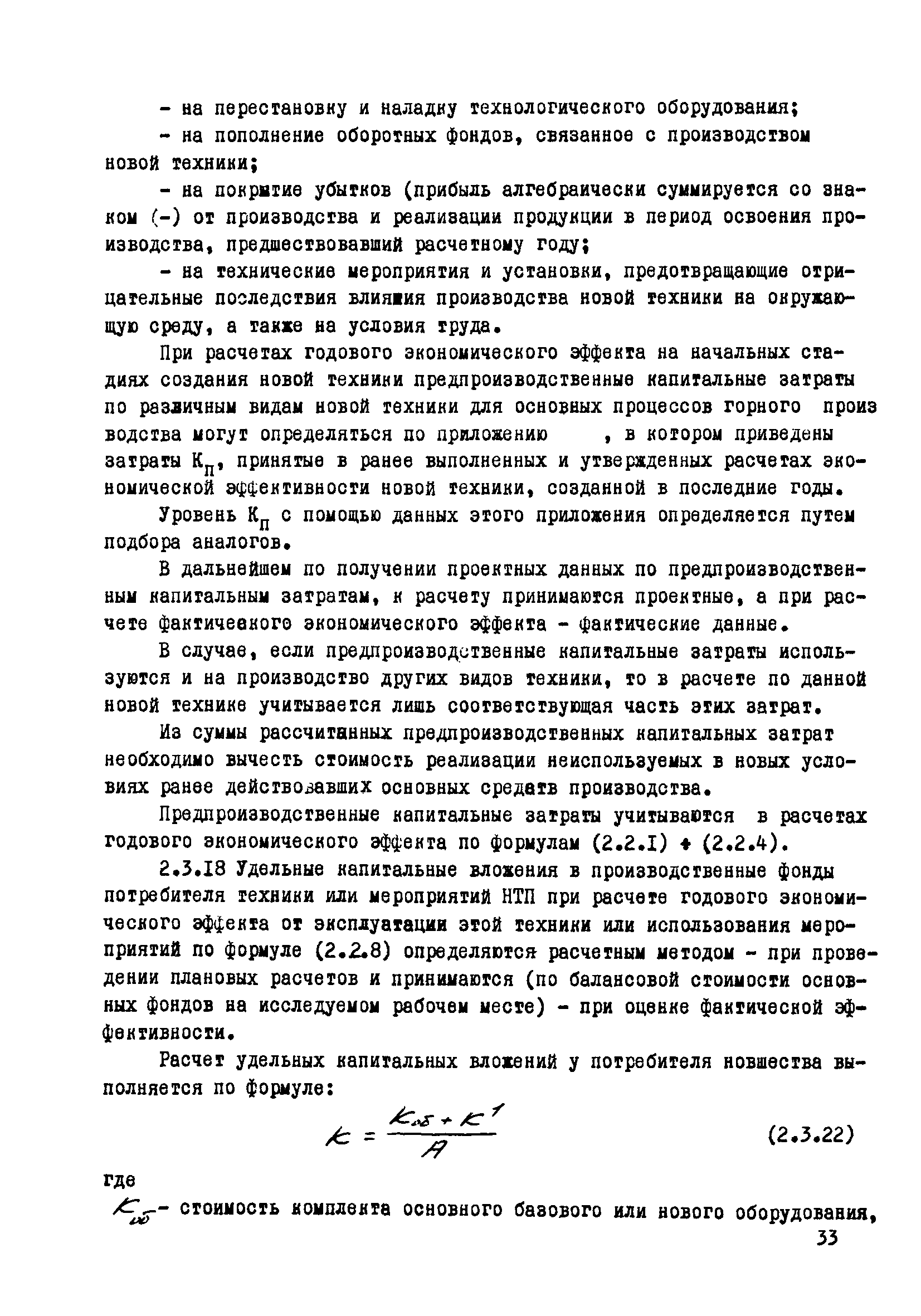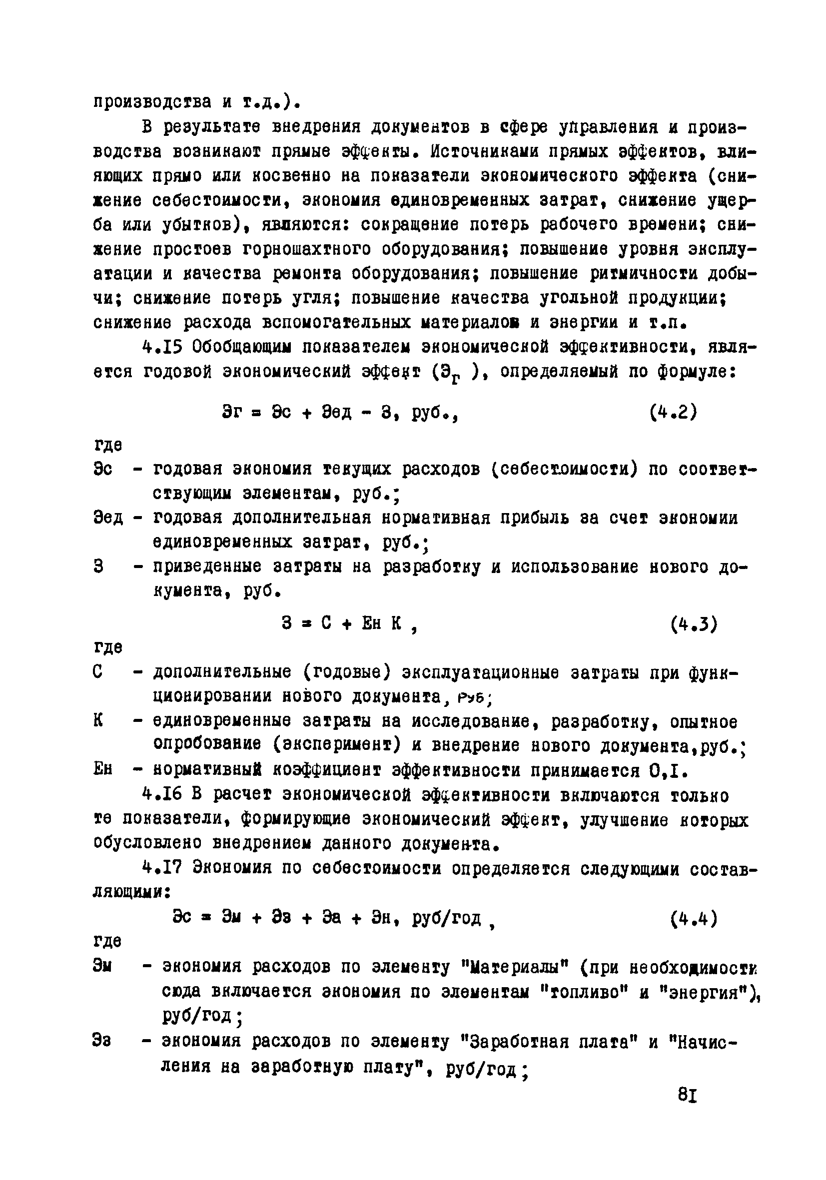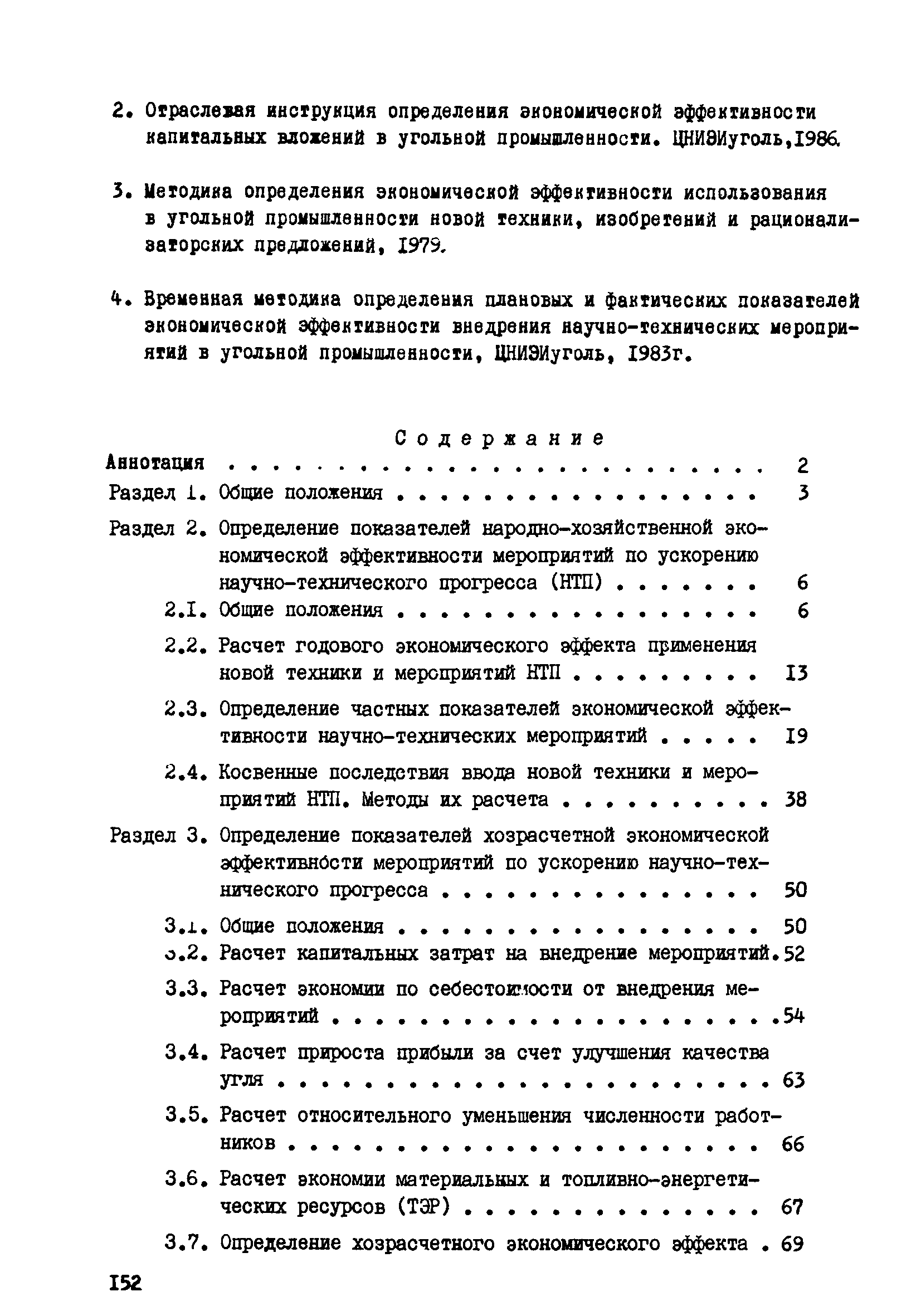 | Оглавление: | Аннотация Раздел 1. Общие положения Раздел 2. Определение показателей народно-хозяйственной экономической эффективности мероприятий по ускорению научно-технического прогресса (НТП) 2.1. Общие положения 2.2. Расчет годового экономического эффекта применения новой техники и мероприятий НТП 2.3. Определение частных показателей экономической эффективности научно-технических мероприятий 2.4. Косвенные последствия ввода новой техники и мероприятий НТП. Методы их расчета Раздел 3. Определение показателей хозрасчетной экономической эффективности мероприятий по ускорению научно-технического прогресса 3.1. Общие положения 3.2. Расчет капитальных затрат на внедрение мероприятий 3.3. Расчет экономии по себестоимости от внедрения мероприятий 3.4. Расчет прироста прибыли за счет улучшения качества угля 3.5. Расчет относительного уменьшения численности работников 3.6. Расчет экономии материальных и топливно-энергетических ресурсов (ТЭР) 3.7. Определение хозрасчетного экономического эффекта 3.8. Отражение хозрасчетной экономической эффективности новой техники в плановых и отчетных показателях Раздел 4. Особенности определения комплексной оценки экономической эффективности новой техники и мероприятий НТП на стадии создания или разработки (этапы НИР и ОКР) Раздел 5. Особенности определения комплексной оценки экономической эффективности новой техники и мероприятий НТП на открытых работах по добыче угля Раздел 6. Особенности комплексной оценки экономической эффективности новой техники и мероприятий НТП на обогатительных фабриках Раздел 7. Особенности комплексной оценки экономической эффективности мероприятий НТП в области организации производства НОТ Раздел 8. Особенности комплексной оценки эффективности повышения надежности оборудования Раздел 9. Особенности оценки экономической эффективности социальных последствий проведения мероприятий по ускорению Раздел 10. Особенности комплексной оценки экономической эффективности новой техники и мероприятий НТП по безопасности и противопожарной защите шахт Раздел 11. Порядок проведения расчетов показателей экономической эффективности Список использованной литературы |