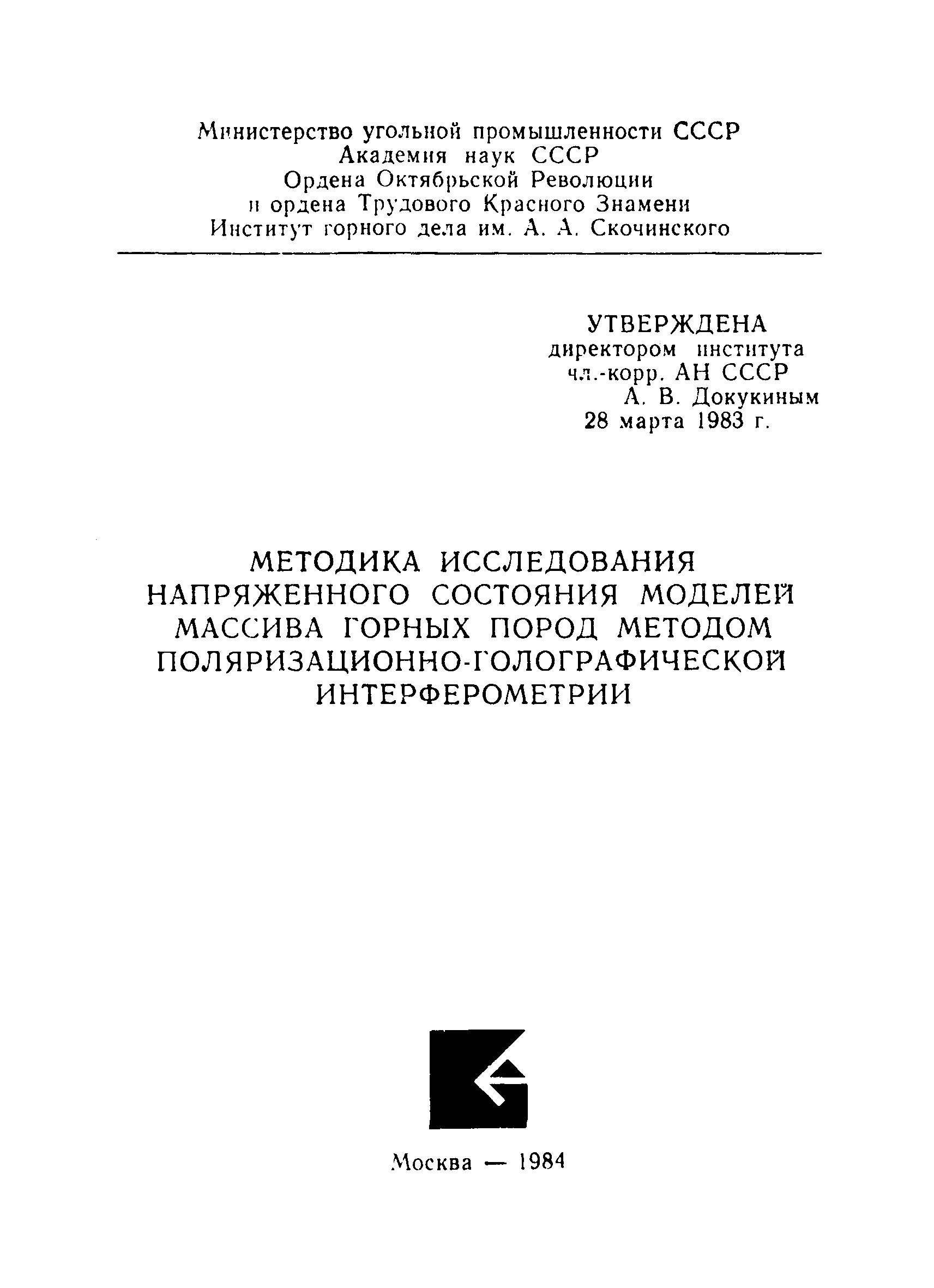 | Утверждён: | 28.03.1983 Институт горного дела им. А.А. Скочинского