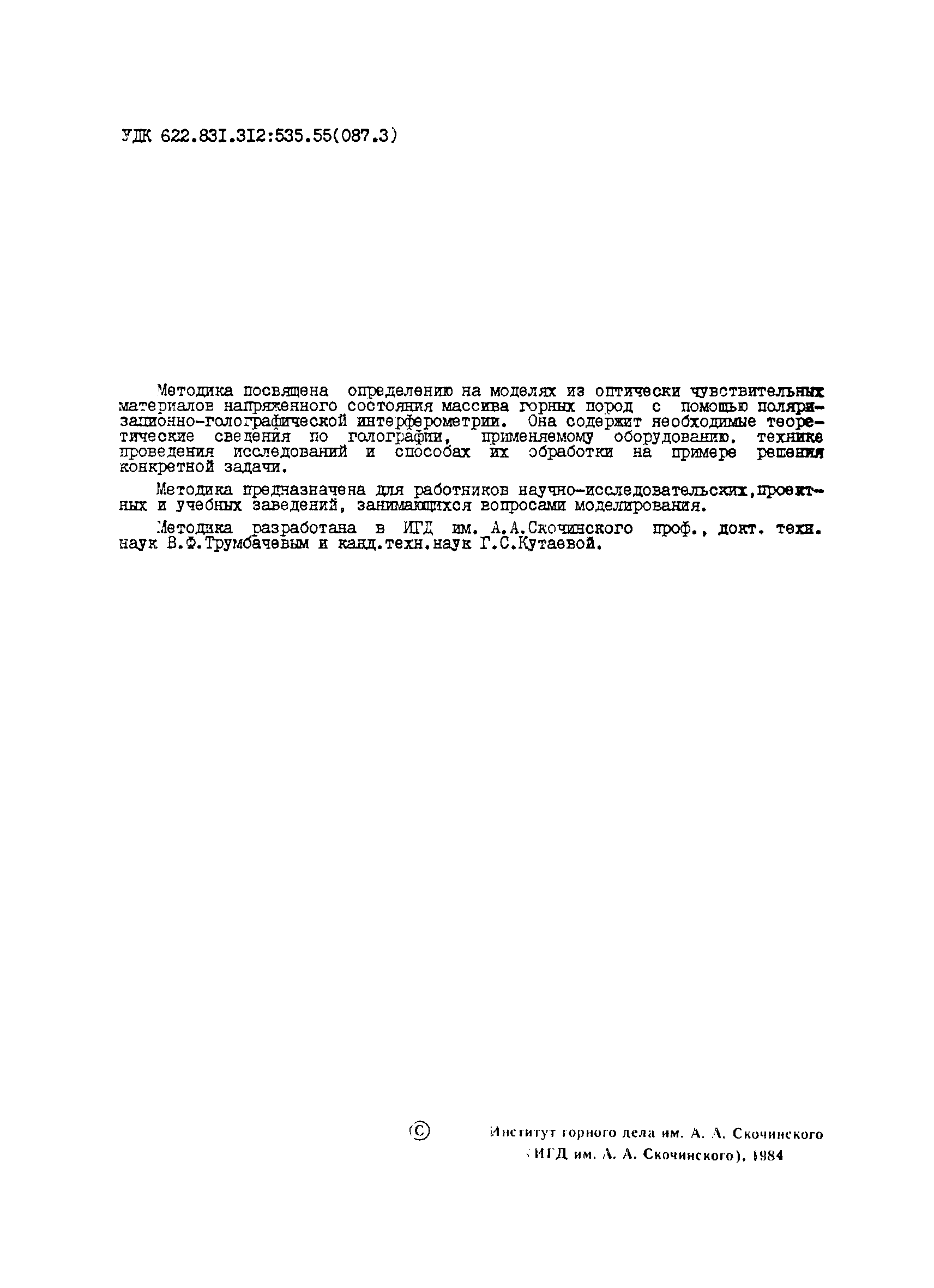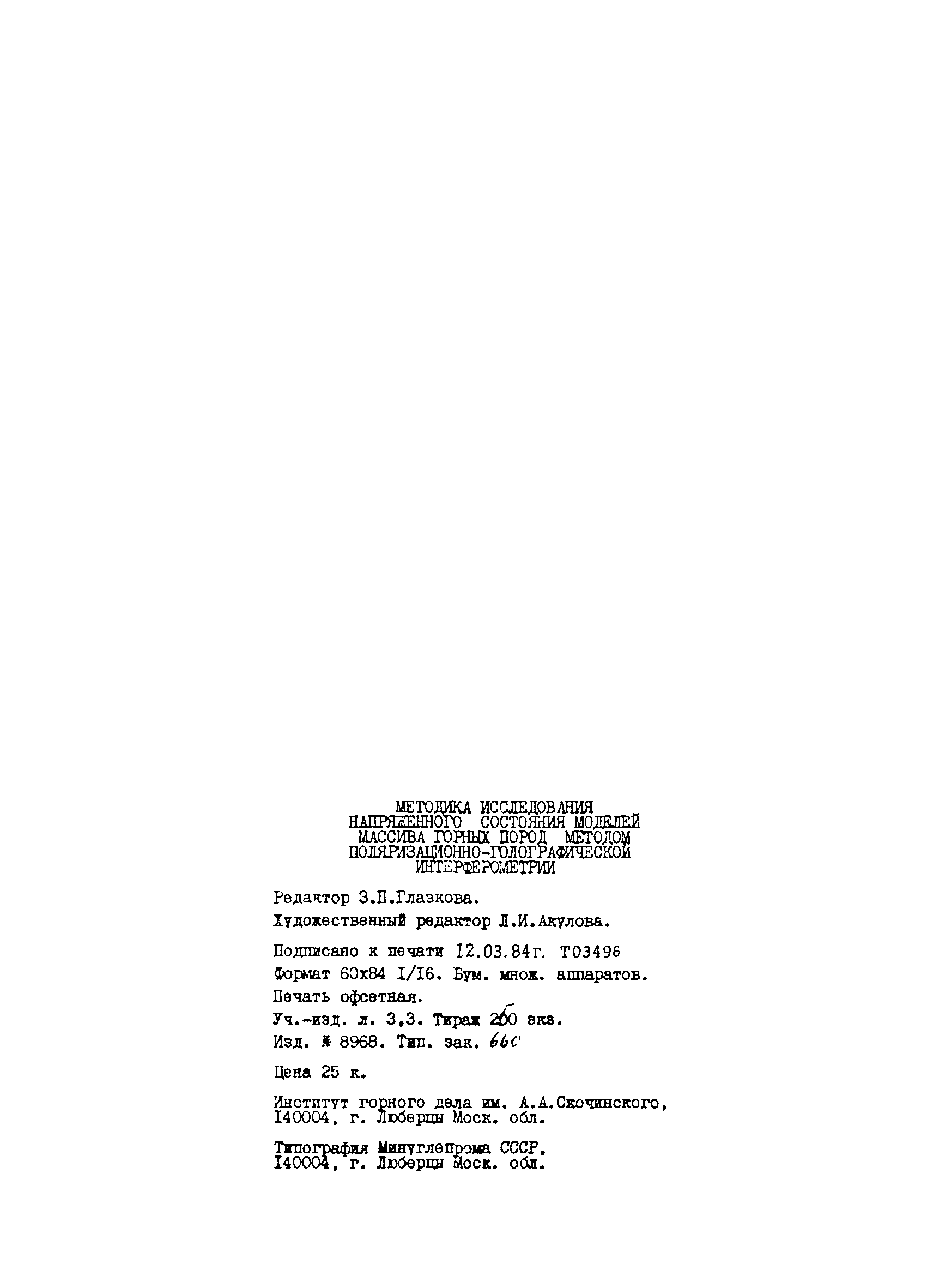 | Название рус.: | Методика исследования напряженного состояния моделей массива горных пород методом поляризационно-голографической интерферометрии |