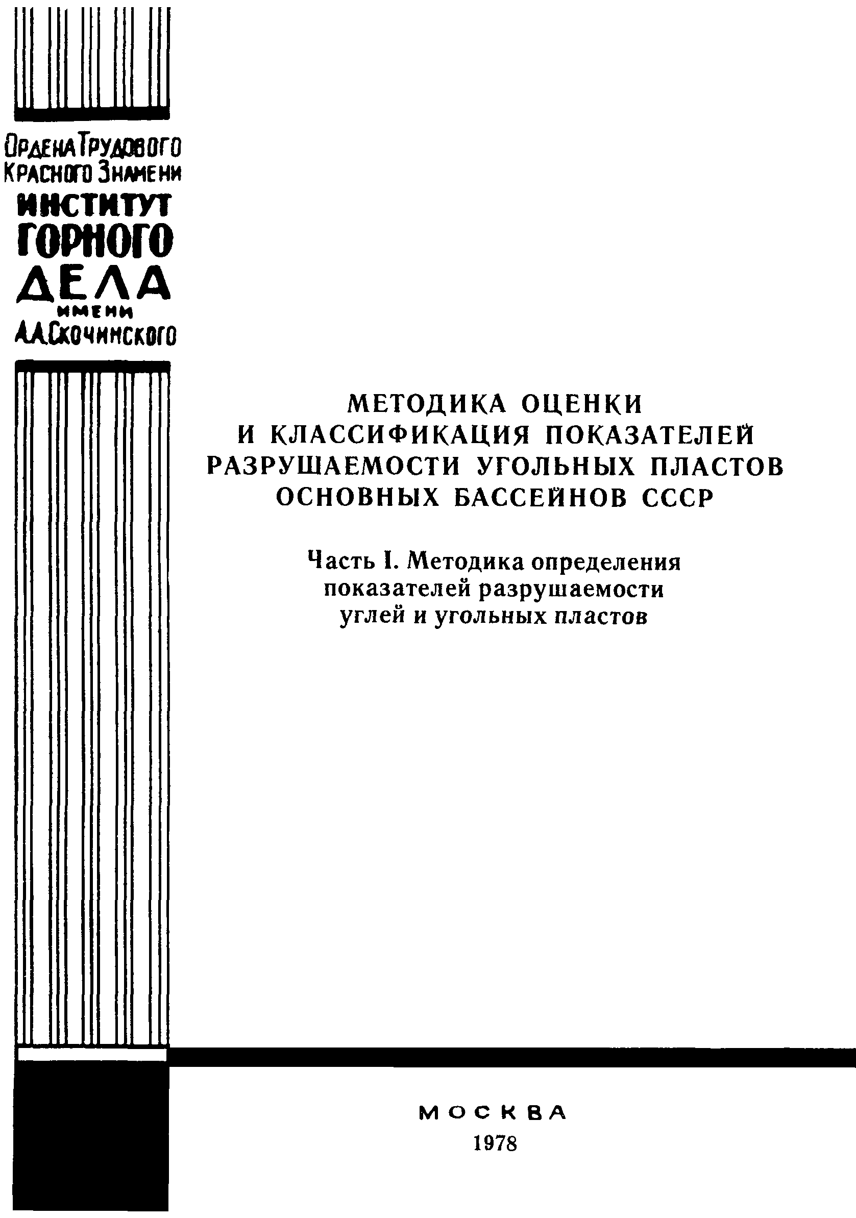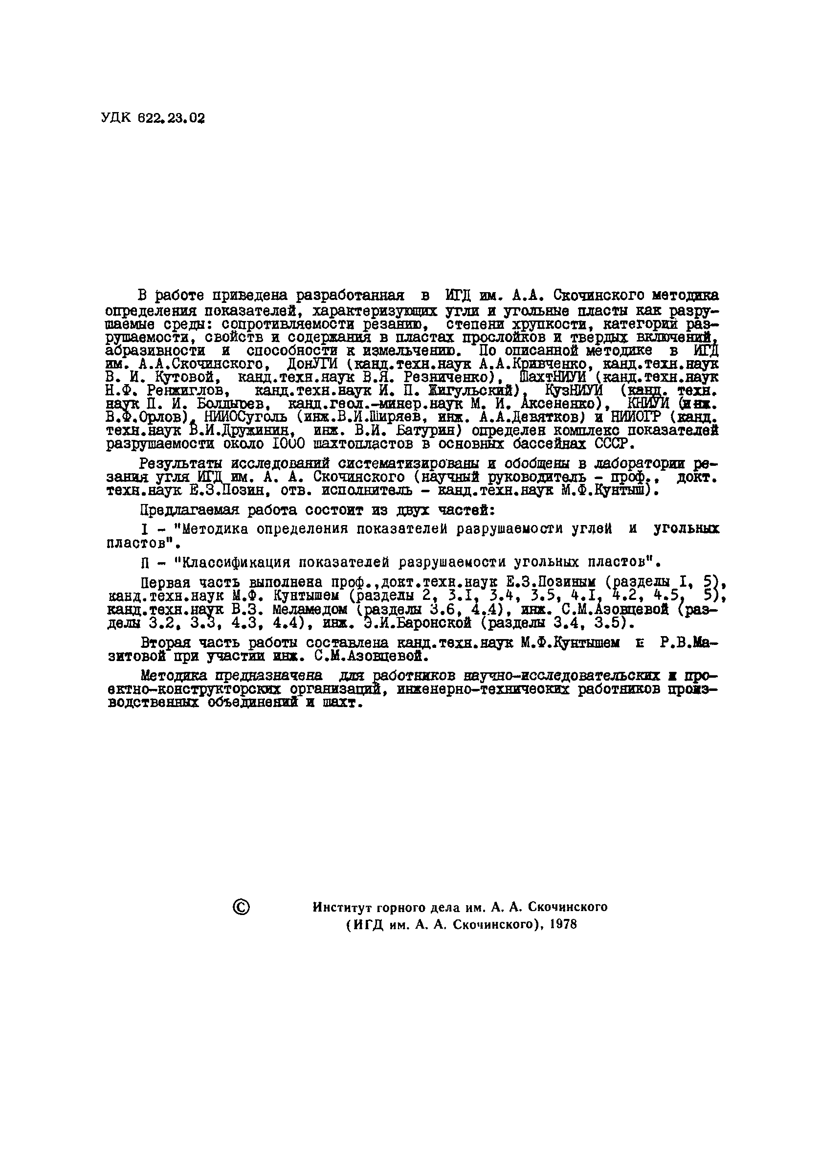 | Название рус.: | Методика оценки и классификация показателей разрушаемости угольных пластов основных бассейнов СССР. Часть 1. Методика определения показателей разрушаемости углей и угольных пластов |