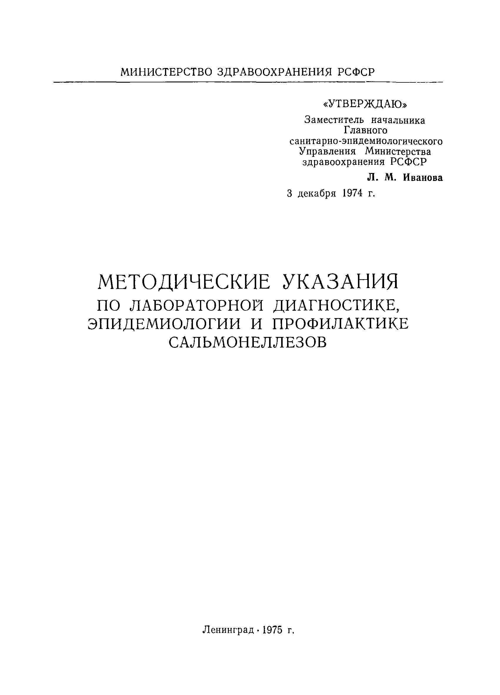 | | Утверждён: | 03.12.1974 Заместитель начальника Главного санитарно-эпидемиологического управления Министерства здравоохранения РСФСР