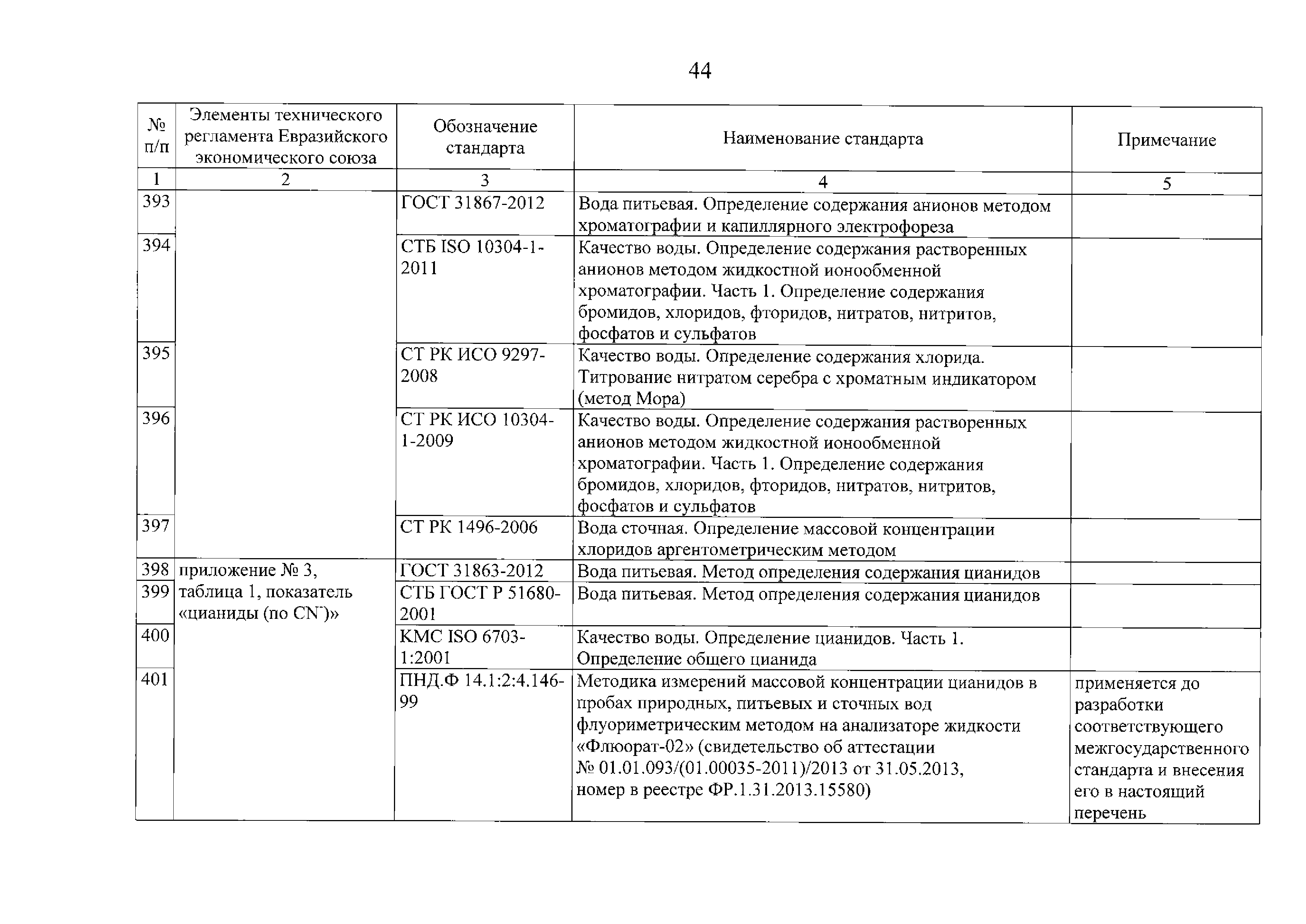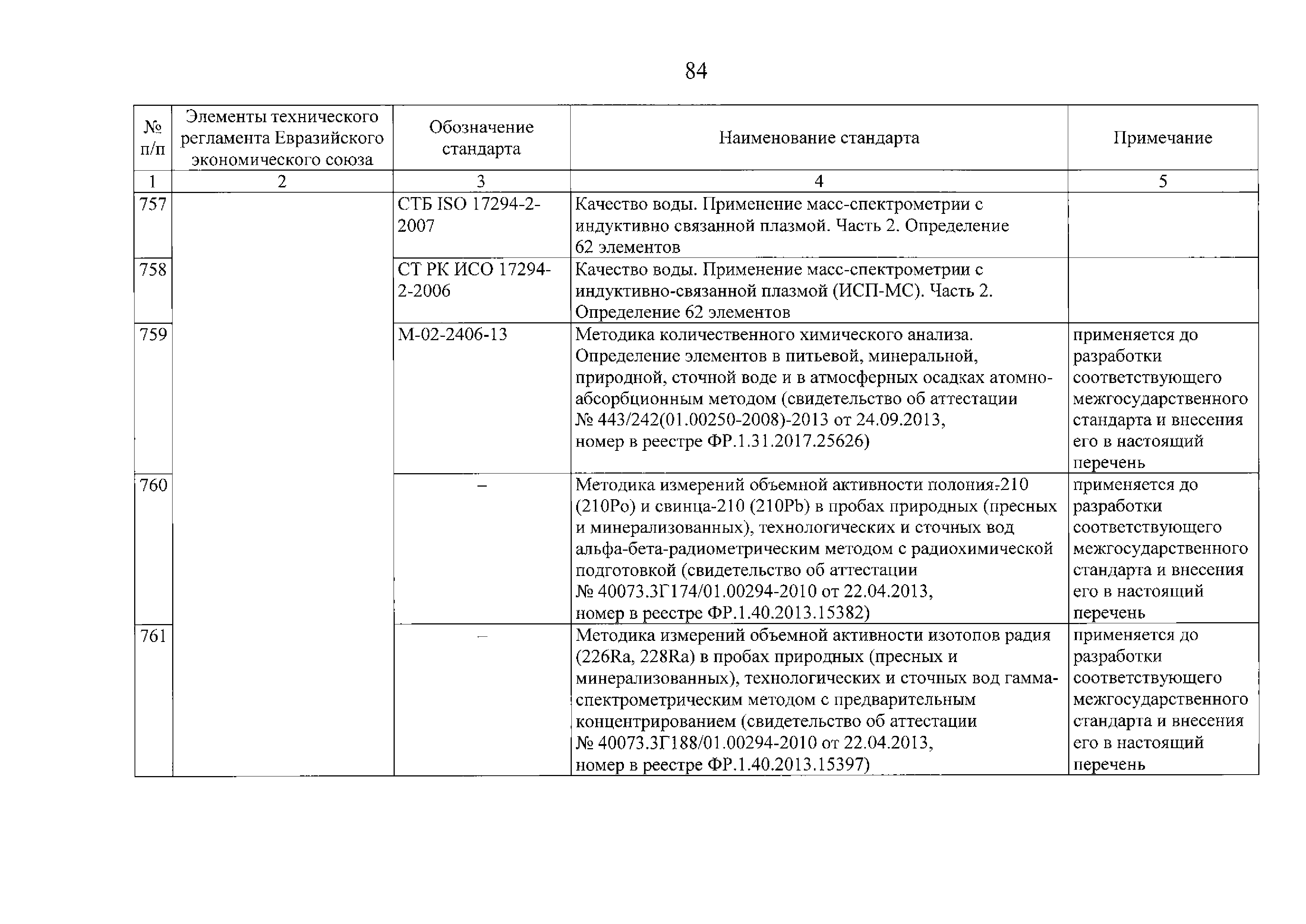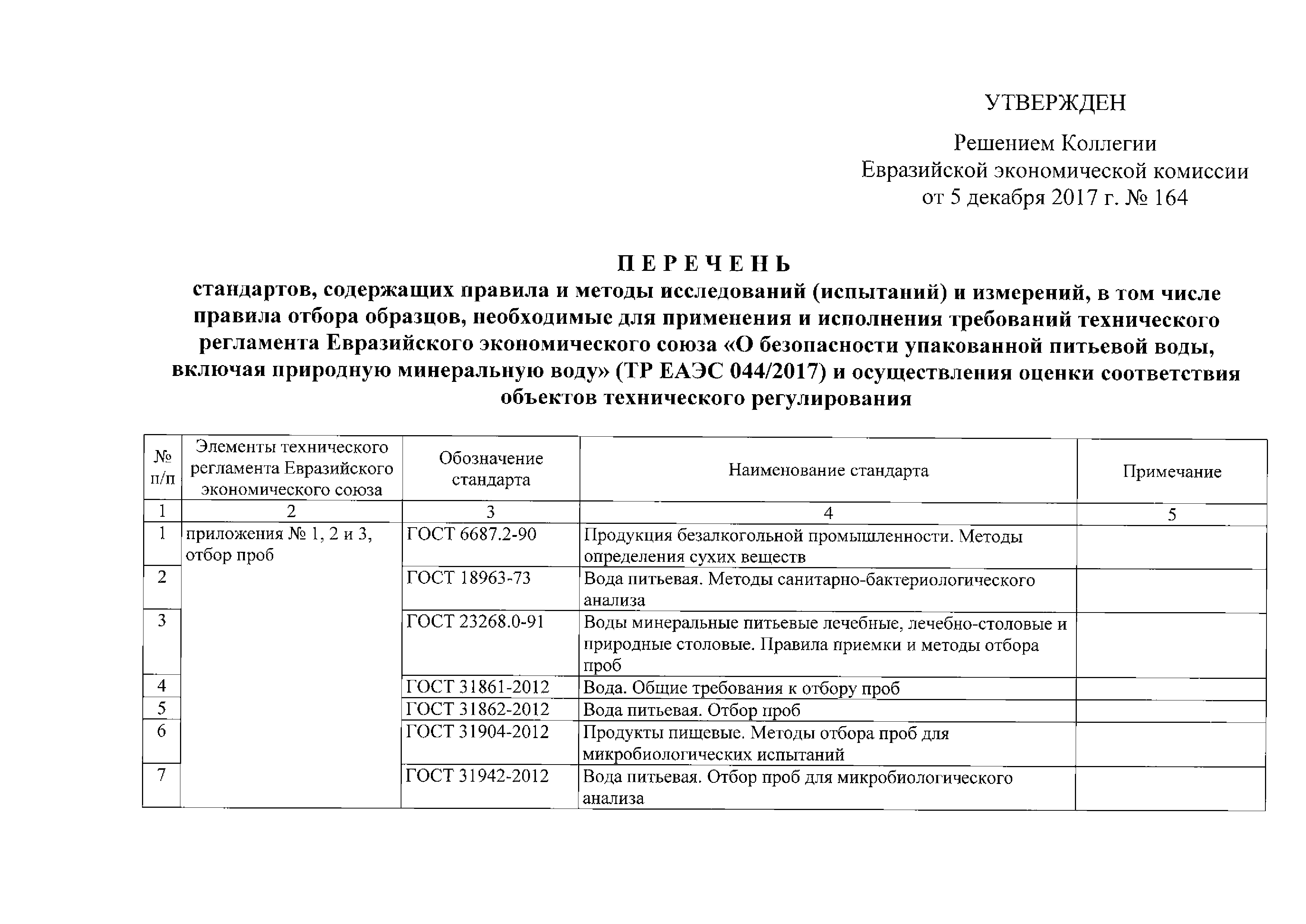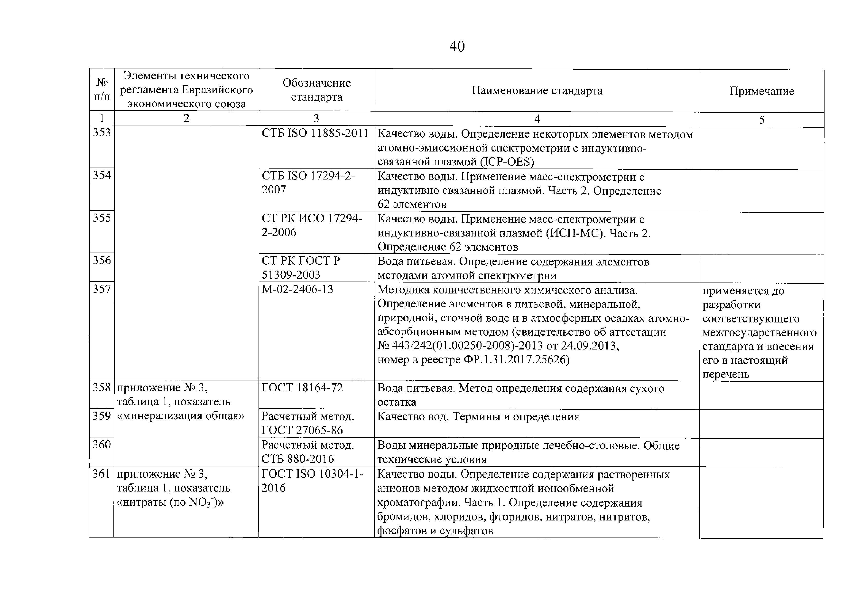 | Название рус.: | Перечень стандартов, содержащих правила и методы исследований (испытаний) и измерений, в том числе правила отбора образцов, необходимые для применения и исполнения требований технического регламента Евразийского экономического союза "О безопасности упакованной питьевой воды, включая природную минеральную воду" (ТР ЕАЭС 044/2017) и осуществления оценки соответствия объектов технического регулирования |