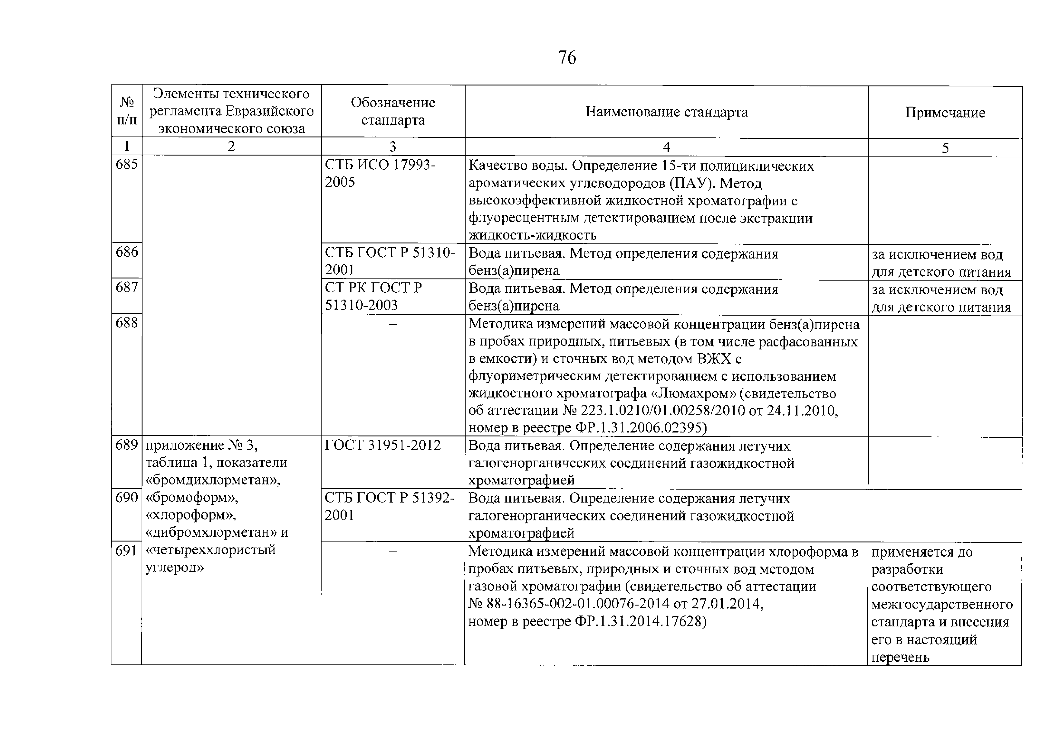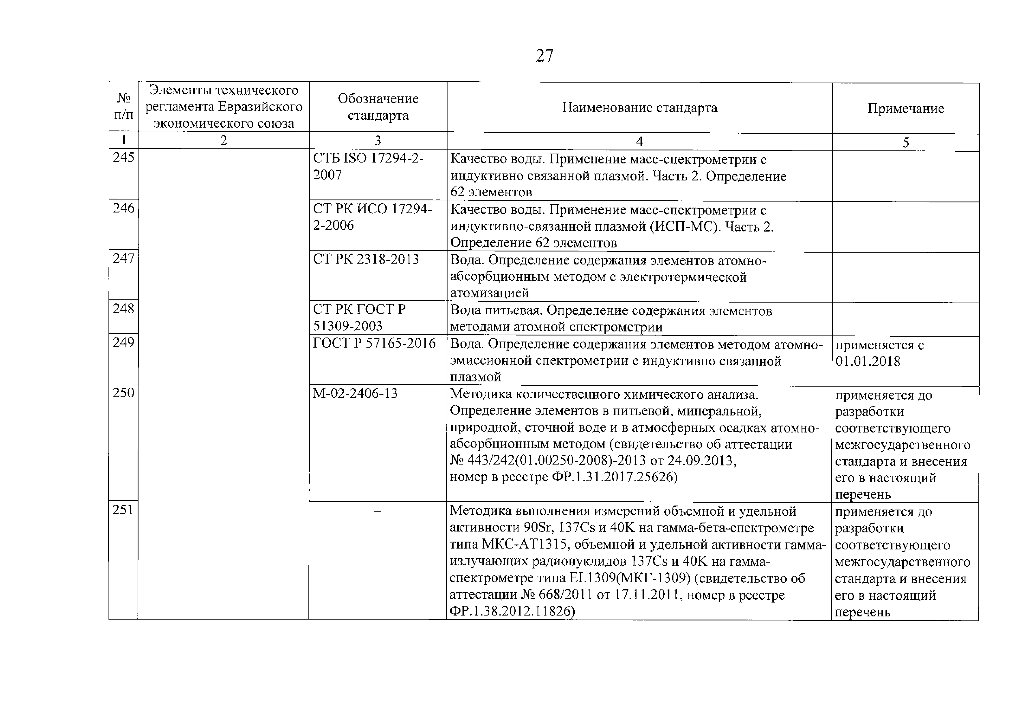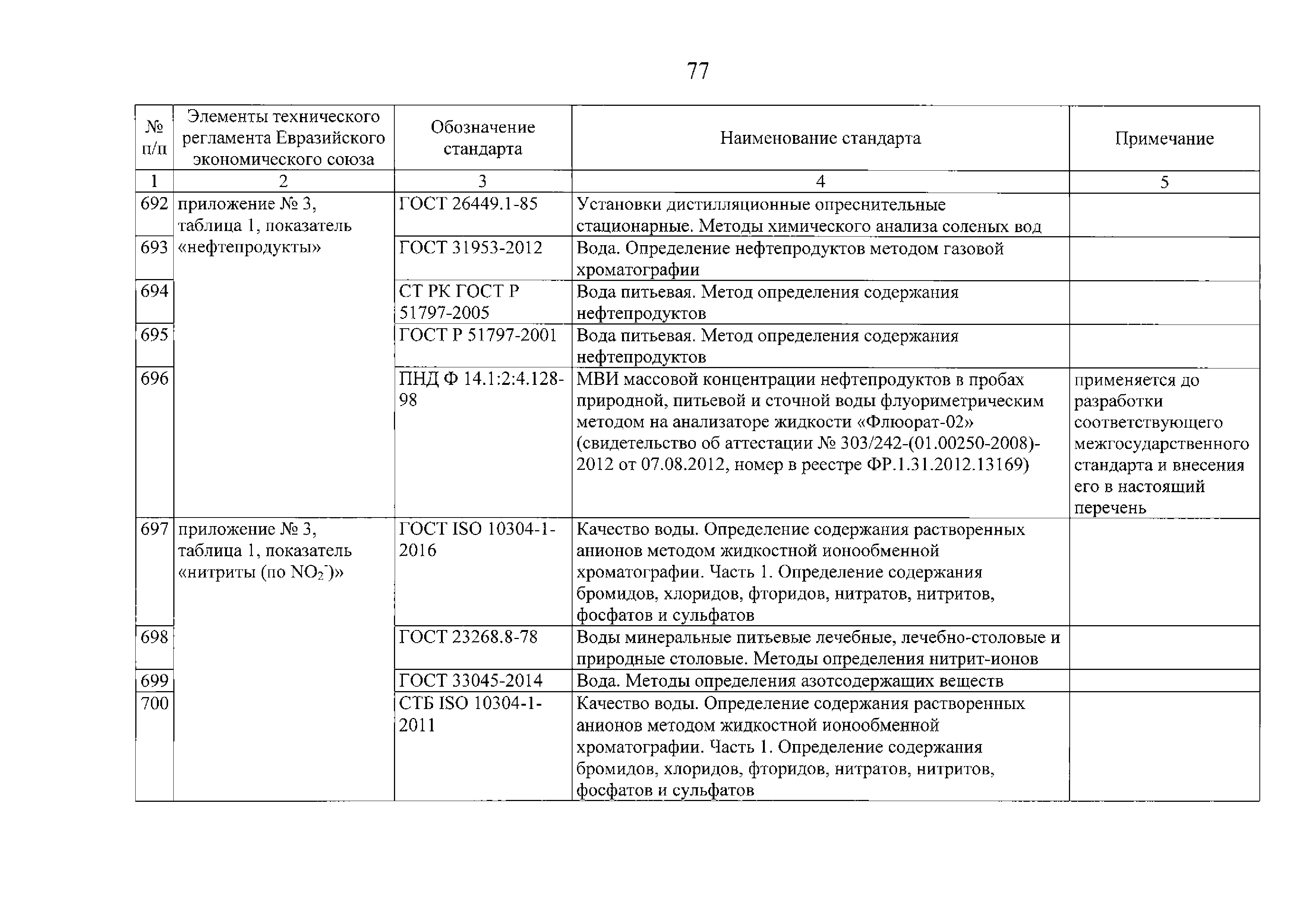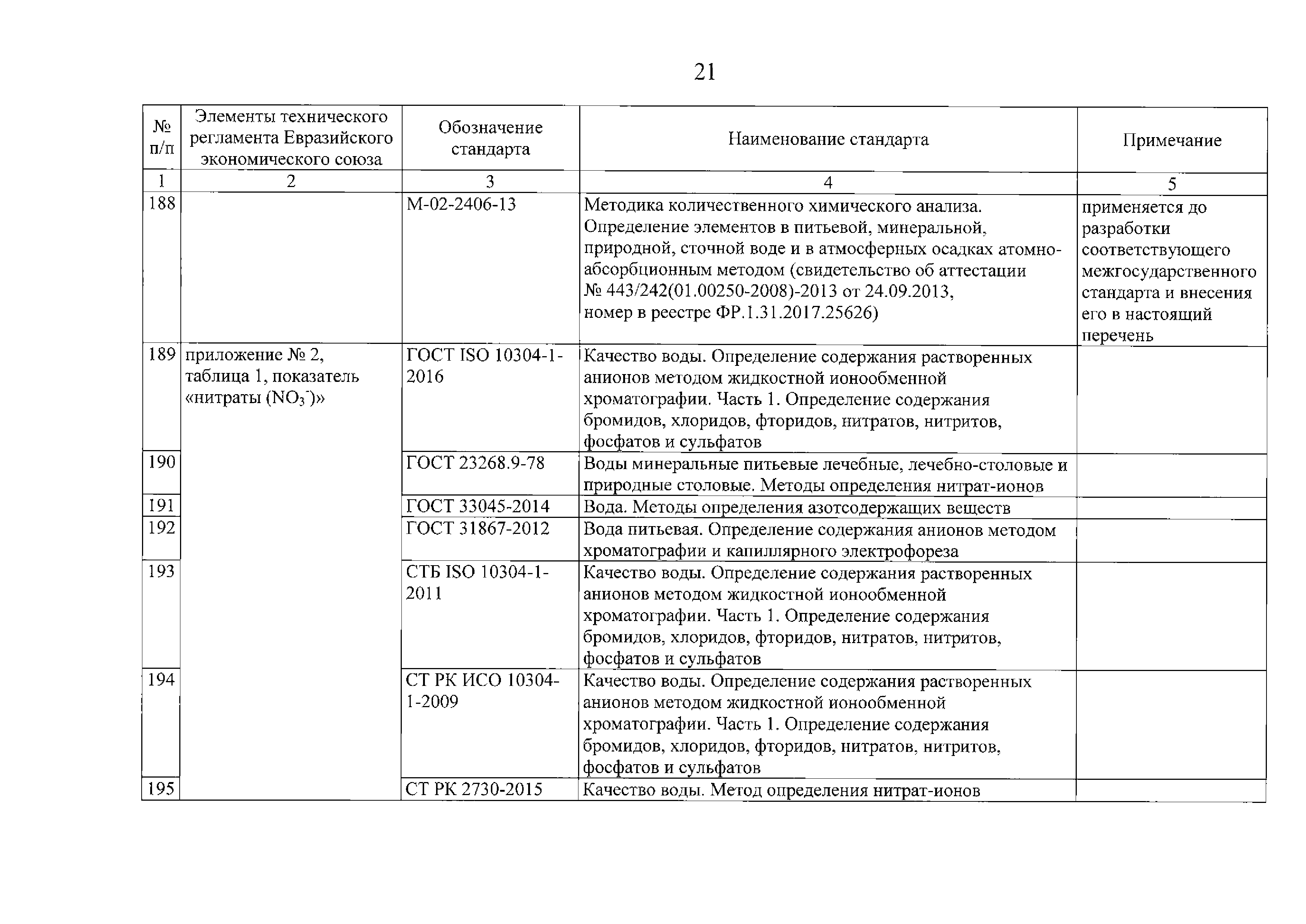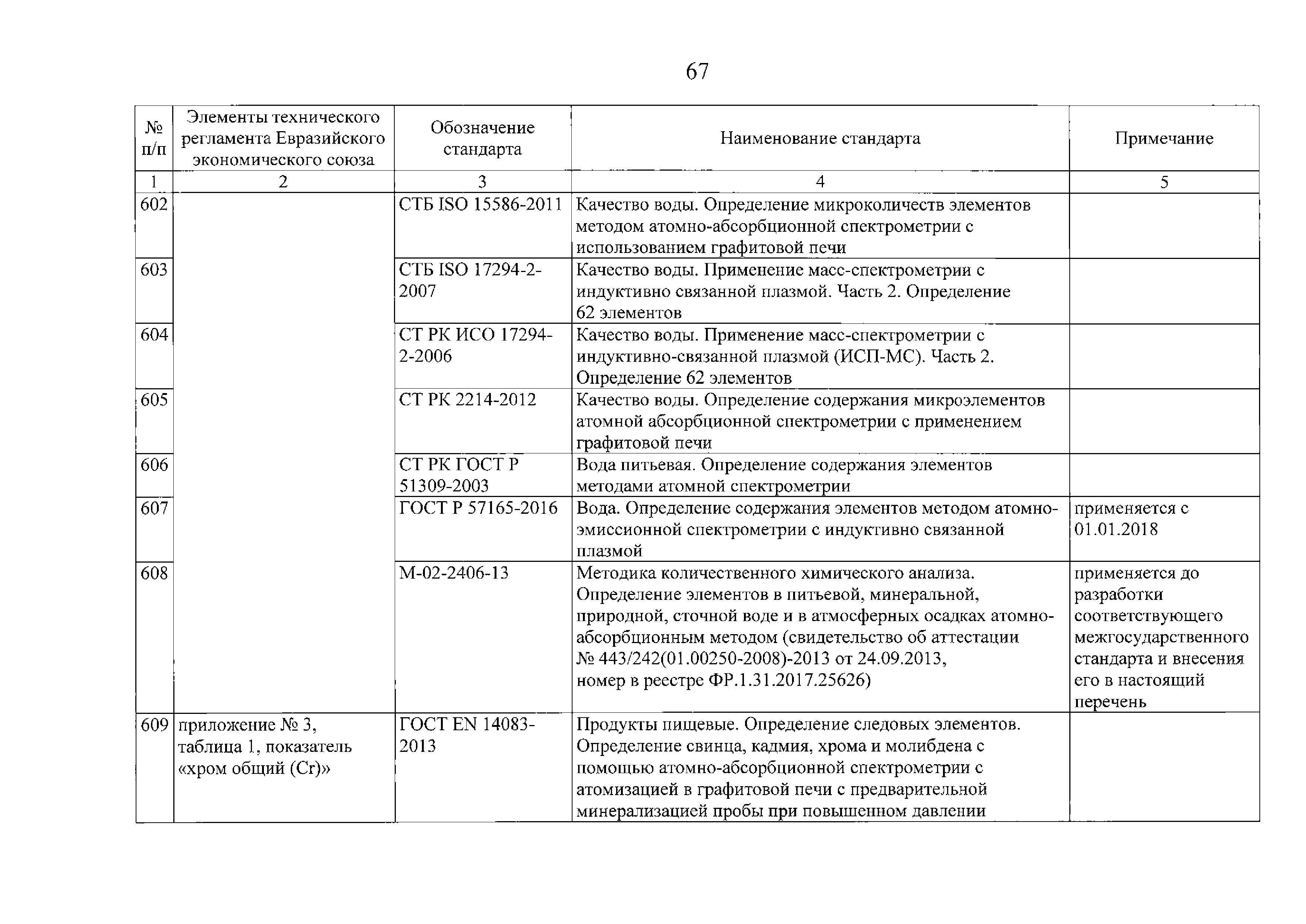 | Название рус.: | Перечень стандартов, содержащих правила и методы исследований (испытаний) и измерений, в том числе правила отбора образцов, необходимые для применения и исполнения требований технического регламента Евразийского экономического союза "О безопасности упакованной питьевой воды, включая природную минеральную воду" (ТР ЕАЭС 044/2017) и осуществления оценки соответствия объектов технического регулирования |