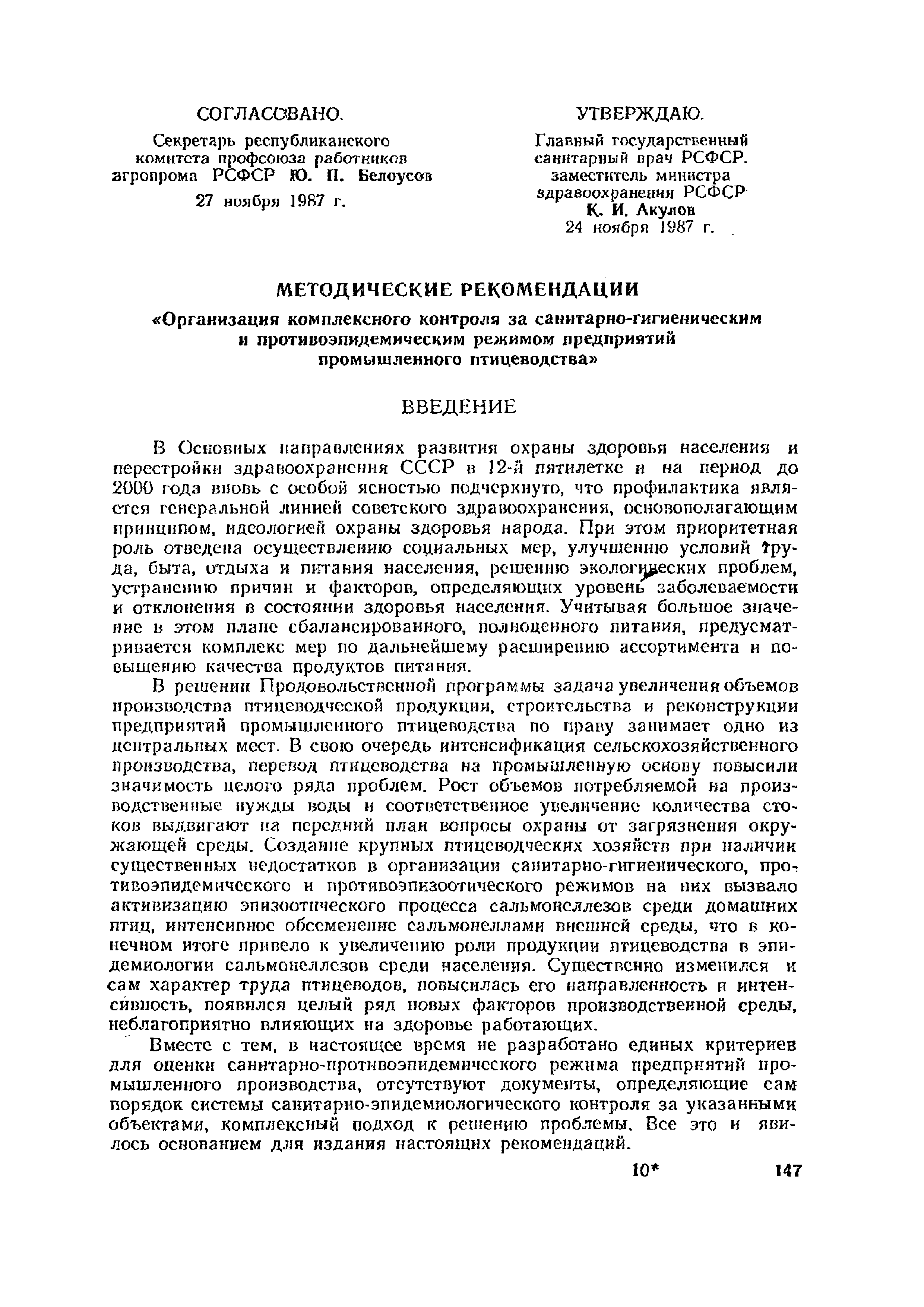 | Утверждён: | 24.11.1987 Главный государственный санитарный врач РСФСР |