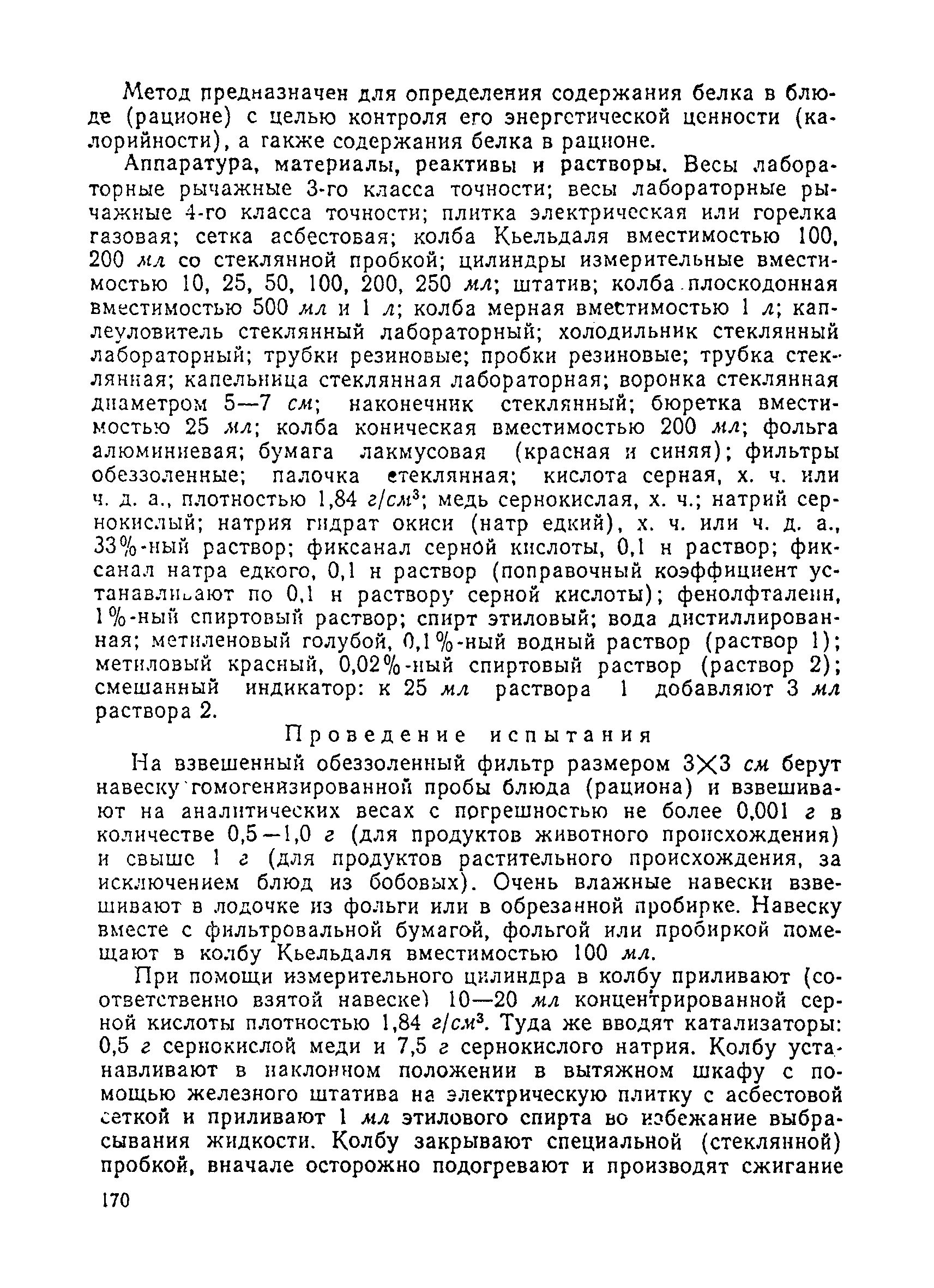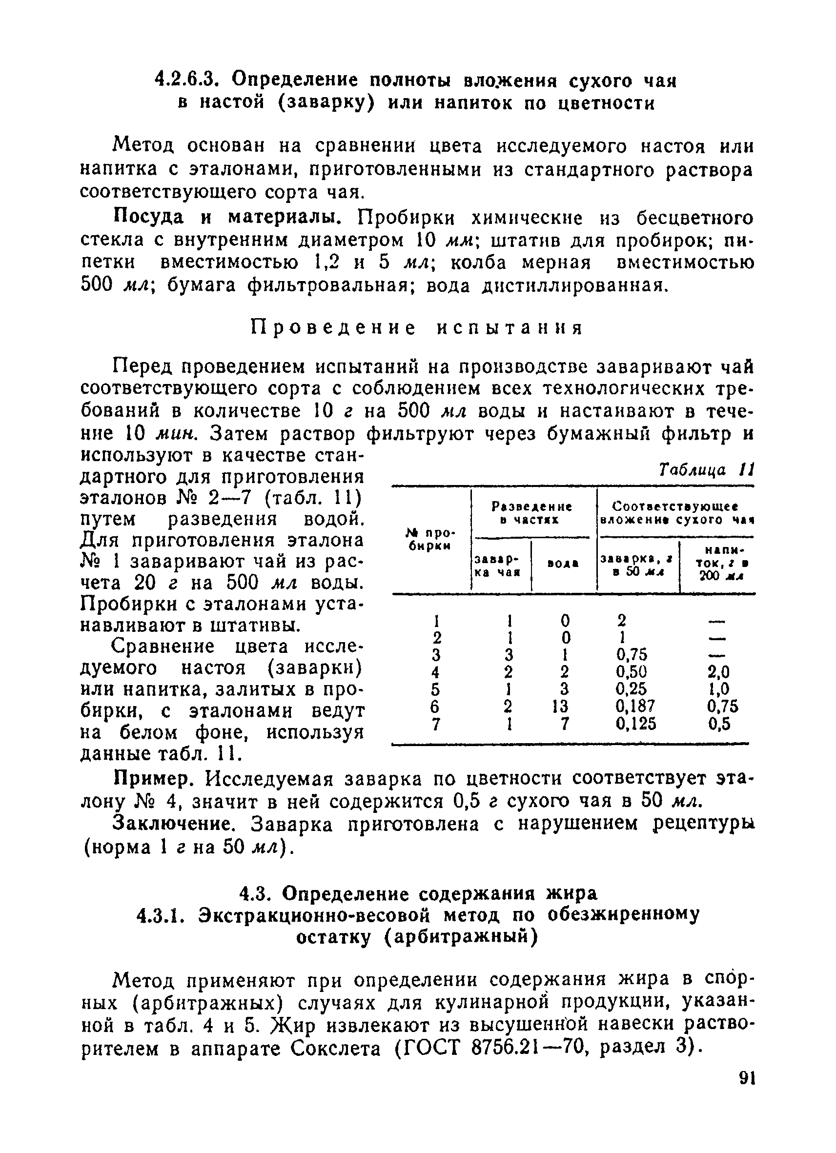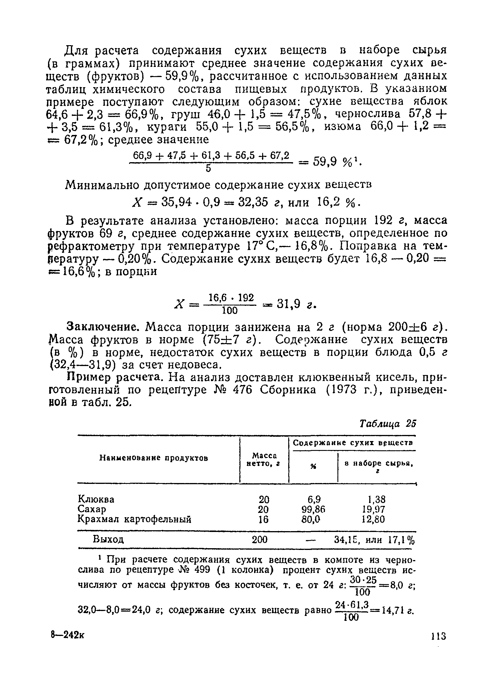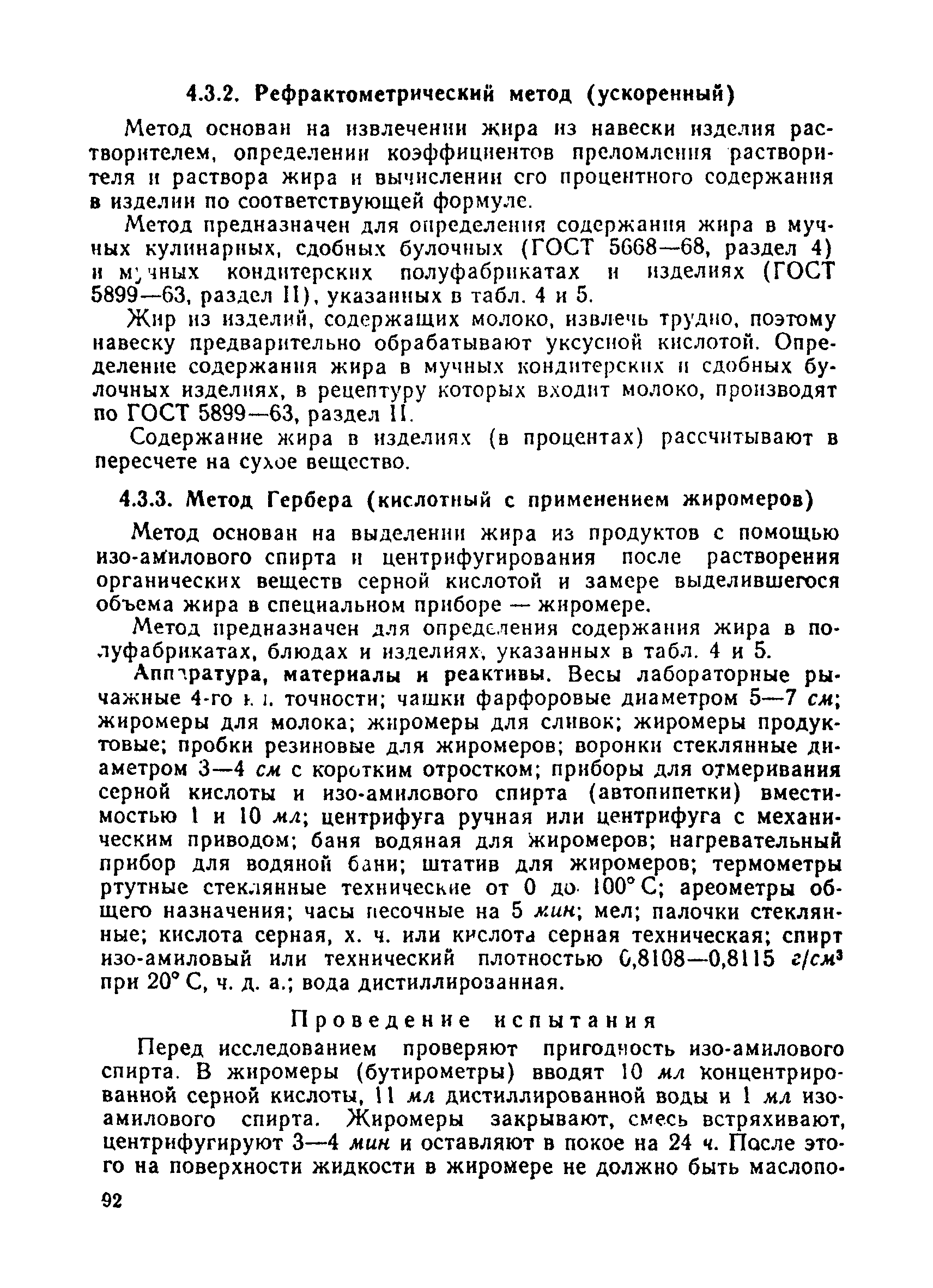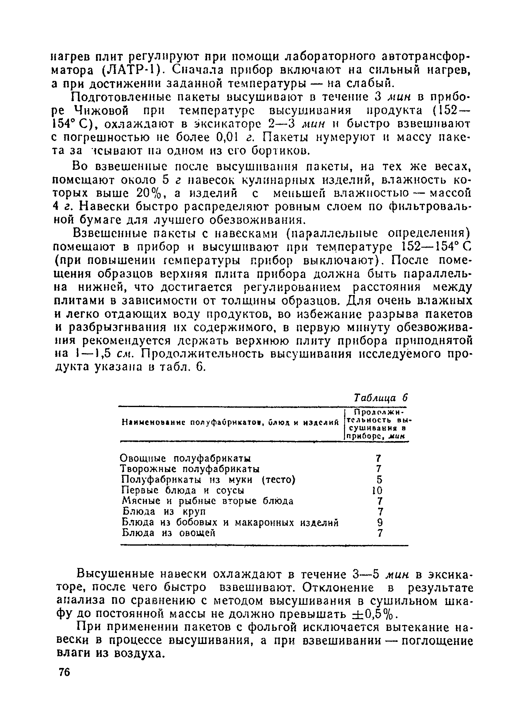 | Оглавление: | 1 Отбор проб 1.1 Основные положения по отбору проб стандартизованной продукции 1.2 Порядок отбора образцов для лабораторного анализа при обследовании предприятия 2 Подготовка проб для анализа 2.1 Взвешивание проб 2.2 Гомогенизация проб 2.3 Подготовка проб полуфабрикатов 2.4 Подготовка проб блюд и изделий 3 Основные физико-химические показатели качества сырья и кулинарной продукции 4 Методы испытаний полуфабрикатов, блюд и изделий 4.1 Общие указания 4.2 Определение содержания сухих веществ или влажности 4.2.1. Высушивание в сушильном шкафу до постоянной массы (арбитражный метод) 4.2.2. Высушивание в сушильном шкафу при температуре 130° С (ускоренный метод) 4.2.3. Высушивание в приборе К. Н. Чижовой (ускоренный метод) 4.2.4. Определение экстрактивных веществ в настое чая (заварке) или напитке 4.2.5. Рефрактометрический метод определения содержания сухих веществ 4.2.6. Определение полноты вложения сырья в горячие и холодные напитки (кофе и чай) 4.3 Определение содержания жира 4.3.1. Экстракционно-весовой метод по обезжиренному остатку (арбитражный) 4.3.2. Рефрактометрический метод (ускоренный) 4.3.3. Метод Гербера (кислоты с применением жиромеров) 4.3.4. Экстракционно-весовой метод определения жира (ускоренный) 4.4 Расчет содержания сухих веществ и жира по рецептурам блюд м изделий (с примерами расчетов) 4.5 Определение качества фритюрного жира 4.5.1. Оперативный производственный контроль качества фритюра 4.5.2. Лабораторный контроль качества фритюра 4.6 Определение содержания сахаров 4.6.1. Приготовление растворов редуцирующих сахаров 4.6.2. Перманганатный (арбитражный) метод 4.6.3. Йодометрический метод 4.6.4. Цианидный метод 4.6.5. Ускоренный цианидный метод определения содержания лактозы 4.6.6. Расчет содержания молока или наполнителей (по результатам анализа) 4.6.7. Рефрактометрические методы (ускоренные) 4.7. Расчет рецептур полуфабрикатов и изделий по физико-химическим показателям 4.7.1. Расчет влажности теста, содержания сахара и жира в сдобных булочных, мучных кулинарных н кондитерских изделиях, мучных и отделочных полуфабрикатах для кондитерских изделий 4.7.2. Расчет содержания хлеба в полуфабрикатах и кулинарных изделиях из рубленого мяса по рецептуре (с учетом сухарной или пшеничной панировочной муки) 4.7.3. Расчет содержания муки и сахара в полуфабрикатах и изделиях из творога 4.7.4. Методика составления и расчета рецептур алкогольных коктейлей 4.7.5. Расчет содержания этилового спирта в сиропе для промочки кондитерских полуфабрикатов 4.8. Определение содержания белков 4.8.1. Метод Кьельдаля (арбитражный) 4.8.2. Метод Джермилло в модификации В. А. Бабина и Н.Н. Мусерского (ускоренный) |
