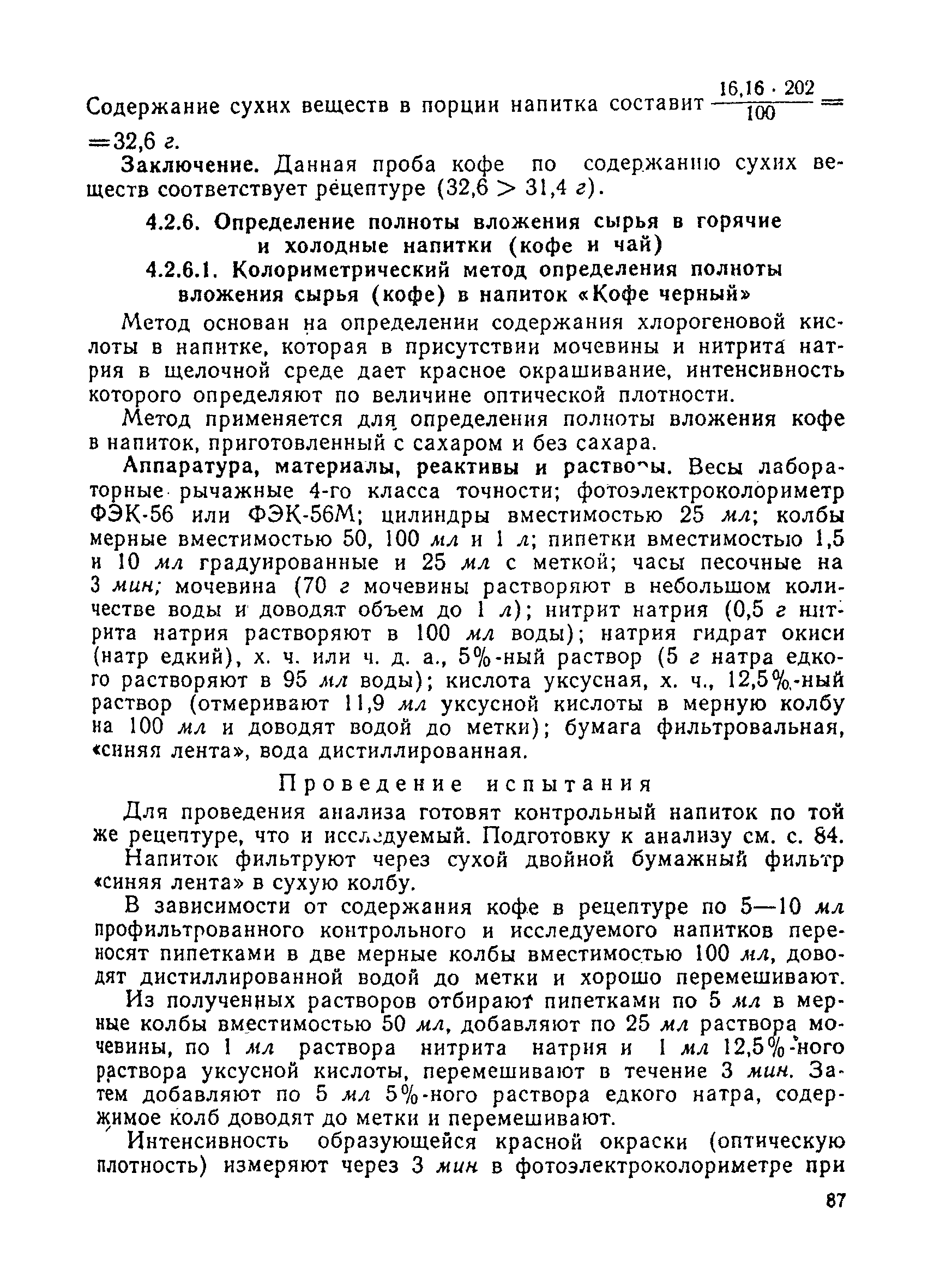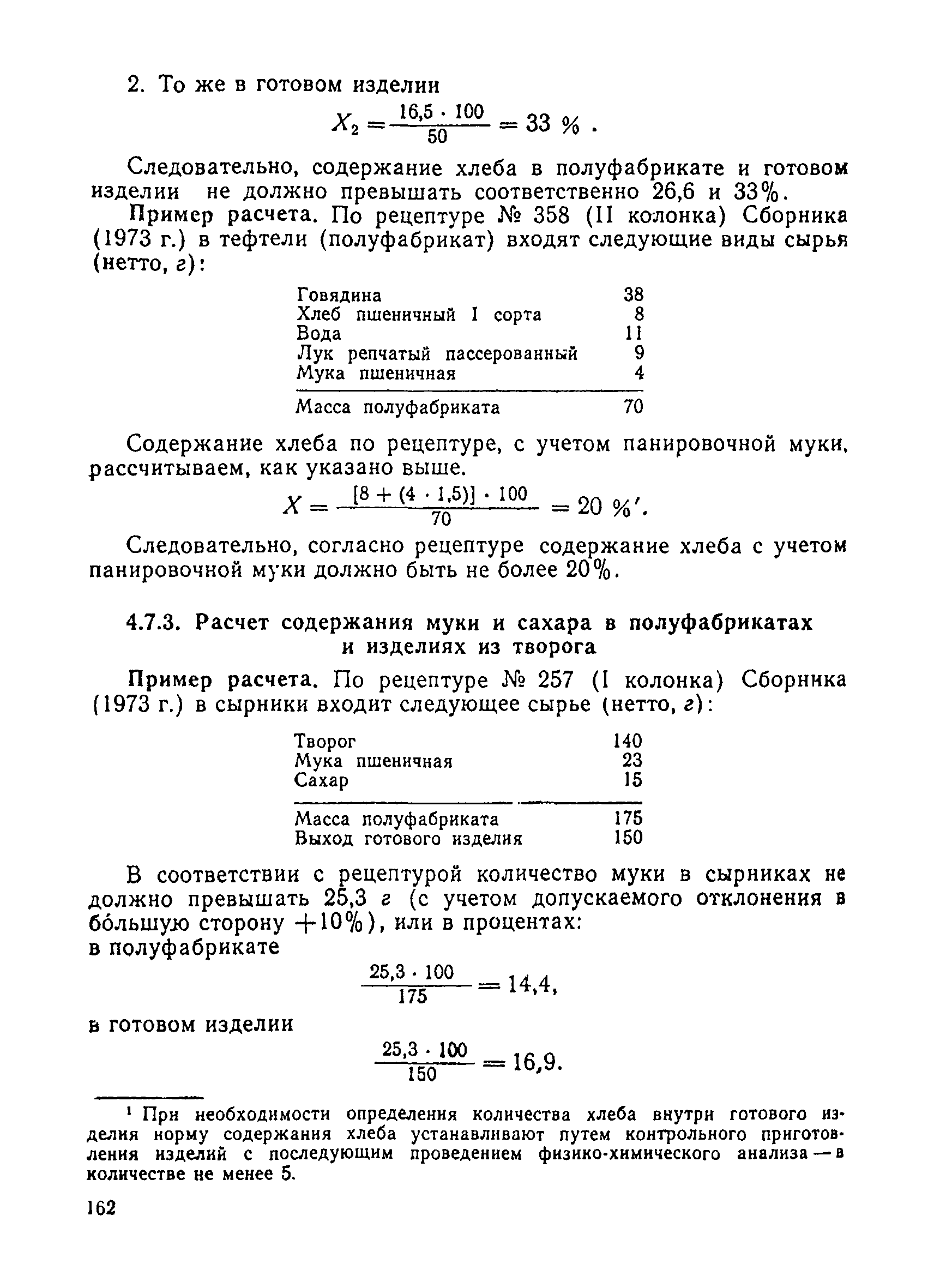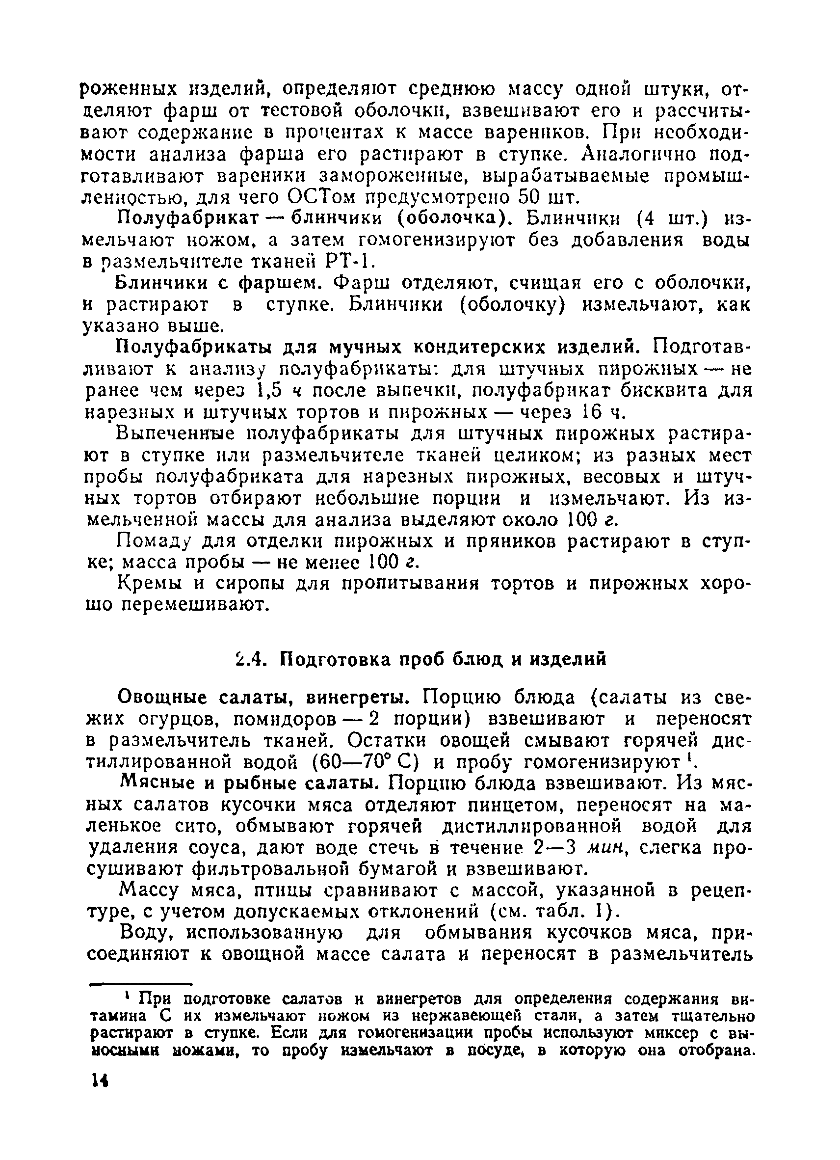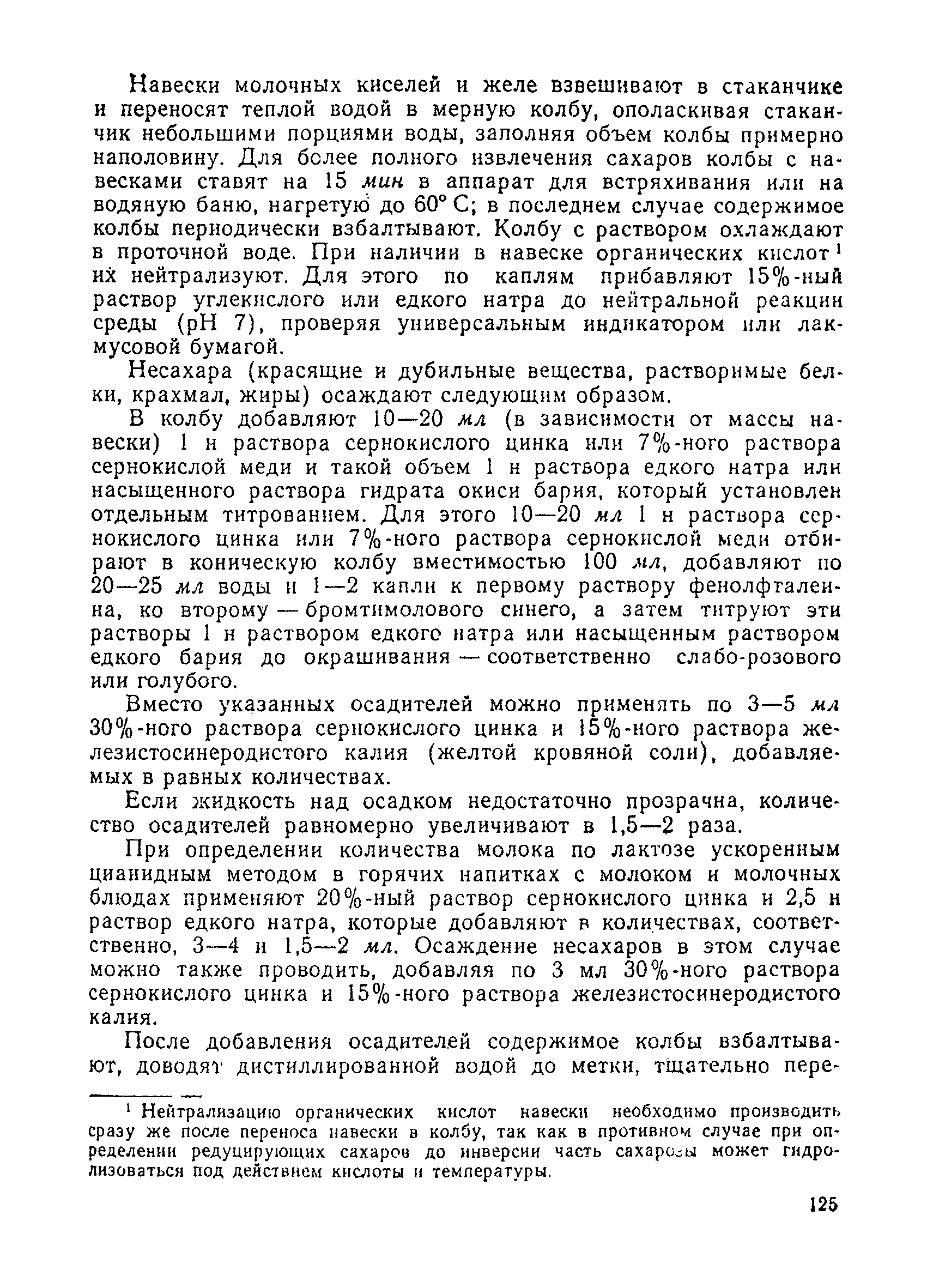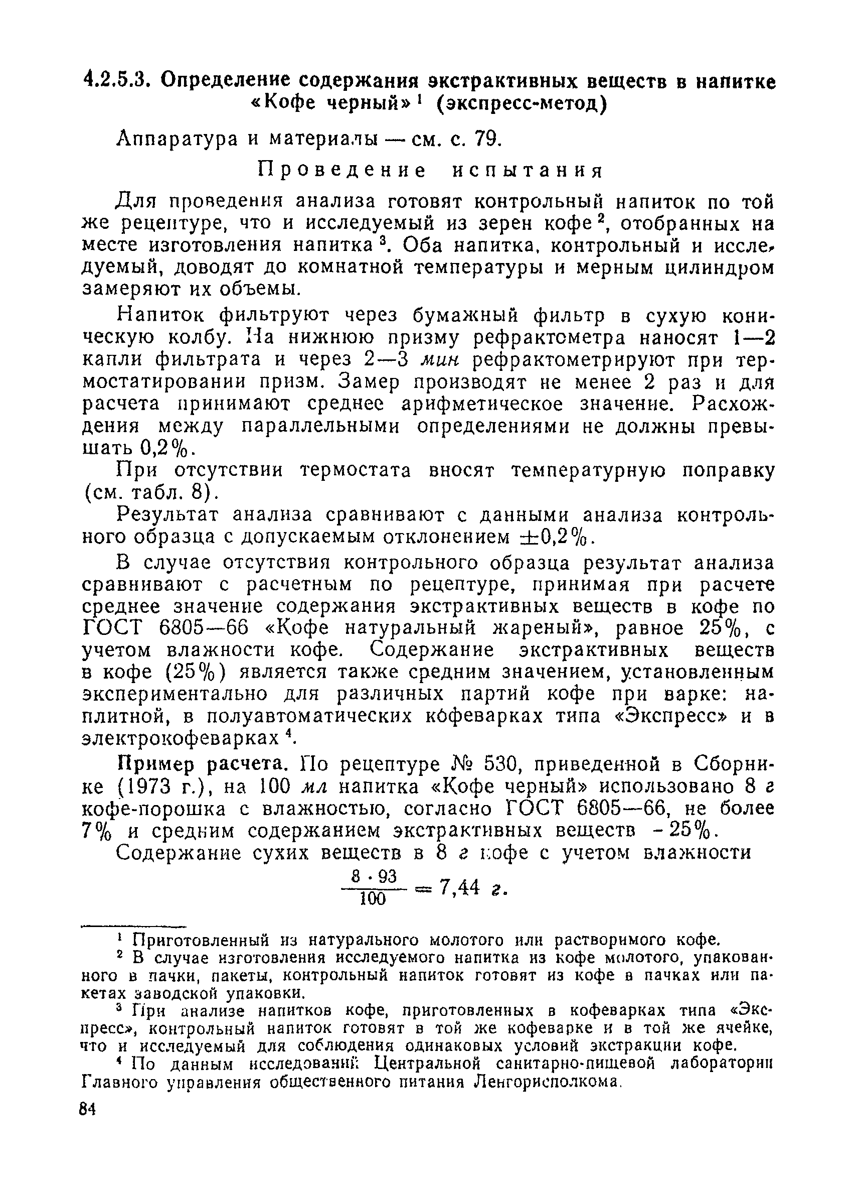 | Оглавление: | 1 Отбор проб 1.1 Основные положения по отбору проб стандартизованной продукции 1.2 Порядок отбора образцов для лабораторного анализа при обследовании предприятия 2 Подготовка проб для анализа 2.1 Взвешивание проб 2.2 Гомогенизация проб 2.3 Подготовка проб полуфабрикатов 2.4 Подготовка проб блюд и изделий 3 Основные физико-химические показатели качества сырья и кулинарной продукции 4 Методы испытаний полуфабрикатов, блюд и изделий 4.1 Общие указания 4.2 Определение содержания сухих веществ или влажности 4.2.1. Высушивание в сушильном шкафу до постоянной массы (арбитражный метод) 4.2.2. Высушивание в сушильном шкафу при температуре 130° С (ускоренный метод) 4.2.3. Высушивание в приборе К. Н. Чижовой (ускоренный метод) 4.2.4. Определение экстрактивных веществ в настое чая (заварке) или напитке 4.2.5. Рефрактометрический метод определения содержания сухих веществ 4.2.6. Определение полноты вложения сырья в горячие и холодные напитки (кофе и чай) 4.3 Определение содержания жира 4.3.1. Экстракционно-весовой метод по обезжиренному остатку (арбитражный) 4.3.2. Рефрактометрический метод (ускоренный) 4.3.3. Метод Гербера (кислоты с применением жиромеров) 4.3.4. Экстракционно-весовой метод определения жира (ускоренный) 4.4 Расчет содержания сухих веществ и жира по рецептурам блюд м изделий (с примерами расчетов) 4.5 Определение качества фритюрного жира 4.5.1. Оперативный производственный контроль качества фритюра 4.5.2. Лабораторный контроль качества фритюра 4.6 Определение содержания сахаров 4.6.1. Приготовление растворов редуцирующих сахаров 4.6.2. Перманганатный (арбитражный) метод 4.6.3. Йодометрический метод 4.6.4. Цианидный метод 4.6.5. Ускоренный цианидный метод определения содержания лактозы 4.6.6. Расчет содержания молока или наполнителей (по результатам анализа) 4.6.7. Рефрактометрические методы (ускоренные) 4.7. Расчет рецептур полуфабрикатов и изделий по физико-химическим показателям 4.7.1. Расчет влажности теста, содержания сахара и жира в сдобных булочных, мучных кулинарных н кондитерских изделиях, мучных и отделочных полуфабрикатах для кондитерских изделий 4.7.2. Расчет содержания хлеба в полуфабрикатах и кулинарных изделиях из рубленого мяса по рецептуре (с учетом сухарной или пшеничной панировочной муки) 4.7.3. Расчет содержания муки и сахара в полуфабрикатах и изделиях из творога 4.7.4. Методика составления и расчета рецептур алкогольных коктейлей 4.7.5. Расчет содержания этилового спирта в сиропе для промочки кондитерских полуфабрикатов 4.8. Определение содержания белков 4.8.1. Метод Кьельдаля (арбитражный) 4.8.2. Метод Джермилло в модификации В. А. Бабина и Н.Н. Мусерского (ускоренный) |