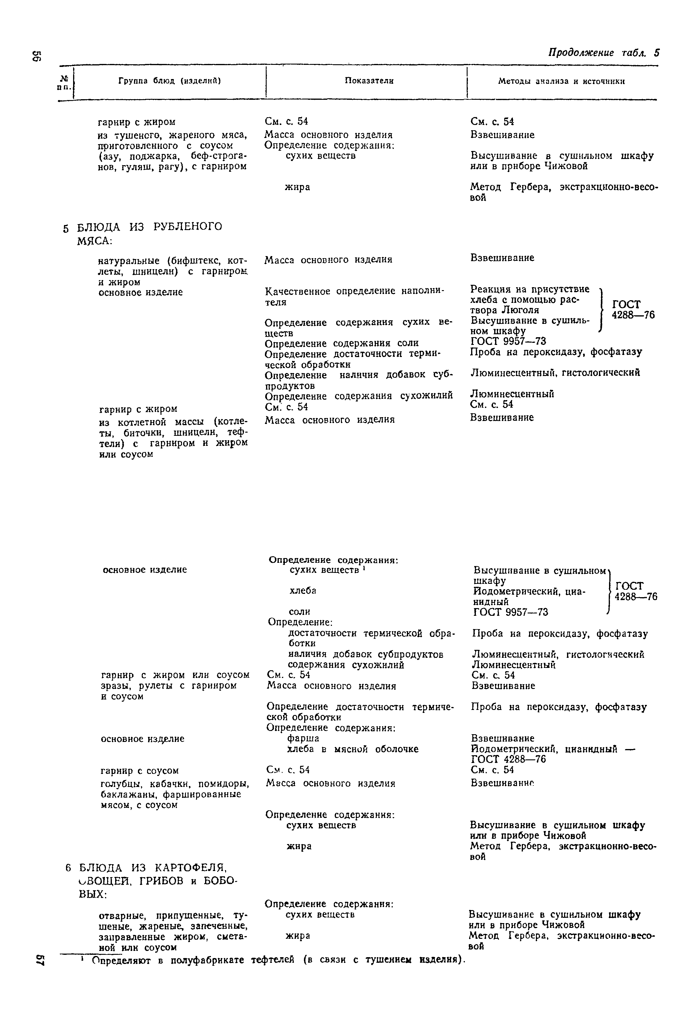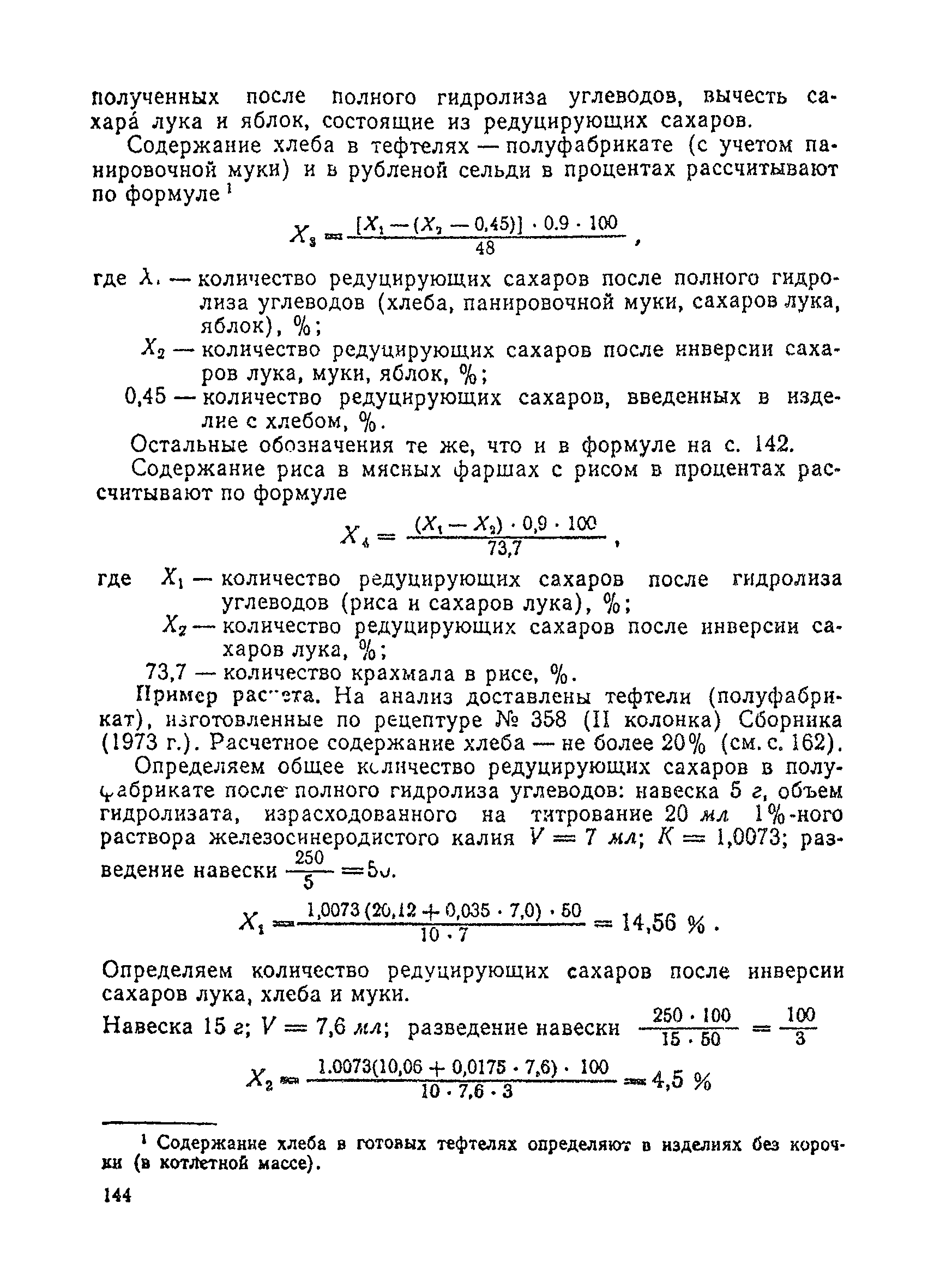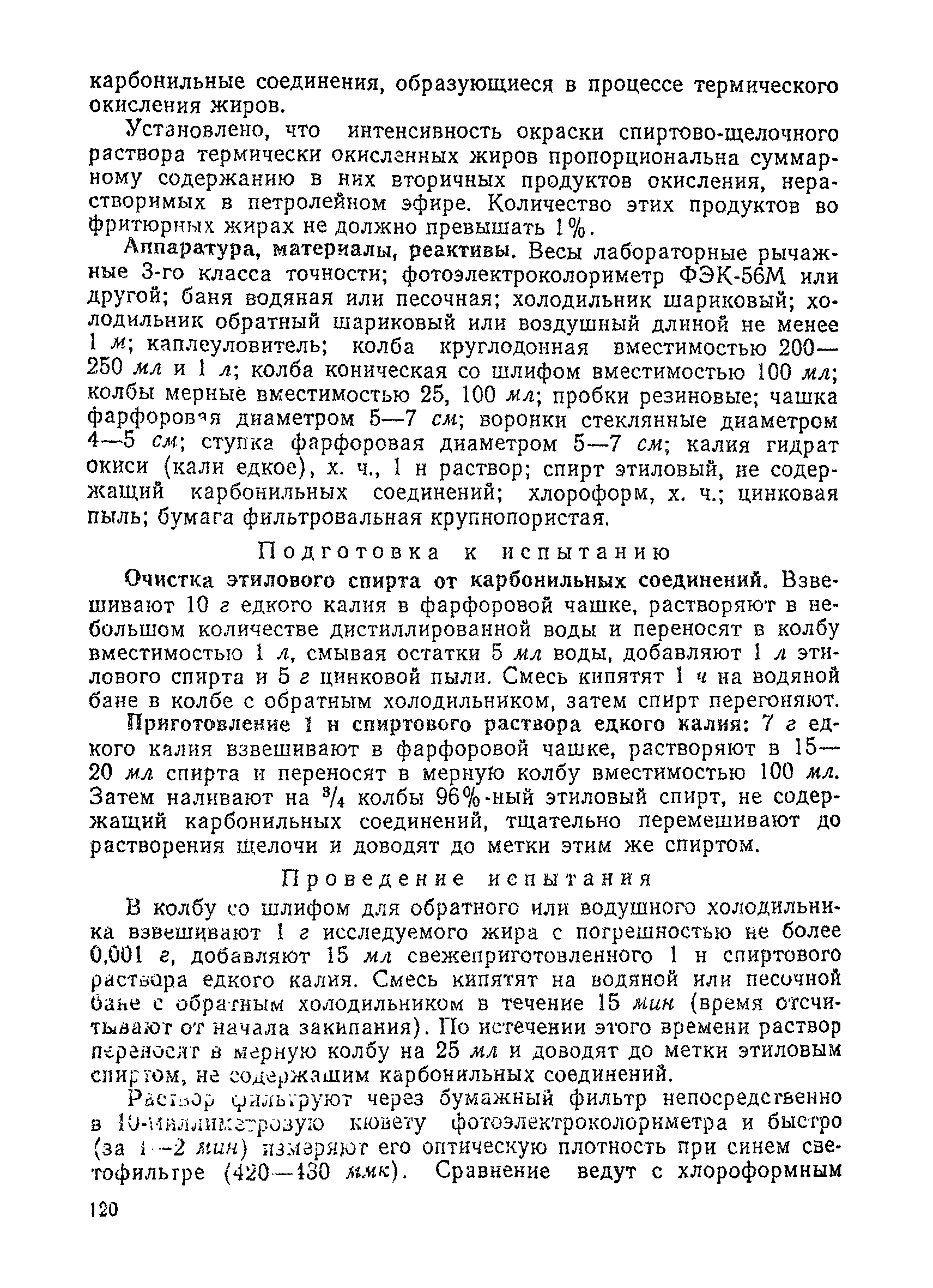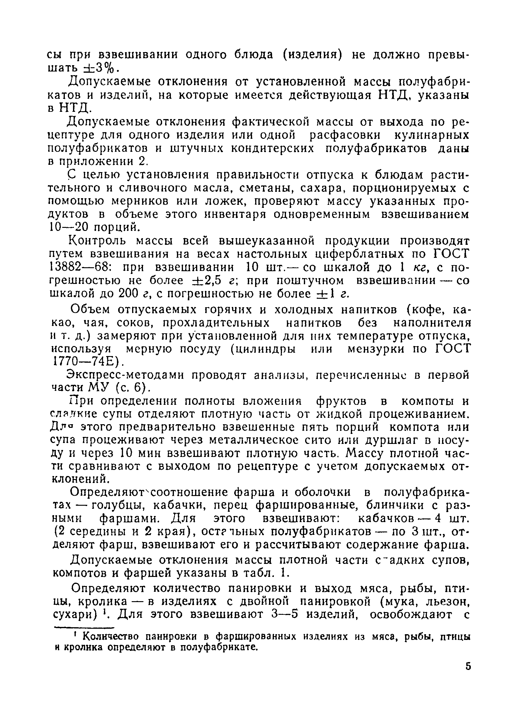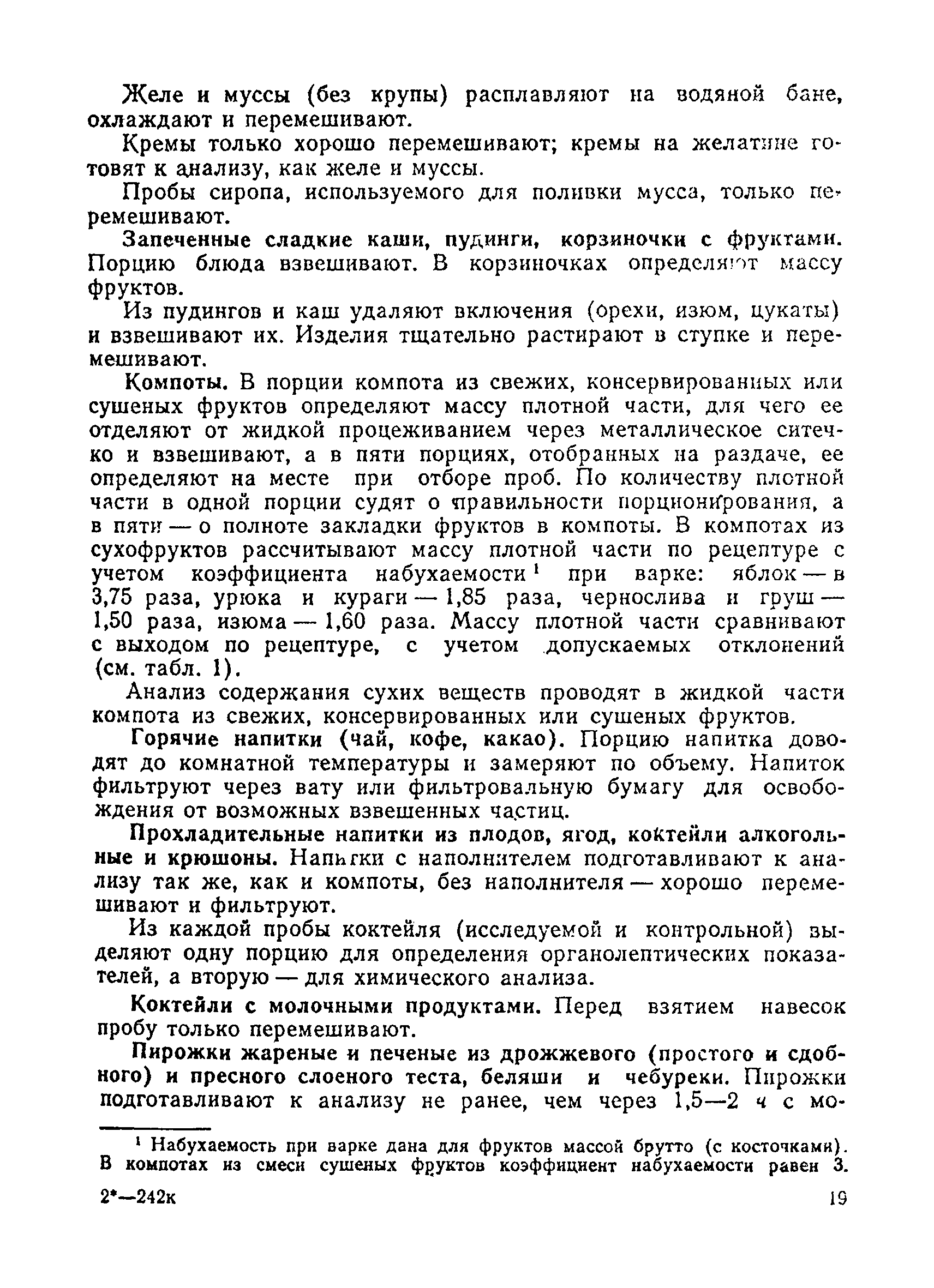 | Оглавление: | 1 Отбор проб 1.1 Основные положения по отбору проб стандартизованной продукции 1.2 Порядок отбора образцов для лабораторного анализа при обследовании предприятия 2 Подготовка проб для анализа 2.1 Взвешивание проб 2.2 Гомогенизация проб 2.3 Подготовка проб полуфабрикатов 2.4 Подготовка проб блюд и изделий 3 Основные физико-химические показатели качества сырья и кулинарной продукции 4 Методы испытаний полуфабрикатов, блюд и изделий 4.1 Общие указания 4.2 Определение содержания сухих веществ или влажности 4.2.1. Высушивание в сушильном шкафу до постоянной массы (арбитражный метод) 4.2.2. Высушивание в сушильном шкафу при температуре 130° С (ускоренный метод) 4.2.3. Высушивание в приборе К. Н. Чижовой (ускоренный метод) 4.2.4. Определение экстрактивных веществ в настое чая (заварке) или напитке 4.2.5. Рефрактометрический метод определения содержания сухих веществ 4.2.6. Определение полноты вложения сырья в горячие и холодные напитки (кофе и чай) 4.3 Определение содержания жира 4.3.1. Экстракционно-весовой метод по обезжиренному остатку (арбитражный) 4.3.2. Рефрактометрический метод (ускоренный) 4.3.3. Метод Гербера (кислоты с применением жиромеров) 4.3.4. Экстракционно-весовой метод определения жира (ускоренный) 4.4 Расчет содержания сухих веществ и жира по рецептурам блюд м изделий (с примерами расчетов) 4.5 Определение качества фритюрного жира 4.5.1. Оперативный производственный контроль качества фритюра 4.5.2. Лабораторный контроль качества фритюра 4.6 Определение содержания сахаров 4.6.1. Приготовление растворов редуцирующих сахаров 4.6.2. Перманганатный (арбитражный) метод 4.6.3. Йодометрический метод 4.6.4. Цианидный метод 4.6.5. Ускоренный цианидный метод определения содержания лактозы 4.6.6. Расчет содержания молока или наполнителей (по результатам анализа) 4.6.7. Рефрактометрические методы (ускоренные) 4.7. Расчет рецептур полуфабрикатов и изделий по физико-химическим показателям 4.7.1. Расчет влажности теста, содержания сахара и жира в сдобных булочных, мучных кулинарных н кондитерских изделиях, мучных и отделочных полуфабрикатах для кондитерских изделий 4.7.2. Расчет содержания хлеба в полуфабрикатах и кулинарных изделиях из рубленого мяса по рецептуре (с учетом сухарной или пшеничной панировочной муки) 4.7.3. Расчет содержания муки и сахара в полуфабрикатах и изделиях из творога 4.7.4. Методика составления и расчета рецептур алкогольных коктейлей 4.7.5. Расчет содержания этилового спирта в сиропе для промочки кондитерских полуфабрикатов 4.8. Определение содержания белков 4.8.1. Метод Кьельдаля (арбитражный) 4.8.2. Метод Джермилло в модификации В. А. Бабина и Н.Н. Мусерского (ускоренный) |