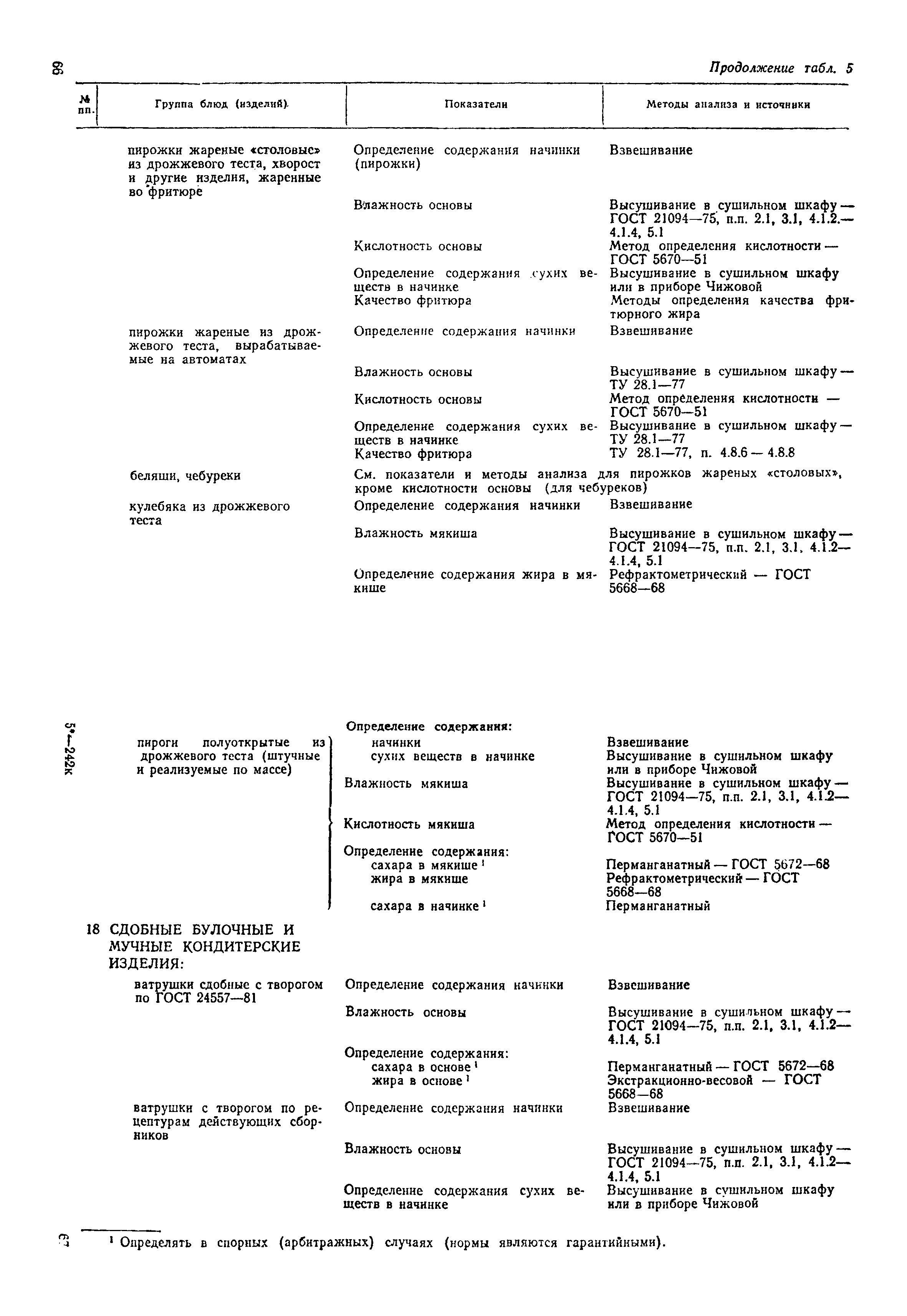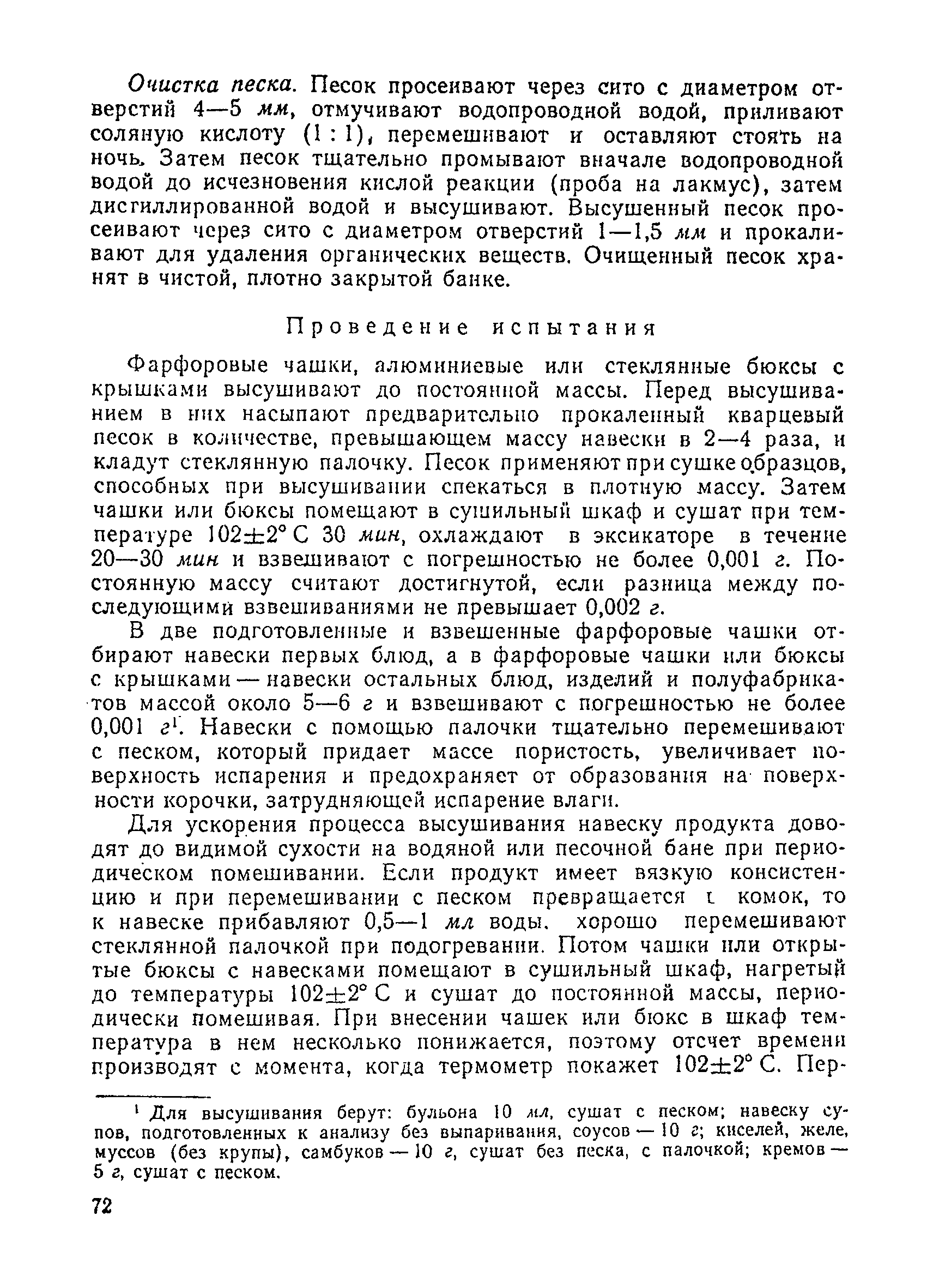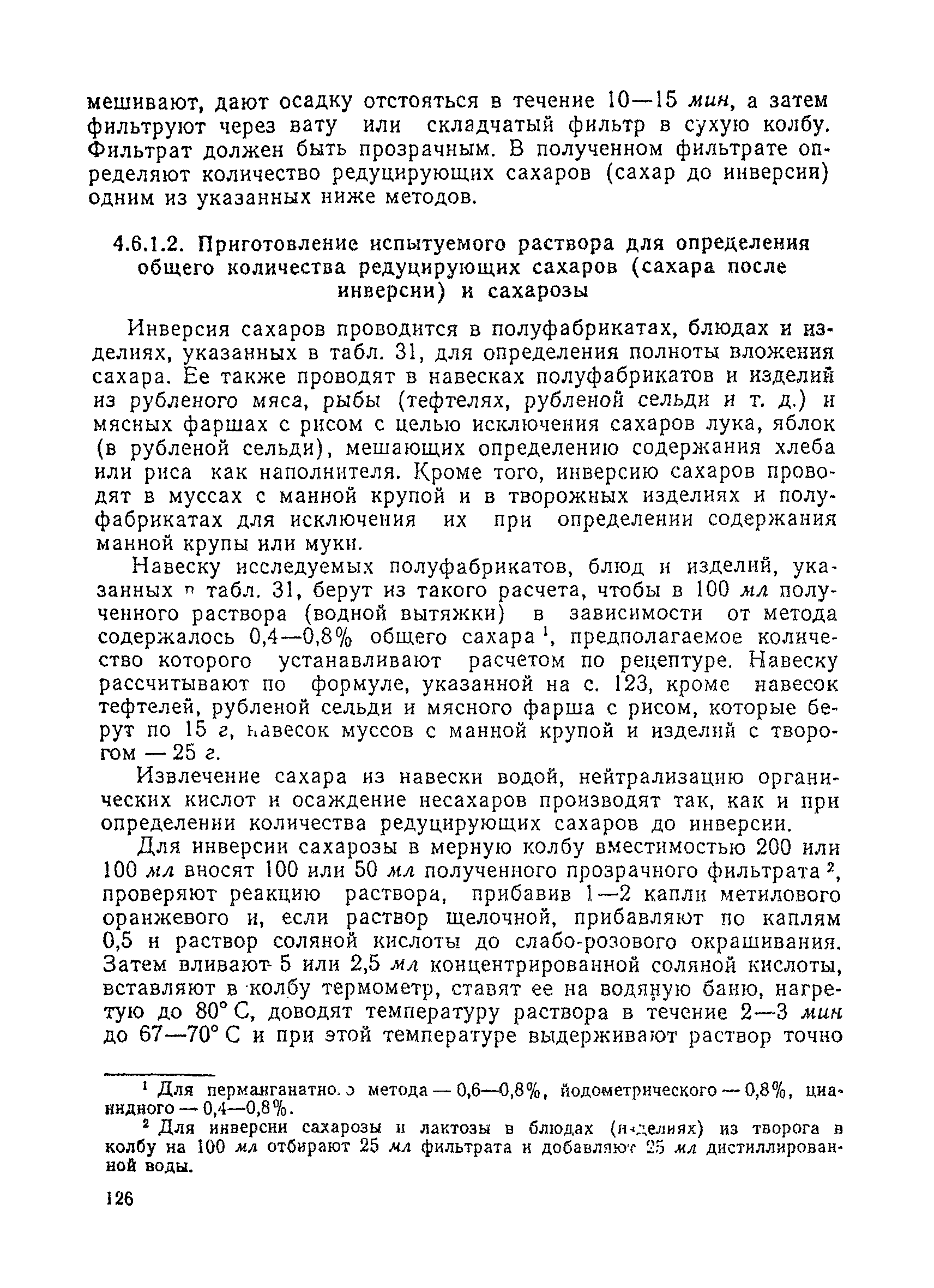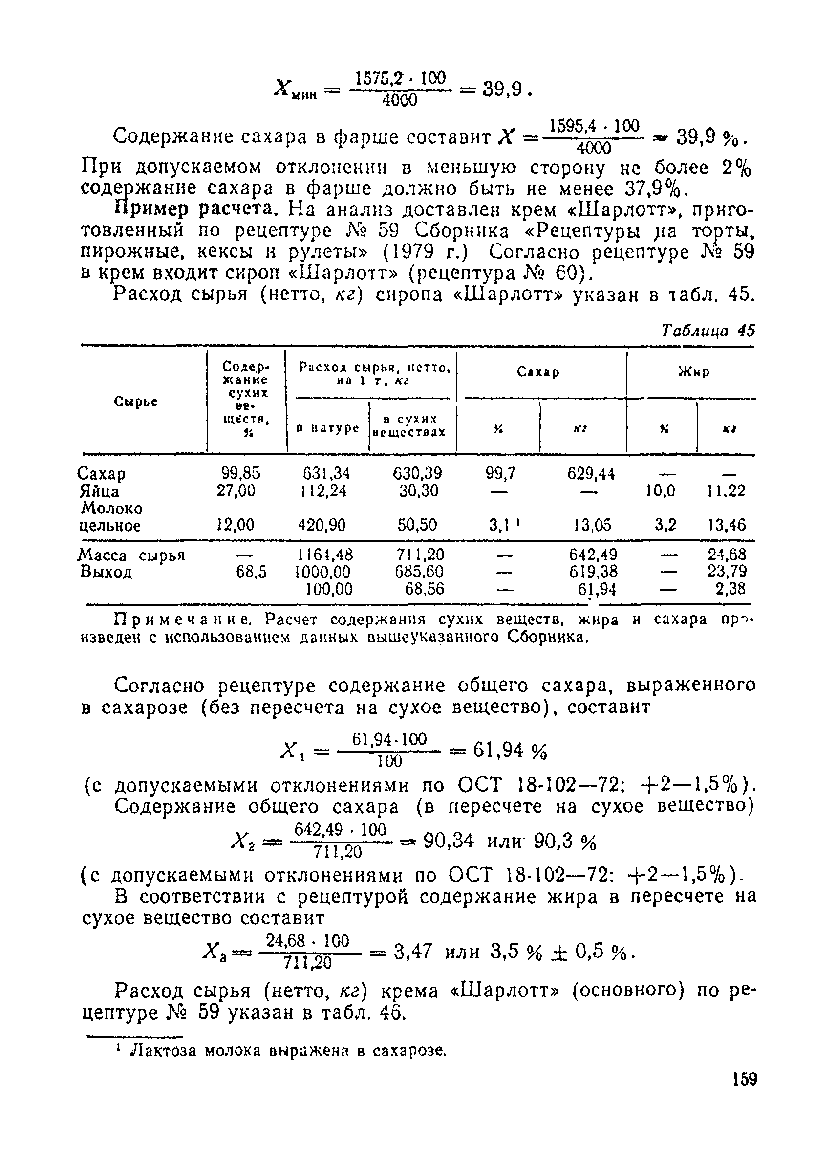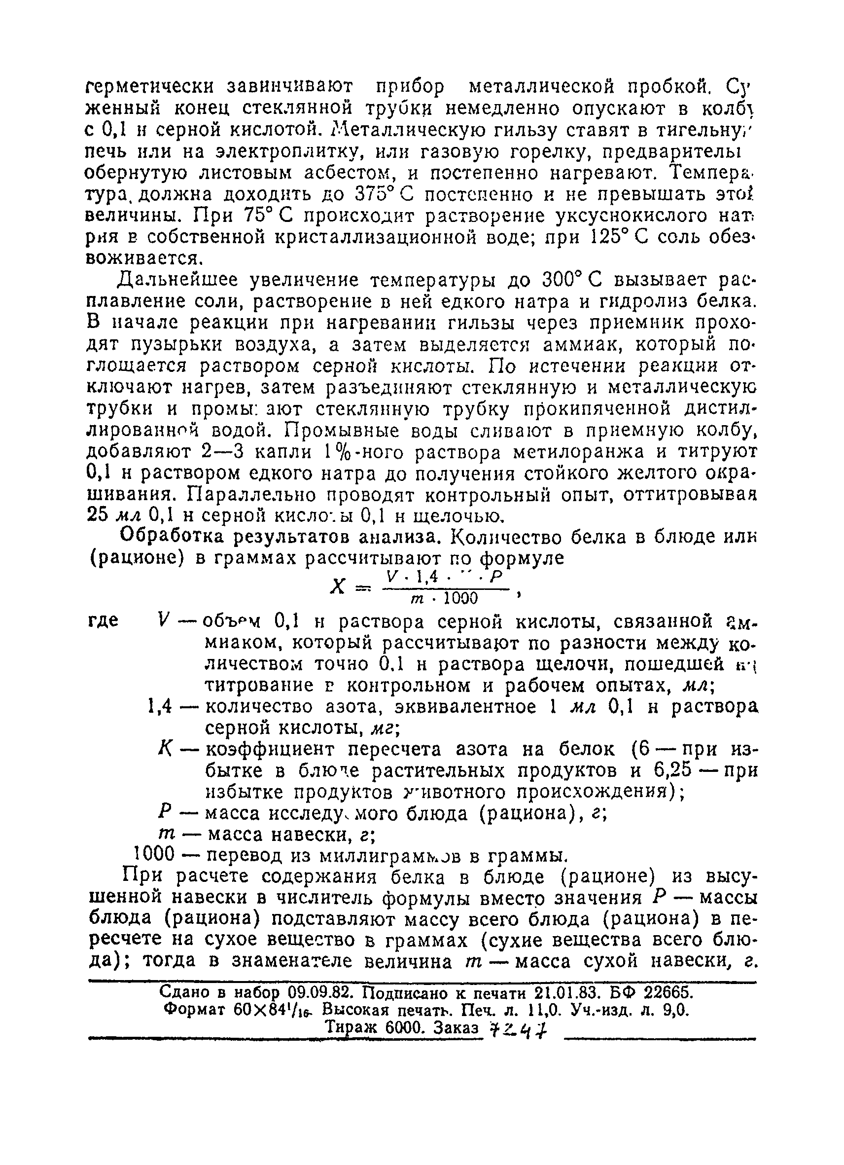 | Оглавление: | 1 Отбор проб 1.1 Основные положения по отбору проб стандартизованной продукции 1.2 Порядок отбора образцов для лабораторного анализа при обследовании предприятия 2 Подготовка проб для анализа 2.1 Взвешивание проб 2.2 Гомогенизация проб 2.3 Подготовка проб полуфабрикатов 2.4 Подготовка проб блюд и изделий 3 Основные физико-химические показатели качества сырья и кулинарной продукции 4 Методы испытаний полуфабрикатов, блюд и изделий 4.1 Общие указания 4.2 Определение содержания сухих веществ или влажности 4.2.1. Высушивание в сушильном шкафу до постоянной массы (арбитражный метод) 4.2.2. Высушивание в сушильном шкафу при температуре 130° С (ускоренный метод) 4.2.3. Высушивание в приборе К. Н. Чижовой (ускоренный метод) 4.2.4. Определение экстрактивных веществ в настое чая (заварке) или напитке 4.2.5. Рефрактометрический метод определения содержания сухих веществ 4.2.6. Определение полноты вложения сырья в горячие и холодные напитки (кофе и чай) 4.3 Определение содержания жира 4.3.1. Экстракционно-весовой метод по обезжиренному остатку (арбитражный) 4.3.2. Рефрактометрический метод (ускоренный) 4.3.3. Метод Гербера (кислоты с применением жиромеров) 4.3.4. Экстракционно-весовой метод определения жира (ускоренный) 4.4 Расчет содержания сухих веществ и жира по рецептурам блюд м изделий (с примерами расчетов) 4.5 Определение качества фритюрного жира 4.5.1. Оперативный производственный контроль качества фритюра 4.5.2. Лабораторный контроль качества фритюра 4.6 Определение содержания сахаров 4.6.1. Приготовление растворов редуцирующих сахаров 4.6.2. Перманганатный (арбитражный) метод 4.6.3. Йодометрический метод 4.6.4. Цианидный метод 4.6.5. Ускоренный цианидный метод определения содержания лактозы 4.6.6. Расчет содержания молока или наполнителей (по результатам анализа) 4.6.7. Рефрактометрические методы (ускоренные) 4.7. Расчет рецептур полуфабрикатов и изделий по физико-химическим показателям 4.7.1. Расчет влажности теста, содержания сахара и жира в сдобных булочных, мучных кулинарных н кондитерских изделиях, мучных и отделочных полуфабрикатах для кондитерских изделий 4.7.2. Расчет содержания хлеба в полуфабрикатах и кулинарных изделиях из рубленого мяса по рецептуре (с учетом сухарной или пшеничной панировочной муки) 4.7.3. Расчет содержания муки и сахара в полуфабрикатах и изделиях из творога 4.7.4. Методика составления и расчета рецептур алкогольных коктейлей 4.7.5. Расчет содержания этилового спирта в сиропе для промочки кондитерских полуфабрикатов 4.8. Определение содержания белков 4.8.1. Метод Кьельдаля (арбитражный) 4.8.2. Метод Джермилло в модификации В. А. Бабина и Н.Н. Мусерского (ускоренный) |