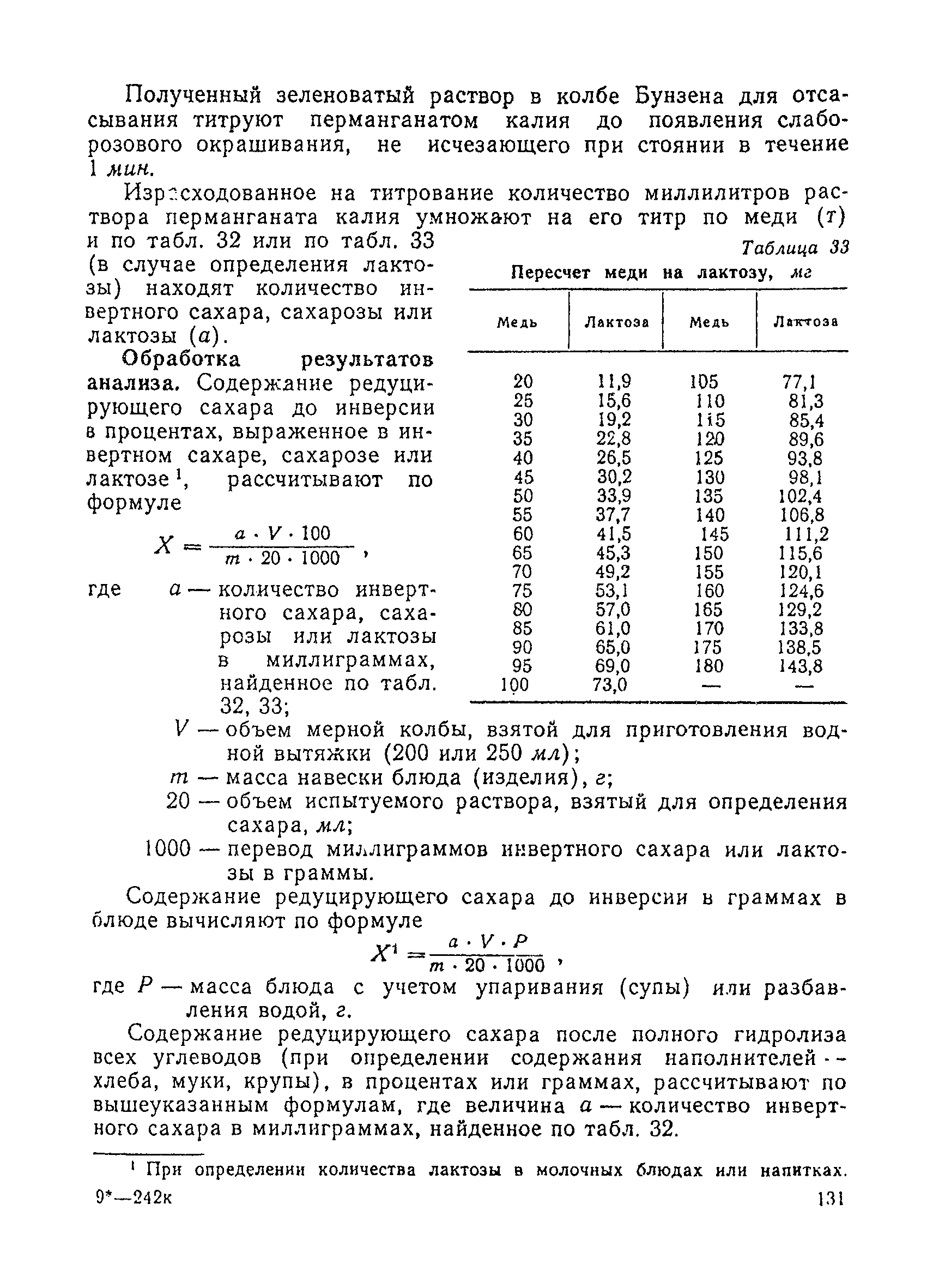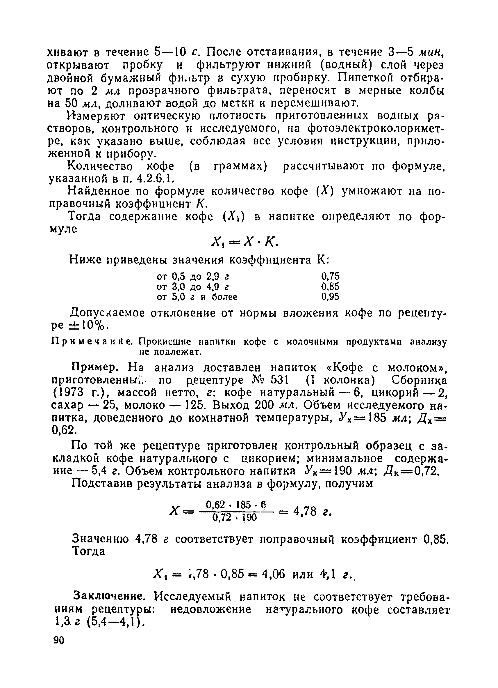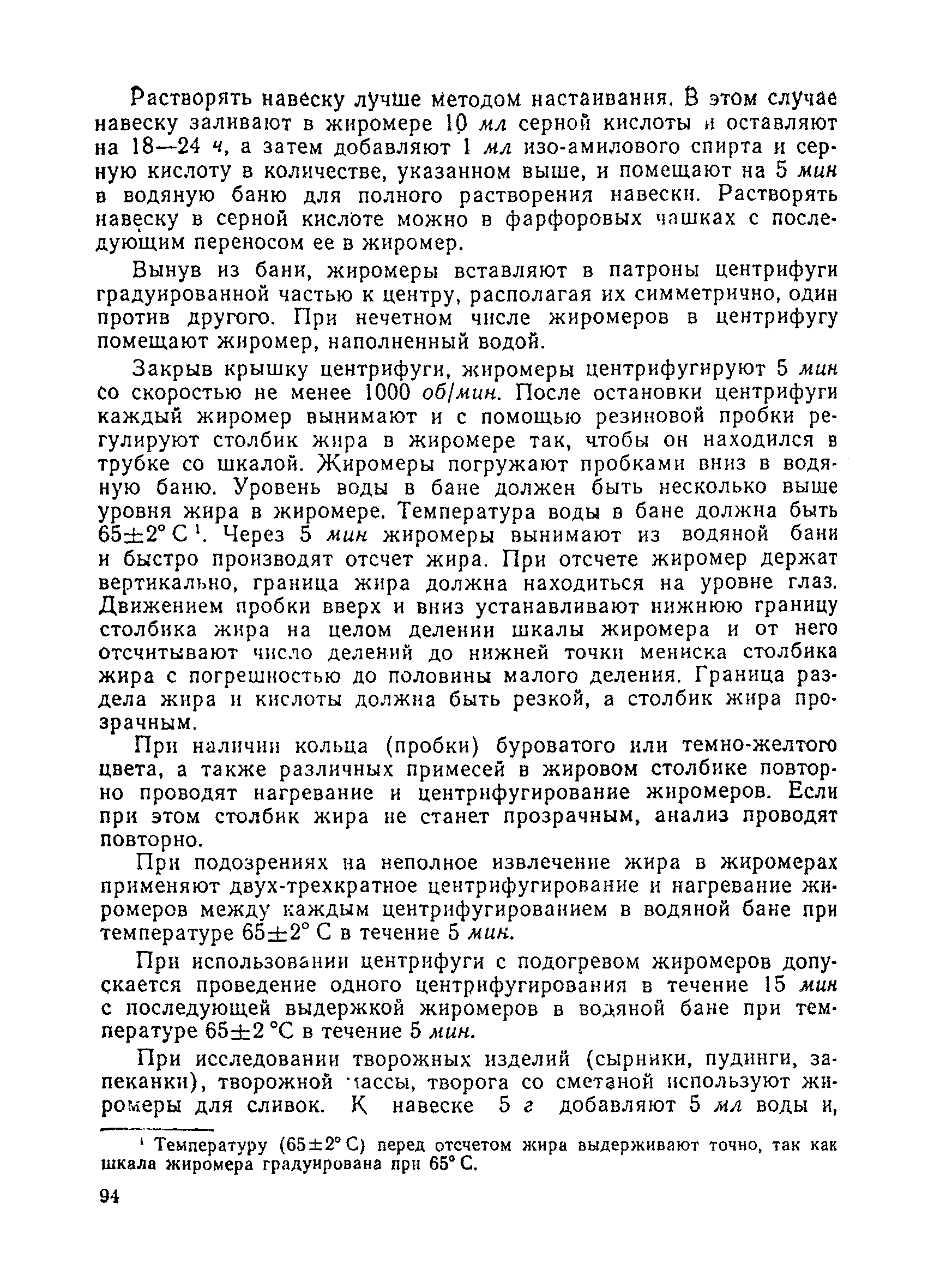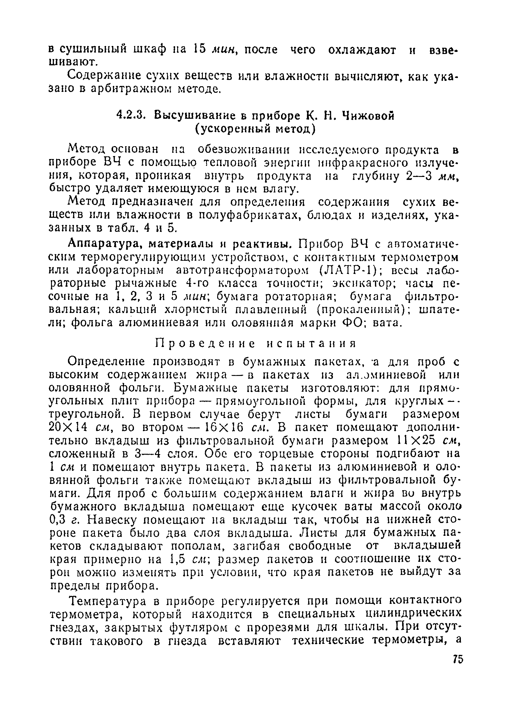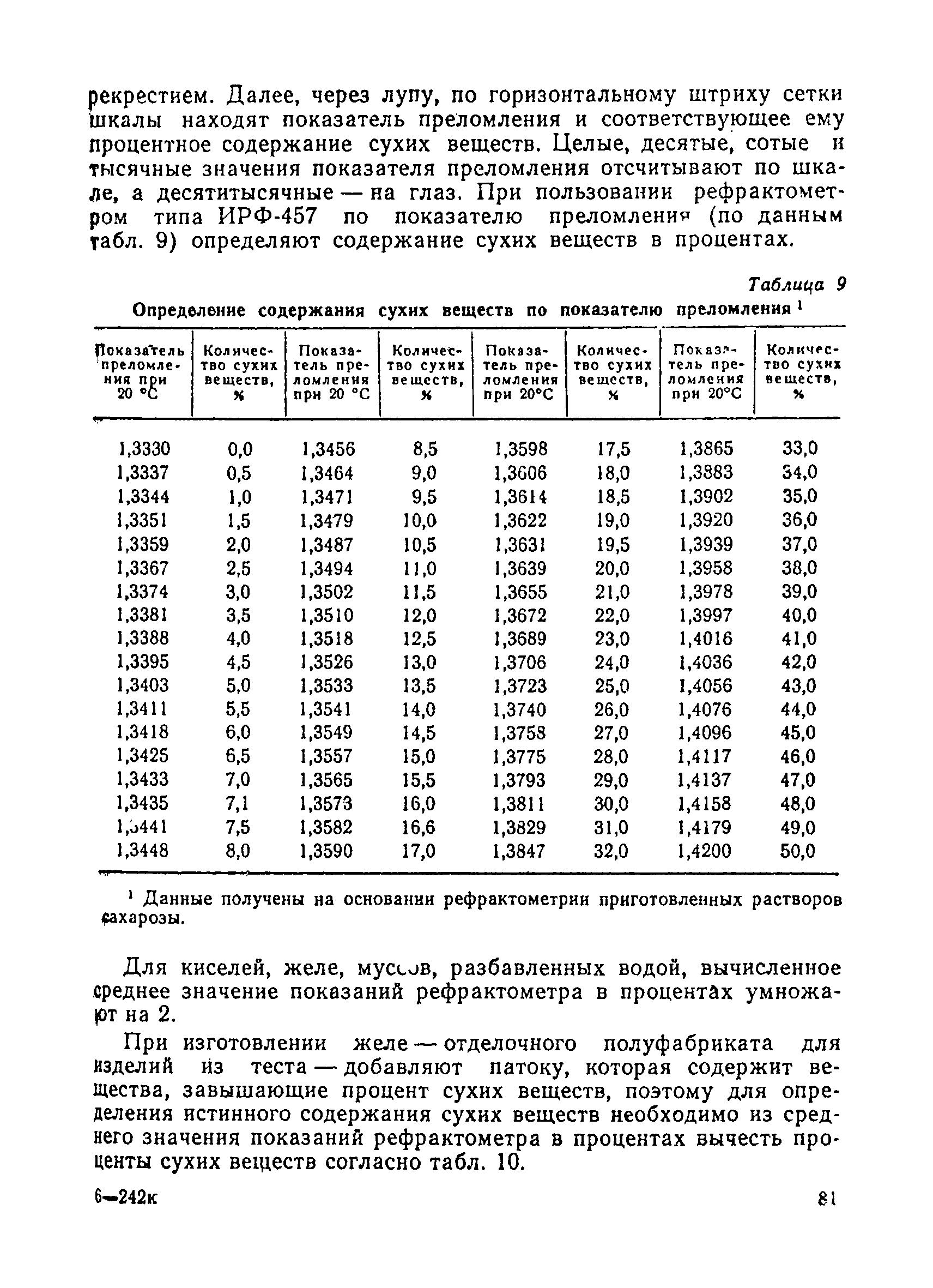 | Оглавление: | 1 Отбор проб 1.1 Основные положения по отбору проб стандартизованной продукции 1.2 Порядок отбора образцов для лабораторного анализа при обследовании предприятия 2 Подготовка проб для анализа 2.1 Взвешивание проб 2.2 Гомогенизация проб 2.3 Подготовка проб полуфабрикатов 2.4 Подготовка проб блюд и изделий 3 Основные физико-химические показатели качества сырья и кулинарной продукции 4 Методы испытаний полуфабрикатов, блюд и изделий 4.1 Общие указания 4.2 Определение содержания сухих веществ или влажности 4.2.1. Высушивание в сушильном шкафу до постоянной массы (арбитражный метод) 4.2.2. Высушивание в сушильном шкафу при температуре 130° С (ускоренный метод) 4.2.3. Высушивание в приборе К. Н. Чижовой (ускоренный метод) 4.2.4. Определение экстрактивных веществ в настое чая (заварке) или напитке 4.2.5. Рефрактометрический метод определения содержания сухих веществ 4.2.6. Определение полноты вложения сырья в горячие и холодные напитки (кофе и чай) 4.3 Определение содержания жира 4.3.1. Экстракционно-весовой метод по обезжиренному остатку (арбитражный) 4.3.2. Рефрактометрический метод (ускоренный) 4.3.3. Метод Гербера (кислоты с применением жиромеров) 4.3.4. Экстракционно-весовой метод определения жира (ускоренный) 4.4 Расчет содержания сухих веществ и жира по рецептурам блюд м изделий (с примерами расчетов) 4.5 Определение качества фритюрного жира 4.5.1. Оперативный производственный контроль качества фритюра 4.5.2. Лабораторный контроль качества фритюра 4.6 Определение содержания сахаров 4.6.1. Приготовление растворов редуцирующих сахаров 4.6.2. Перманганатный (арбитражный) метод 4.6.3. Йодометрический метод 4.6.4. Цианидный метод 4.6.5. Ускоренный цианидный метод определения содержания лактозы 4.6.6. Расчет содержания молока или наполнителей (по результатам анализа) 4.6.7. Рефрактометрические методы (ускоренные) 4.7. Расчет рецептур полуфабрикатов и изделий по физико-химическим показателям 4.7.1. Расчет влажности теста, содержания сахара и жира в сдобных булочных, мучных кулинарных н кондитерских изделиях, мучных и отделочных полуфабрикатах для кондитерских изделий 4.7.2. Расчет содержания хлеба в полуфабрикатах и кулинарных изделиях из рубленого мяса по рецептуре (с учетом сухарной или пшеничной панировочной муки) 4.7.3. Расчет содержания муки и сахара в полуфабрикатах и изделиях из творога 4.7.4. Методика составления и расчета рецептур алкогольных коктейлей 4.7.5. Расчет содержания этилового спирта в сиропе для промочки кондитерских полуфабрикатов 4.8. Определение содержания белков 4.8.1. Метод Кьельдаля (арбитражный) 4.8.2. Метод Джермилло в модификации В. А. Бабина и Н.Н. Мусерского (ускоренный) |