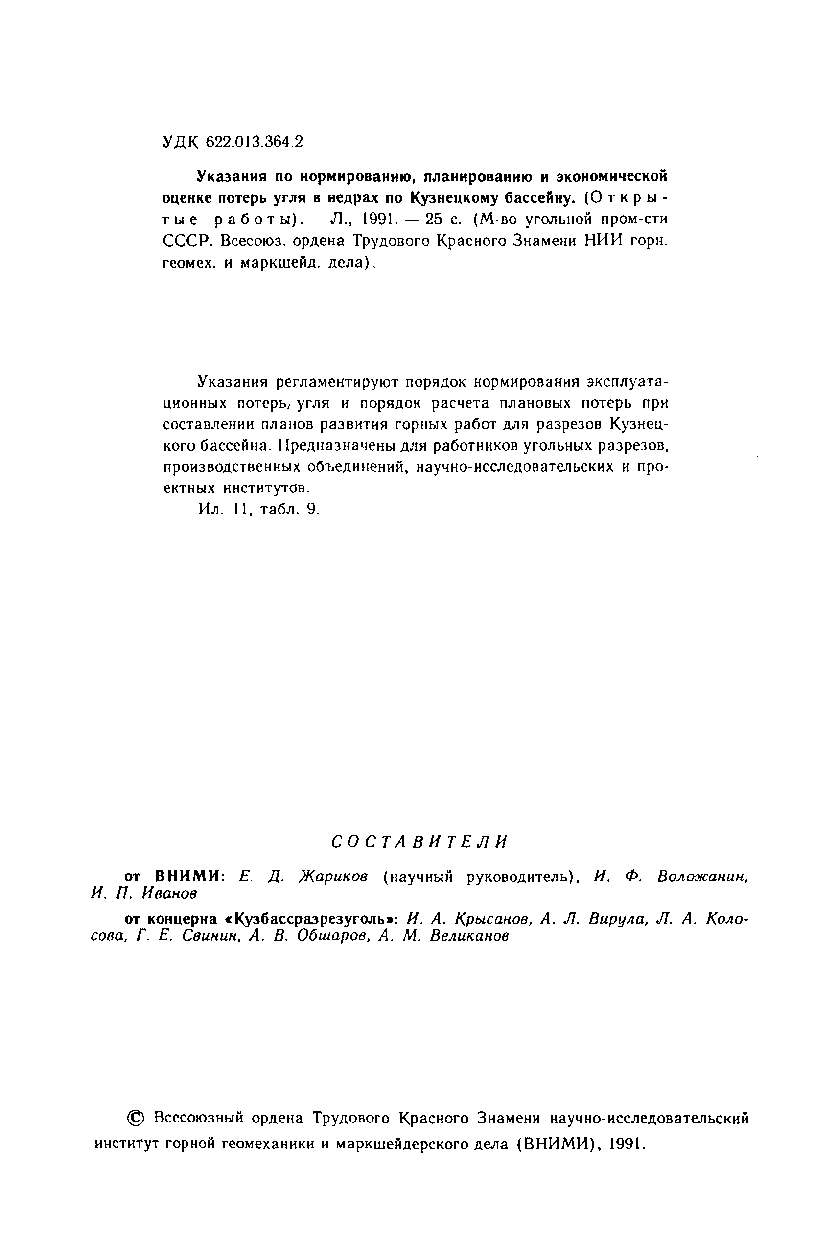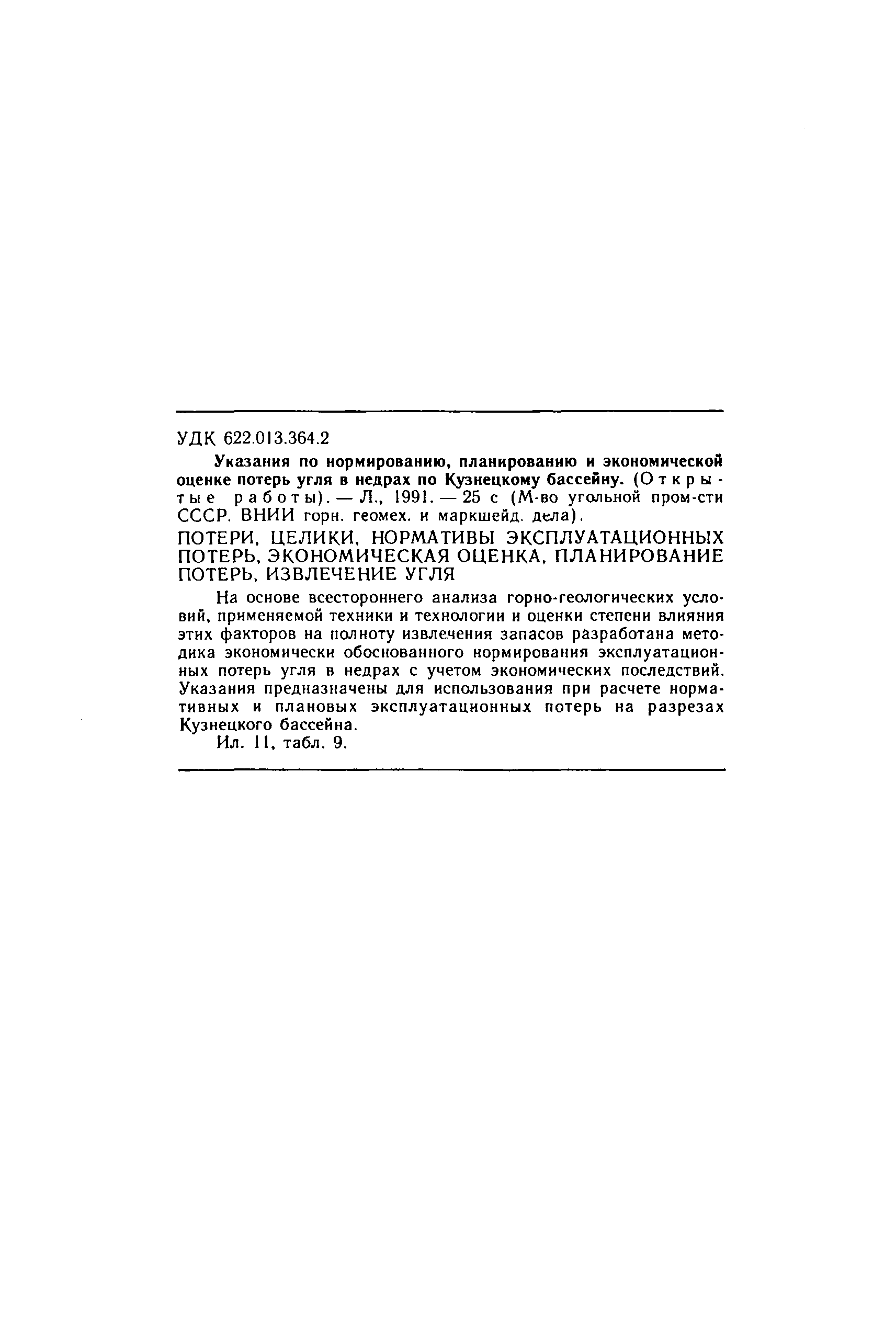 | Название рус.: | Указания по нормированию, планированию и экономической оценке потерь угля в недрах по Кузнецкому бассейну. Открытые работы |