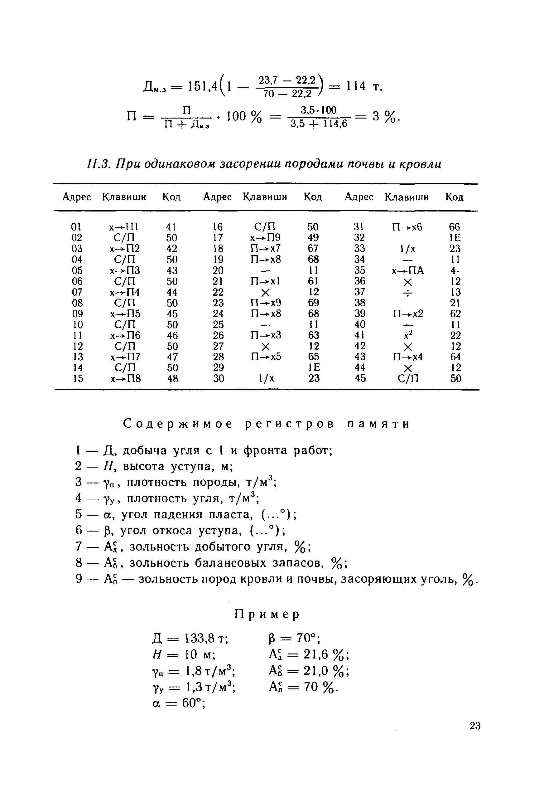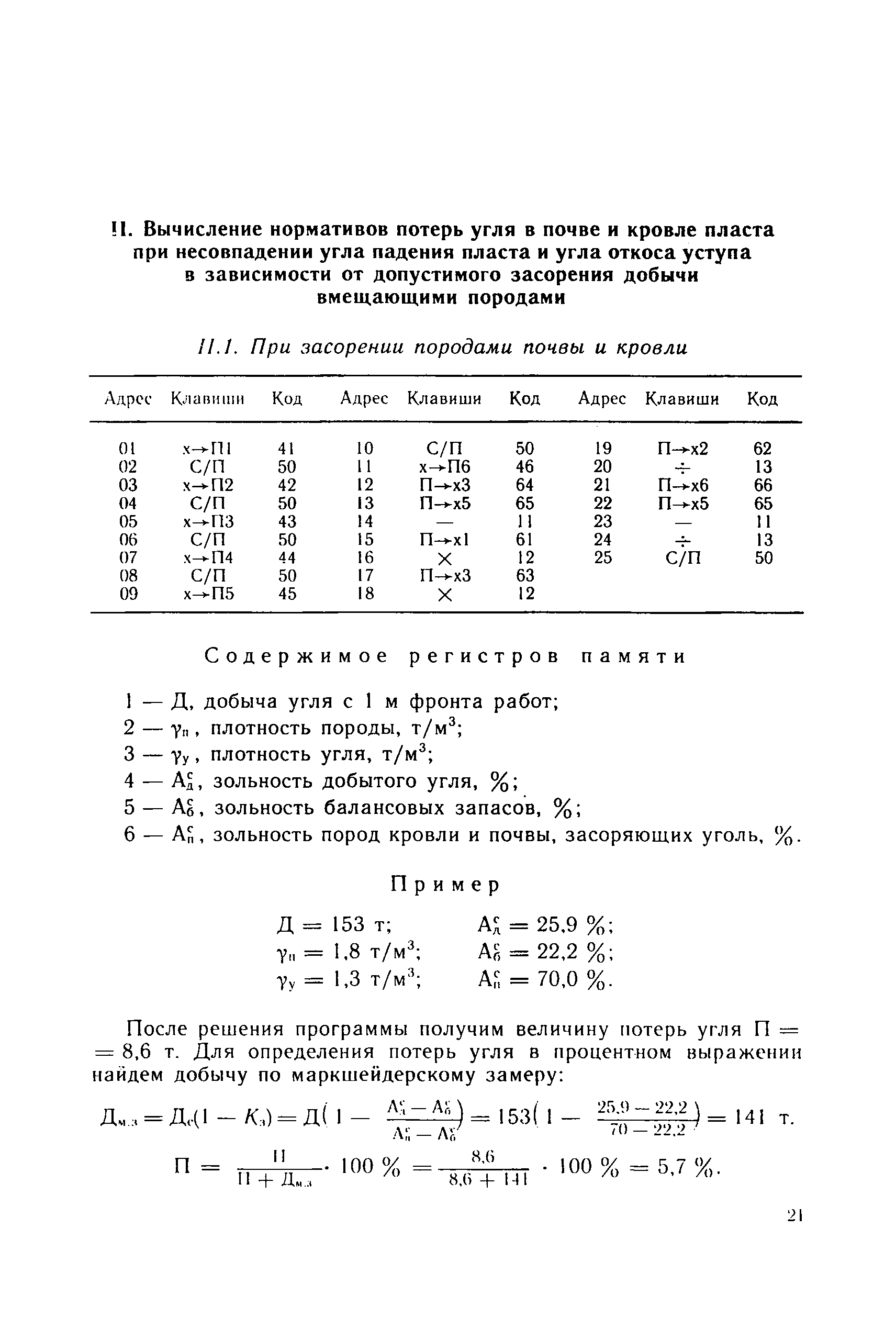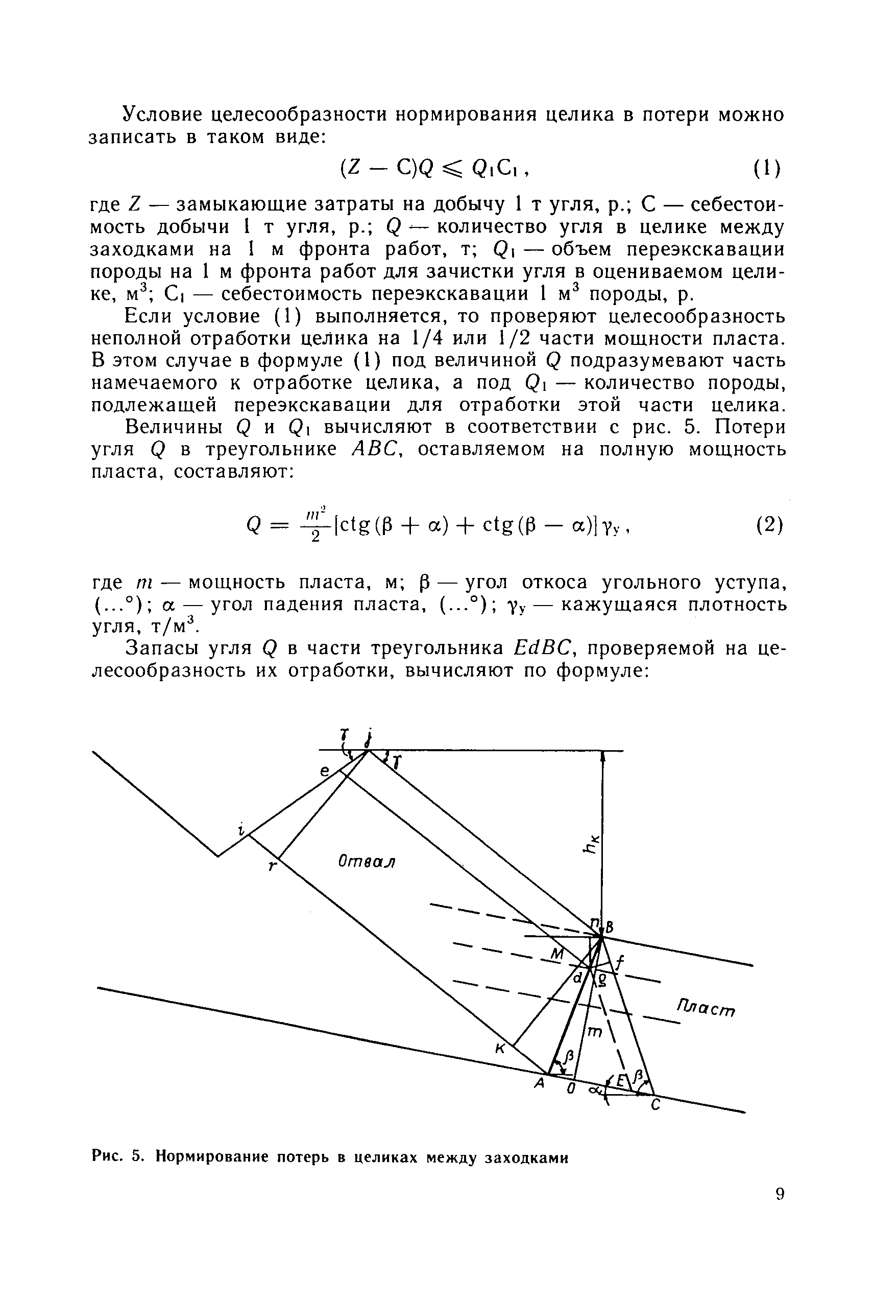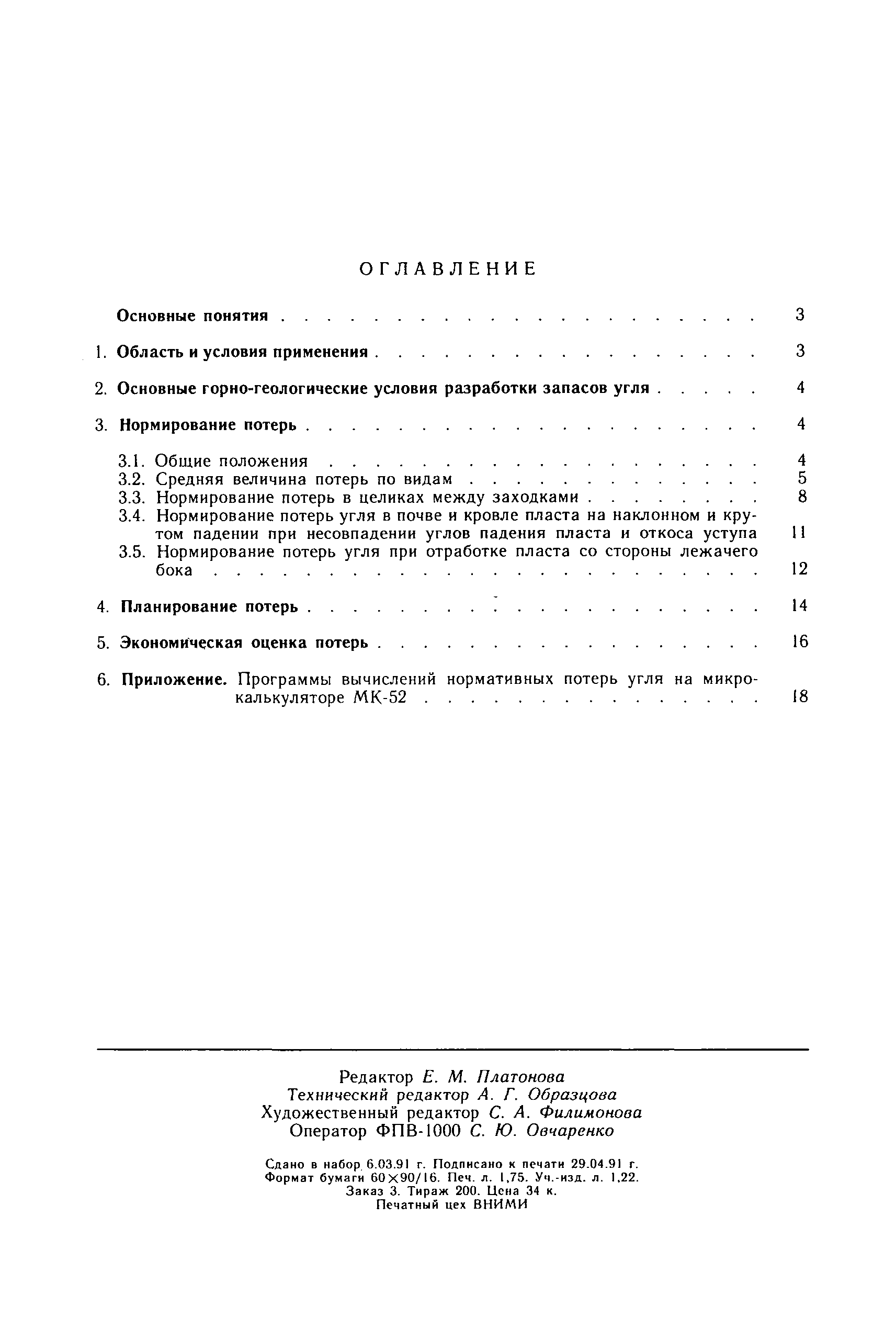 | Оглавление: | Основные понятия 1 Область и условия применения 2 Основные горно-геологические условия разработки запасов угля 3 Нормирование потерь 3.1. Общие положения 3.2. Средняя величина потерь по видам 3.3. Нормирование потерь в целиках между заходками 3.4. Нормирование потерь угля в почве и кровле пласта на наклонном и крутом падении при несовпадении углов падения пласта и откоса уступа 3.5. Нормирование потерь угля при отработке пласта со стороны лежачего бока 4 Планирование потерь 5 Экономическая оценка потерь 6 Приложение. Программы вычислений нормативных потерь угля на микрокалькуляторе МК-52 |