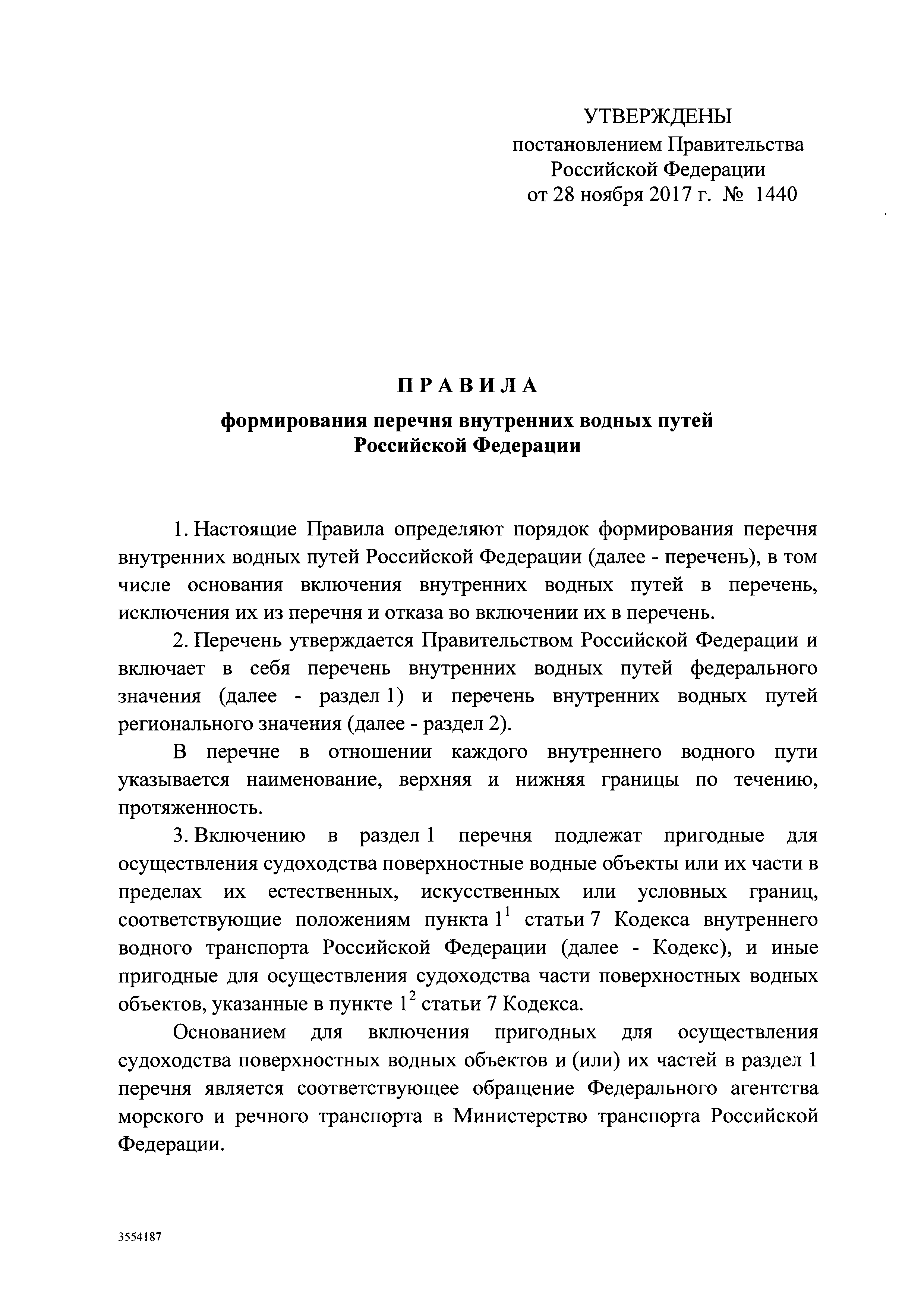 | Область применения: | Правила определяют порядок формирования перечня внутренних водных путей Российской Федерации, в том числе основания включения внутренних водных путей в перечень, исключения их из перечня и отказа во включении их в перечень |