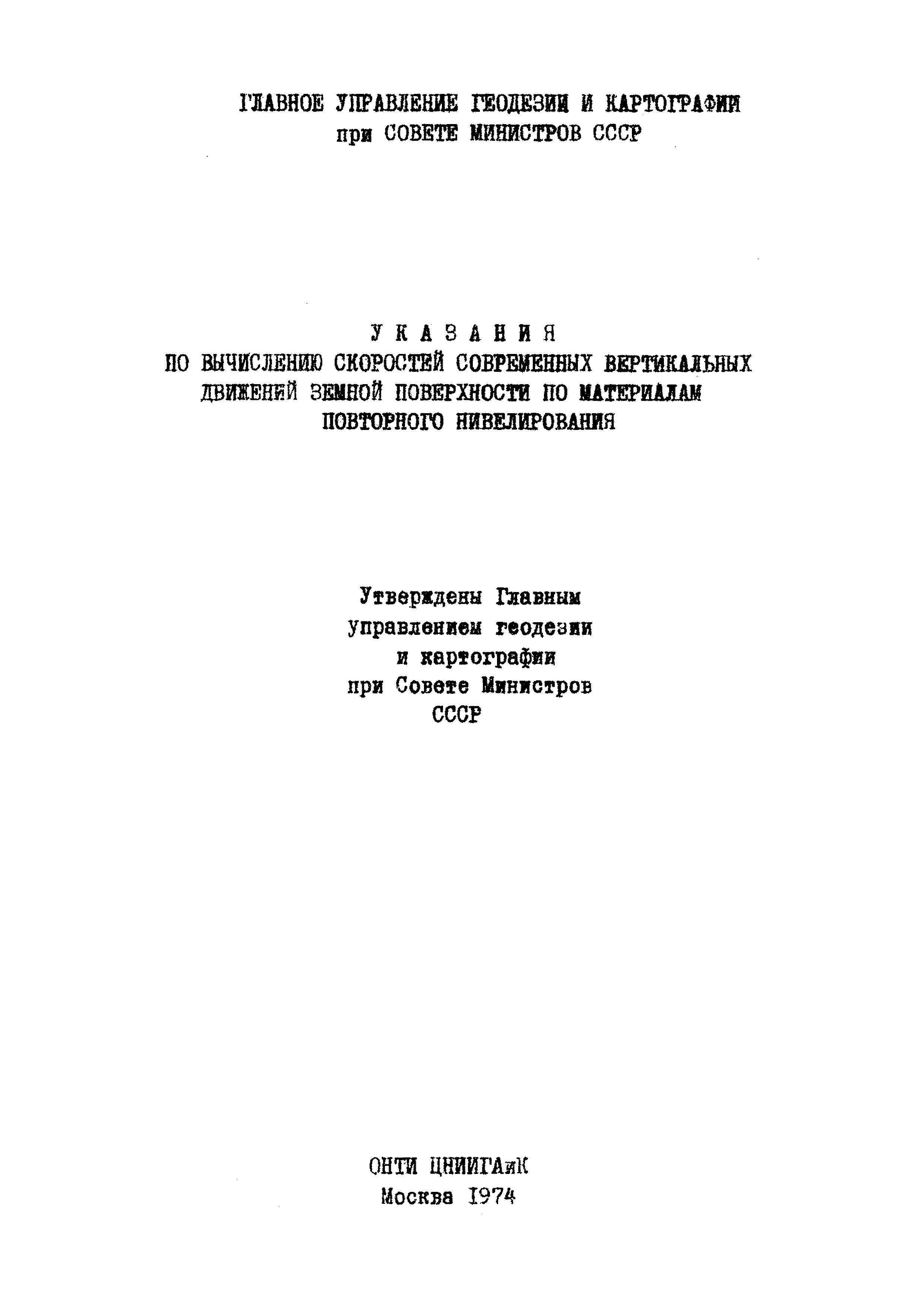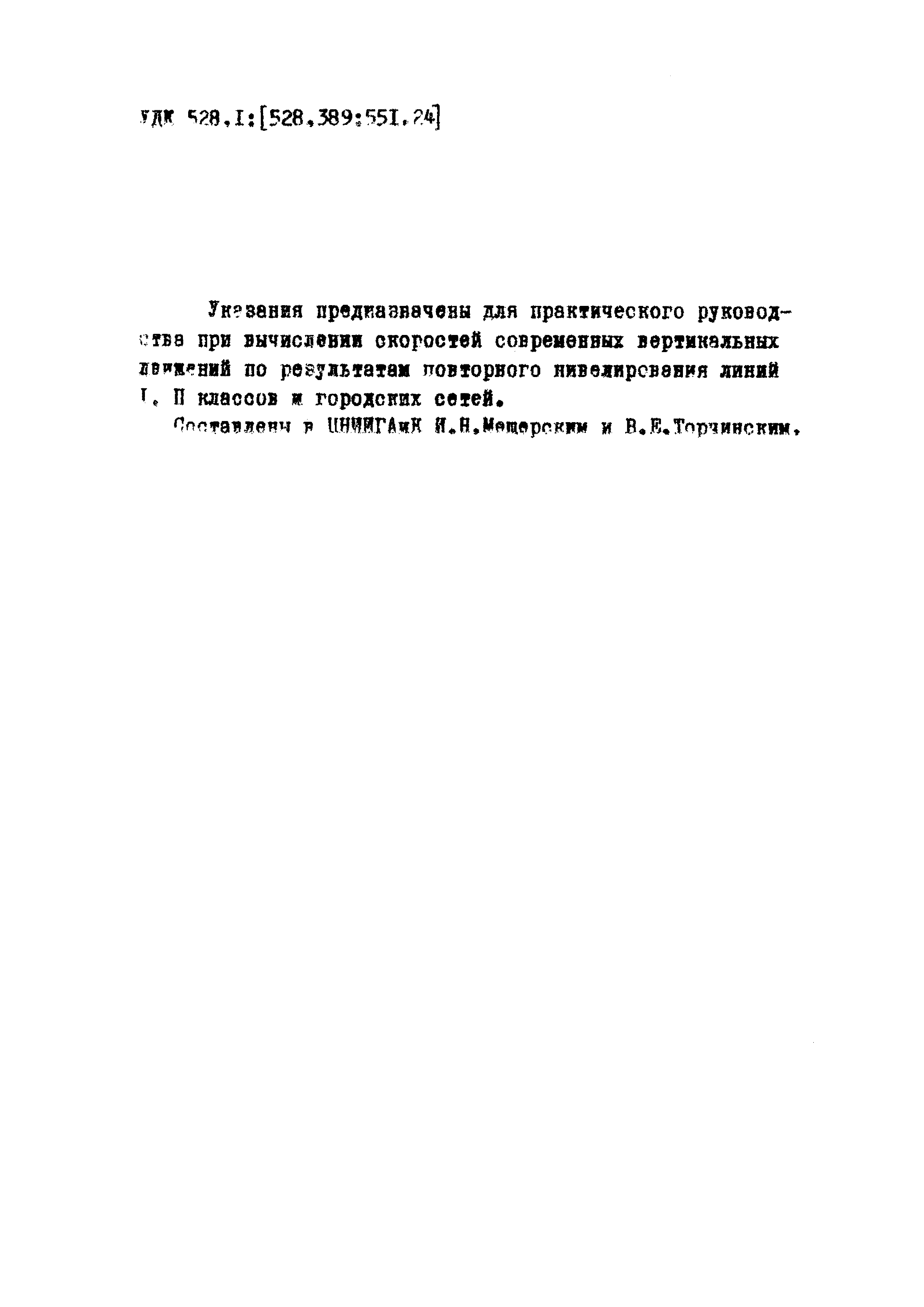 | Название рус.: | Указания по вычислению скоростей современных вертикальных движений земной поверхности по материалам повторного нивелирования |
