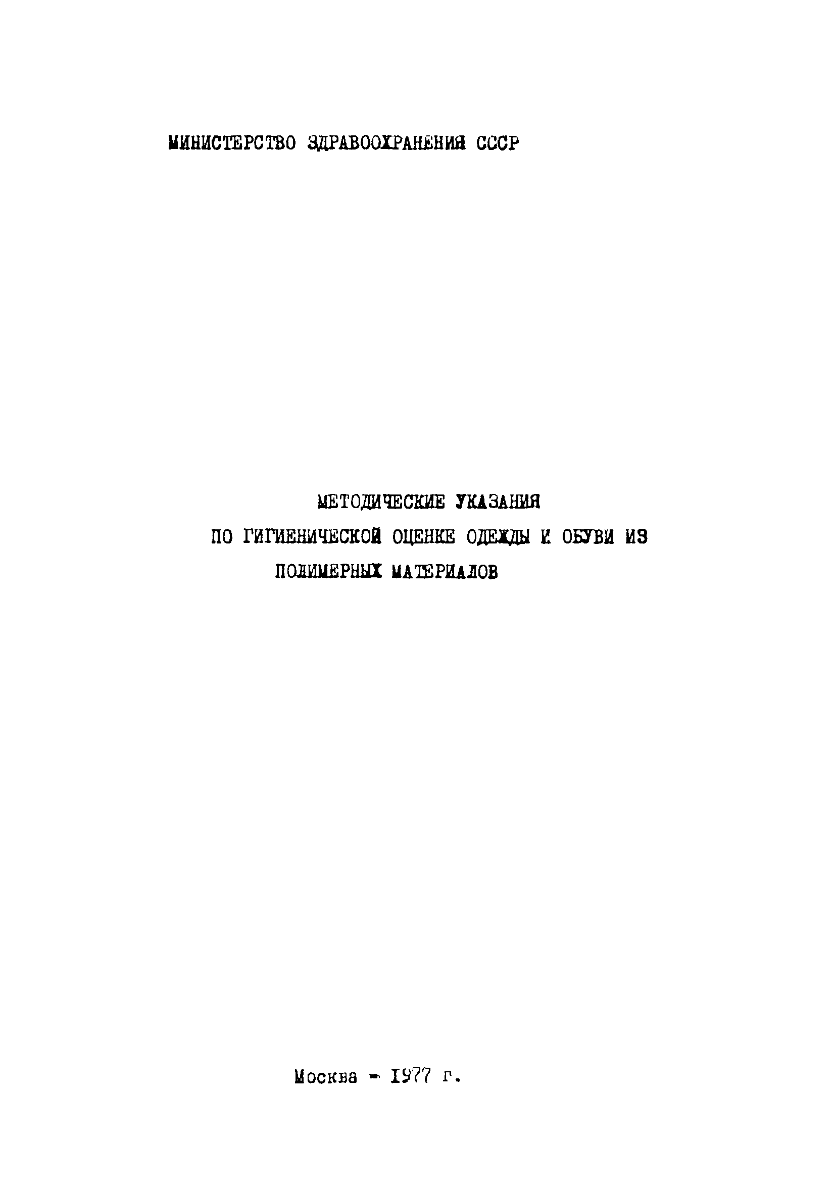 | Название рус.: | Методические указания по гигиенической оценке одежды и обуви из полимерных материалов |