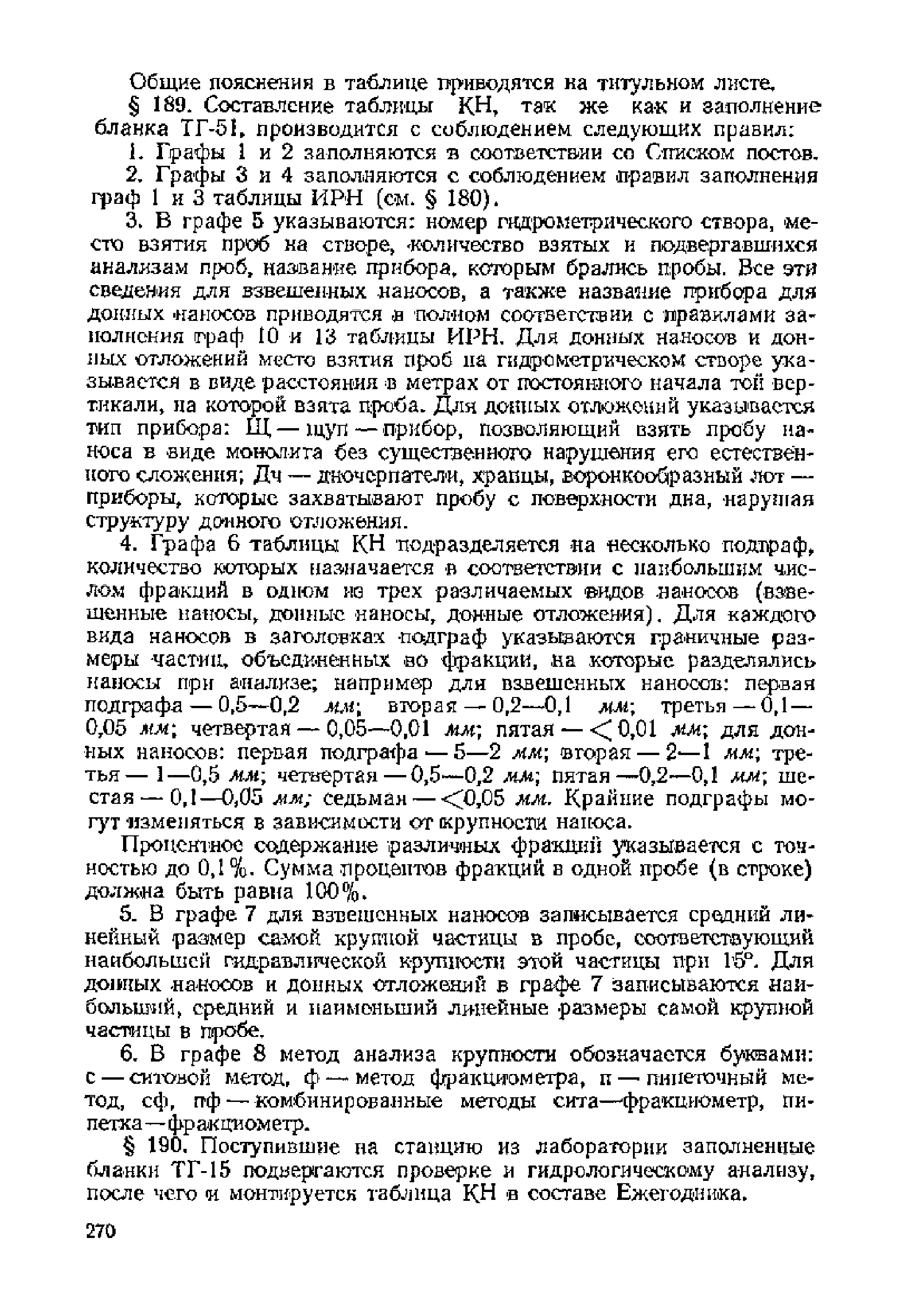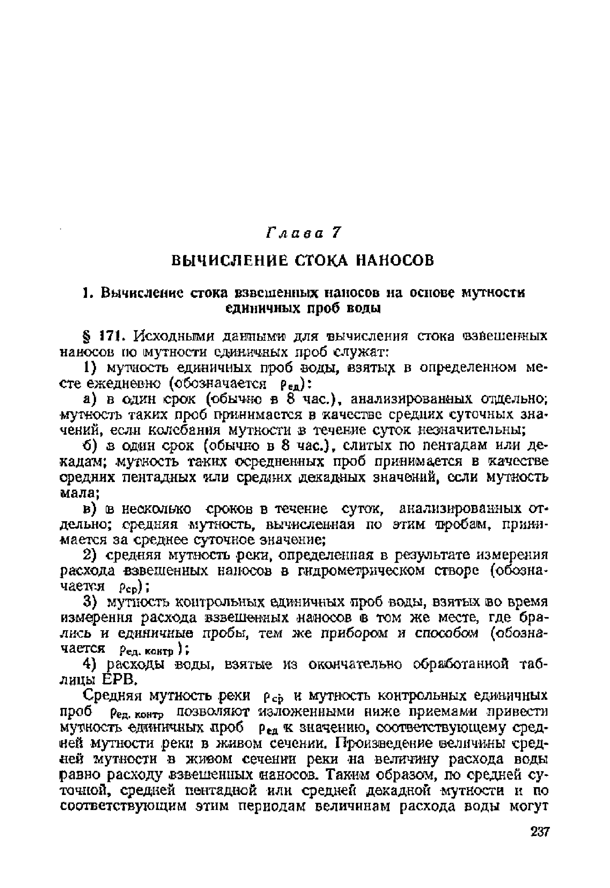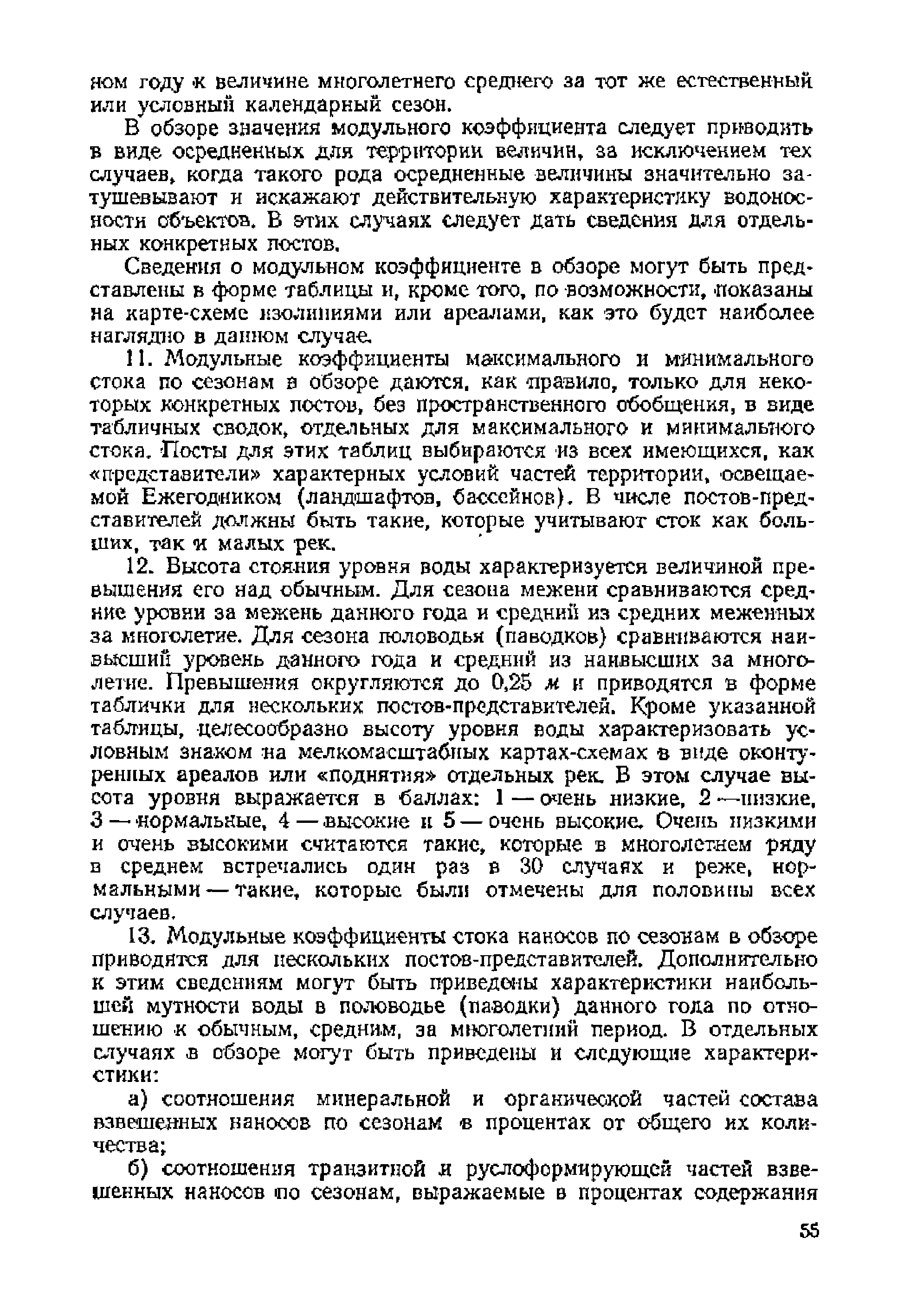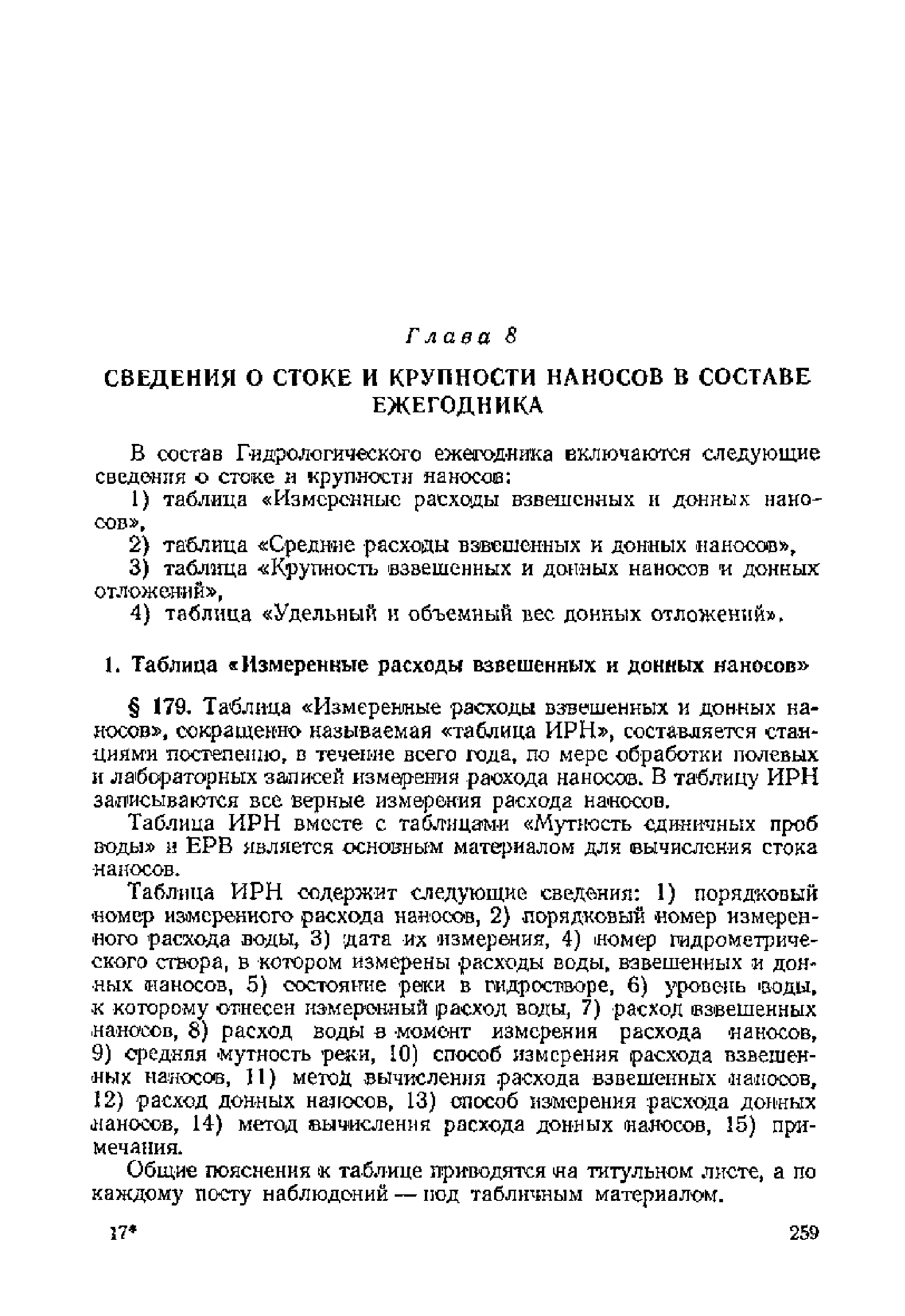 Наставление гидрометеорологическим станциям и постам. Выпуск 6. Часть III. Составление и подготовка к печати гидрологического ежегодника| Статус: | частично действует | | Название рус.: | Наставление гидрометеорологическим станциям и постам. Выпуск 6. Часть III. Составление и подготовка к печати гидрологического ежегодника | | Дата добавления в базу: | 01.01.2019 | | Дата актуализации: | 01.01.2021 | | Дата введения: | 01.01.1959 | | Дата окончания срока действия: | 01.06.2020 | | Область применения: | Наставления гидрометеорологическим станциям и постам направлены на установление единообразия всех видов стандартных морских гидрологических наблюдений (измерений), обработки результатов и связанных с ними работ, проводимых на гидрометстанциях и постах Государственного комитета СССР по гидрометеорологии и контролю природной среды. | | Оглавление: | Предисловие Глава 1. Общие положения по составлению и изданию Гидрологического ежегодника 1 Содержание Гидрологического ежегодника и номенклатура издания 2 Организация работы по Гидрологическому ежегоднику в учреждениях Гидрометеорологической службы 3 Общие правила оформления Гидрологического ежегодника Глава 2. Сведения о реках, каналах, водохранилищах и озерах, на которых велись гидрологические наблюдения, и сведения о постах, результаты наблюдения на которых помещены в Гидрологическом ежегоднике 1 Алфавитный список рек, каналов, водохранилищ и озер, на которых велись наблюдения 2 Список постов, на которых велись гидрологические наблюдения 3 Описание постов и дополнения к описаниям. Ранее опубликованным в Ежегодниках Глава 3. Обзор режима рек в составе Гидрологического ежегодника Глава 4. Сведения об уровне воды в составе Гидрологического ежегодника 1 Таблица "Ежедневные уровни воды" 2 Таблица "Сведения об уровне воды по наблюдениям постов, по которым не приведена таблица ЕУВ" 3 Таблица "Многолетние характеристики уровня воды и ледовых явлений" Глава 5. Вычисление стока воды 1 Общие положения 2 Многолетняя однозначная связь между расходом и уровнем 3 Паводочные петли 4 Ледовый режим 5 Зарастание русла 6 Неустойчивость русла 7 Переменный подпор 8 Вычисление стока воды на ГЭС, гидроузлах и водозаборных сооружениях оросительных систем Глава 6. Сведения о стоке воды в составе Гидрологического ежегодника 1 Таблица "Измеренные расходы воды" 2 Таблица "Ежедневные расходы воды" 3 Таблица "Многолетние характеристики расхода воды" 4 Гидрологический анализ сведений о стоке воды Глава 7. Вычисление стока наносов 1 Вычисление стока взвешенных наносов на основе мутности единичных проб воды 2 Вычисление стока взвешенных наносов по графику зависимости между значениями расхода воды и расхода взвешенных наносов 3 Вычисление стока взвешенных наносов для периода межени в случае малой мутности 4 Вычисление стока донных наносов Глава 8. Сведения о стоке и крупности наносов в составе Ежегодника 1 Таблица "Измеренные расходы взвешенных и донных наносов" 2 Таблица "Средние расходы взвешенных и донных наносов" 3 Таблица "Крупность взвешенных и донных наносов и донных отложений" 4 Таблица "Удельный и объемный вес донных отложений" 5 Анализ и контроль результатов наблюдений Глава 9. Сведения о температуре воды, толщине льда и шуге в составе Ежегодника 1 Таблица "Средняя декадная температура воды" 2 Таблица "Ежедневная температура воды" 3 Таб