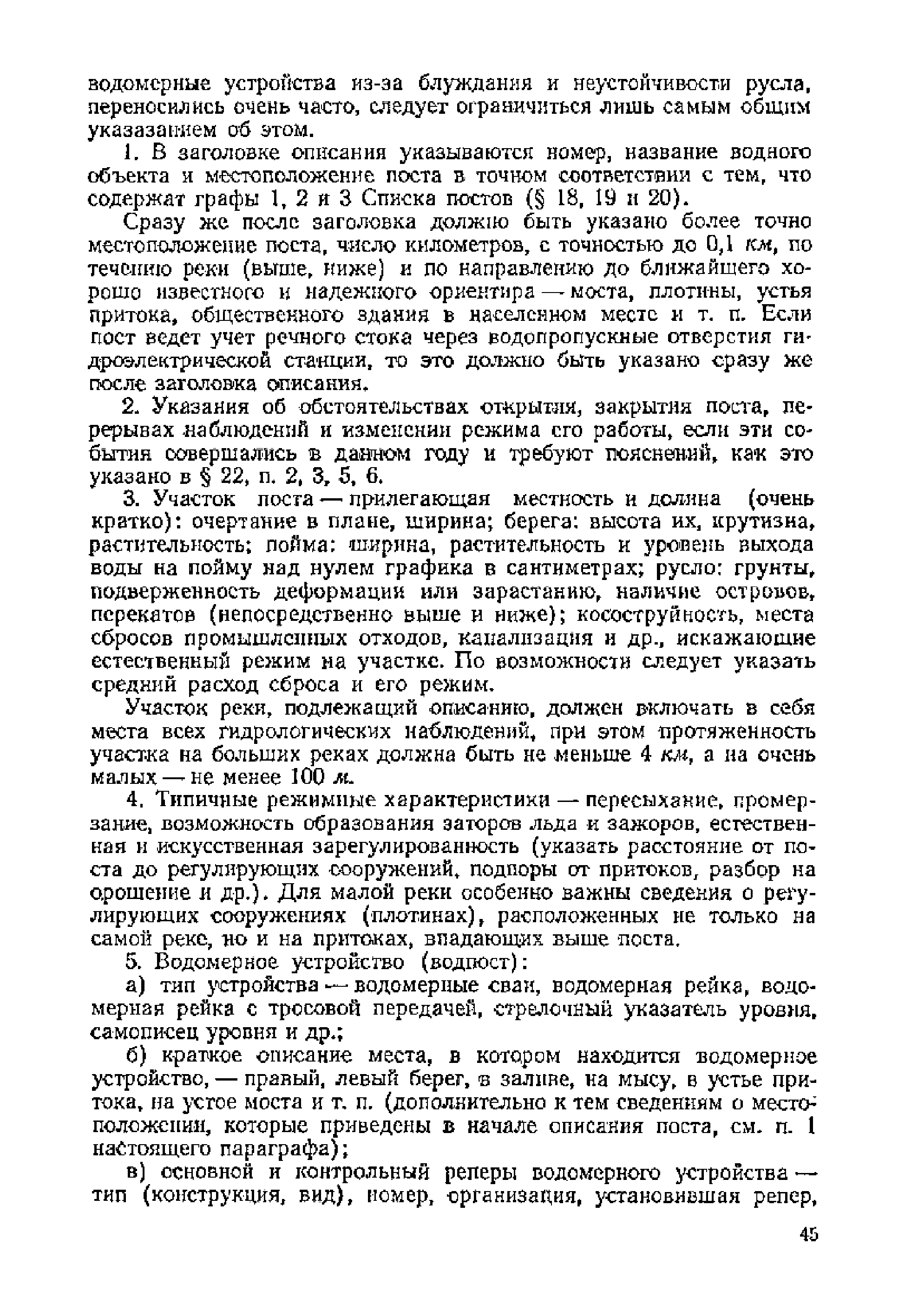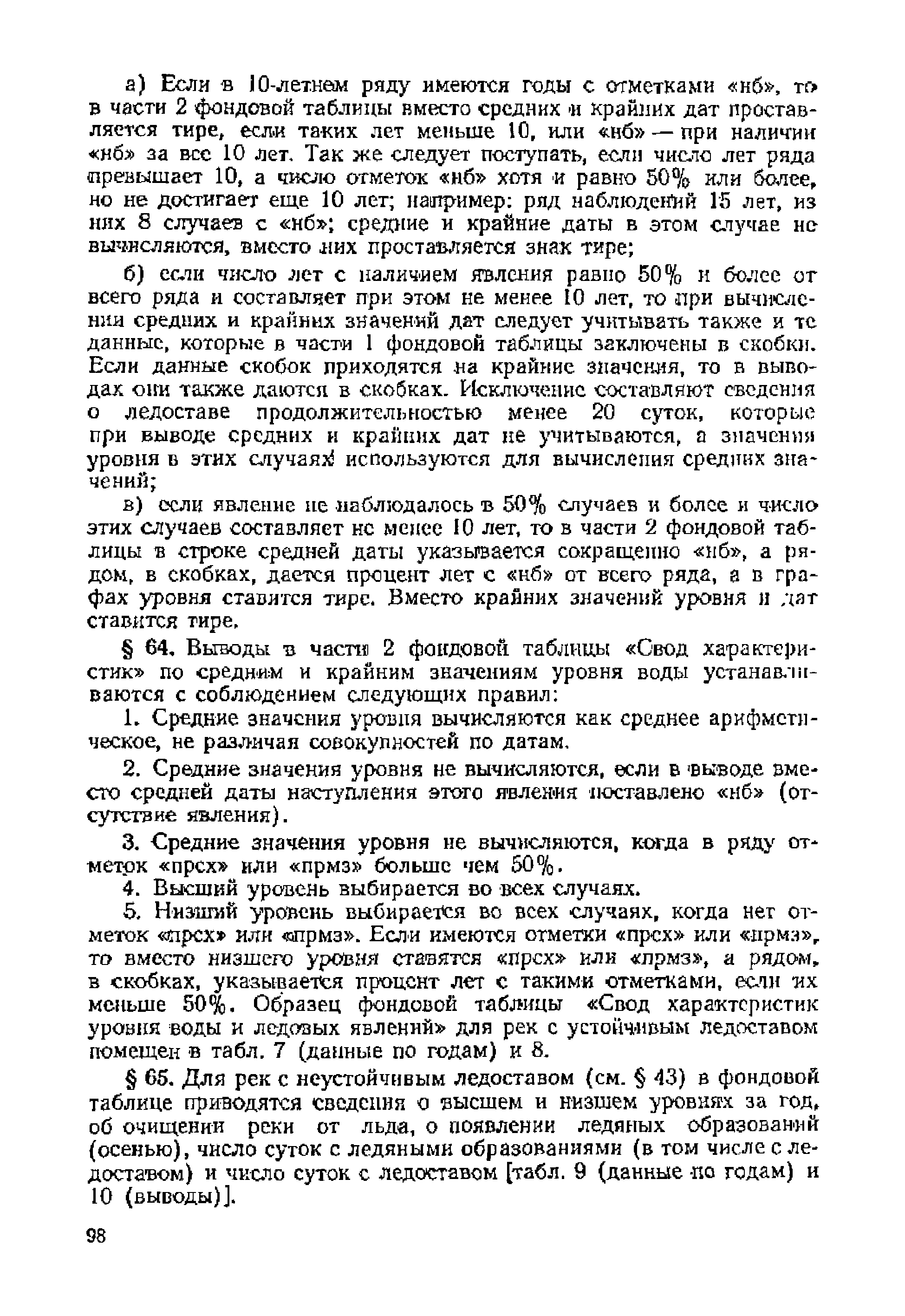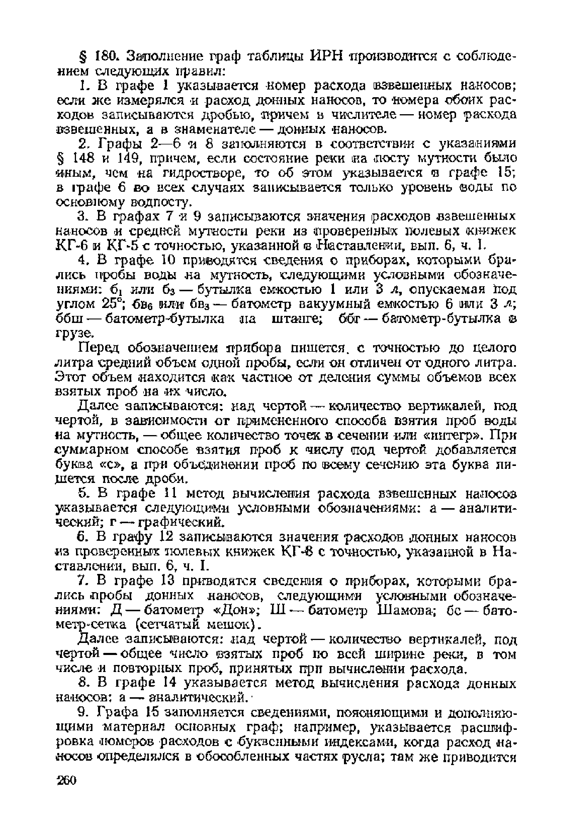 Наставление гидрометеорологическим станциям и постам. Выпуск 6. Часть III. Составление и подготовка к печати гидрологического ежегодника| Статус: | частично действует | | Название рус.: | Наставление гидрометеорологическим станциям и постам. Выпуск 6. Часть III. Составление и подготовка к печати гидрологического ежегодника | | Дата добавления в базу: | 01.01.2019 | | Дата актуализации: | 01.01.2021 | | Дата введения: | 01.01.1959 | | Дата окончания срока действия: | 01.06.2020 | | Область применения: | Наставления гидрометеорологическим станциям и постам направлены на установление единообразия всех видов стандартных морских гидрологических наблюдений (измерений), обработки результатов и связанных с ними работ, проводимых на гидрометстанциях и постах Государственного комитета СССР по гидрометеорологии и контролю природной среды. | | Оглавление: | Предисловие Глава 1. Общие положения по составлению и изданию Гидрологического ежегодника 1 Содержание Гидрологического ежегодника и номенклатура издания 2 Организация работы по Гидрологическому ежегоднику в учреждениях Гидрометеорологической службы 3 Общие правила оформления Гидрологического ежегодника Глава 2. Сведения о реках, каналах, водохранилищах и озерах, на которых велись гидрологические наблюдения, и сведения о постах, результаты наблюдения на которых помещены в Гидрологическом ежегоднике 1 Алфавитный список рек, каналов, водохранилищ и озер, на которых велись наблюдения 2 Список постов, на которых велись гидрологические наблюдения 3 Описание постов и дополнения к описаниям. Ранее опубликованным в Ежегодниках Глава 3. Обзор режима рек в составе Гидрологического ежегодника Глава 4. Сведения об уровне воды в составе Гидрологического ежегодника 1 Таблица "Ежедневные уровни воды" 2 Таблица "Сведения об уровне воды по наблюдениям постов, по которым не приведена таблица ЕУВ" 3 Таблица "Многолетние характеристики уровня воды и ледовых явлений" Глава 5. Вычисление стока воды 1 Общие положения 2 Многолетняя однозначная связь между расходом и уровнем 3 Паводочные петли 4 Ледовый режим 5 Зарастание русла 6 Неустойчивость русла 7 Переменный подпор 8 Вычисление стока воды на ГЭС, гидроузлах и водозаборных сооружениях оросительных систем Глава 6. Сведения о стоке воды в составе Гидрологического ежегодника 1 Таблица "Измеренные расходы воды" 2 Таблица "Ежедневные расходы воды" 3 Таблица "Многолетние характеристики расхода воды" 4 Гидрологический анализ сведений о стоке воды Глава 7. Вычисление стока наносов 1 Вычисление стока взвешенных наносов на основе мутности единичных проб воды 2 Вычисление стока взвешенных наносов по графику зависимости между значениями расхода воды и расхода взвешенных наносов 3 Вычисление стока взвешенных наносов для периода межени в случае малой мутности 4 Вычисление стока донных наносов Глава 8. Сведения о стоке и крупности наносов в составе Ежегодника 1 Таблица "Измеренные расходы взвешенных и донных наносов" 2 Таблица "Средние расходы взвешенных и донных наносов" 3 Таблица "Крупность взвешенных и донных наносов и донных отложений" 4 Таблица "Удельный и объемный вес донных отложений" 5 Анализ и контроль результатов наблюдений Глава 9. Сведения о температуре воды, толщине льда и шуге в составе Ежегодника 1 Таблица "Средняя декадная температура воды" 2 Таблица "Ежедневная температура воды" 3 Таб