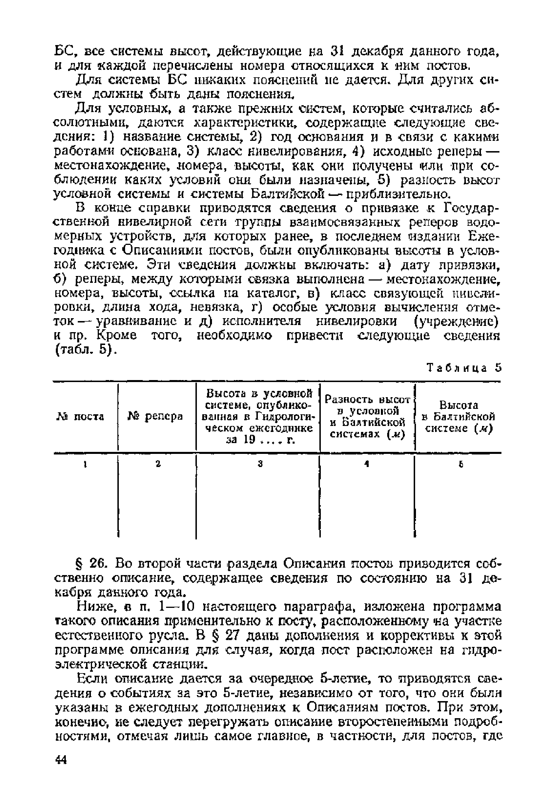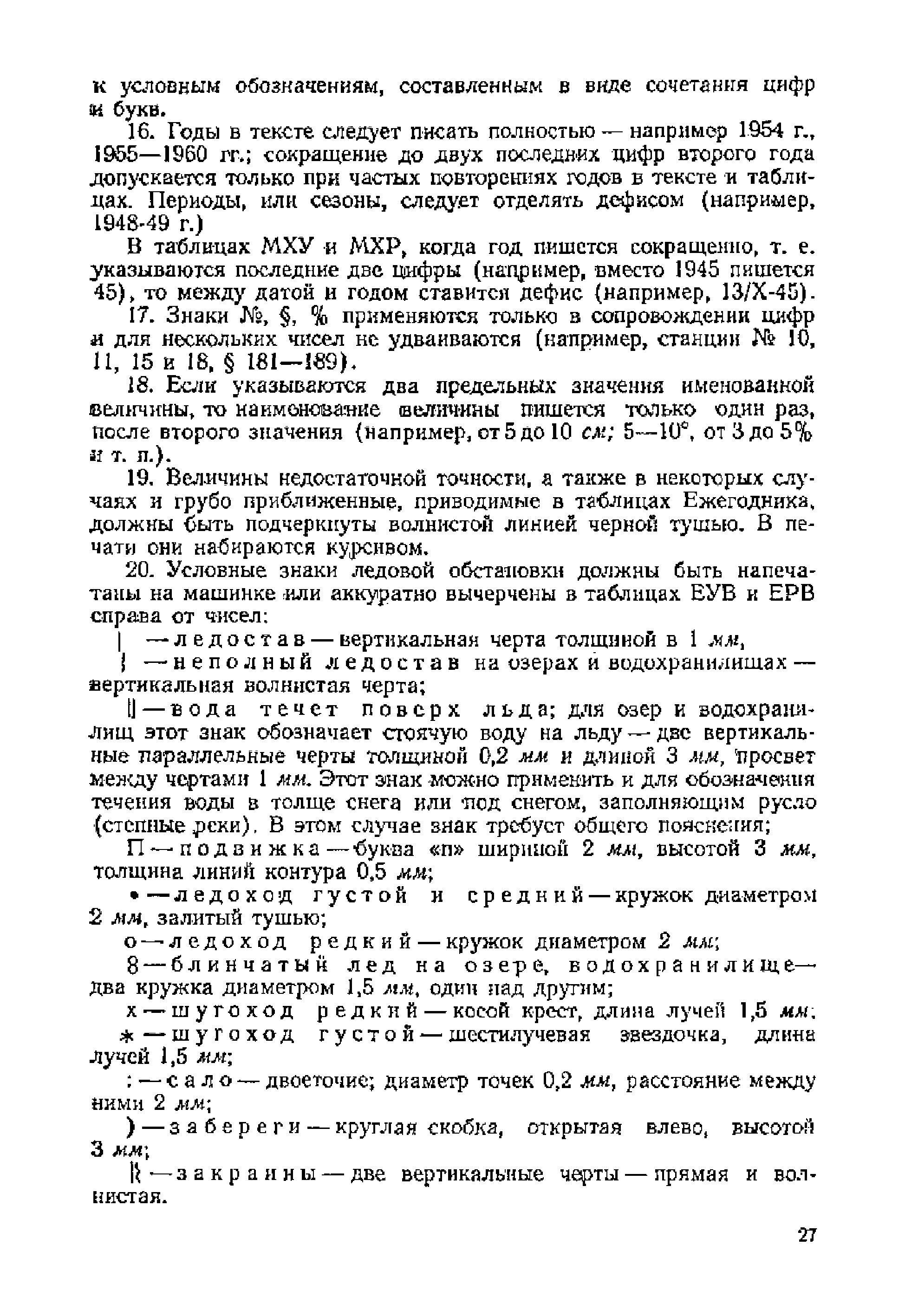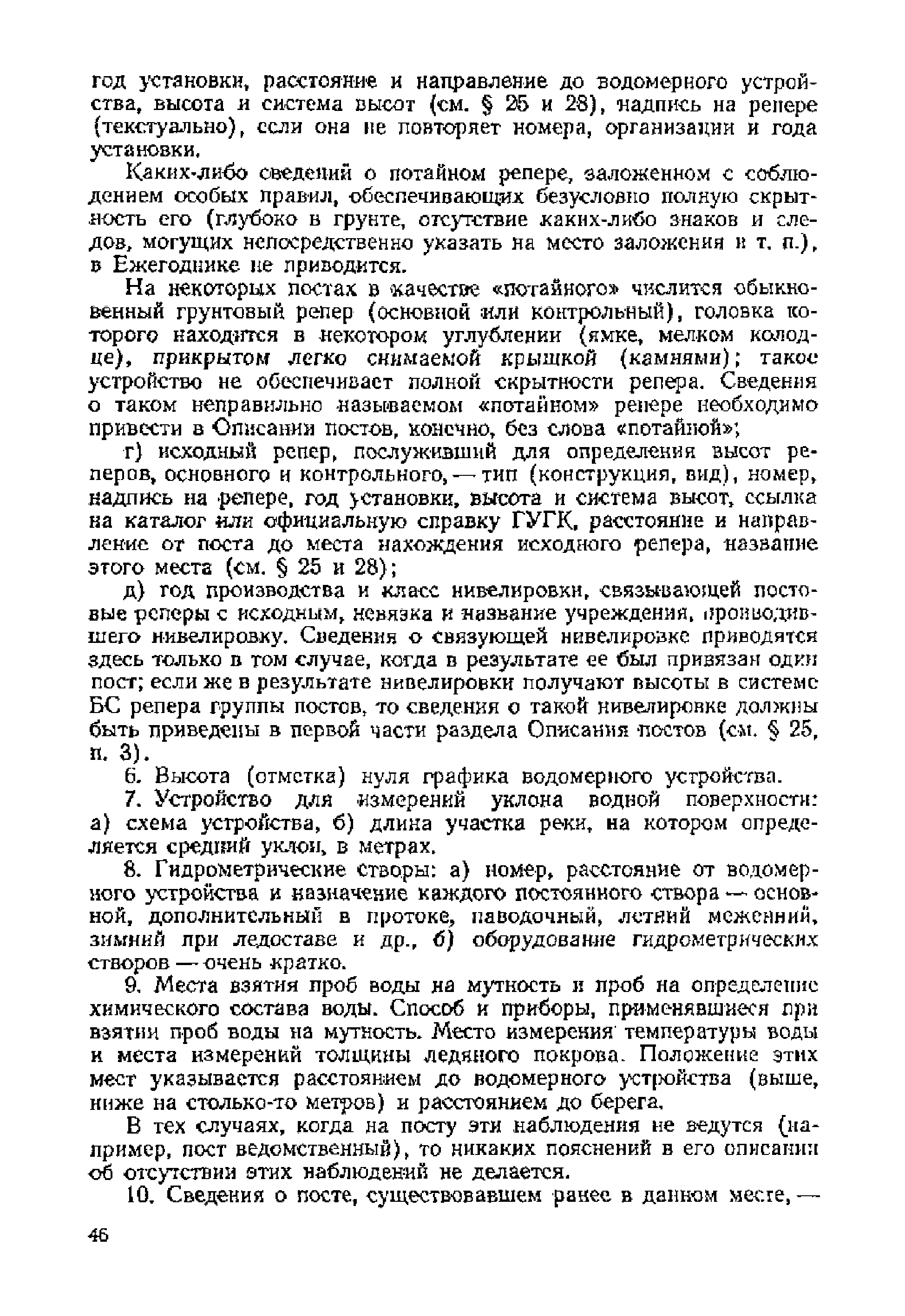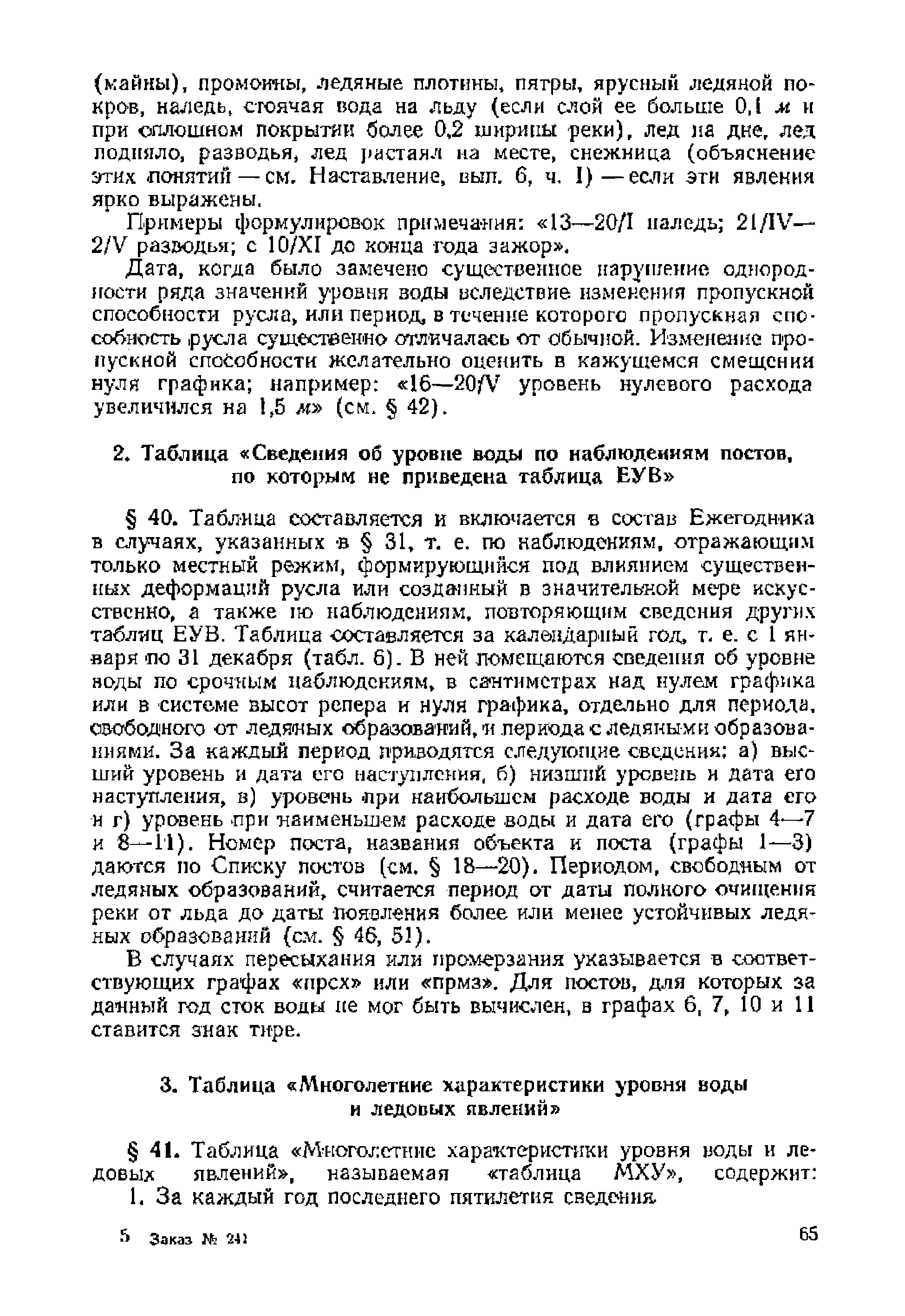Наставление гидрометеорологическим станциям и постам. Выпуск 6. Часть III. Составление и подготовка к печати гидрологического ежегодника| Статус: | частично действует | | Название рус.: | Наставление гидрометеорологическим станциям и постам. Выпуск 6. Часть III. Составление и подготовка к печати гидрологического ежегодника | | Дата добавления в базу: | 01.01.2019 | | Дата актуализации: | 01.01.2021 | | Дата введения: | 01.01.1959 | | Дата окончания срока действия: | 01.06.2020 | | Область применения: | Наставления гидрометеорологическим станциям и постам направлены на установление единообразия всех видов стандартных морских гидрологических наблюдений (измерений), обработки результатов и связанных с ними работ, проводимых на гидрометстанциях и постах Государственного комитета СССР по гидрометеорологии и контролю природной среды. | | Оглавление: | Предисловие Глава 1. Общие положения по составлению и изданию Гидрологического ежегодника 1 Содержание Гидрологического ежегодника и номенклатура издания 2 Организация работы по Гидрологическому ежегоднику в учреждениях Гидрометеорологической службы 3 Общие правила оформления Гидрологического ежегодника Глава 2. Сведения о реках, каналах, водохранилищах и озерах, на которых велись гидрологические наблюдения, и сведения о постах, результаты наблюдения на которых помещены в Гидрологическом ежегоднике 1 Алфавитный список рек, каналов, водохранилищ и озер, на которых велись наблюдения 2 Список постов, на которых велись гидрологические наблюдения 3 Описание постов и дополнения к описаниям. Ранее опубликованным в Ежегодниках Глава 3. Обзор режима рек в составе Гидрологического ежегодника Глава 4. Сведения об уровне воды в составе Гидрологического ежегодника 1 Таблица "Ежедневные уровни воды" 2 Таблица "Сведения об уровне воды по наблюдениям постов, по которым не приведена таблица ЕУВ" 3 Таблица "Многолетние характеристики уровня воды и ледовых явлений" Глава 5. Вычисление стока воды 1 Общие положения 2 Многолетняя однозначная связь между расходом и уровнем 3 Паводочные петли 4 Ледовый режим 5 Зарастание русла 6 Неустойчивость русла 7 Переменный подпор 8 Вычисление стока воды на ГЭС, гидроузлах и водозаборных сооружениях оросительных систем Глава 6. Сведения о стоке воды в составе Гидрологического ежегодника 1 Таблица "Измеренные расходы воды" 2 Таблица "Ежедневные расходы воды" 3 Таблица "Многолетние характеристики расхода воды" 4 Гидрологический анализ сведений о стоке воды Глава 7. Вычисление стока наносов 1 Вычисление стока взвешенных наносов на основе мутности единичных проб воды 2 Вычисление стока взвешенных наносов по графику зависимости между значениями расхода воды и расхода взвешенных наносов 3 Вычисление стока взвешенных наносов для периода межени в случае малой мутности 4 Вычисление стока донных наносов Глава 8. Сведения о стоке и крупности наносов в составе Ежегодника 1 Таблица "Измеренные расходы взвешенных и донных наносов" 2 Таблица "Средние расходы взвешенных и донных наносов" 3 Таблица "Крупность взвешенных и донных наносов и донных отложений" 4 Таблица "Удельный и объемный вес донных отложений" 5 Анализ и контроль результатов наблюдений Глава 9. Сведения о температуре воды, толщине льда и шуге в составе Ежегодника 1 Таблица "Средняя декадная температура воды" 2 Таблица "Ежедневная температура воды" 3 Таб