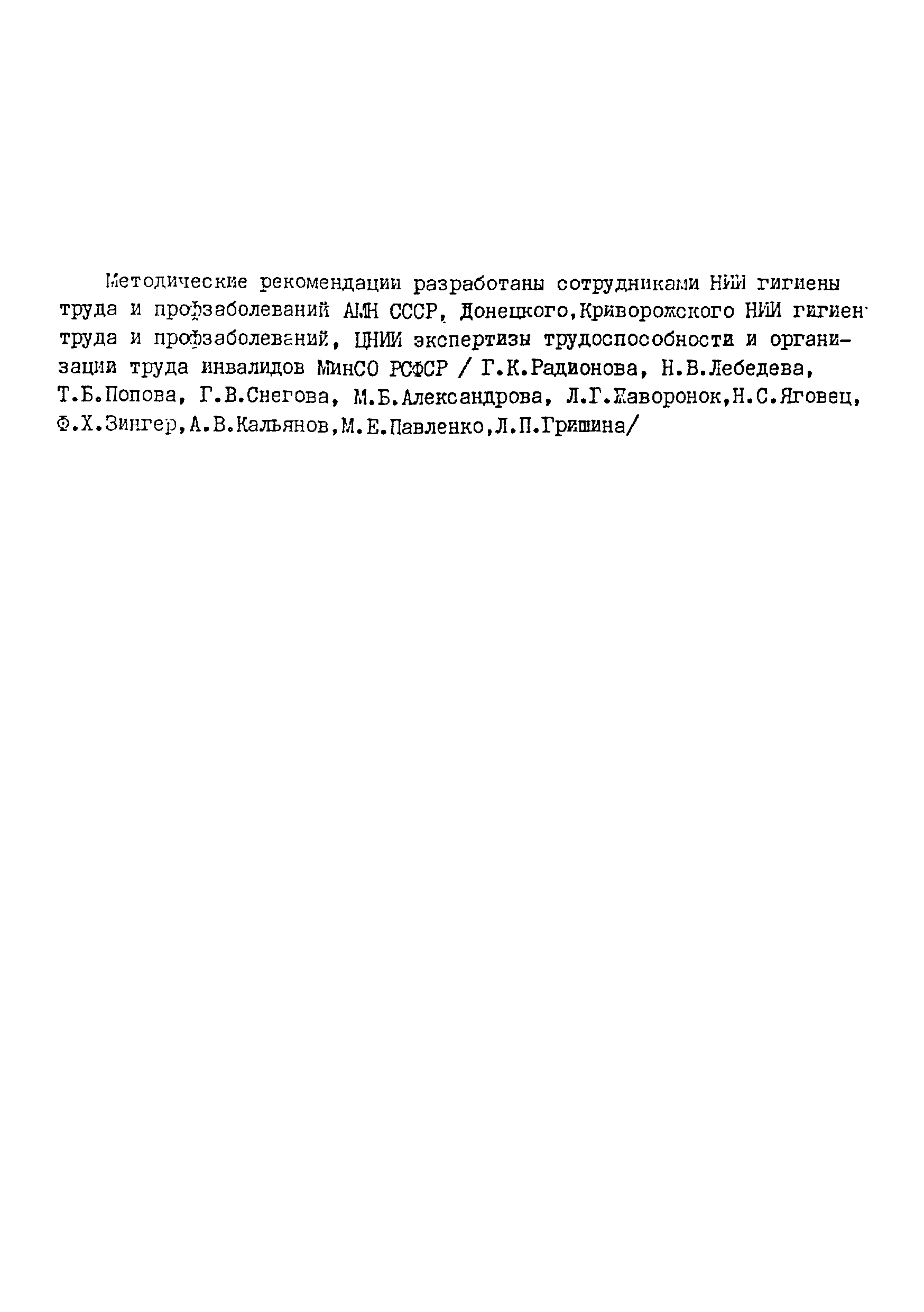 | Разработан: | НИИ гигиены труда и профзаболеваний АМН СССР ЦНИИ экспертизы трудоспособности и организации труда инвалидов МинСО РСФСР