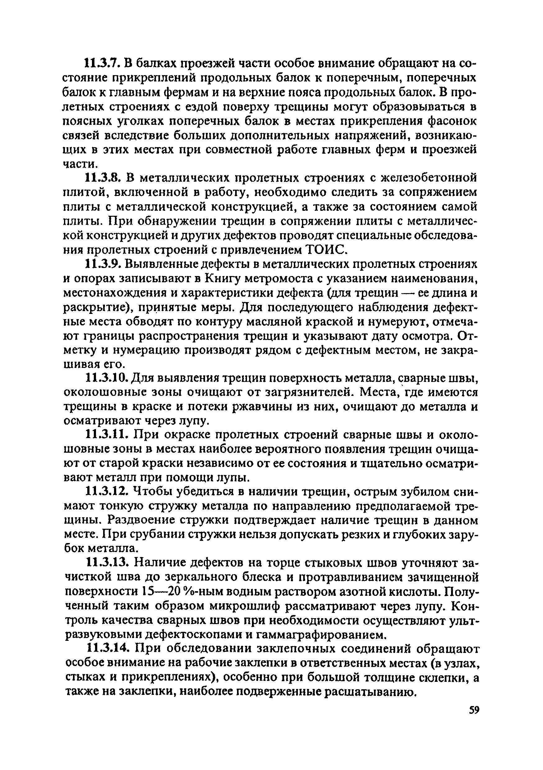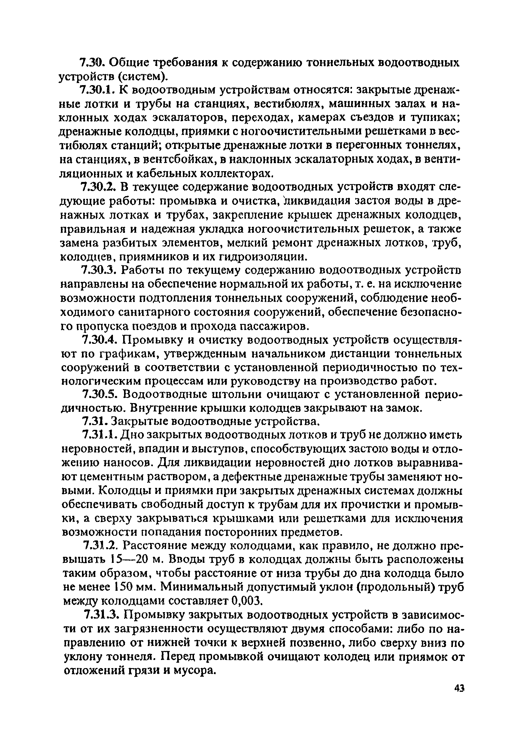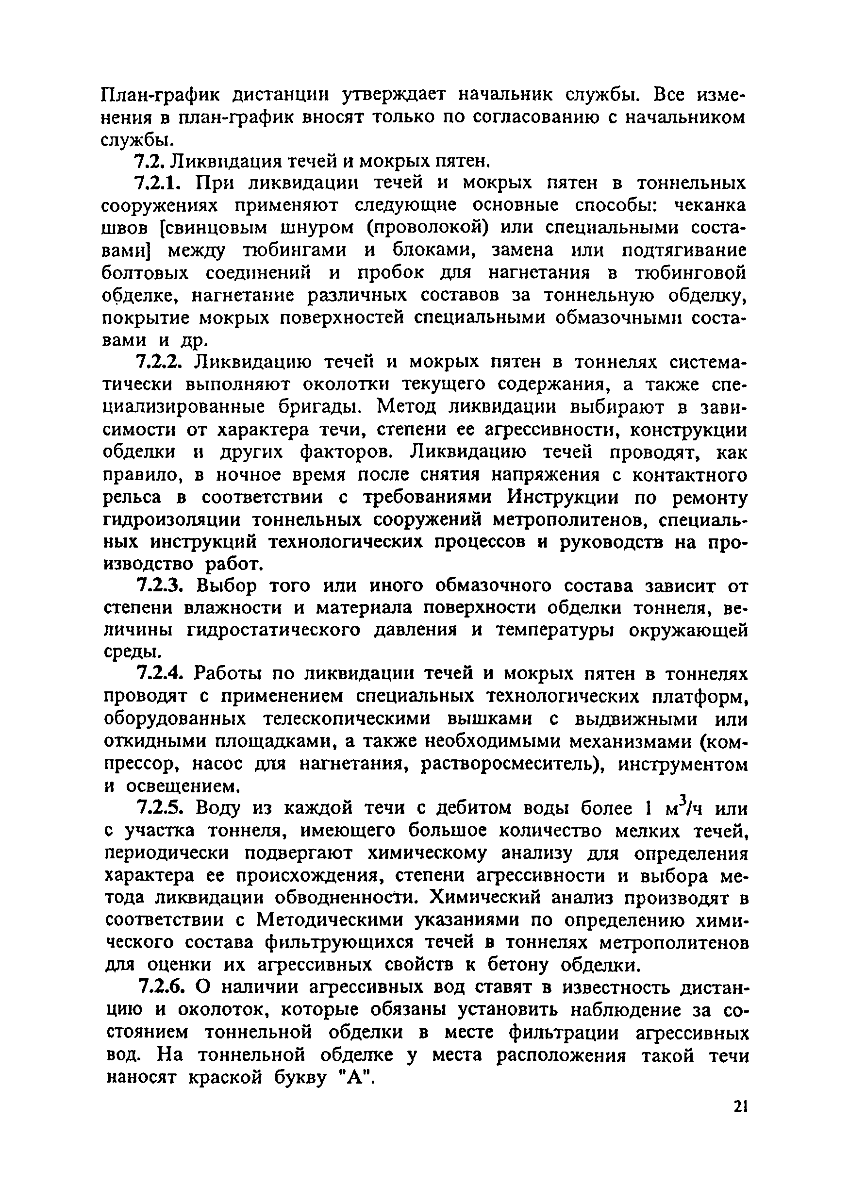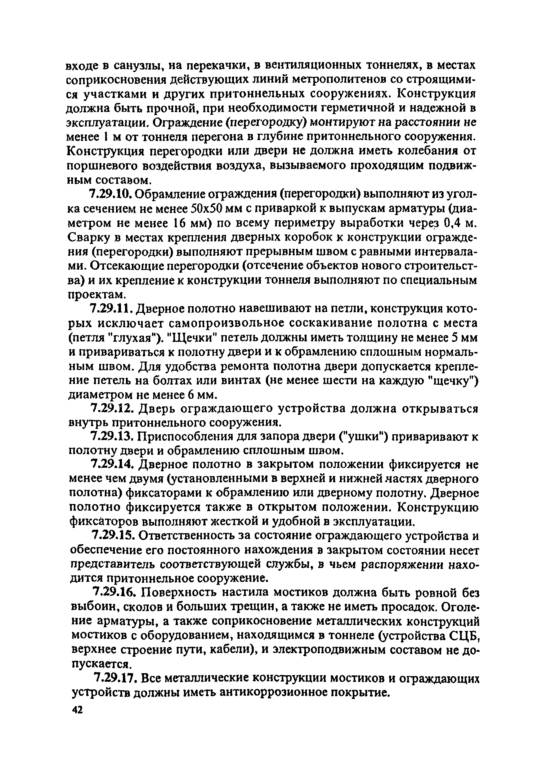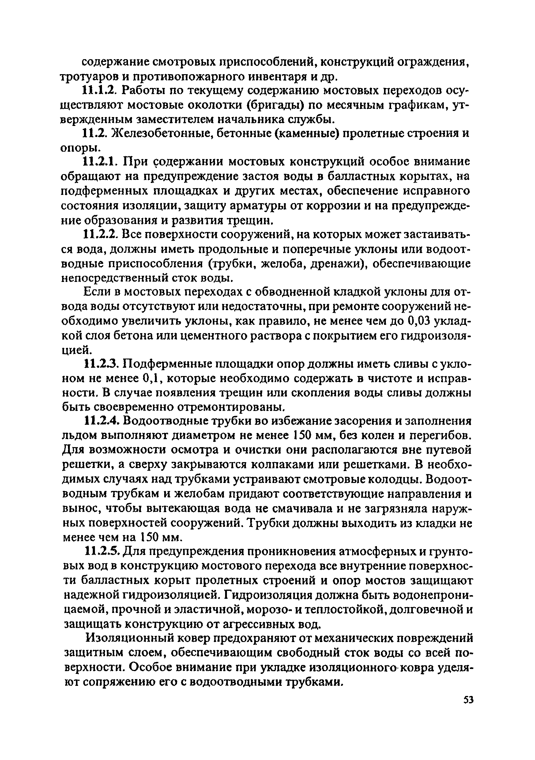 Инструкция по текущему содержанию искусственных сооружений метрополитенов| Статус: | действует | | Название рус.: | Инструкция по текущему содержанию искусственных сооружений метрополитенов | | Дата добавления в базу: | 01.01.2018 | | Дата актуализации: | 01.01.2021 | | Область применения: | Инструкция устанавливает порядок надзора и текущего ремонта искусственных сооружений метрополитенов, а также ведение технической документации по этим объектам. | | Оглавление: | 1. Общие сведения 2. Организация содержания искусственных сооружения метрополитенов 3. Надзор за состоянием искусственных сооружений 4. Осмотр тоннельных сооружений 5. Осмотр наземных сооружений 6. Осмотр мостовых переходов 7. Текущий ремонт и уход за тоннельными сооружениями 8. Текущий ремонт и уход за наземными сооружениями 9. Содержание коллекторов рек 10. Прочие работы по обслуживанию и текущему ремонту искусственных сооружений 11. Текущий ремонт и уход за мостовыми переходами Приложение 1. Перечень аварийного запаса материалов, инструмента, инвентаря на околотке дистанции тоннельных сооружений метрополитена Приложение 2. Перечень основных работ по текущему содержанию искусственных сооружений, требующих ограждения места их проведения сигналами остановки Приложение 3. Табель оснащенности околотка текущего содержания тоннельных сооружений средствами механизации, оборудованием, инструментом, инвентарем и транспортом Приложение 4. Перечень работ по текущему содержанию искусственных сооружений метрополитенов н их периодичность | | Утверждён: | 05.06.1996 Хозяйственная ассоциация Метро