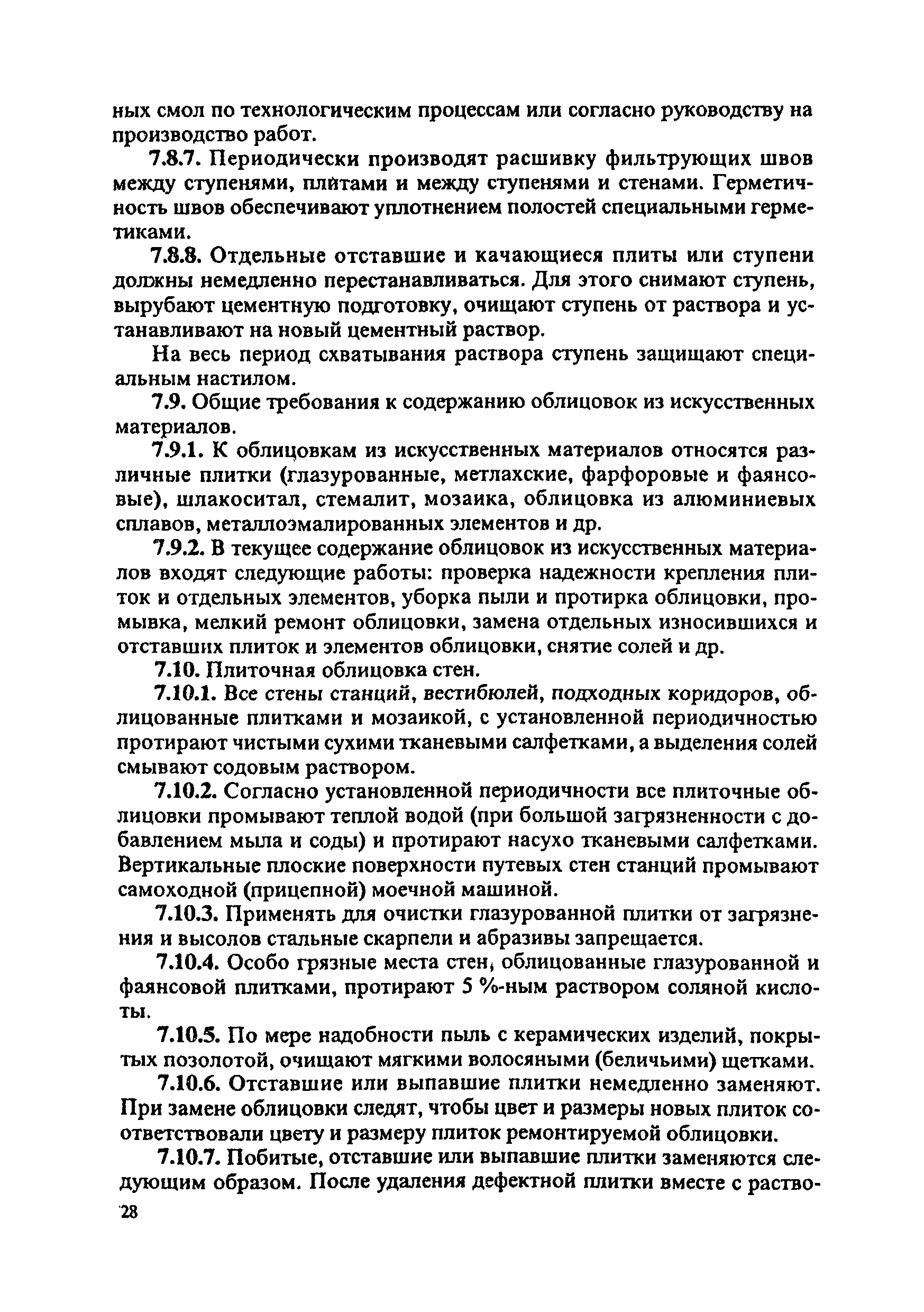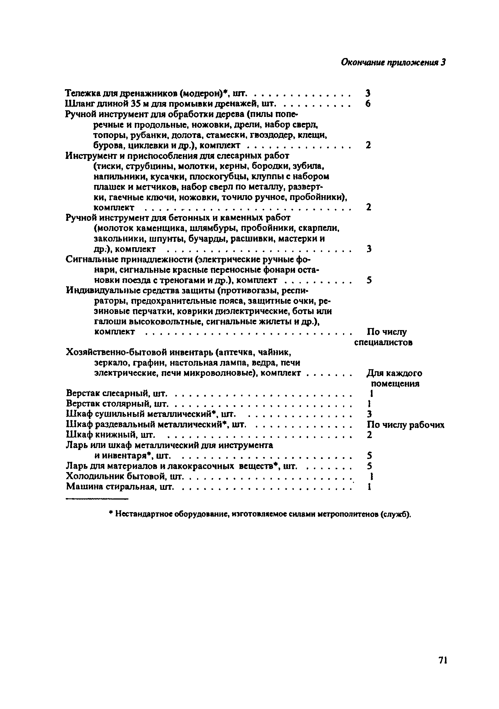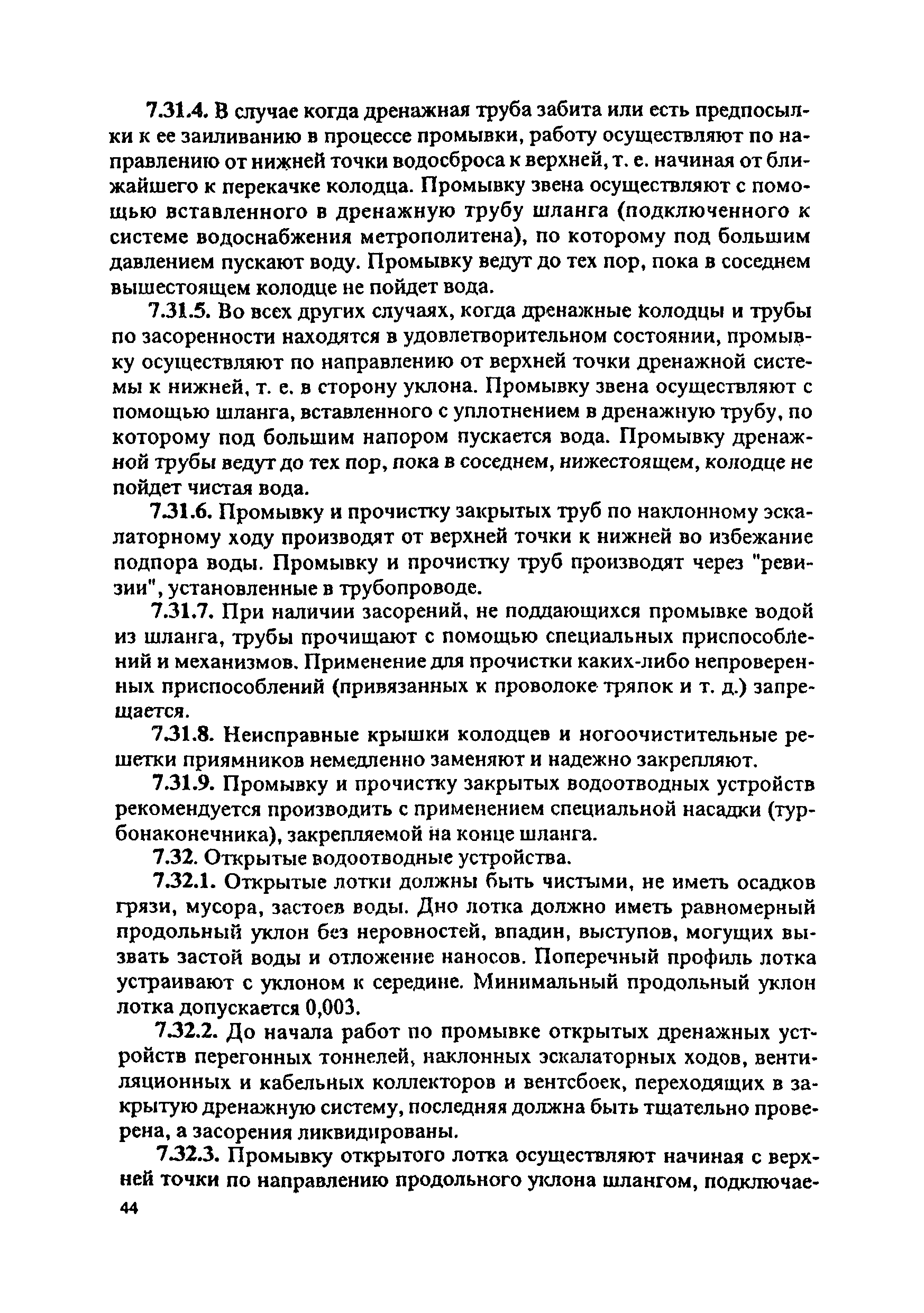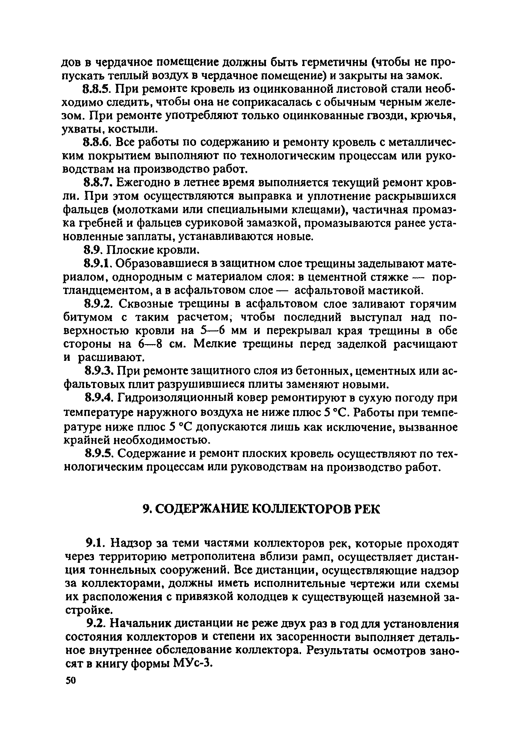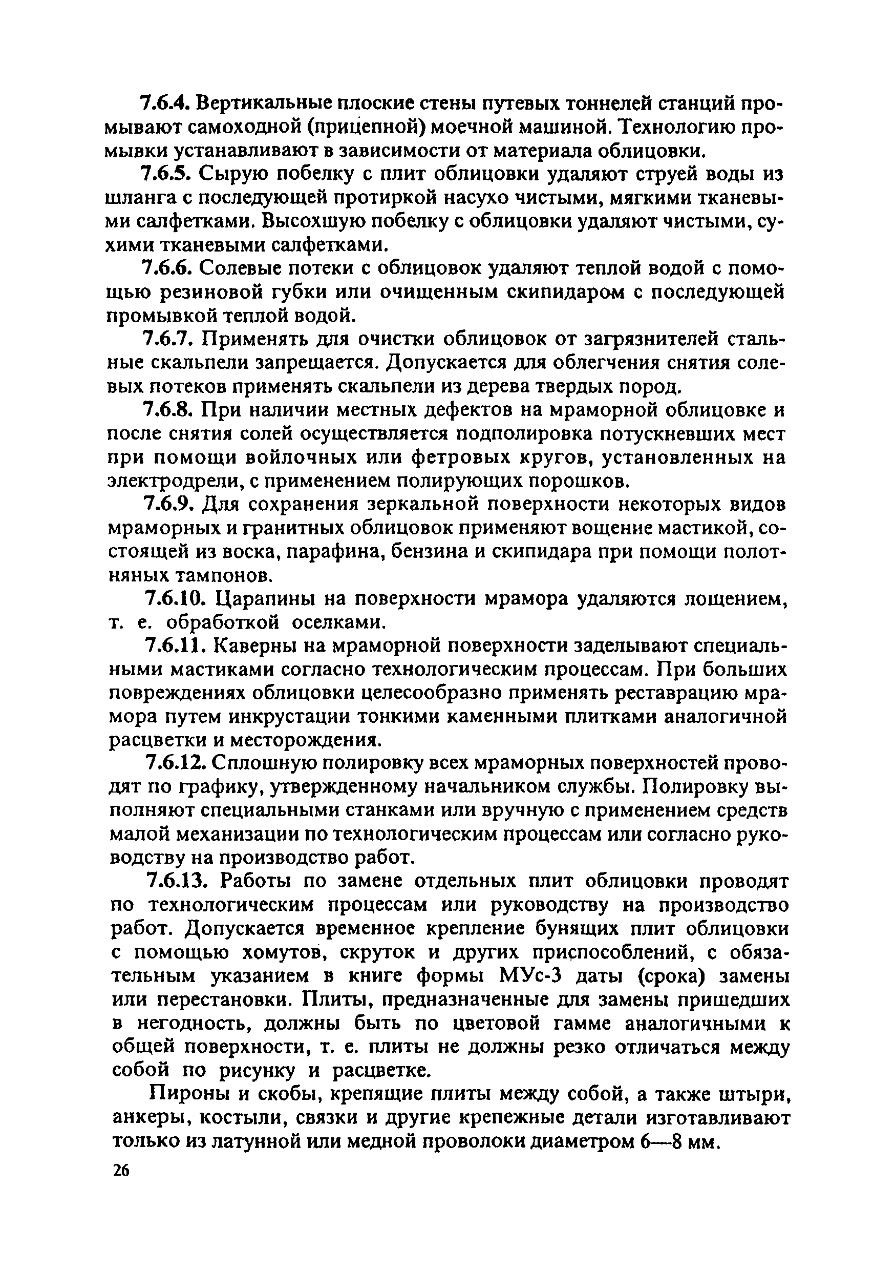 Инструкция по текущему содержанию искусственных сооружений метрополитенов| Статус: | действует | | Название рус.: | Инструкция по текущему содержанию искусственных сооружений метрополитенов | | Дата добавления в базу: | 01.01.2018 | | Дата актуализации: | 01.01.2021 | | Область применения: | Инструкция устанавливает порядок надзора и текущего ремонта искусственных сооружений метрополитенов, а также ведение технической документации по этим объектам. | | Оглавление: | 1. Общие сведения 2. Организация содержания искусственных сооружения метрополитенов 3. Надзор за состоянием искусственных сооружений 4. Осмотр тоннельных сооружений 5. Осмотр наземных сооружений 6. Осмотр мостовых переходов 7. Текущий ремонт и уход за тоннельными сооружениями 8. Текущий ремонт и уход за наземными сооружениями 9. Содержание коллекторов рек 10. Прочие работы по обслуживанию и текущему ремонту искусственных сооружений 11. Текущий ремонт и уход за мостовыми переходами Приложение 1. Перечень аварийного запаса материалов, инструмента, инвентаря на околотке дистанции тоннельных сооружений метрополитена Приложение 2. Перечень основных работ по текущему содержанию искусственных сооружений, требующих ограждения места их проведения сигналами остановки Приложение 3. Табель оснащенности околотка текущего содержания тоннельных сооружений средствами механизации, оборудованием, инструментом, инвентарем и транспортом Приложение 4. Перечень работ по текущему содержанию искусственных сооружений метрополитенов н их периодичность | | Утверждён: | 05.06.1996 Хозяйственная ассоциация Метро