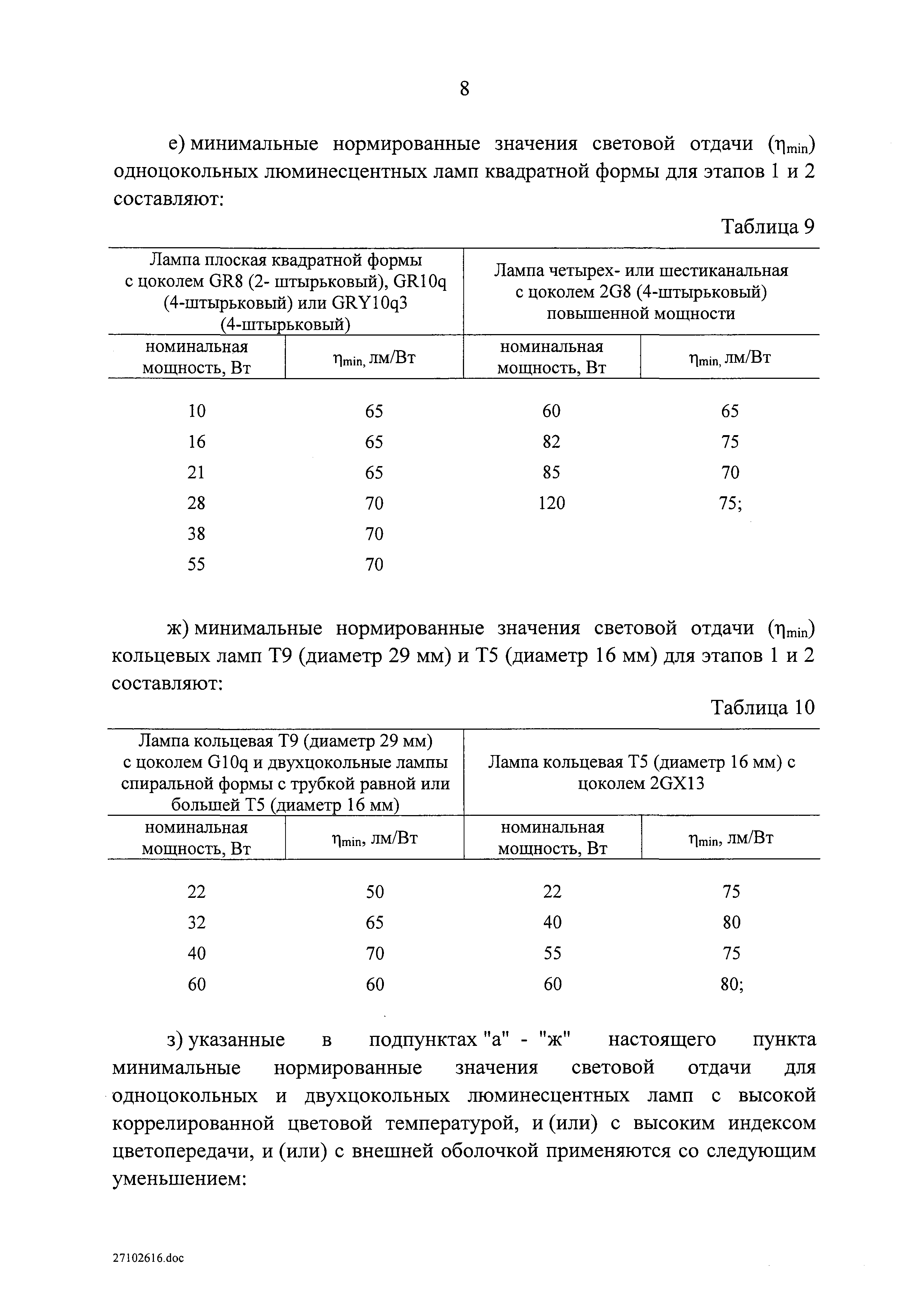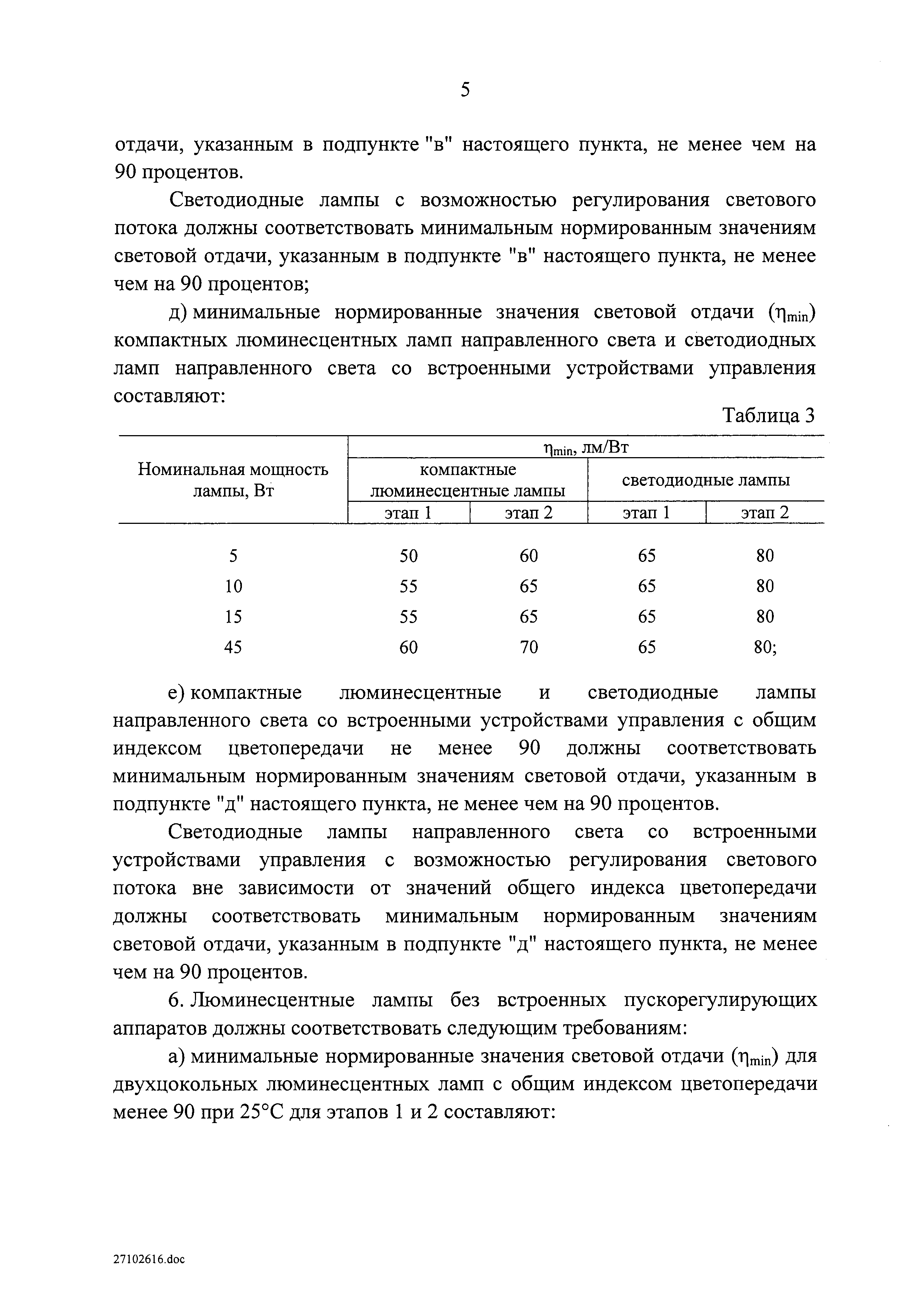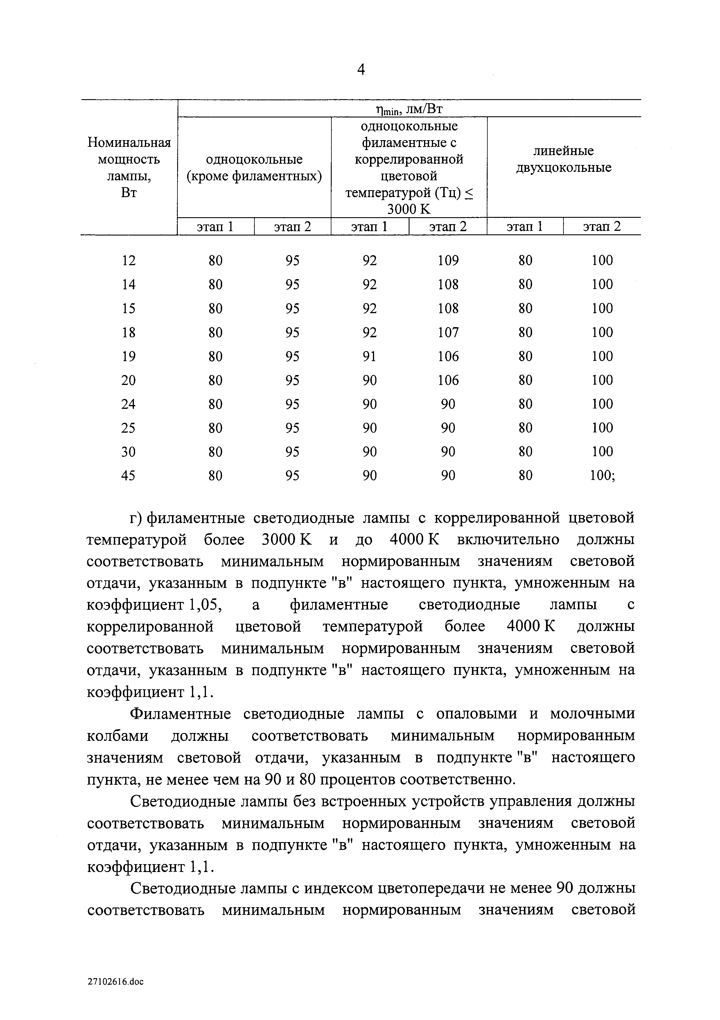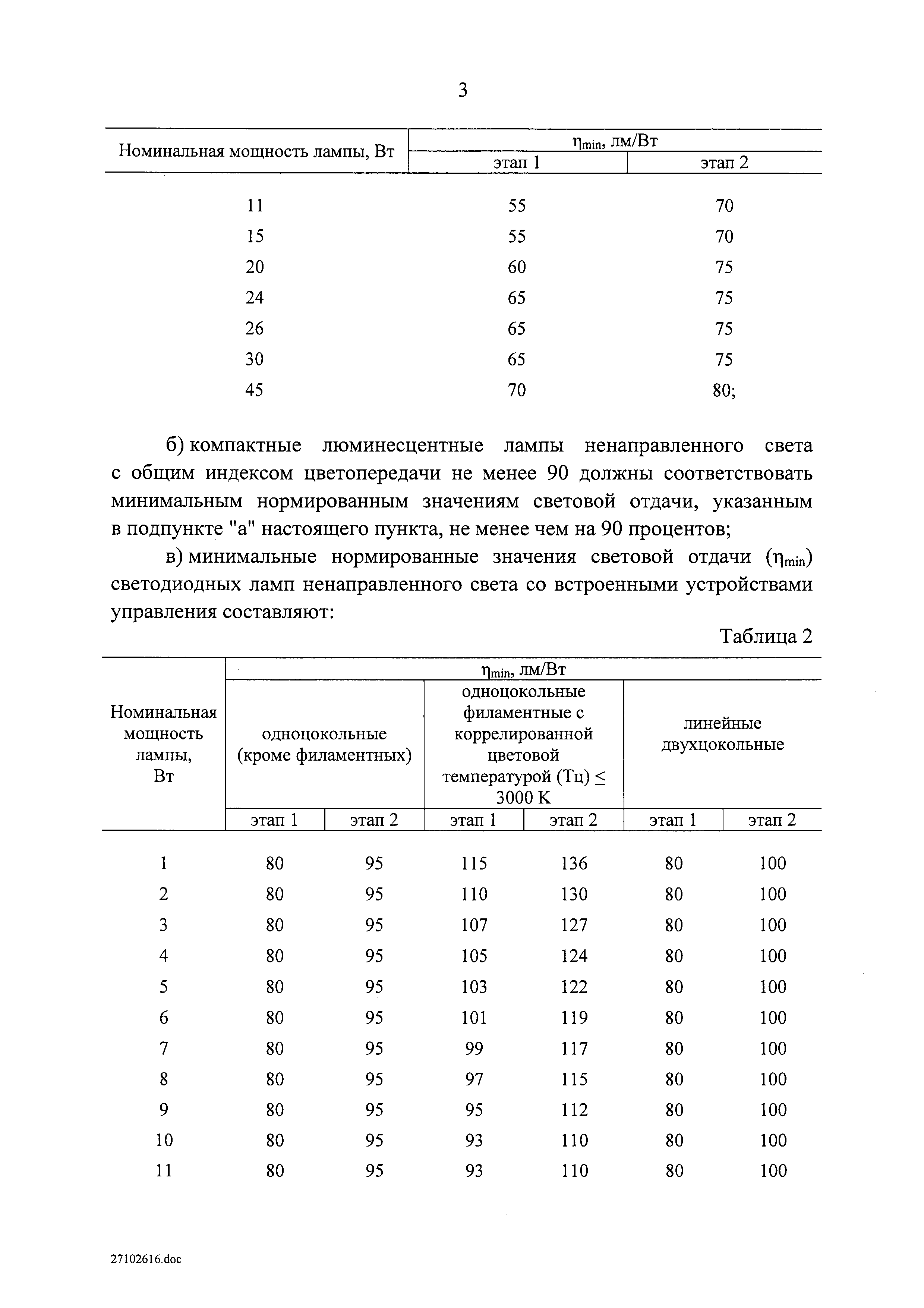 | Оглавление: | I. Основные положения II. Требования к энергетической эффективности ламп общего назначения III. Требования к эксплуатационным характеристикам ламп общего назначения IV. Требования к энергетической эффективности светильников общего назначения V. Требования к эксплуатационным характеристикам светильников общего назначения |