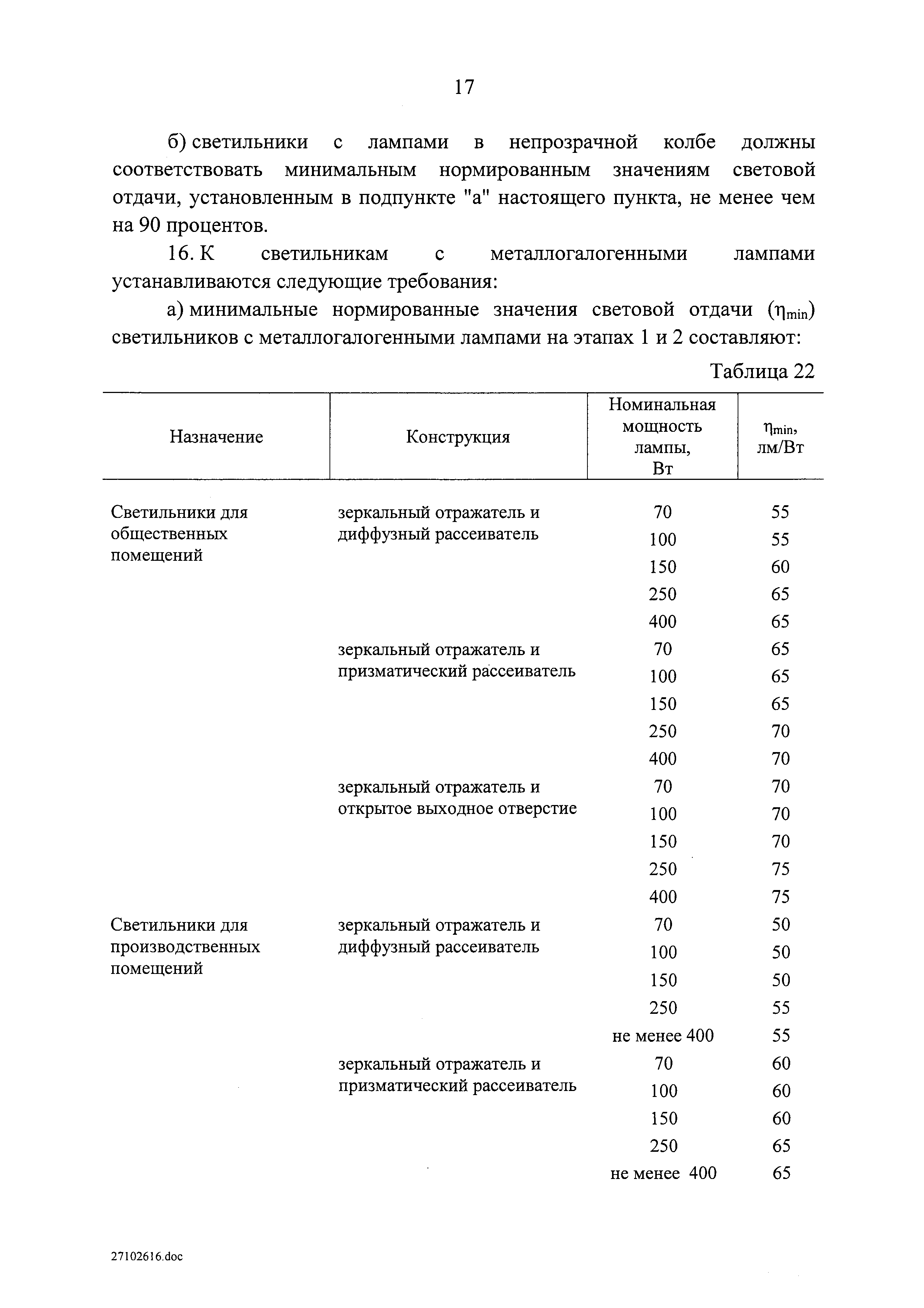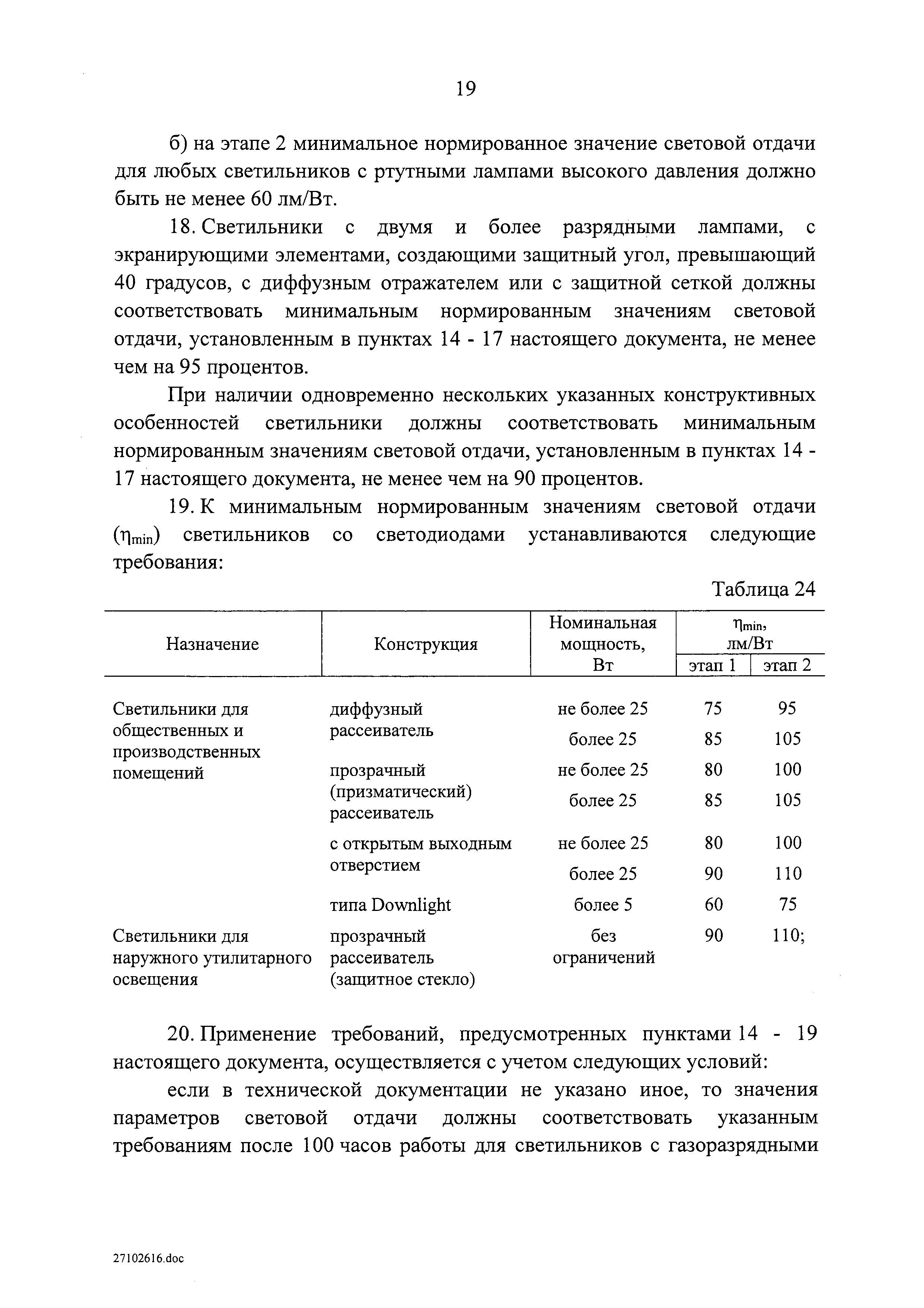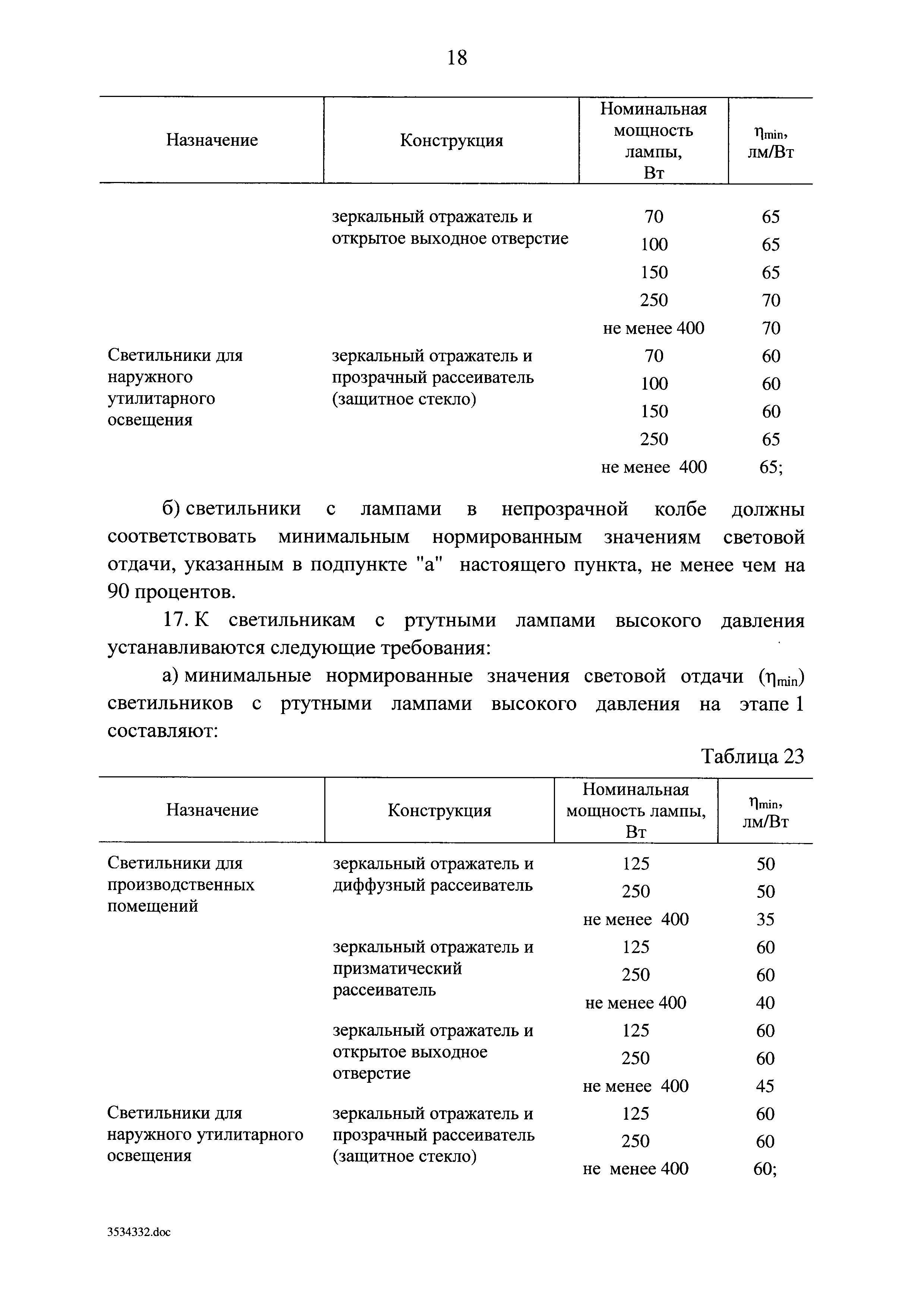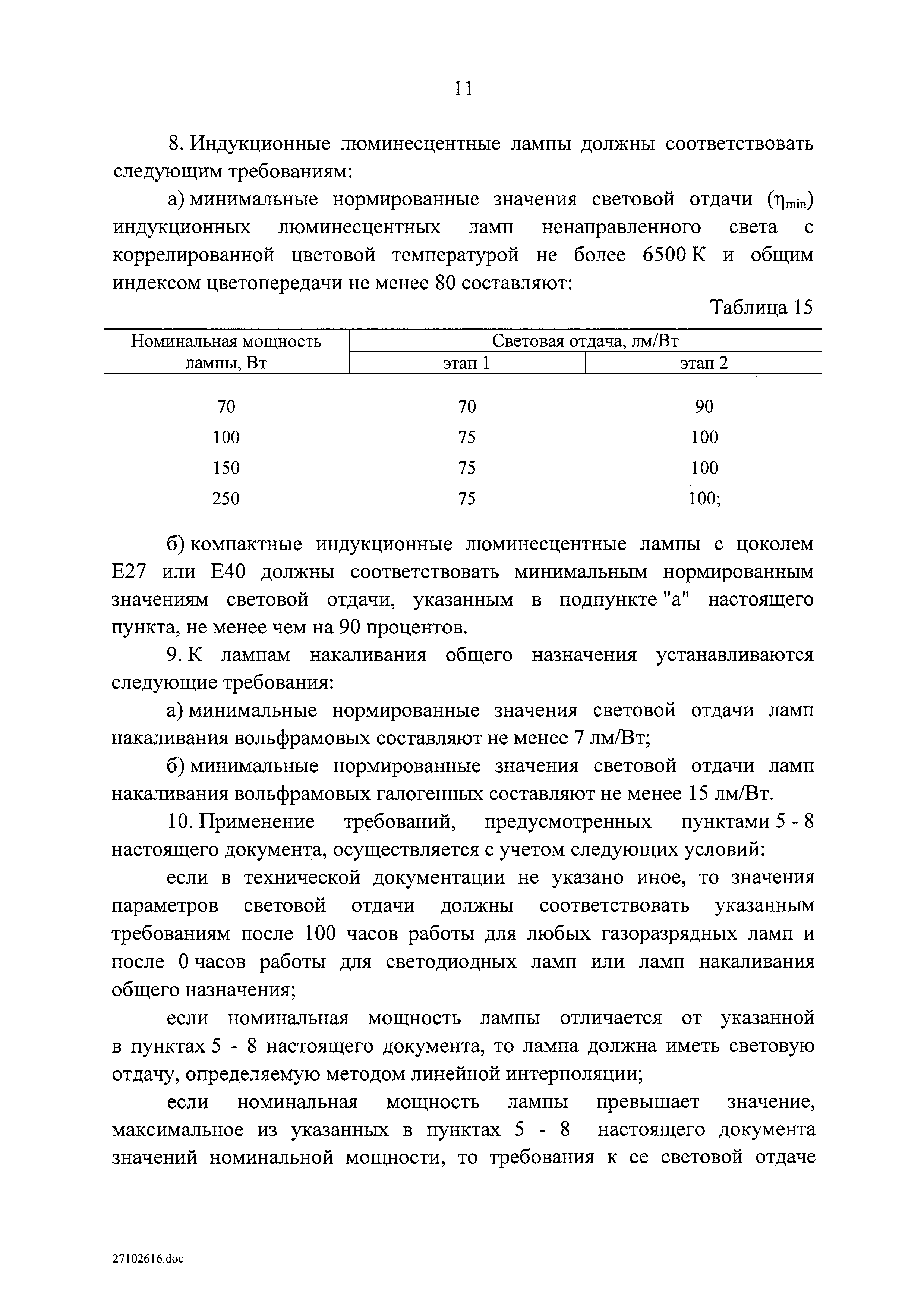 | Оглавление: | I. Основные положения II. Требования к энергетической эффективности ламп общего назначения III. Требования к эксплуатационным характеристикам ламп общего назначения IV. Требования к энергетической эффективности светильников общего назначения V. Требования к эксплуатационным характеристикам светильников общего назначения |