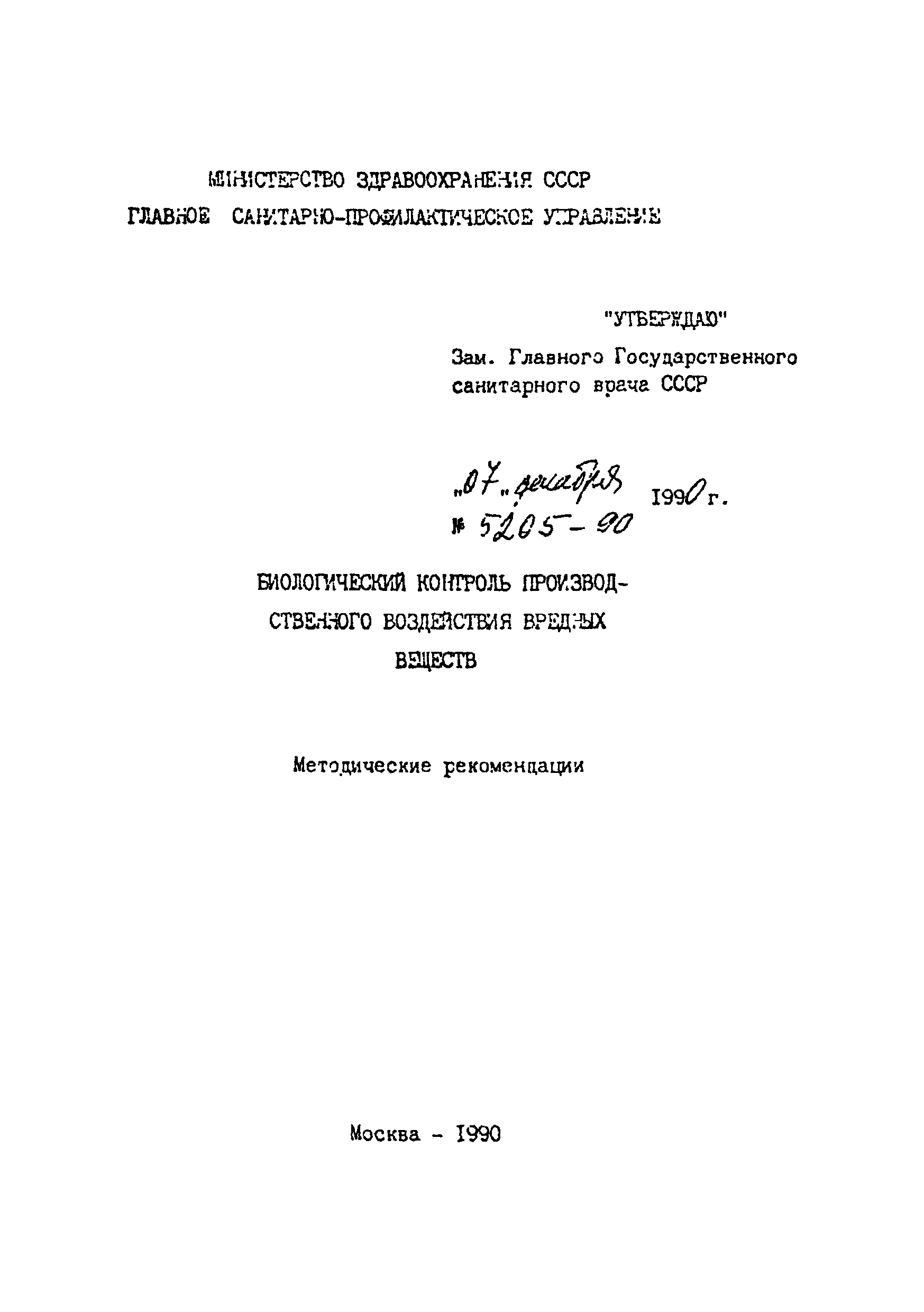 | Утверждён: | 07.12.1990 Заместитель Главного государственного санитарного врача СССР |