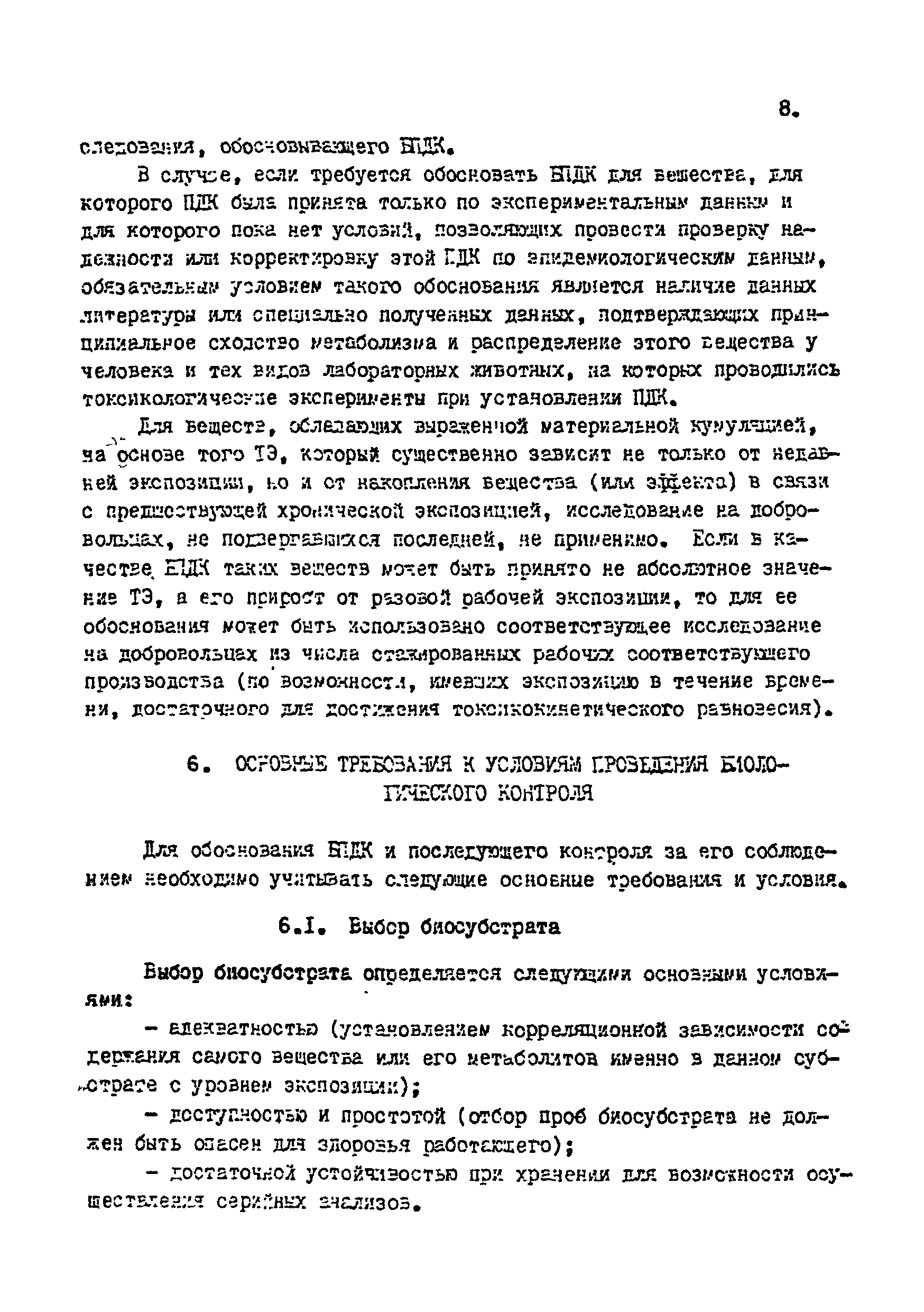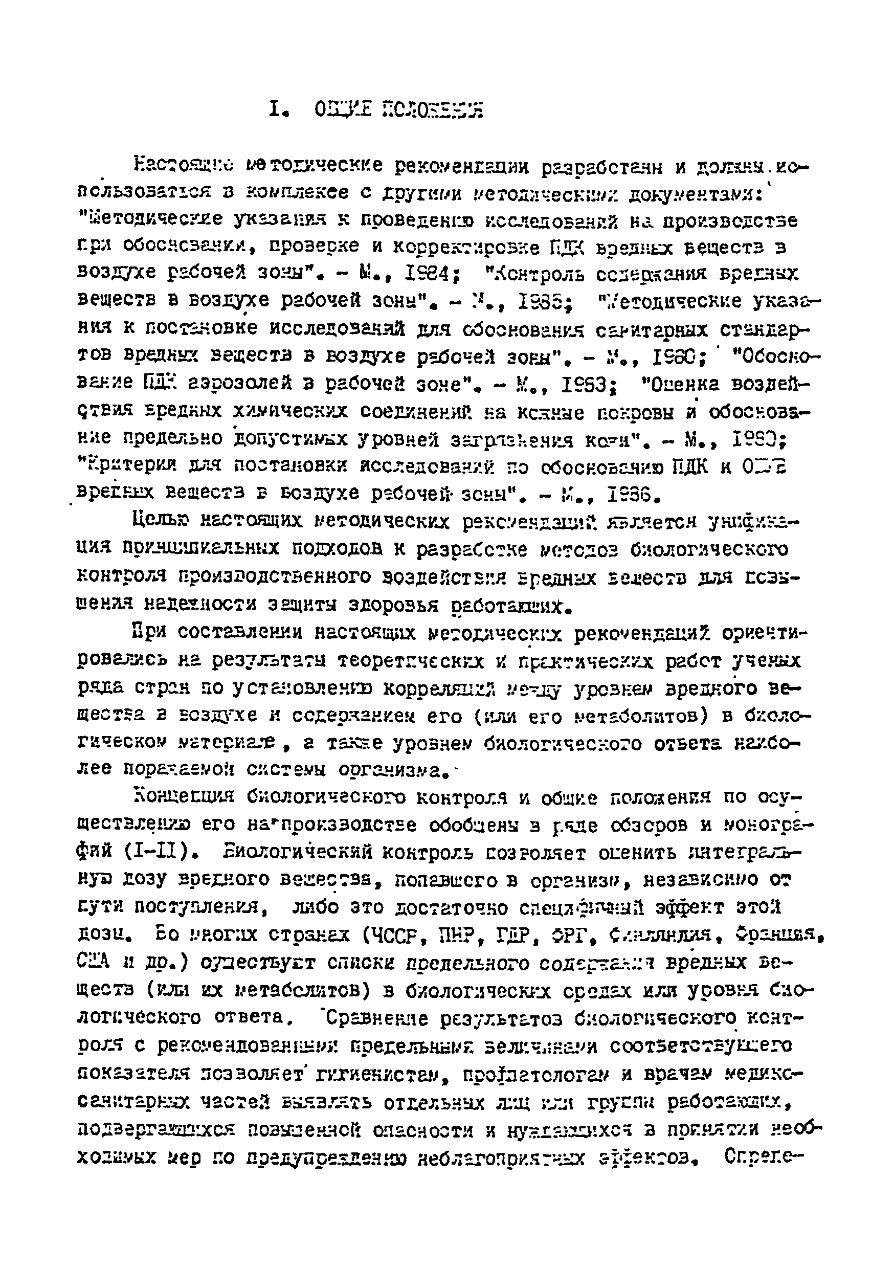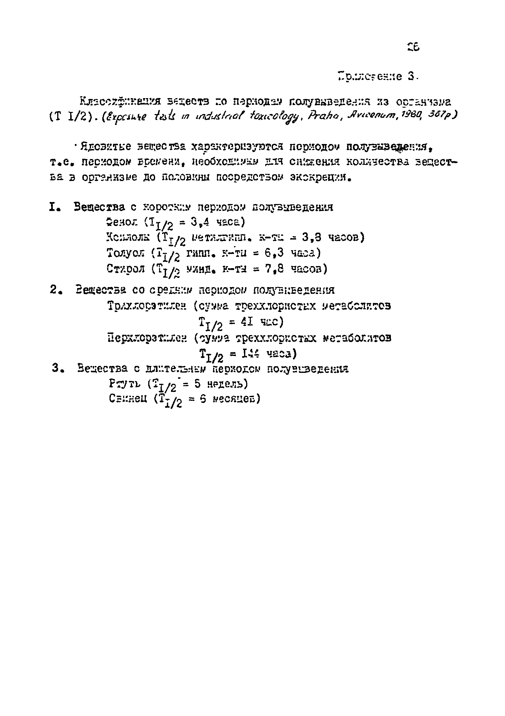 | Оглавление: | 1. Общие положения 2. Основные понятия и определения 3. Выбор веществ и определение условий для разработки тестов экспозиции и обоснования биологической ПДК 4. Факторы, которые следует учитывать при разработке ТЭ 4.1. Особенности процесса токсикокинетики 4.2. Время воздействия 4.3. Условия предшествующей экспозиции 4.4. Анатомо-функциональные особенности организма 4.5. Дополнительные трудности при разработке ТЭ 5. Методические подходы к обоснованию биологической ПДК (БПДК) 6. Основные требования к условиям проведения биологического контроля 6.1. Выбор биосубстрата 6.2. Сроки отбора проб биологического материала 6.3. Подбор групп работающих 6.4. Исследования на добровольцах 6.5. Эксперименты на животных 6.6. Требования к методам биологического контроля Приложение 1. Обоснование биологической ПДК толуола (пример практического использования настоящих рекомендаций) Приложение 2. Тест-экспозиции и биологический безопасный уровень воздействия антихолинэстеразных веществ Приложение 3. Классификация веществ по периодам полувыведения из организма Приложение 4. Использование токсикокинетических моделей |