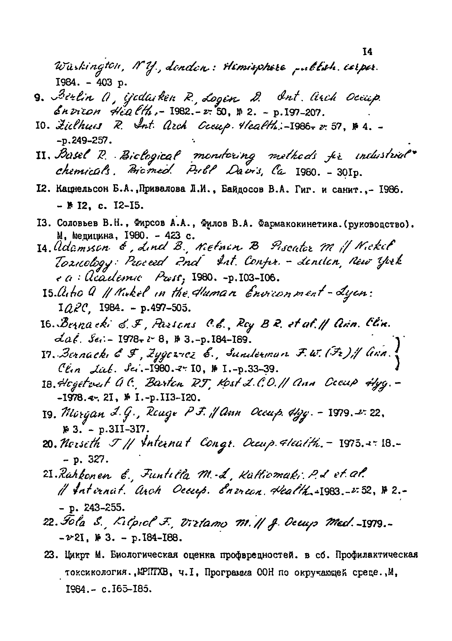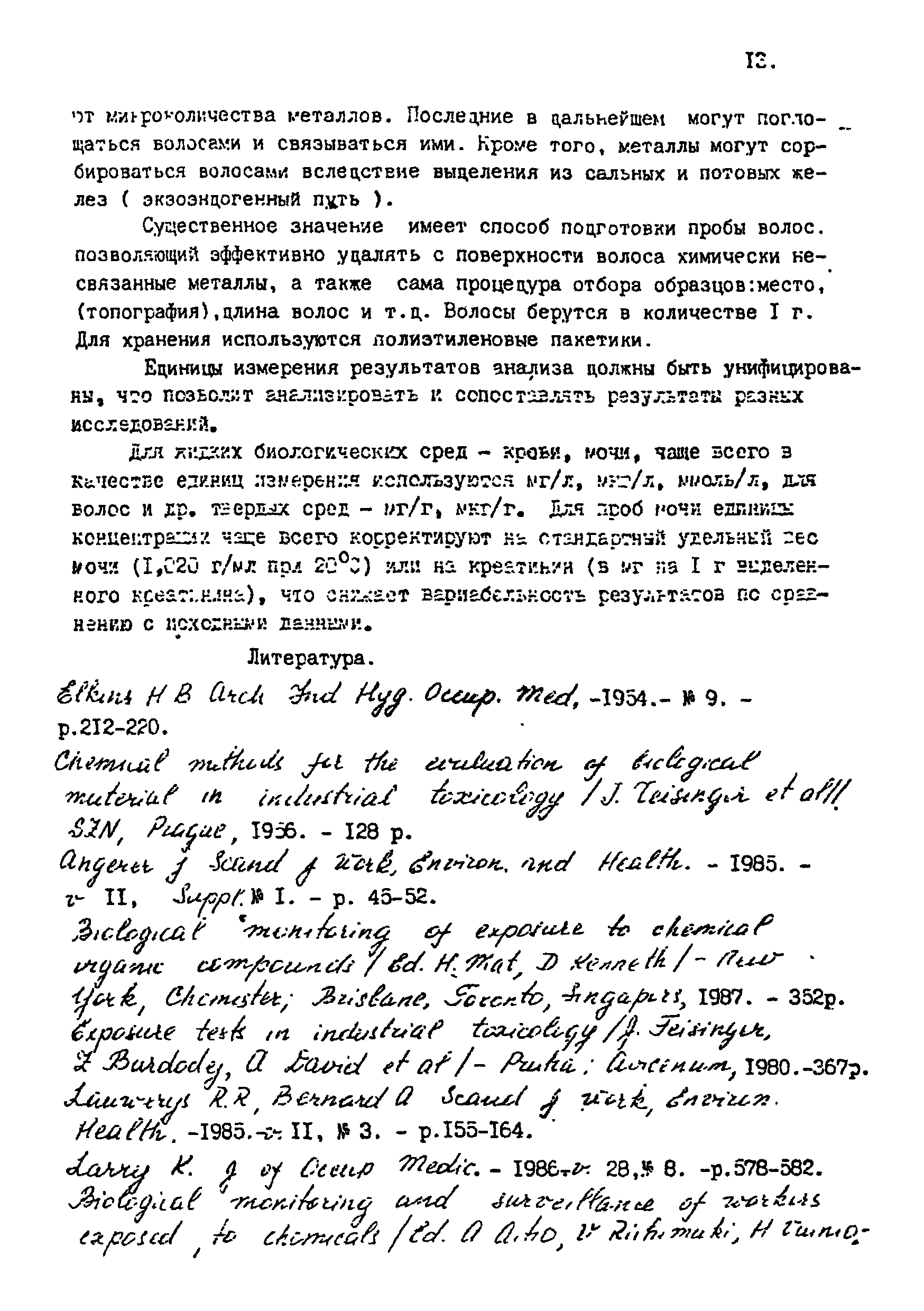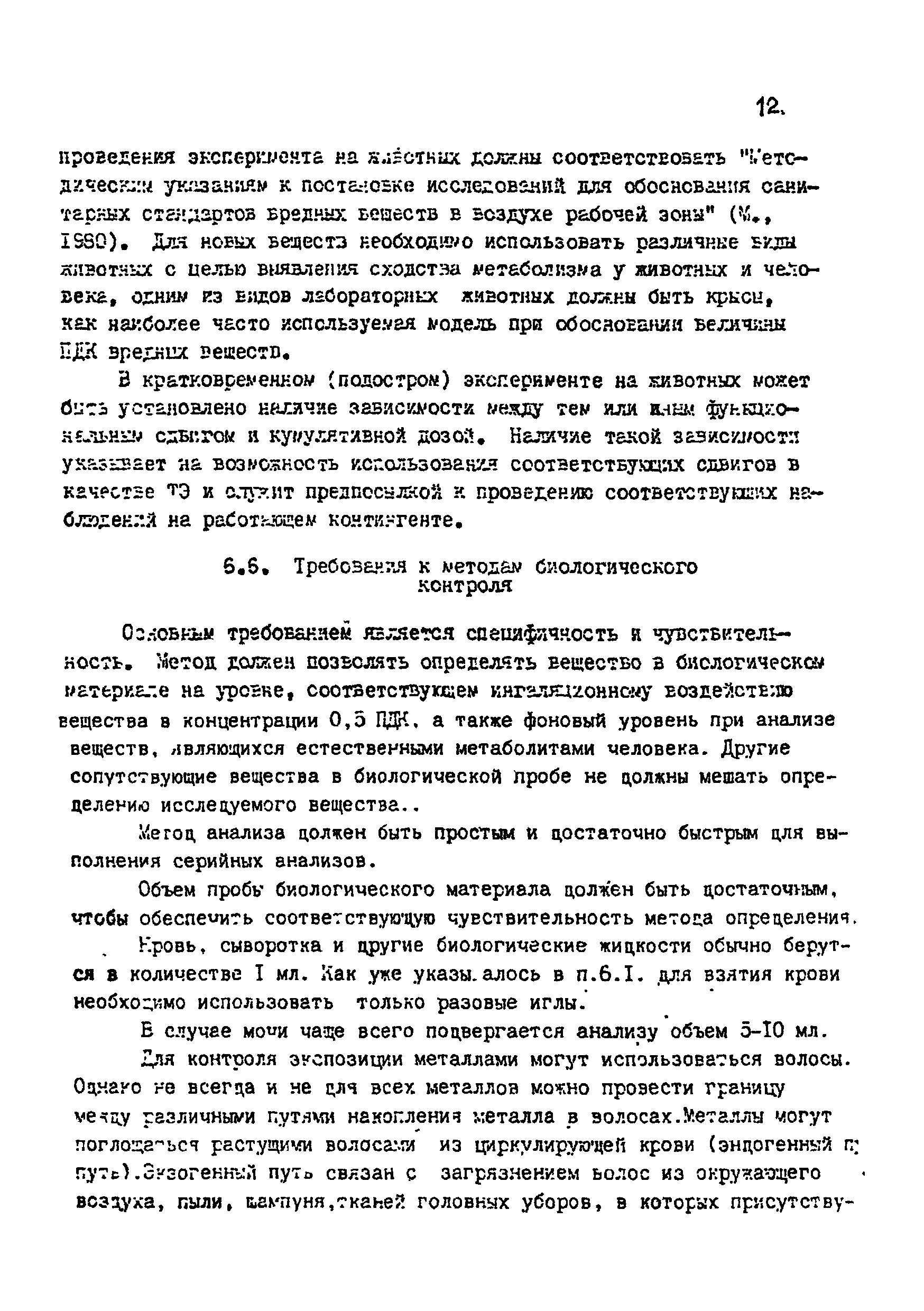 | Оглавление: | 1. Общие положения 2. Основные понятия и определения 3. Выбор веществ и определение условий для разработки тестов экспозиции и обоснования биологической ПДК 4. Факторы, которые следует учитывать при разработке ТЭ 4.1. Особенности процесса токсикокинетики 4.2. Время воздействия 4.3. Условия предшествующей экспозиции 4.4. Анатомо-функциональные особенности организма 4.5. Дополнительные трудности при разработке ТЭ 5. Методические подходы к обоснованию биологической ПДК (БПДК) 6. Основные требования к условиям проведения биологического контроля 6.1. Выбор биосубстрата 6.2. Сроки отбора проб биологического материала 6.3. Подбор групп работающих 6.4. Исследования на добровольцах 6.5. Эксперименты на животных 6.6. Требования к методам биологического контроля Приложение 1. Обоснование биологической ПДК толуола (пример практического использования настоящих рекомендаций) Приложение 2. Тест-экспозиции и биологический безопасный уровень воздействия антихолинэстеразных веществ Приложение 3. Классификация веществ по периодам полувыведения из организма Приложение 4. Использование токсикокинетических моделей |