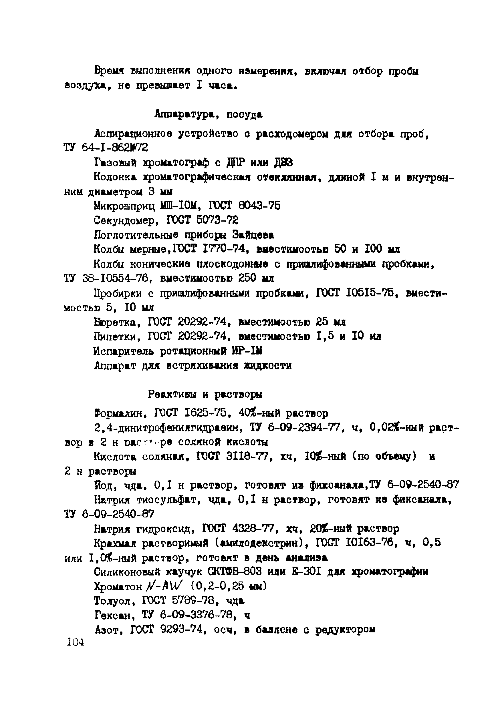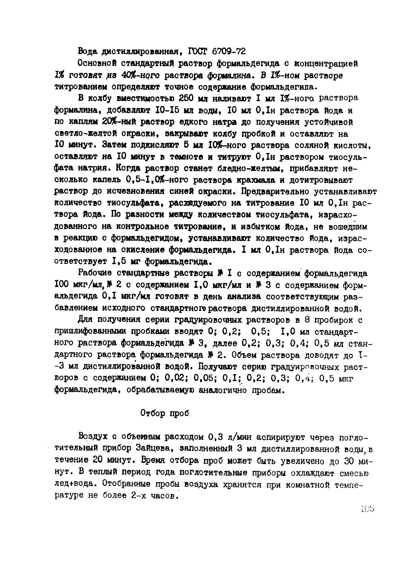 Методические указания по газохроматографическому измерению концентраций формальдегида в атмосферном воздухе| Статус: | применяется в еаэс | | Название рус.: | Методические указания по газохроматографическому измерению концентраций формальдегида в атмосферном воздухе | | Дата добавления в базу: | 01.01.2018 | | Дата актуализации: | 01.01.2021 | | Оглавление: | Принцип и характеристика метода Аппаратура, посуда Реактивы и растворы Отбор проб Подготовка к измерению Проведение измерения Расчет концентрации | | Разработан: | БелНИСГИ