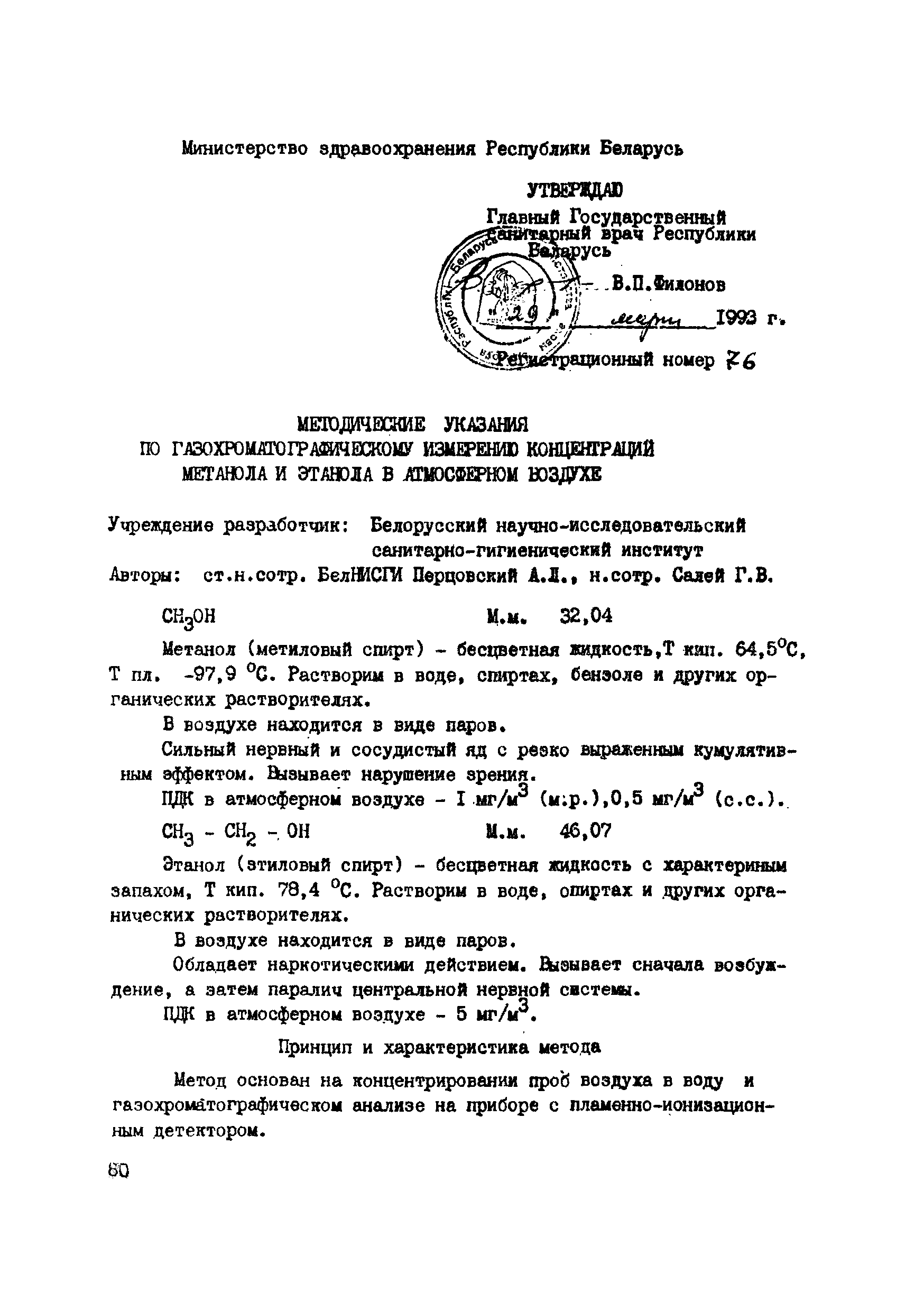 | Название рус.: | Методические указания по газохроматографическому измерению концентраций метанола и этанола в атмосферном воздухе |