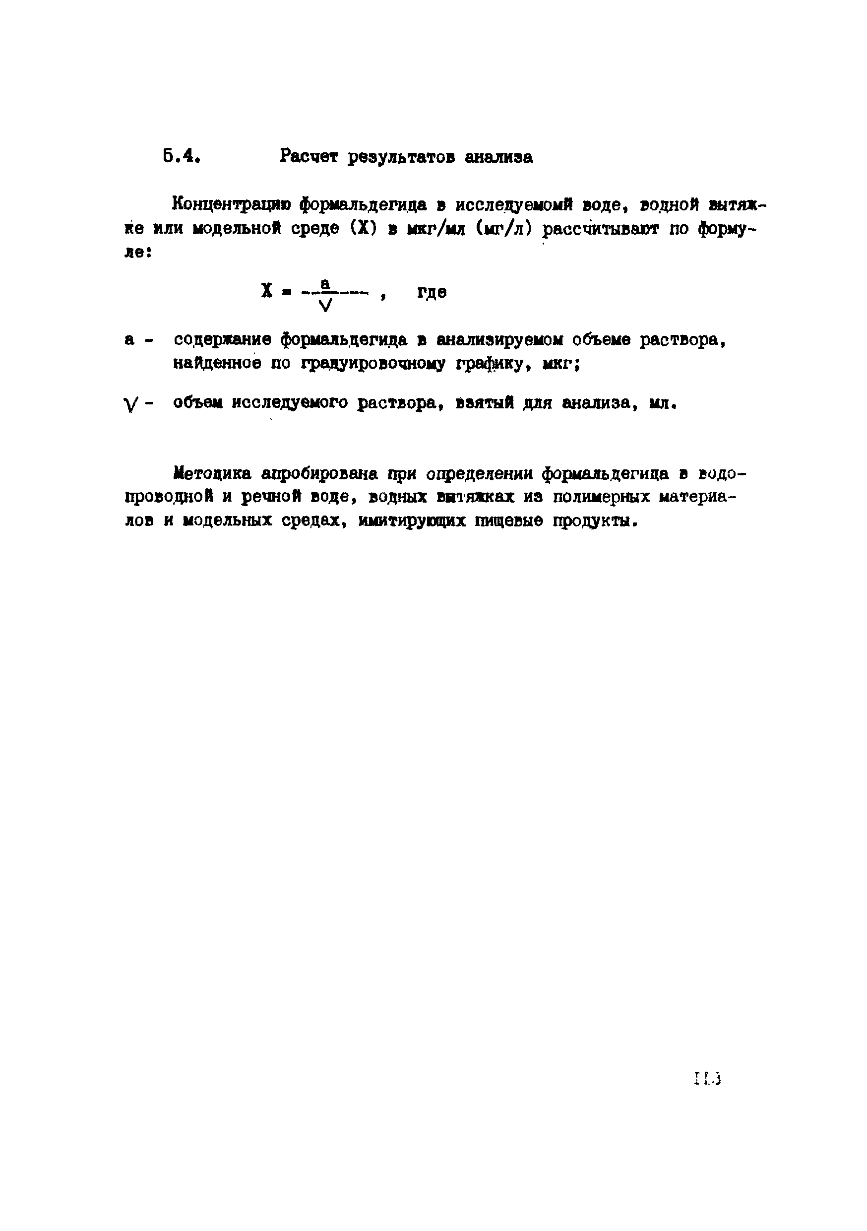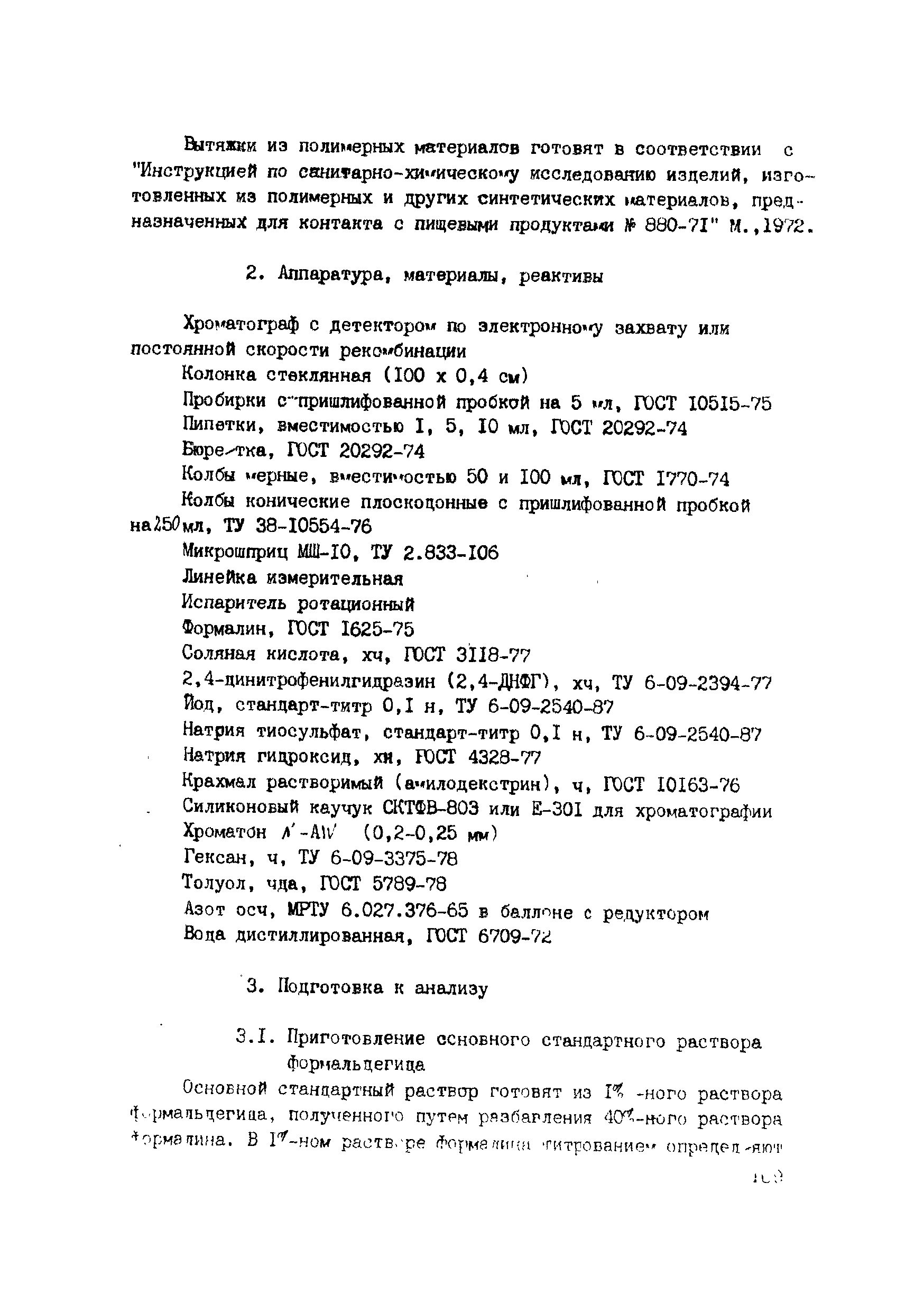 Методические указания по определению формальдегида в воде, водных вытяжках из полимерных материалов и модельных средах, имитирующих пищевые продукты| Статус: | применяется в еаэс | | Название рус.: | Методические указания по определению формальдегида в воде, водных вытяжках из полимерных материалов и модельных средах, имитирующих пищевые продукты | | Дата добавления в базу: | 01.01.2018 | | Дата актуализации: | 01.01.2021 | | Оглавление: | 1 Методы отбора проб 2 Аппаратура, материалы, реактивы 3 Подготовка к анализу 4 Условия анализа 5 Проведение анализа | | Разработан: | Белорусский научно-исследовательский санитарно-гигиенический институт
