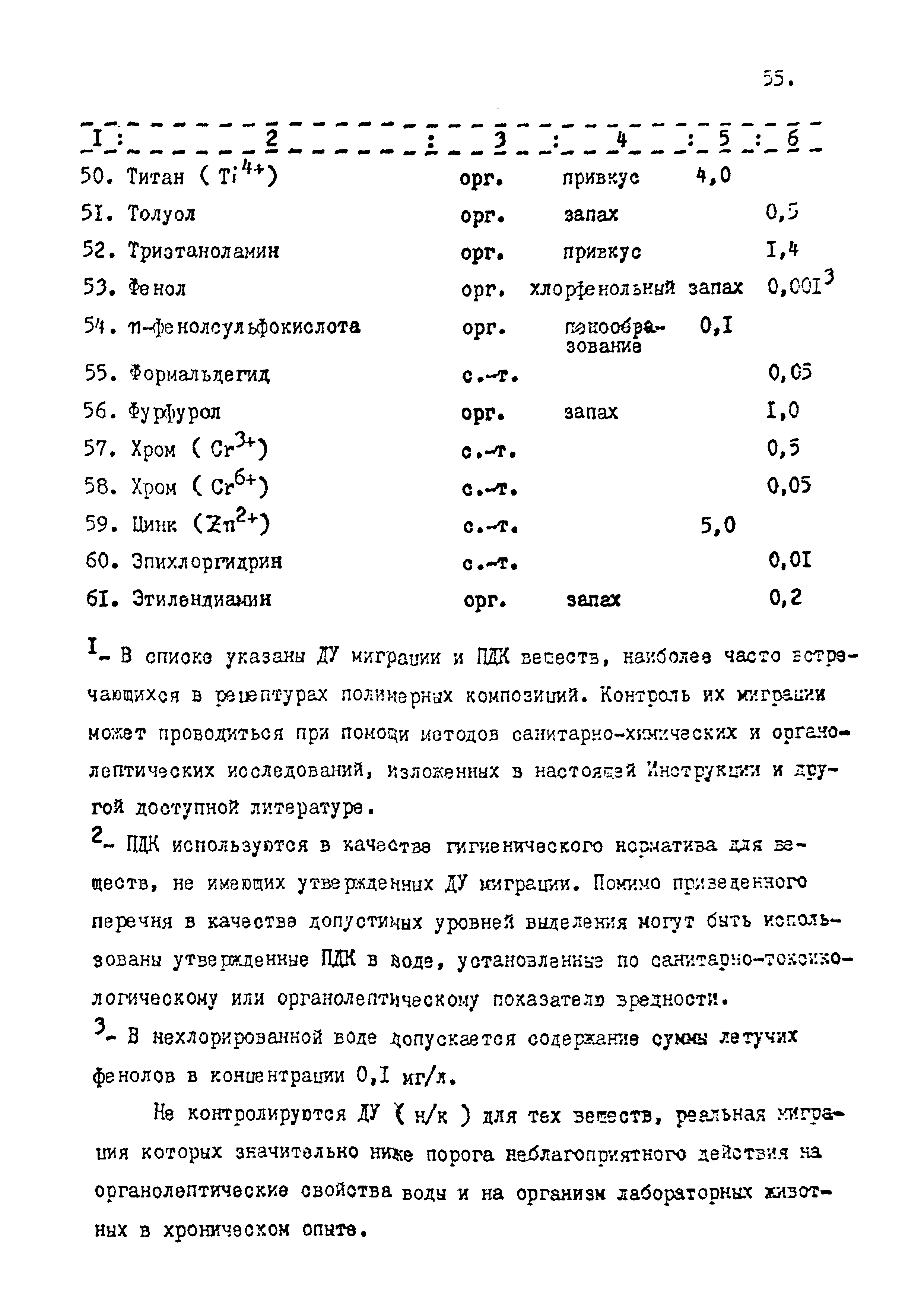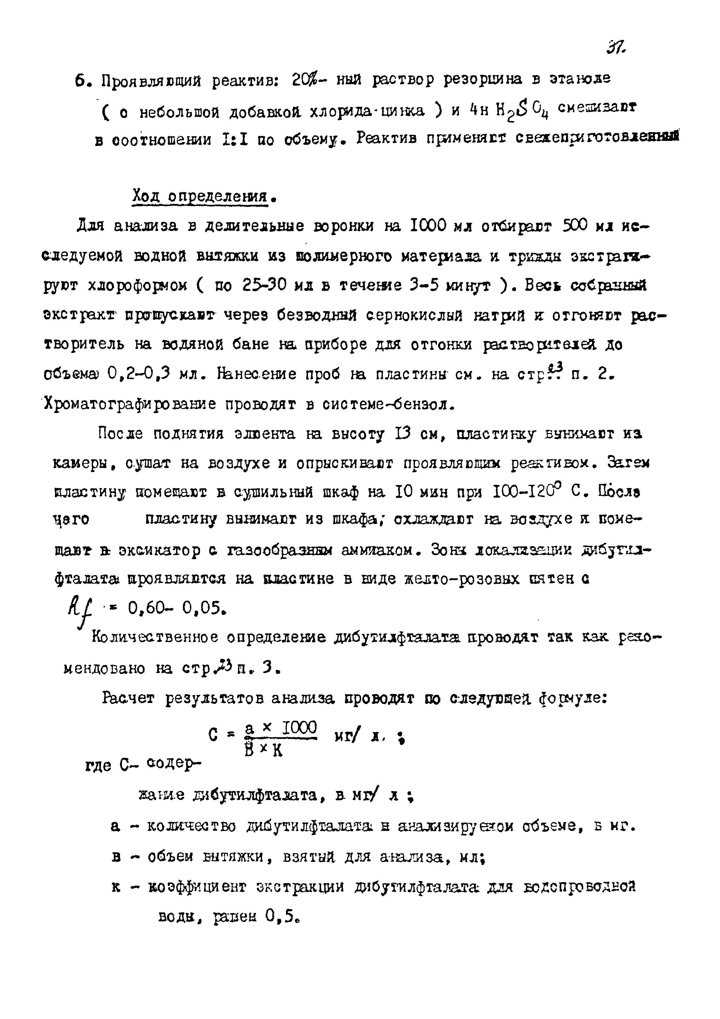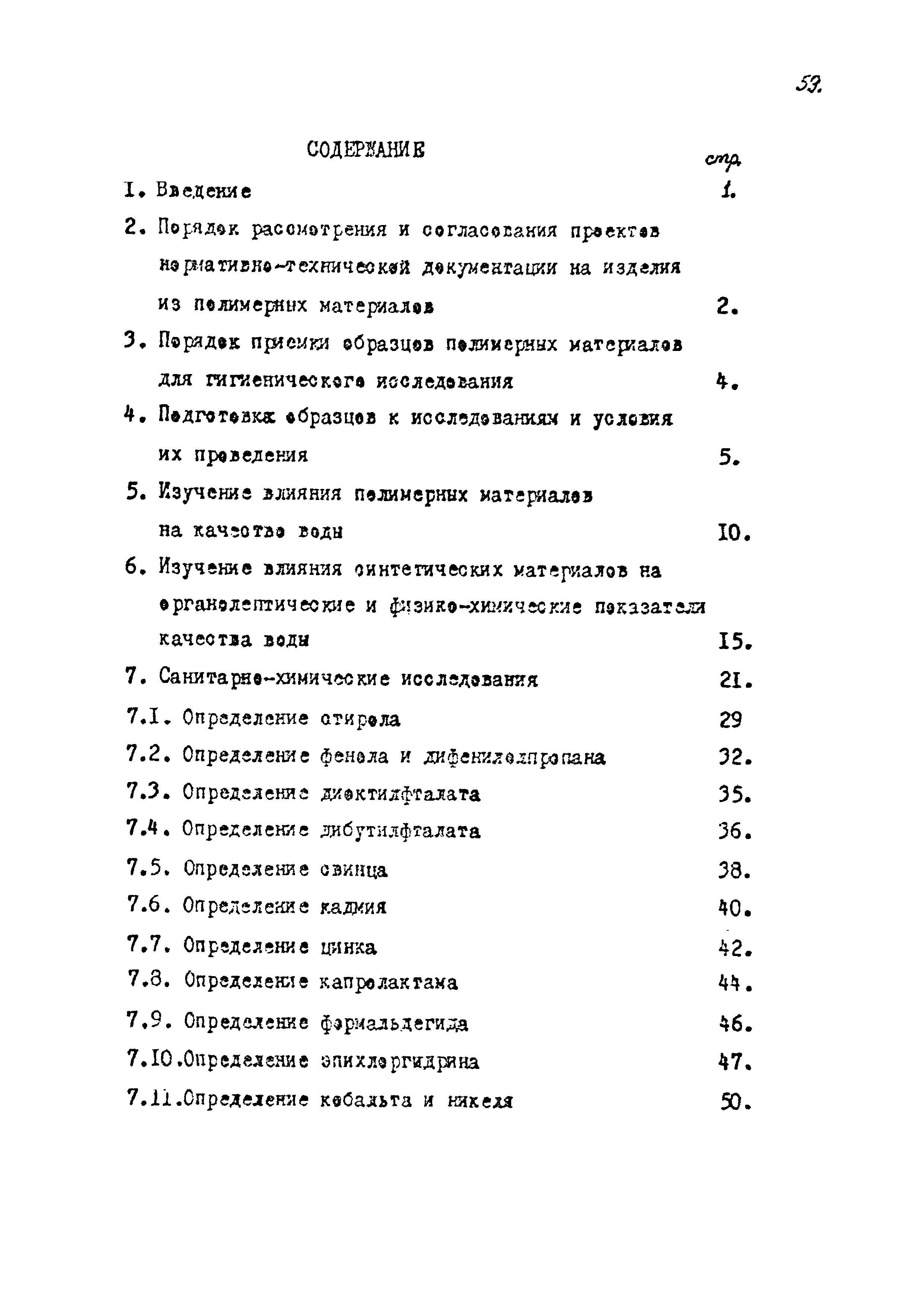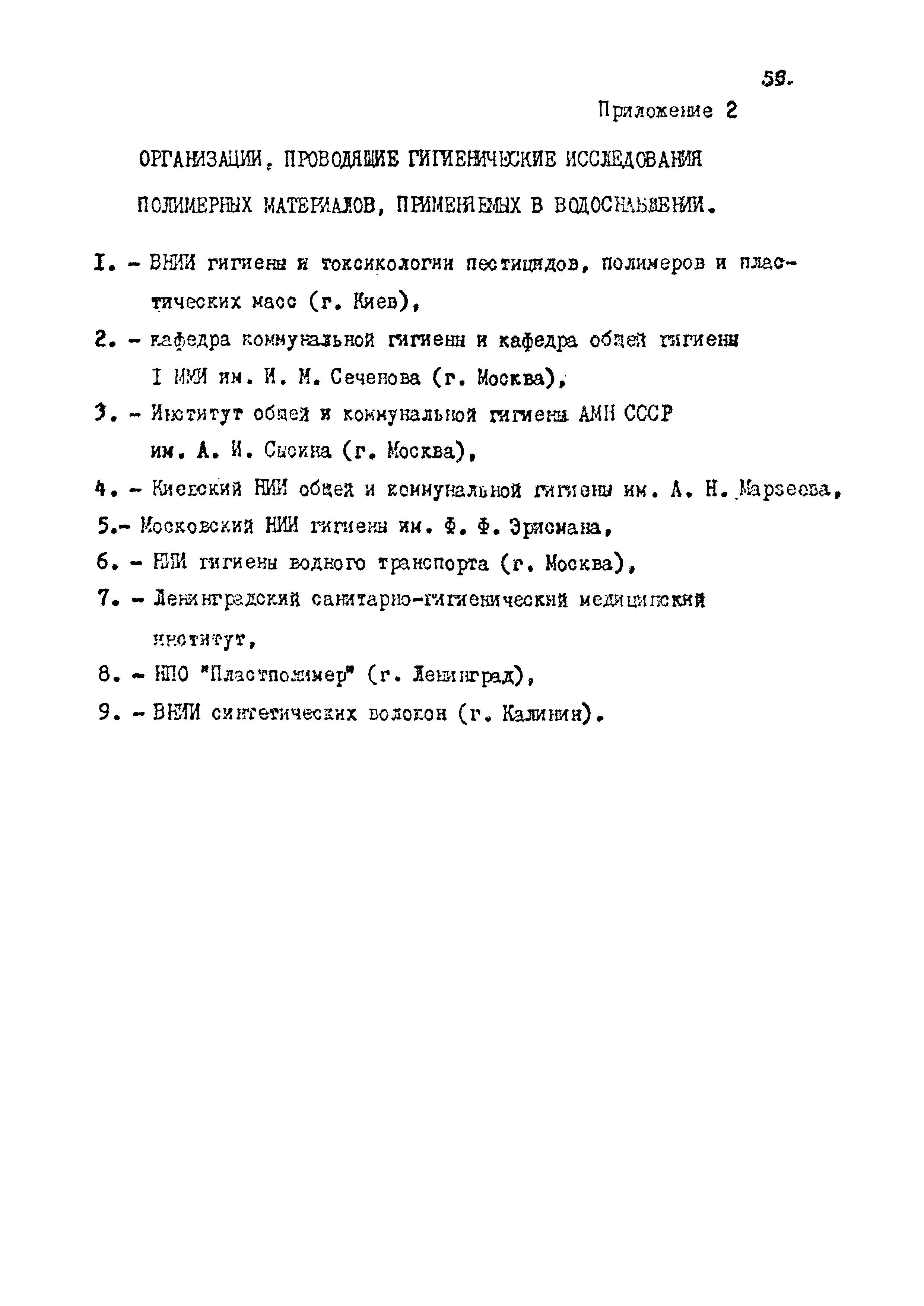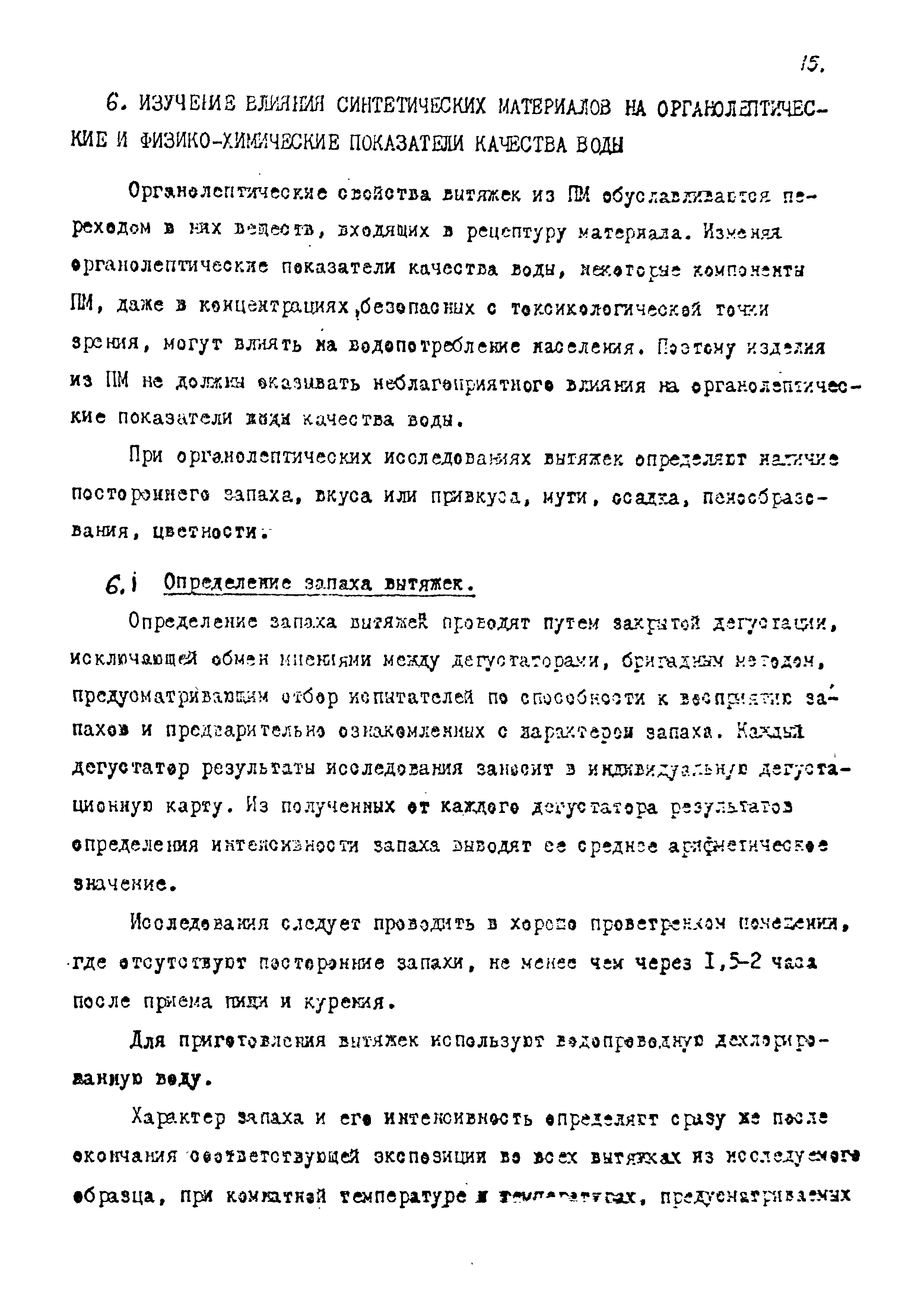 Инструкция по санитарно-химическому исследованию изделий из полимерных материалов, предназначенных для использования в хозяйственно-питьевом водоснабжении и водном хозяйстве| Статус: | действует | | Название рус.: | Инструкция по санитарно-химическому исследованию изделий из полимерных материалов, предназначенных для использования в хозяйственно-питьевом водоснабжении и водном хозяйстве | | Дата добавления в базу: | 01.01.2018 | | Дата актуализации: | 01.01.2021 | | Область применения: | Инструкция определяет порядок проведения исследований, содержит описание методов анализа воды по 11 химическим веществам, наиболее характерным для полимерных материалов, и предназначена для научно исследовательских институтов и кафедр гигиенического профиля, а также для санитарно-эпидемиологических станций, имеющих соответствующую лабораторную базу, занимающихся исследованиями по гигиеническому изучению полимерных материалов, предназначенных для использования в практике хозяйственно-питьевого водоснабжения. | | Оглавление: | 1. Введение 2. Порядок рассмотрения и согласования проектов нормативно технической документации на изделия из полимерных материалов 3. Порядок приемки образцов полимерных материалов для гигиенического исследования 4. Подготовка образцов к исследованиям и условия их проведения 5. Изучение влияния полимерных материалов на качество воды 6. Изучения влияния синтетических материалов на органолептические и физико-химические показатели качества воды 7. Санитарно-химические исследования 7.1. Определение стирола 7.2. Определение фенола и дифенилолпропана 7.3. Определение диоктилфталата 7.4. Определение дибутилфталата 7.5. Определение свинца 7.6. Определение кадмия 7.7. Определение цинка 7.8. Определение капролактами 7.9. Определение формальдегида 7.10. Определение эпихлоргидрина 7.11. Определение кобальта и никеля | | Разработан: | ВНИИ гигиены и токсикологии пестицидов, полимеров и пластических масс Минздрава СССР Киевский институт усовершенствования врачей Минздрава Украинской ССР