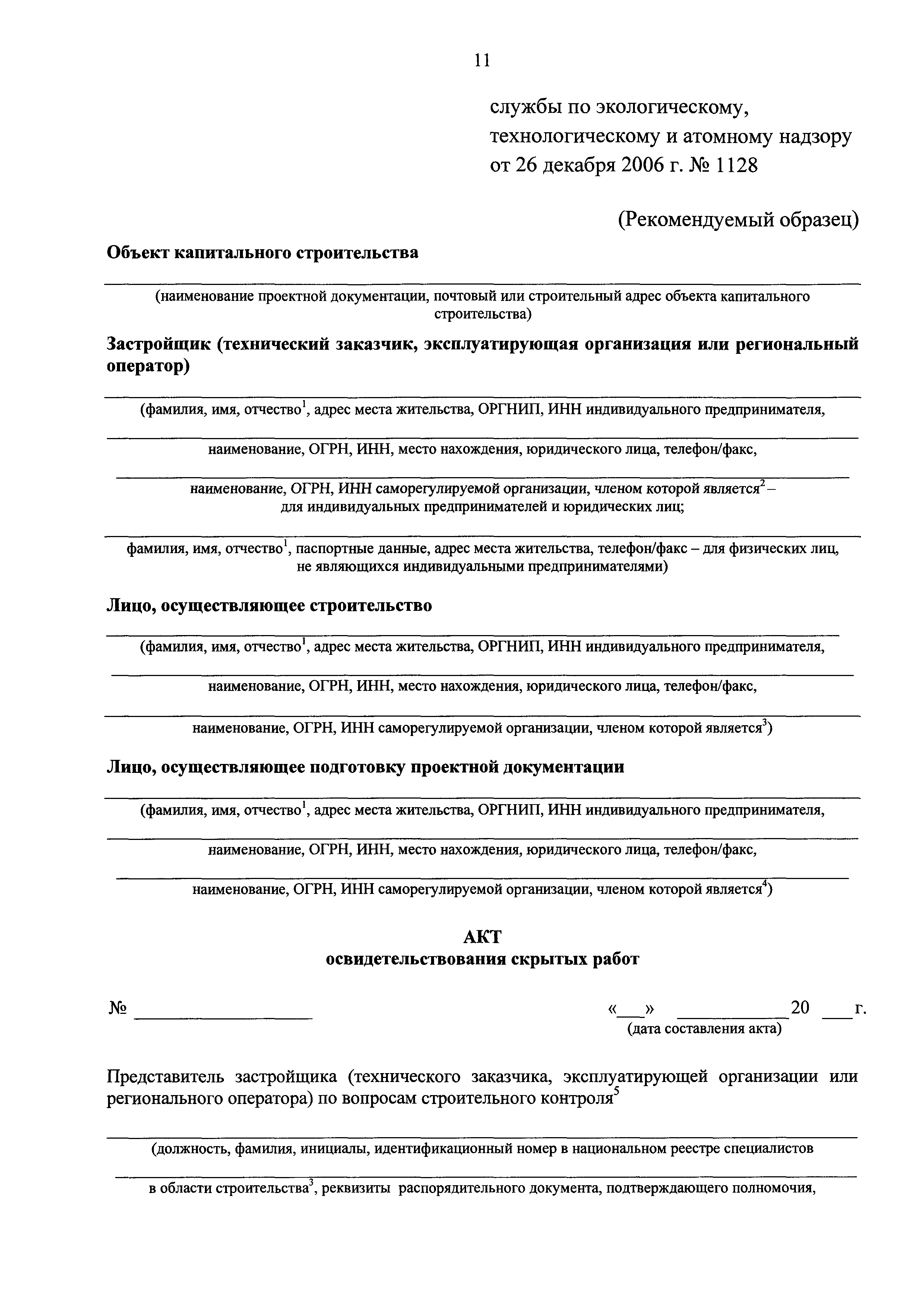 Акт освидетельствования скрытых работ (2017)| Статус: | справочные материалы, мп, тпр | | Название рус.: | Акт освидетельствования скрытых работ (2017) | | Дата добавления в базу: | 01.01.2018 | | Дата актуализации: | 01.01.2021 | | Утверждён: | 26.12.2006 Федеральная служба по экологическому, технологическому и атомному надзору (1128)