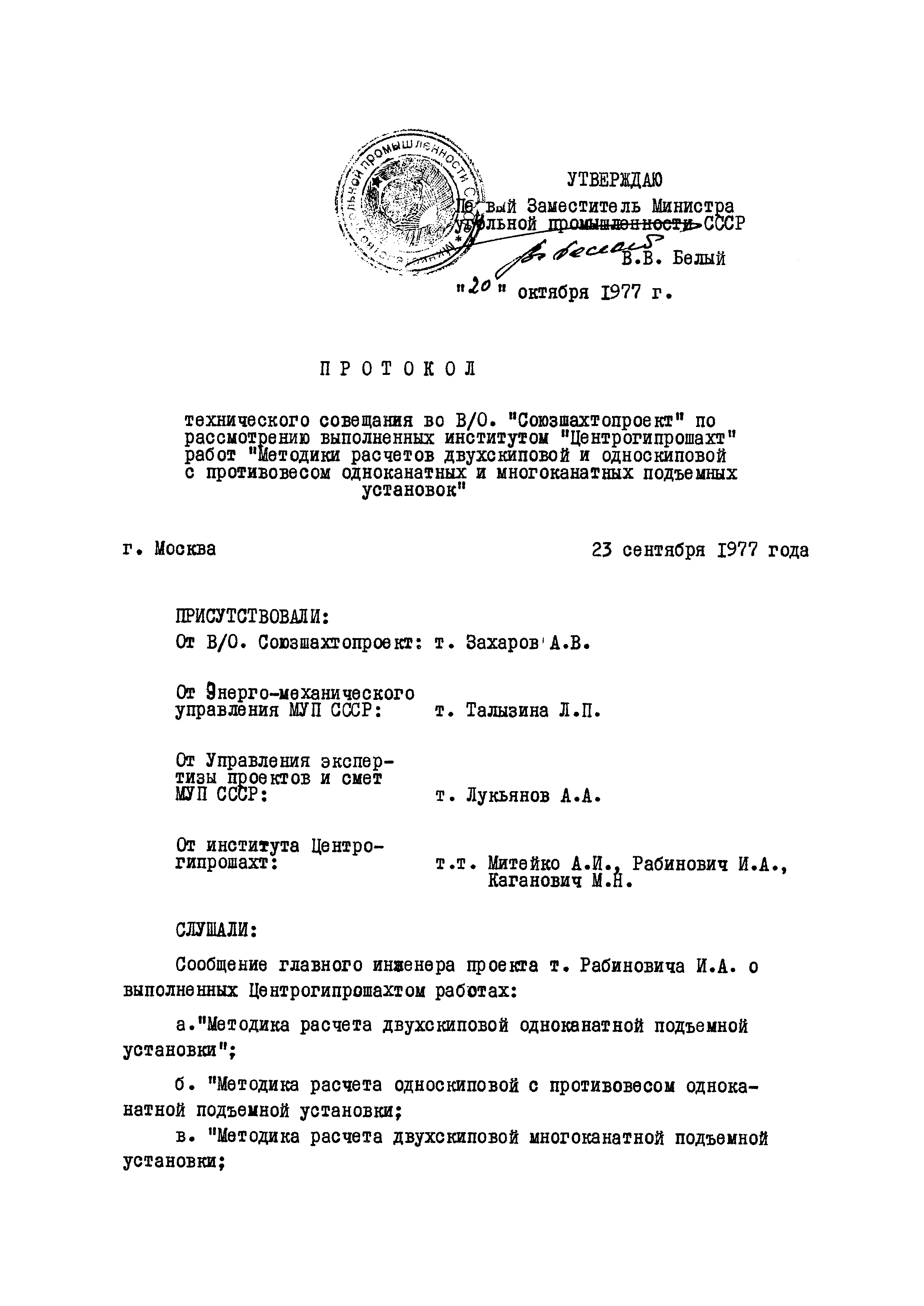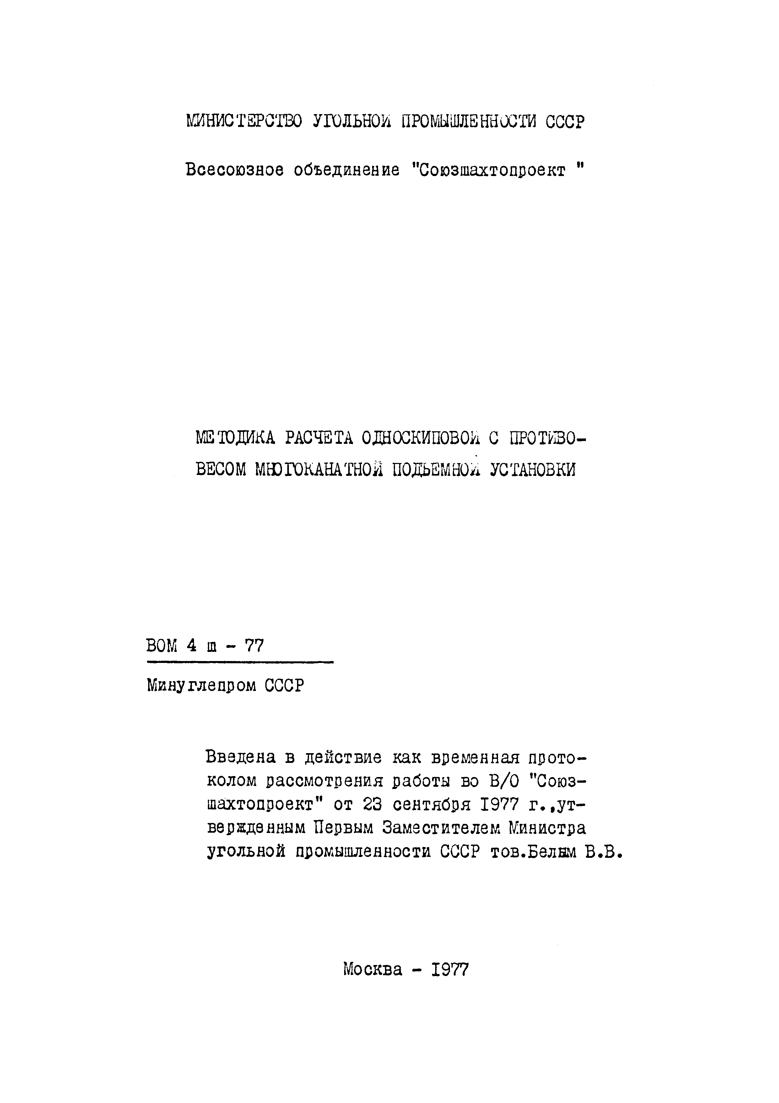 | Утверждён: | 23.09.1977 Министерство угольной промышленности СССР (USSR Ministry of the Coal Industry )