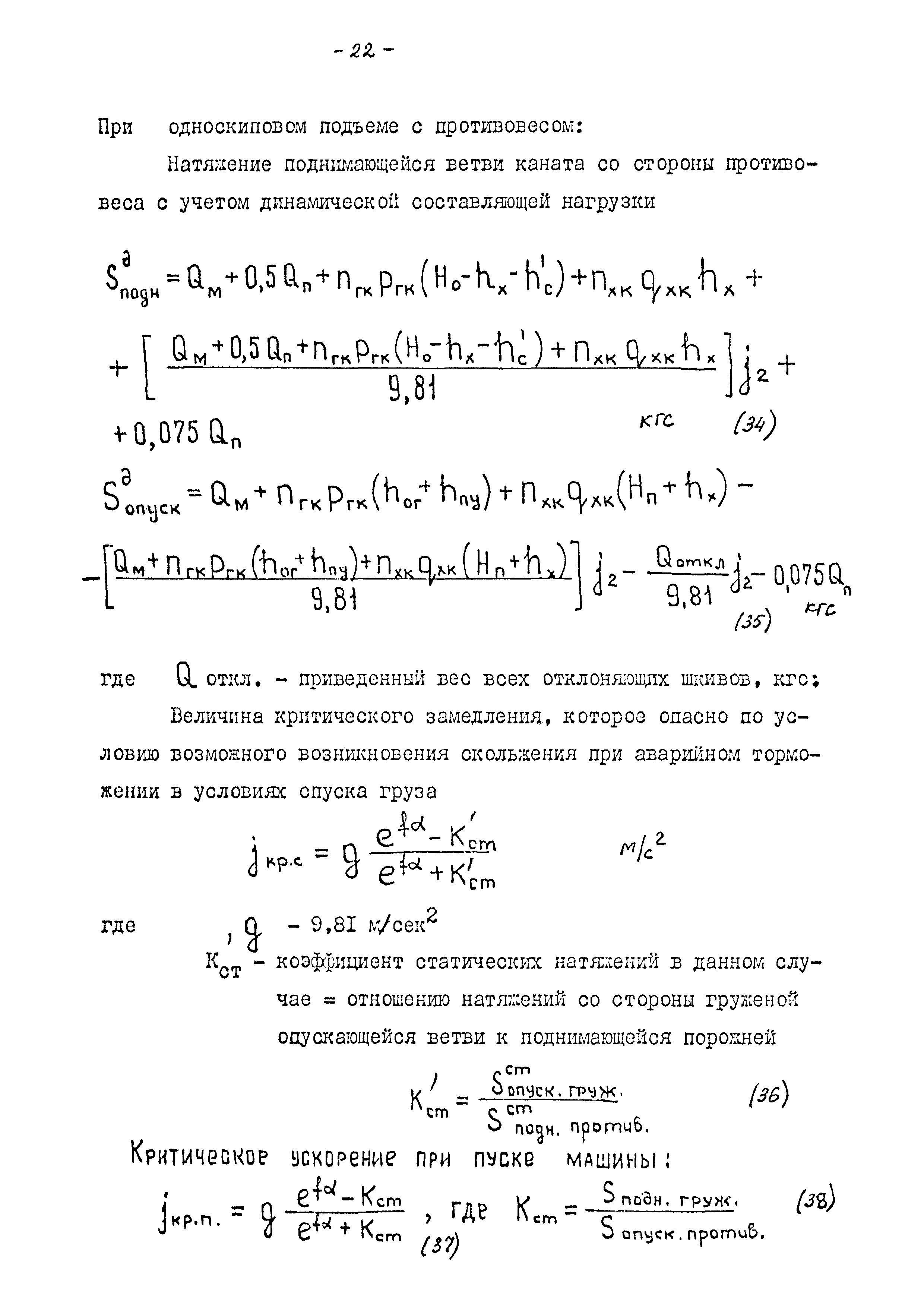 | Название рус.: | Методика расчета односкиповой с противовесом многоканатной подъемной установки |