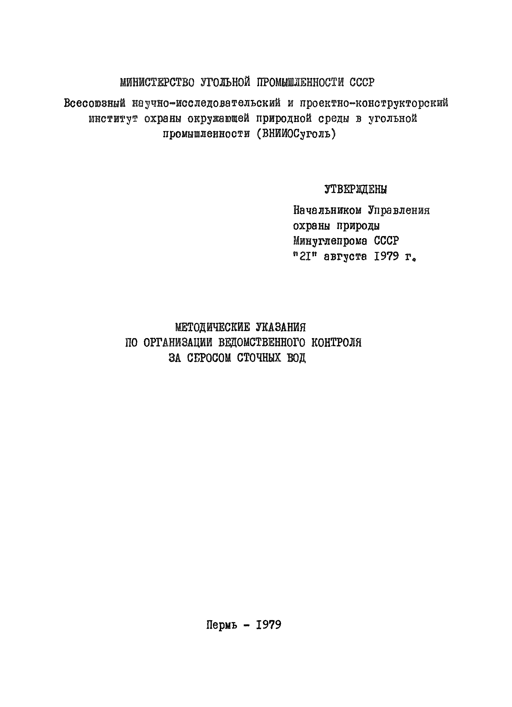 | Утверждён: | 21.08.1979 Управление охраны природы Минуглепрома СССР