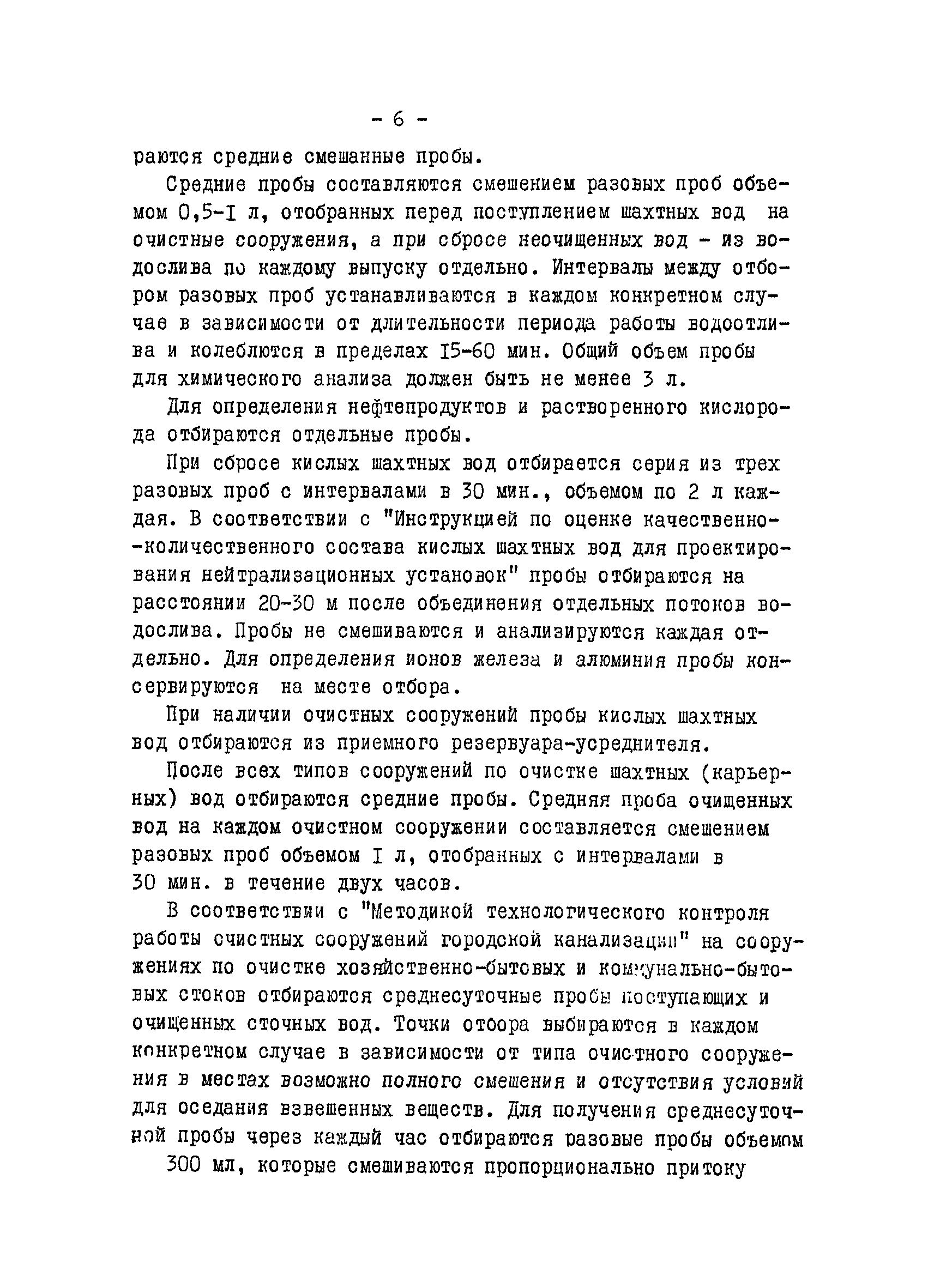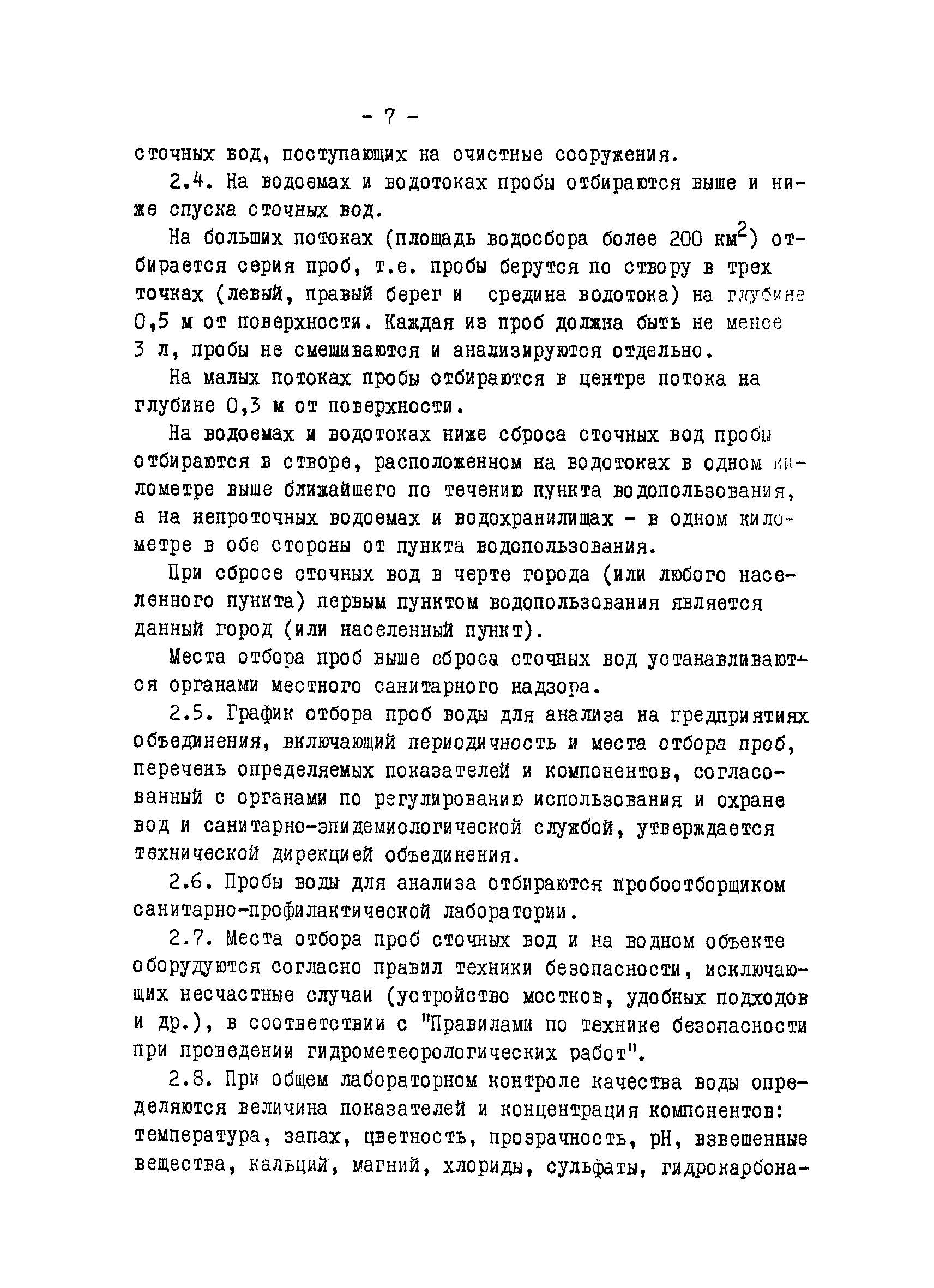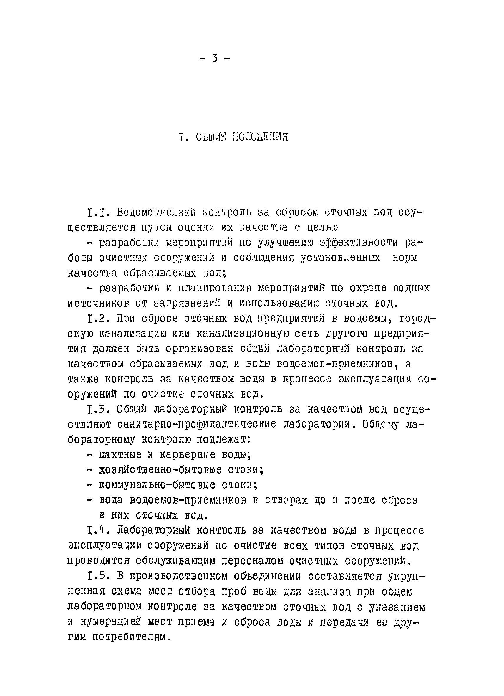 | Оглавление: | 1 Общие положения 2 Общий лабораторный контроль 3 Лабораторный контроль в процессе очистки сточных вод 4 Система отчетности по результатам контроля качества вод 5 Методика расчета средневзвешенных концентраций загрязнений 6 Планирование работ 7 Оборудование лабораторий 8 Список литературы Приложение 1. Форма I. Результаты химического анализа сточных вод и воды водоемов по производственному объединению Приложение 2. Перечень приборов, оборудования и лабораторной посуды для анализа сточных вод и воды водоемов |
