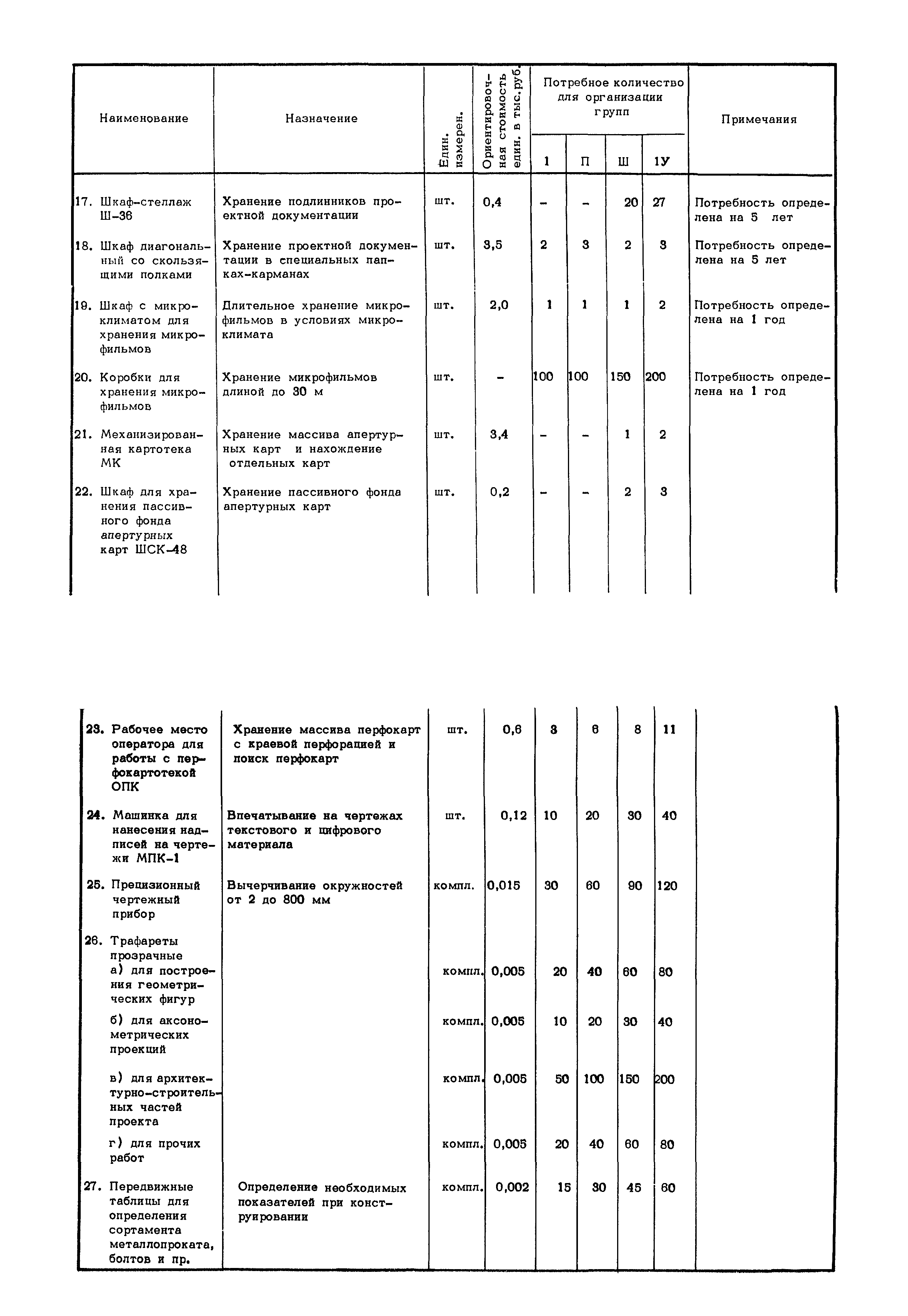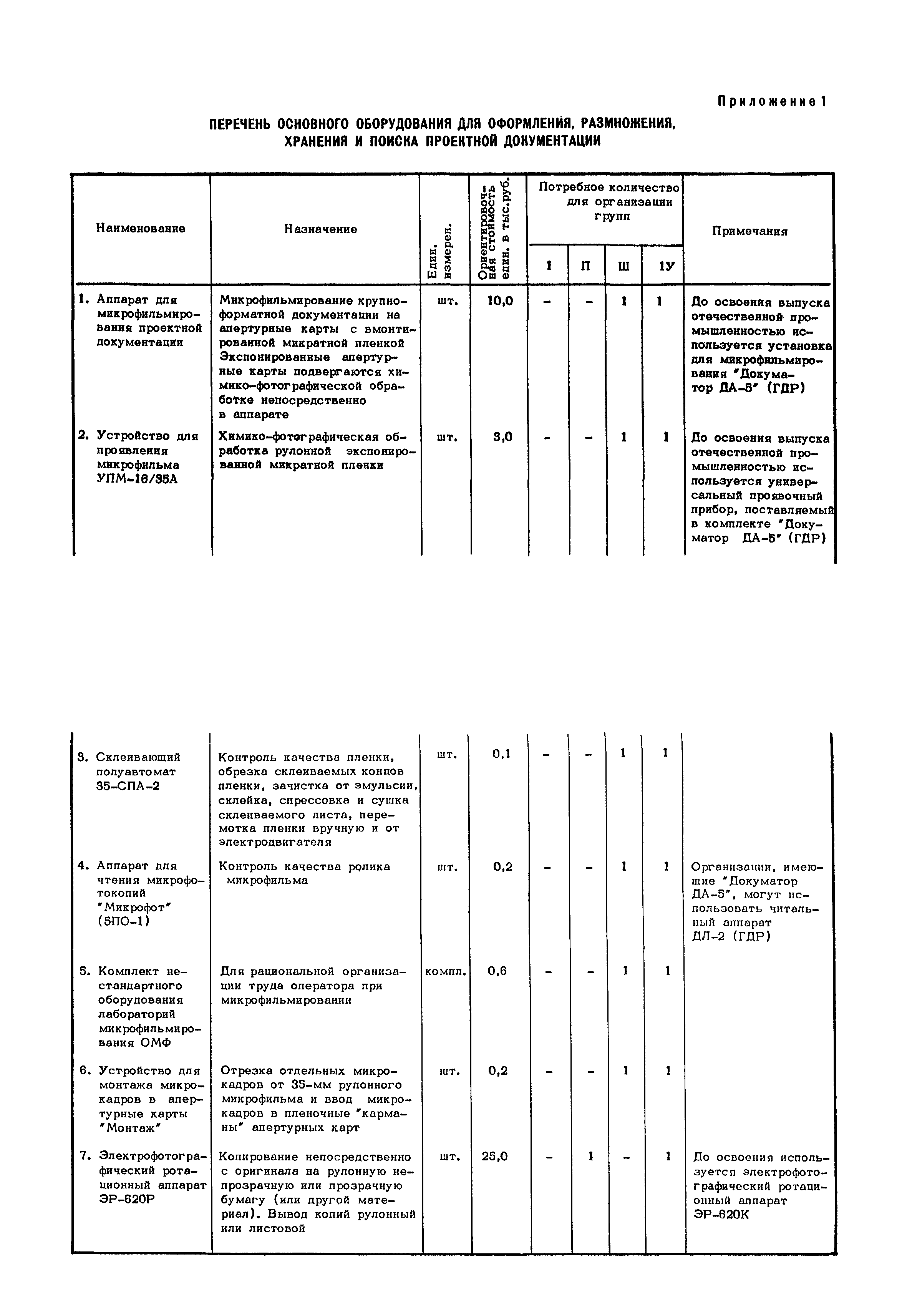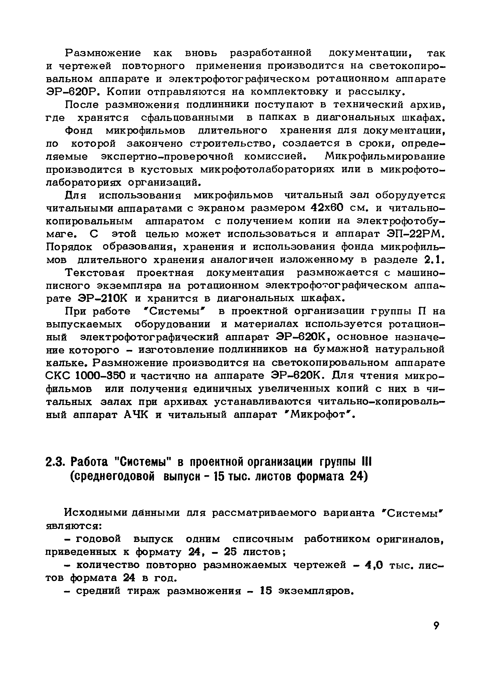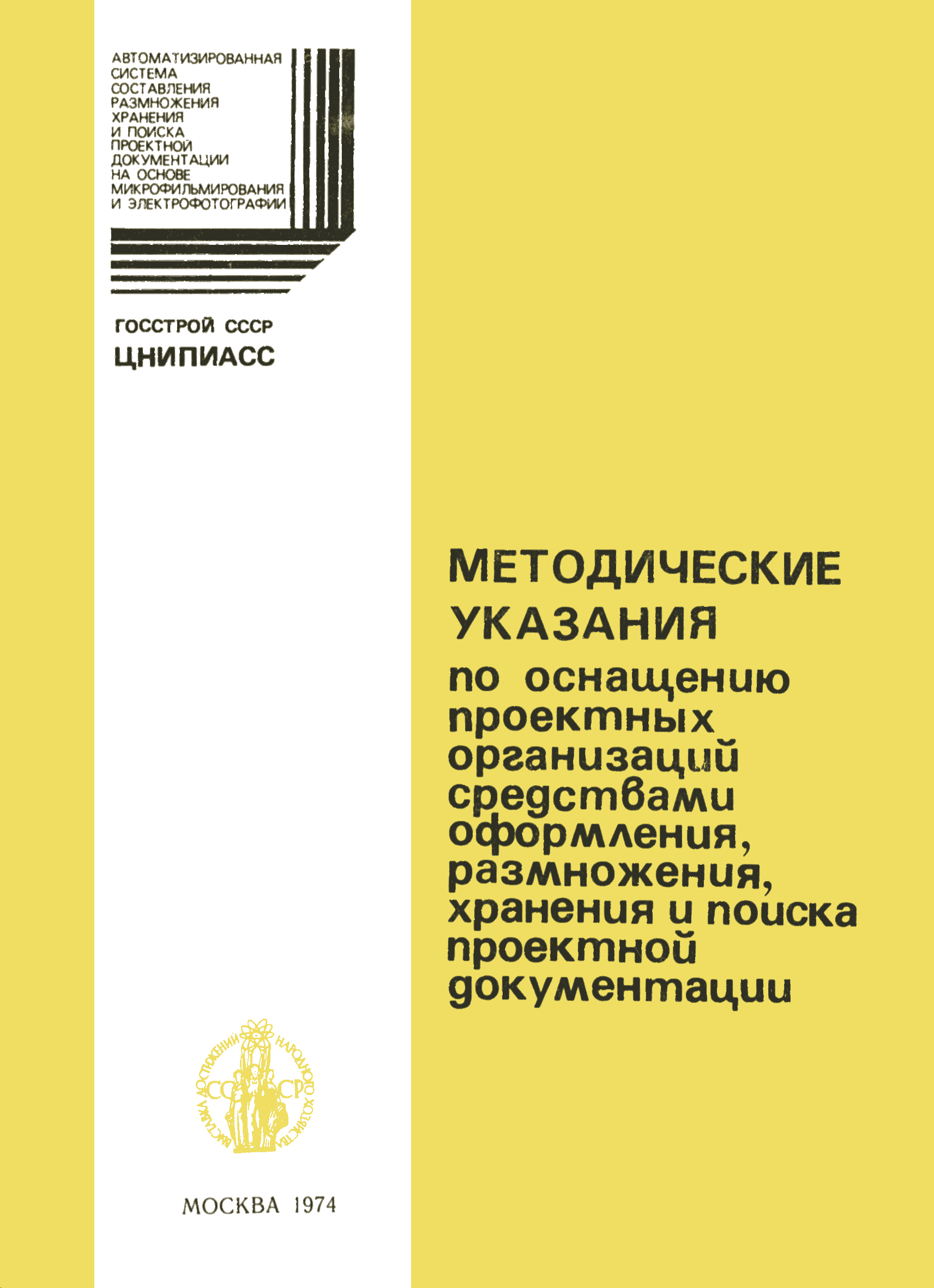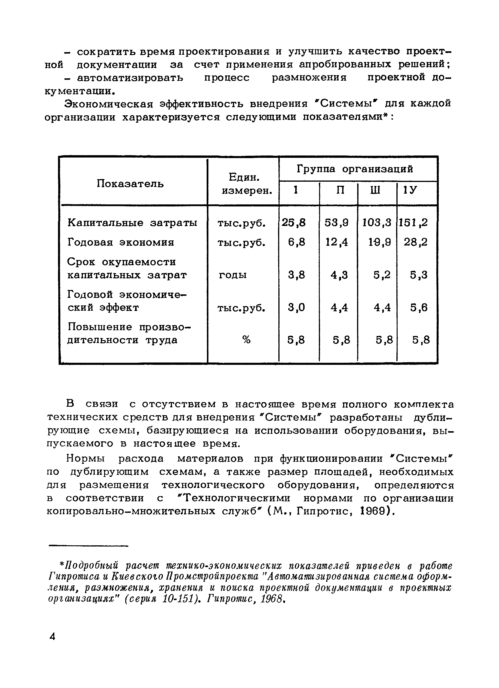 Методические указания по оснащению проектных организаций средствами оформления, размножения, хранения и поиска проектной документации| Статус: | справочные материалы, мп, тпр | | Название рус.: | Методические указания по оснащению проектных организаций средствами оформления, размножения, хранения и поиска проектной документации | | Дата добавления в базу: | 01.01.2018 | | Дата актуализации: | 01.01.2021 | | Область применения: | Методические указания содержат в себе основные положения системы оформления, размножения, хранения и поиска проектной документации, базирующиеся на микрофильмировании, электрофотографии, перфотехнике, и даны рекомендации, которые позволят проектным организациям самостоятельно выбрать оптимальный вариант системы, эффективной в условиях деятельности данной организации, т.е. определить рациональную систему для них технологию оформления, размножения, хранения и поиска проектной документации и необходимое техническое оснащение | | Оглавление: | 1. Основные положения 2. Варианты системы оформления, размножения и, хранения и поиска проектной документации в организациях с различными объемами выпускаемой продукции 2.1. Работа "Системы" в проектной организации группы 1 (среднегодовой выпуск - 4 тыс. листов формата 24) 2.2. Работа "Системы" в проектной организации группы 2 (среднегодовой выпуск - 10 тыс. листов формата 24) 2.3. Работа "Системы" в проектной организации группы 3 (среднегодовой выпуск - 15 тыс. листов формата 24) 2.4. Работа "Системы" в проектной организации группы 4 (среднегодовой выпуск - 20 тыс. листов формата 24) Приложение 1. Перечень основного оборудования для оформления, размножения, хранения и поиска проектной документации Приложение 2. Перечень основных материалов для оформления, размножения, хранения и поиска проектной документации | | Разработан: | ЦНИПИАСС Госстроя СССР