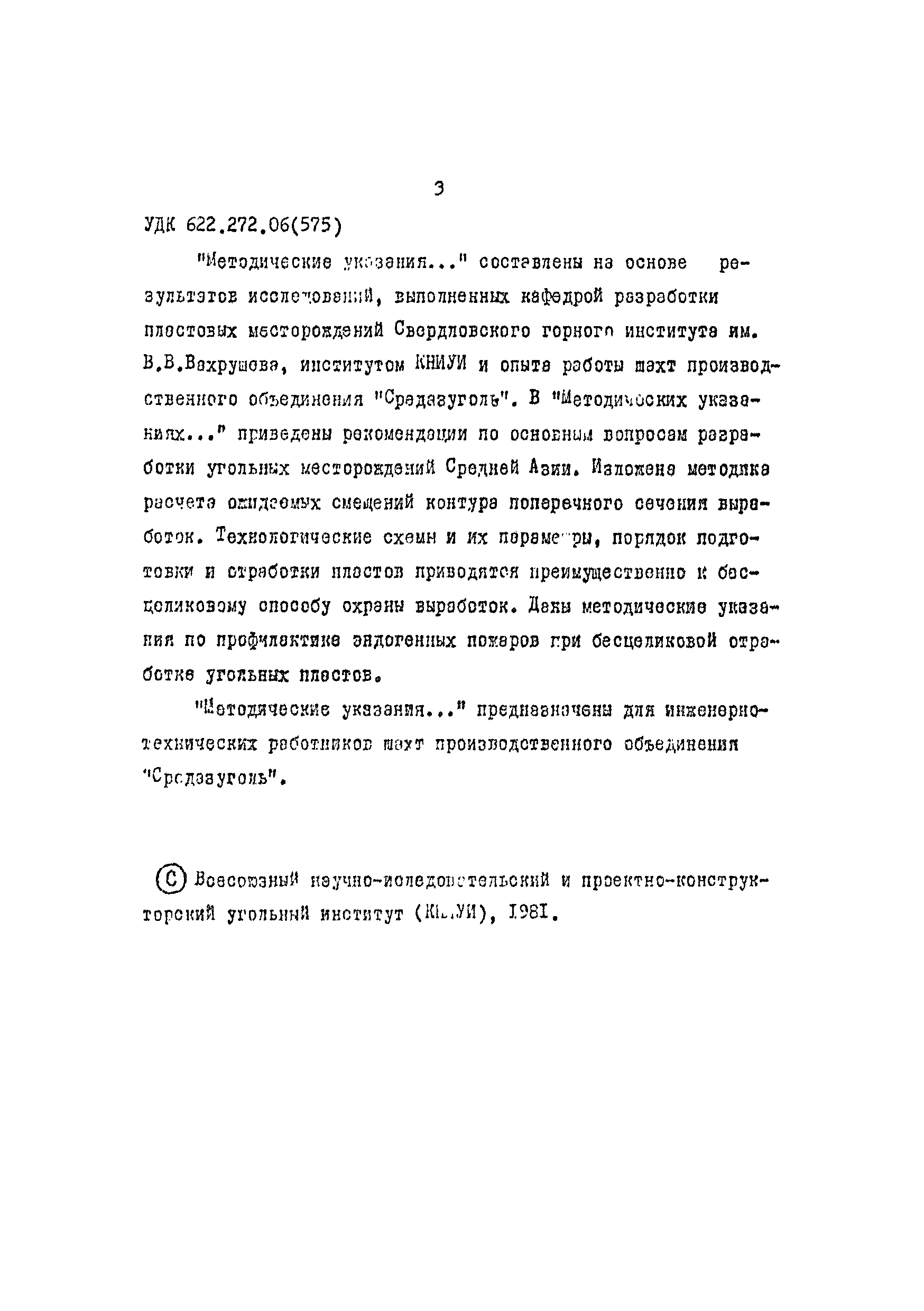 | Название рус.: | Методические указания по основным вопросам разработки угольных месторождений Средней Азии |