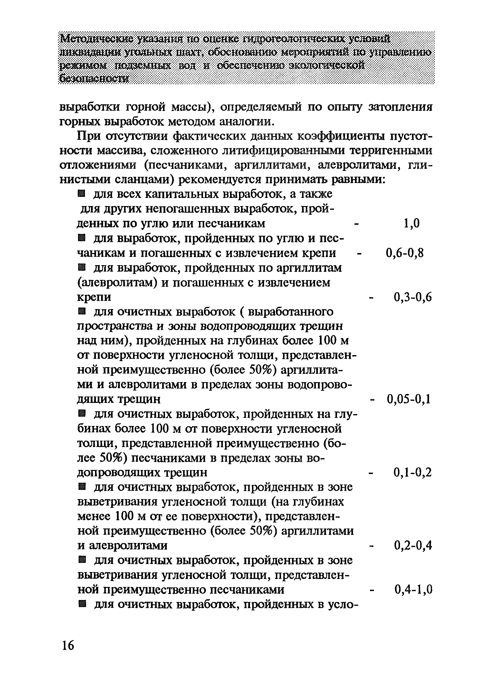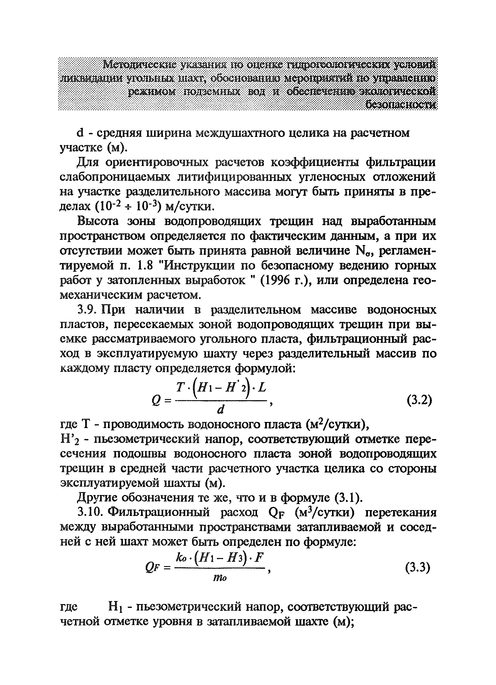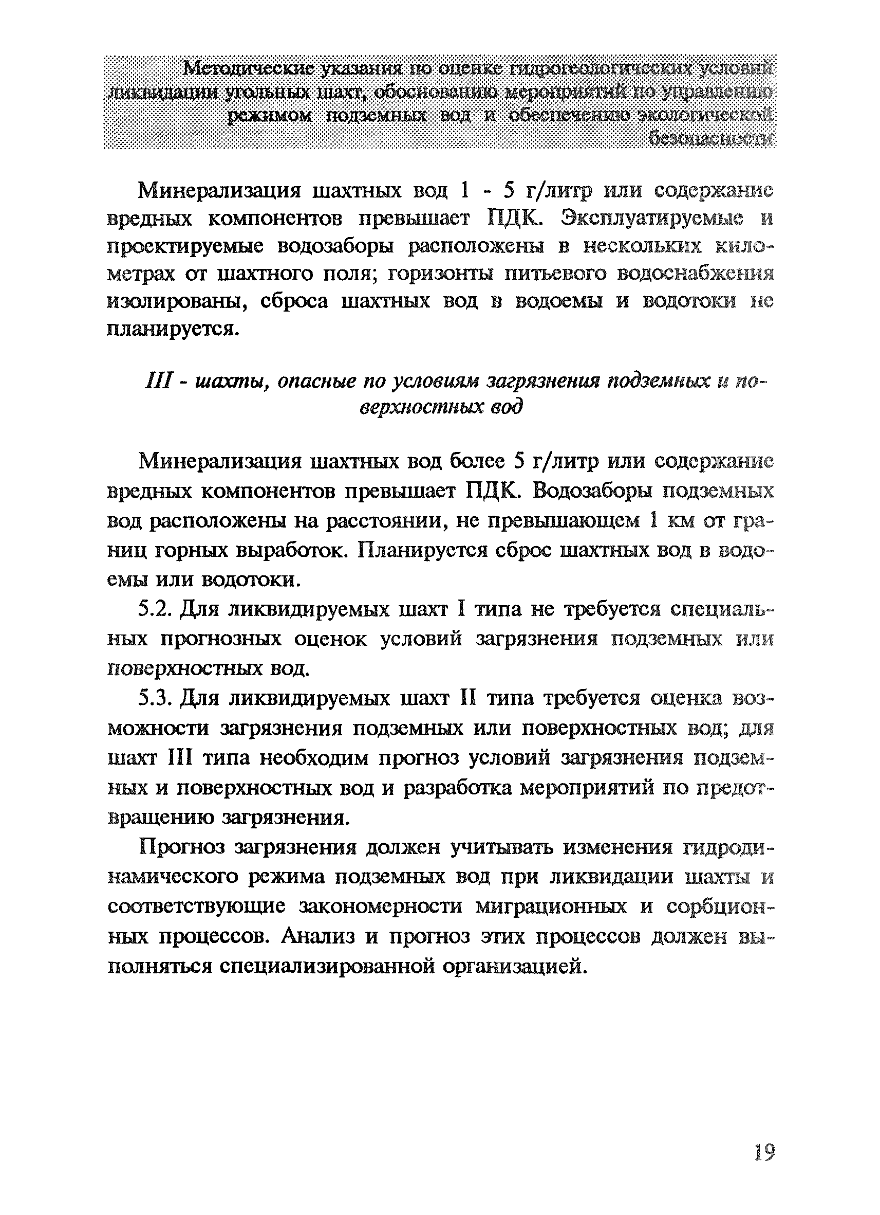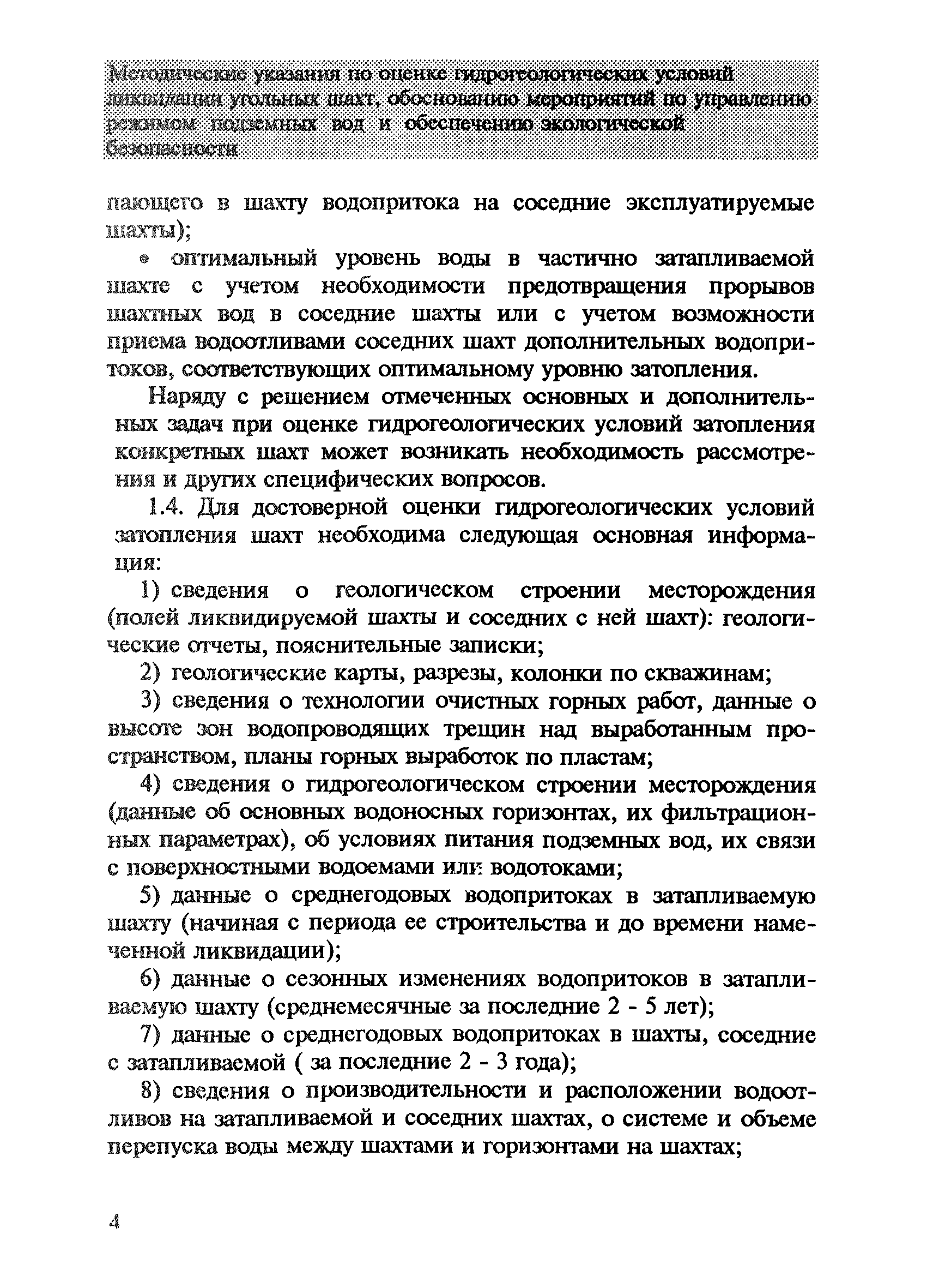 | Название рус.: | Методические указания по оценке гидрогеологических условий ликвидации угольных шахт, обоснованию мероприятий по управлению режимом подземных вод и обеспечению экологической безопасности |