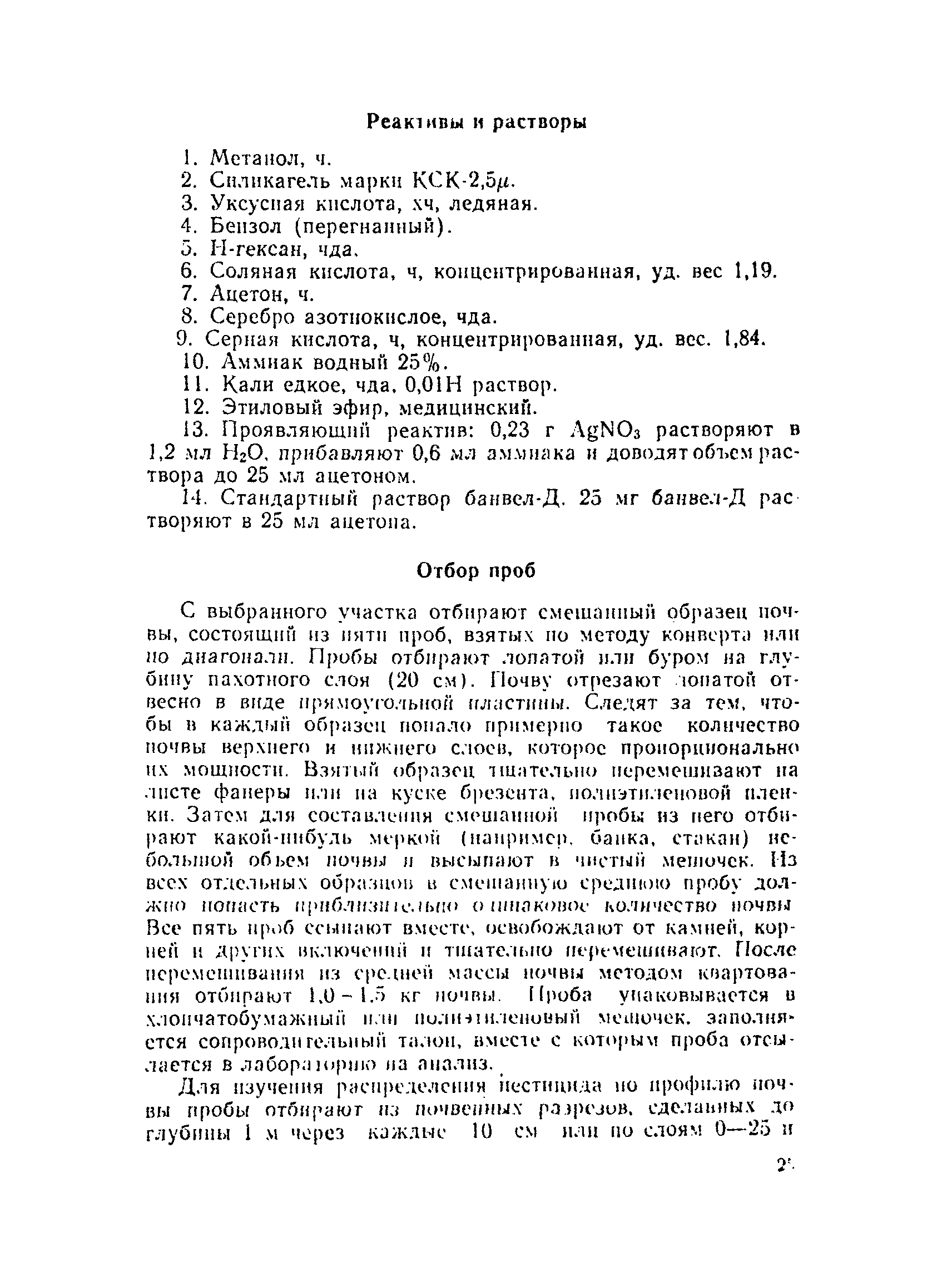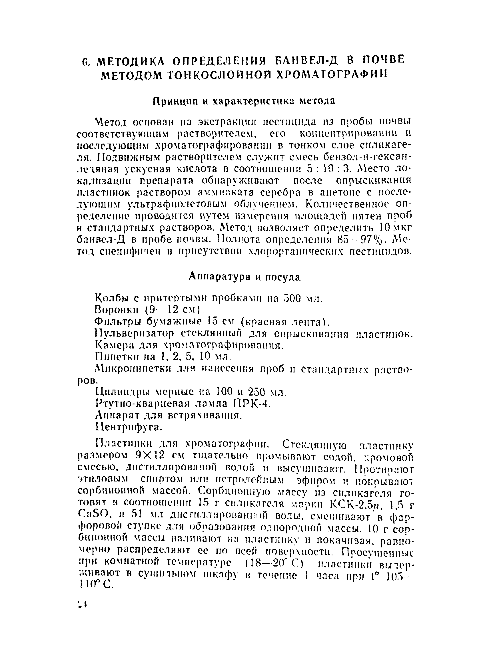Методика определения банвел-Д в почве методом тонкослойной хроматографии| Статус: | действует | | Название рус.: | Методика определения банвел-Д в почве методом тонкослойной хроматографии | | Дата добавления в базу: | 01.01.2018 | | Дата актуализации: | 01.01.2021 | | Оглавление: | Принцип и характеристика метода Аппаратура и посуда Реактивы и растворы Отбор проб Ход анализа Построение калибровочного графика Расчет анализа Приложение № 3 | | Утверждён: | 30.10.1980 Зам. Главного Государственного санитарного врача СССР (USSR Deputy Chief Public Health Officer 2264-80)